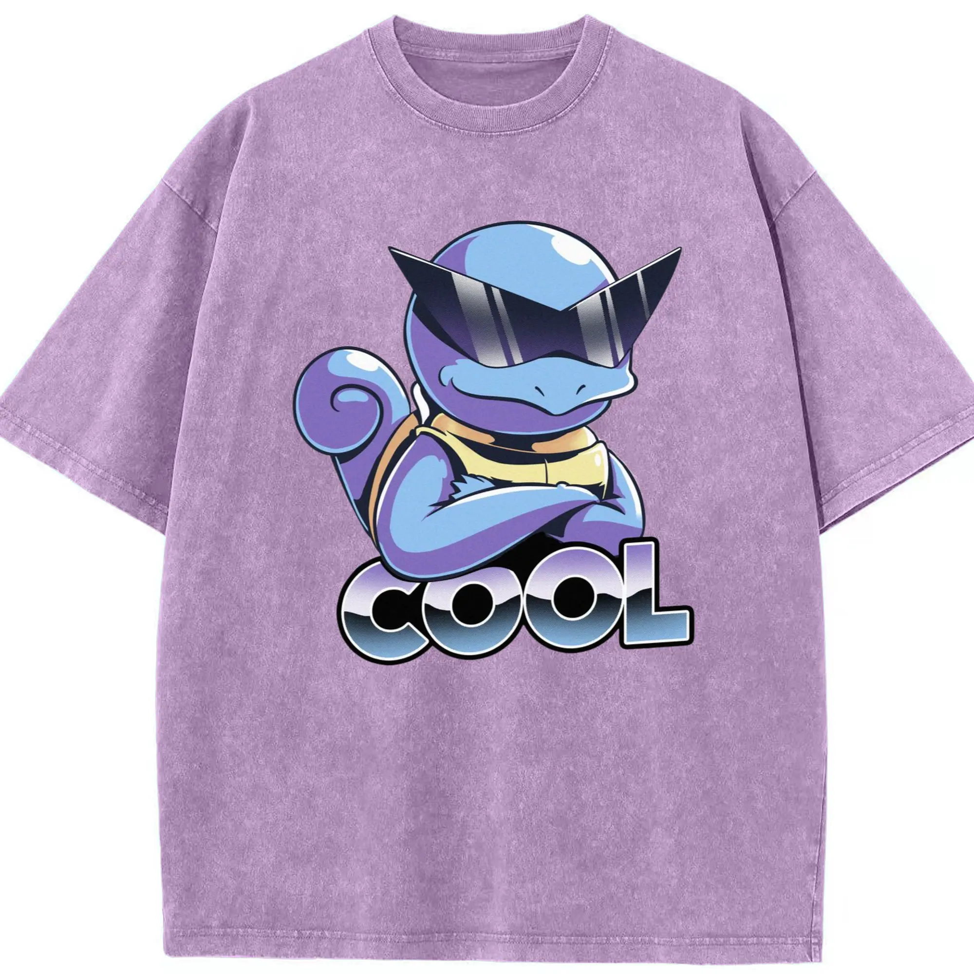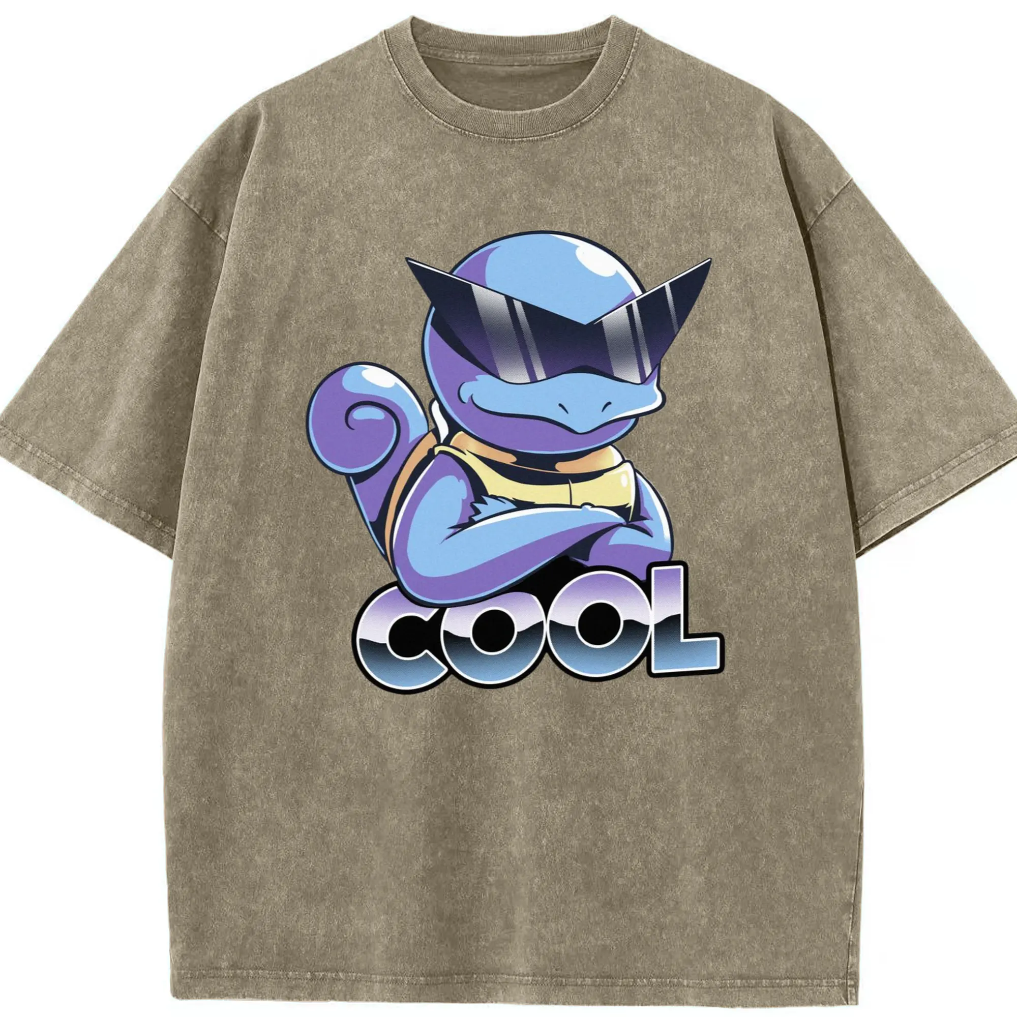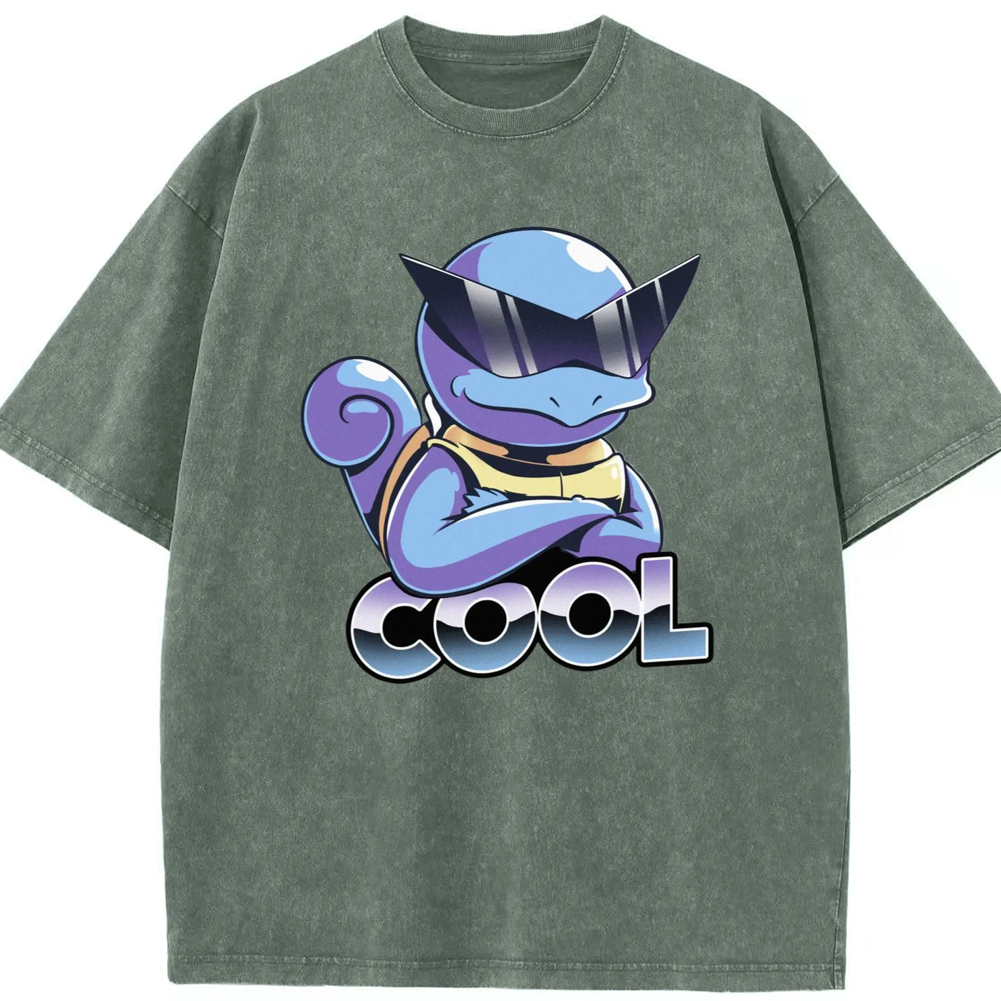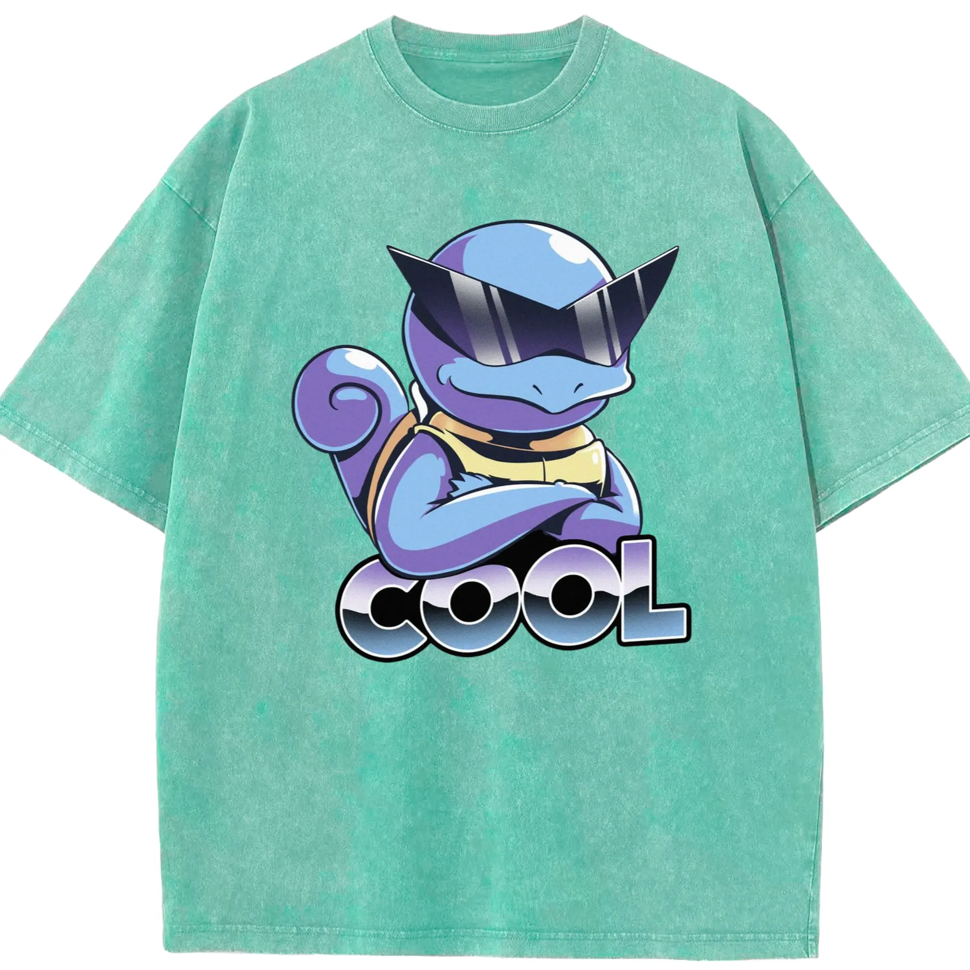 Pokemon squirtle t shirt​ - Washed Vintage Look 230g Cotton Oversized T-Shirt With Front Heat Transfer Print – Soft, Lightweight, Stylish Fit – Comfortable Casual Wear For Sports & Everyday Use