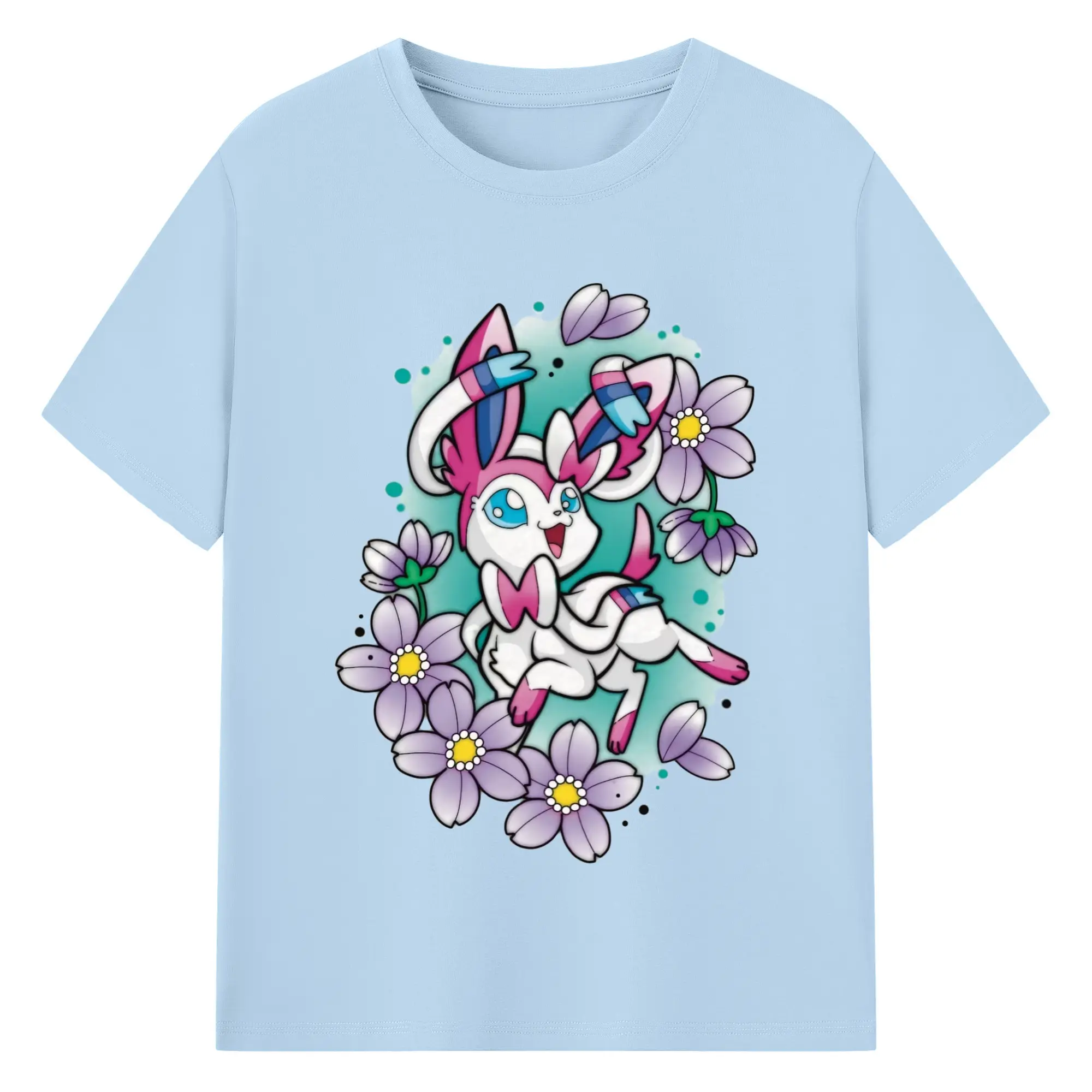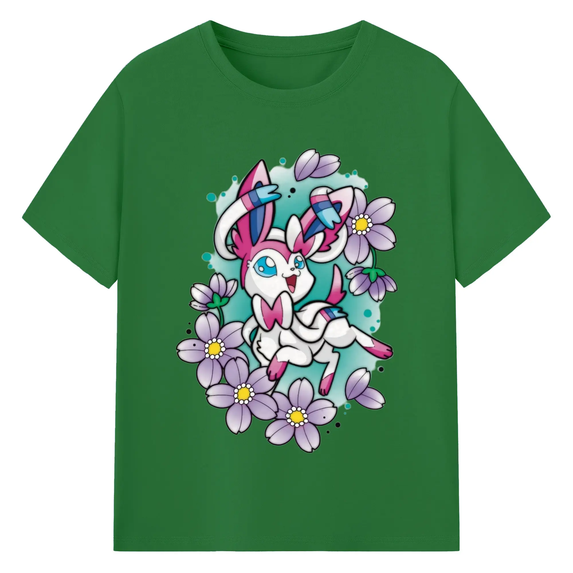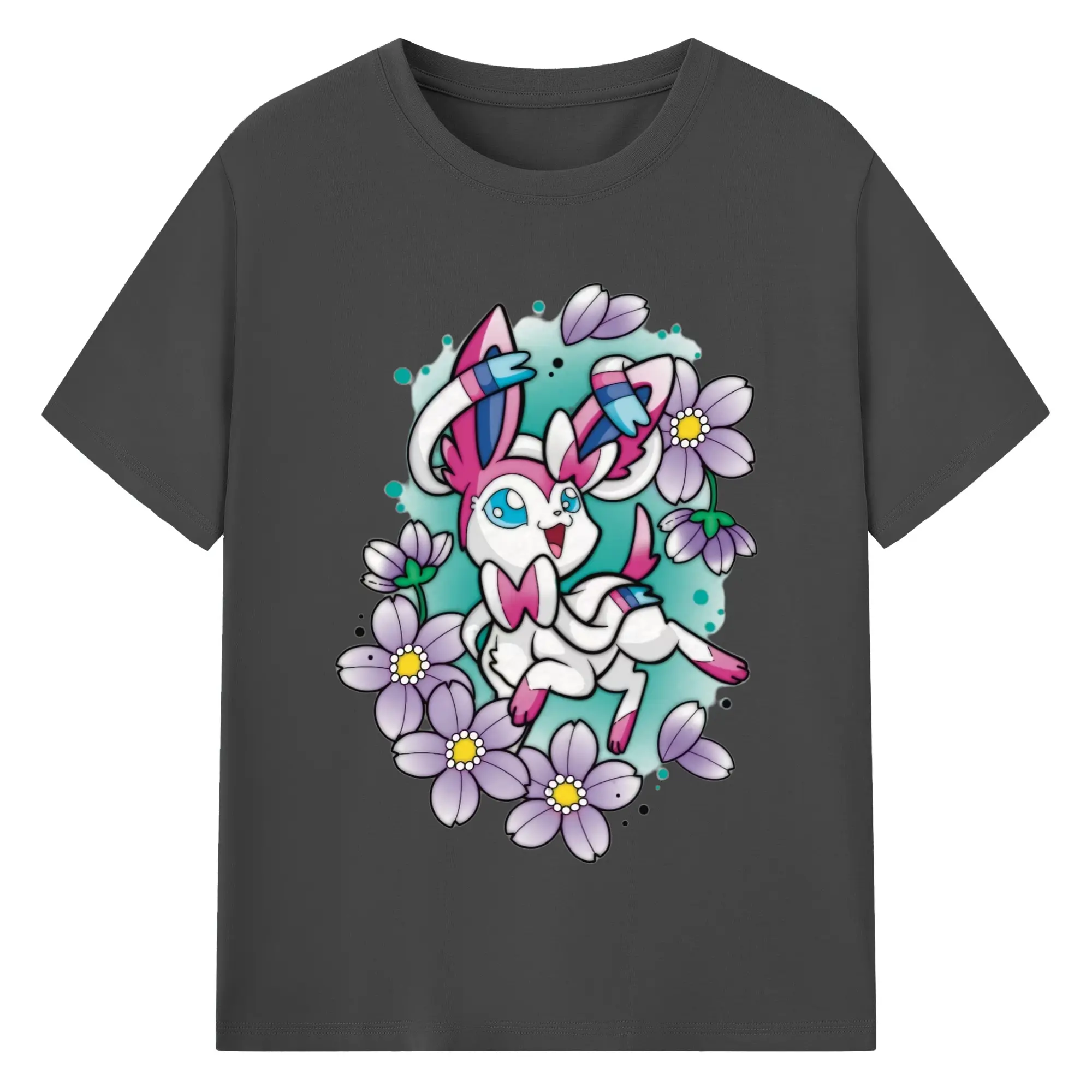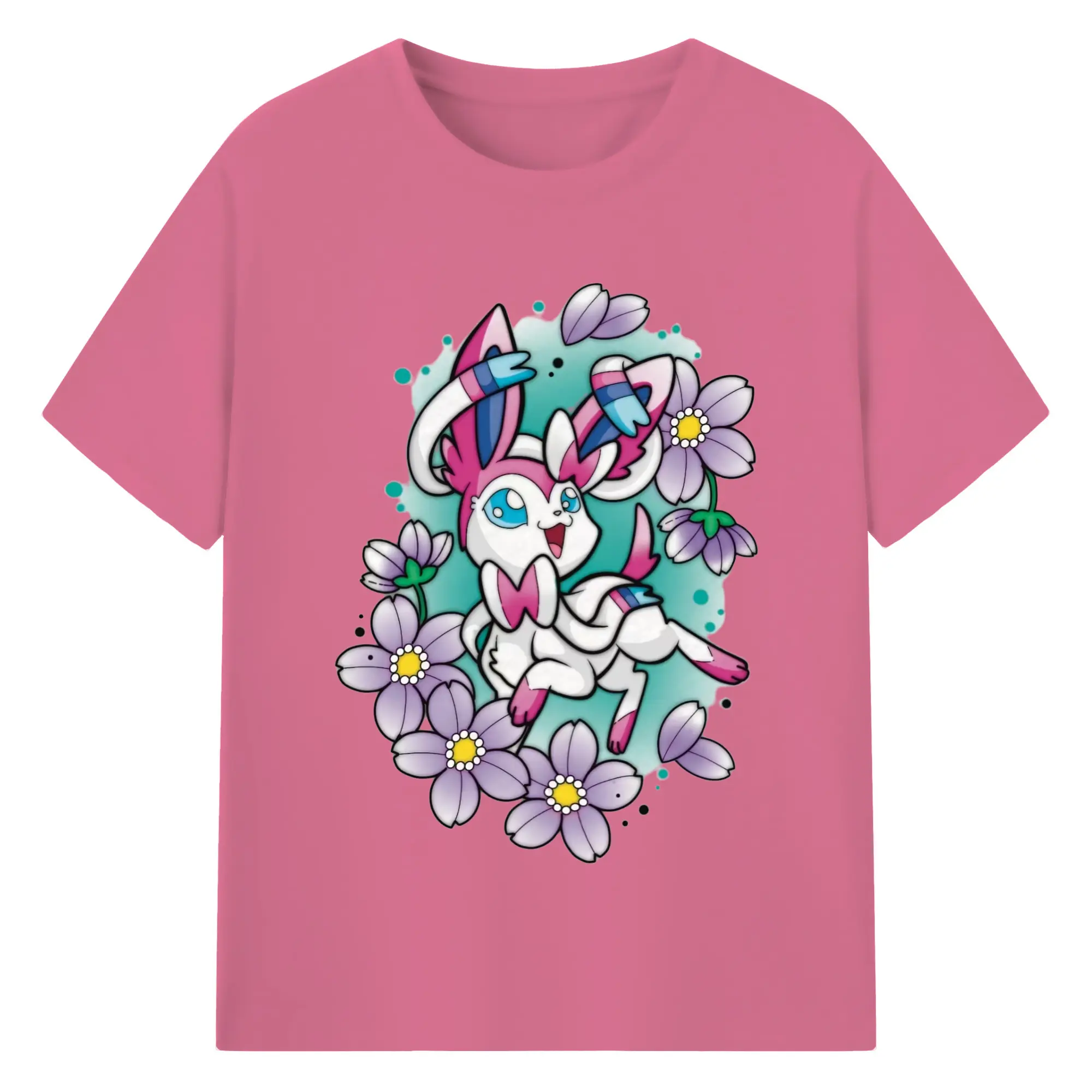 Pokemon sylveon art graphic shirt - 180g Cotton T-Shirt With Front Heat Transfer Print – Soft, Lightweight, Fitted Design – Comfortable Casual Wear For Sports & Everyday Use