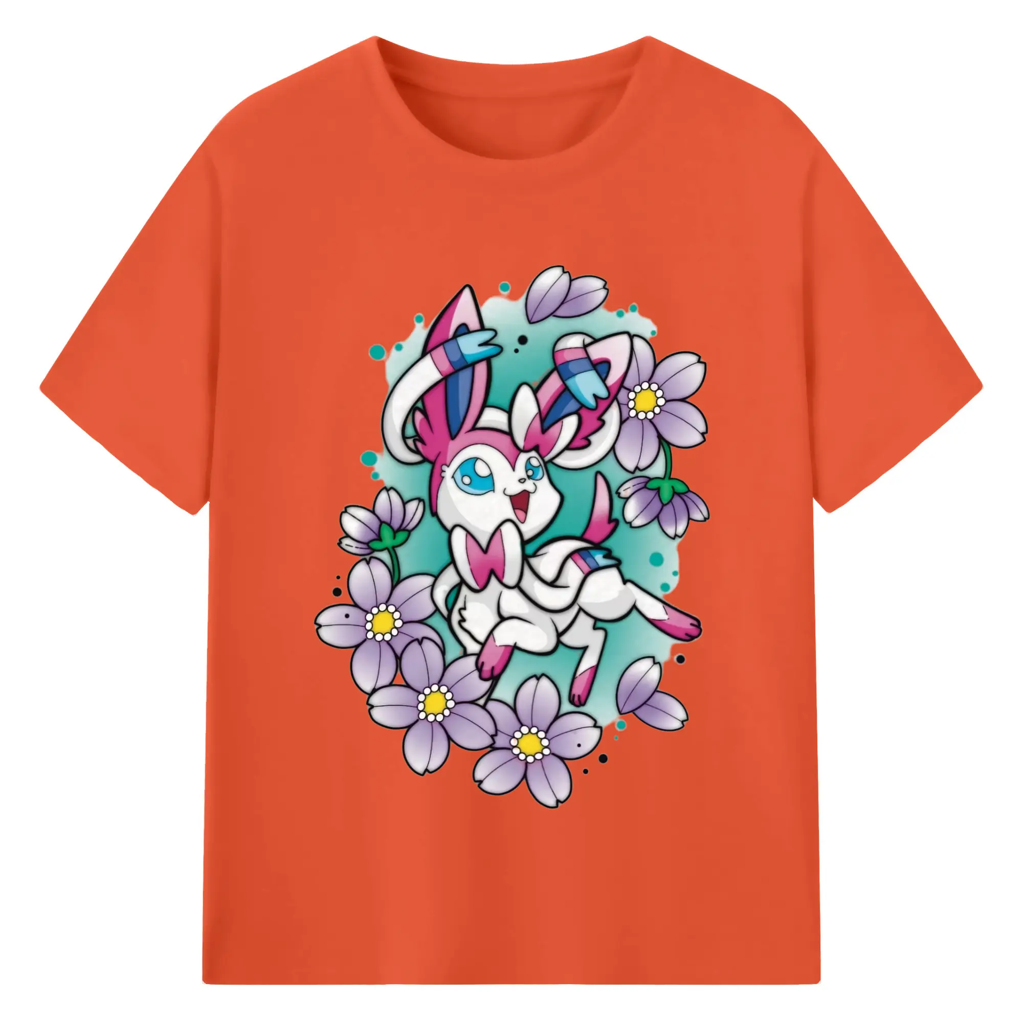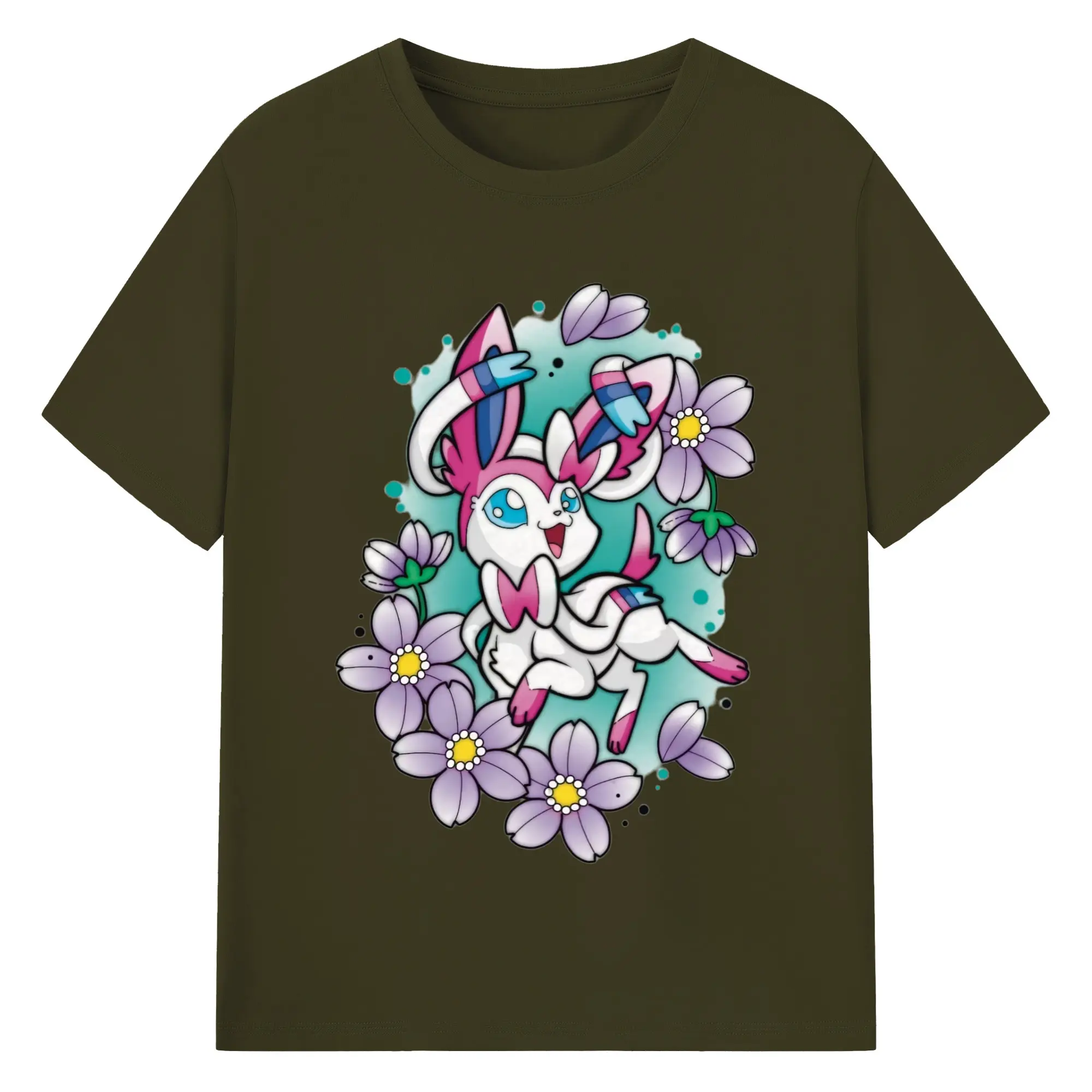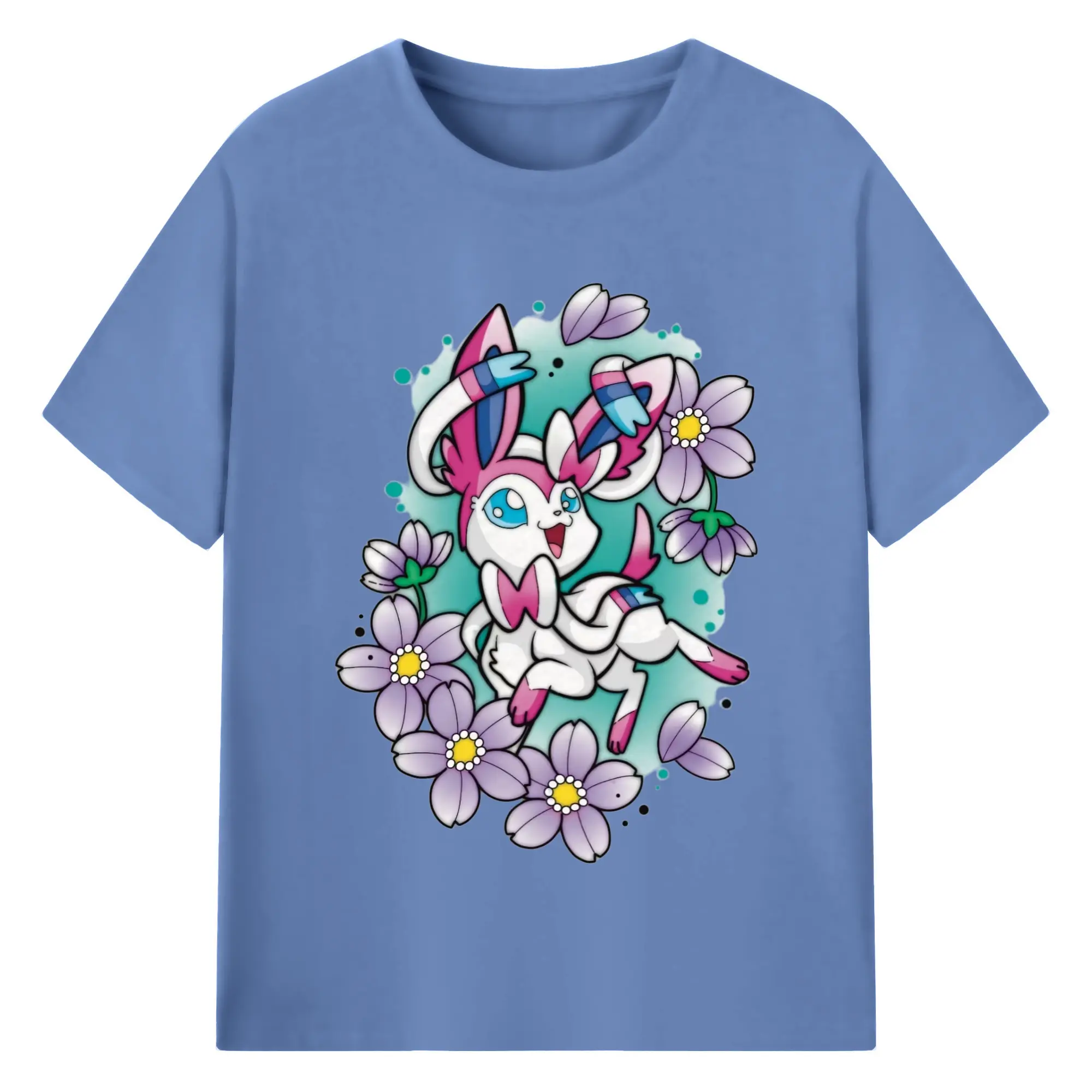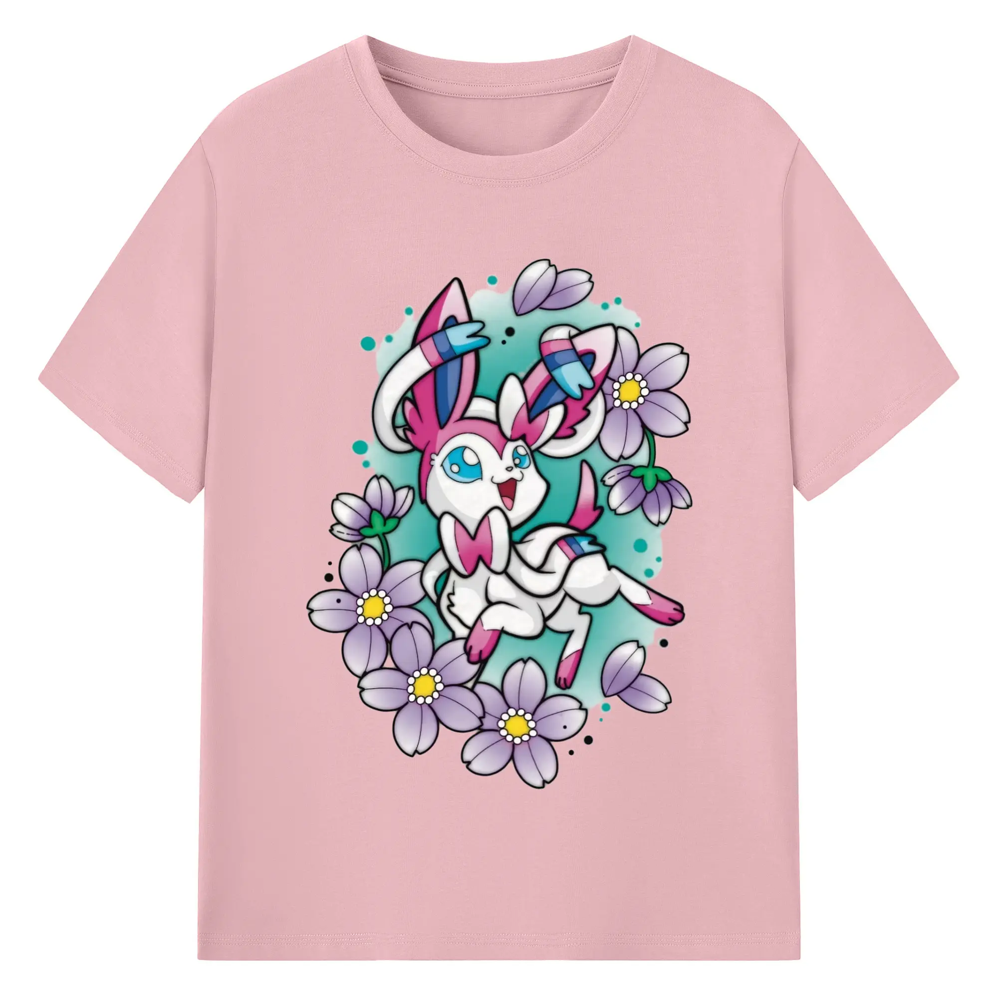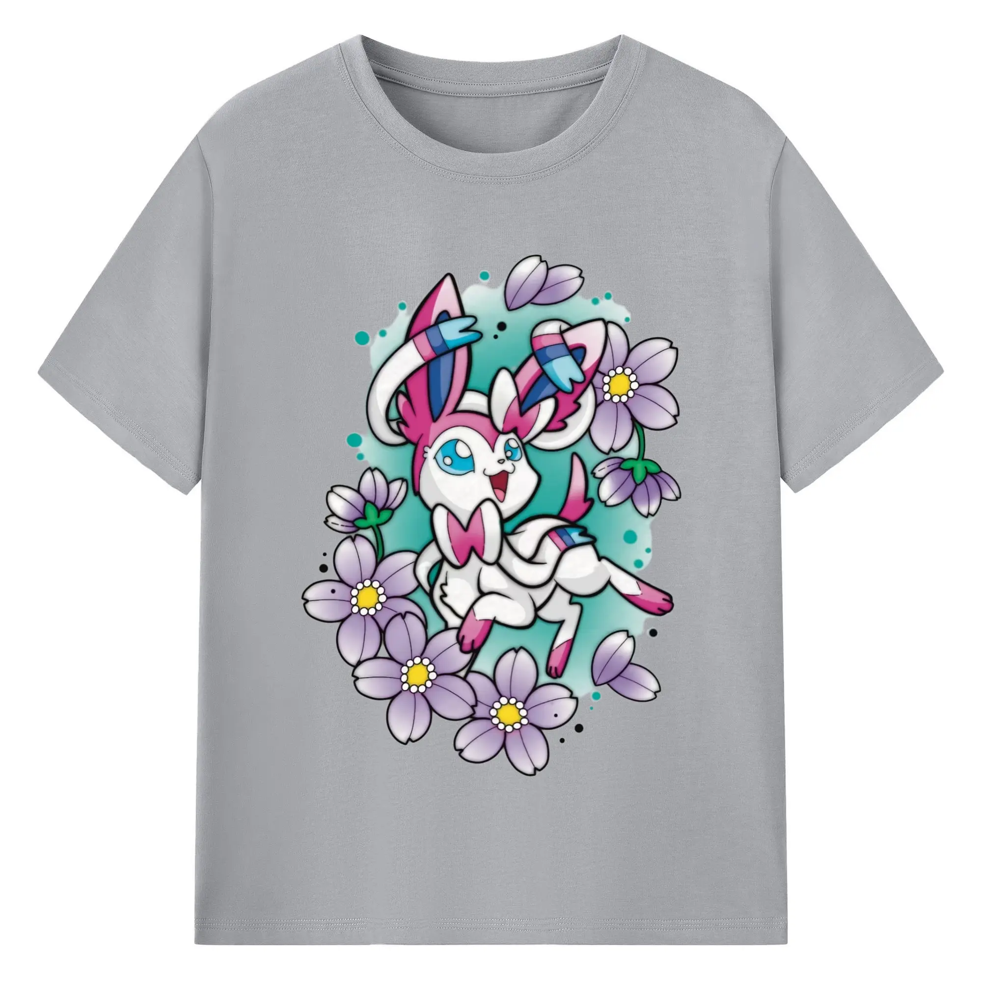 Pokemon sylveon art graphic shirt - 180g Cotton T-Shirt With Front Heat Transfer Print – Soft, Lightweight, Fitted Design – Comfortable Casual Wear For Sports & Everyday Use