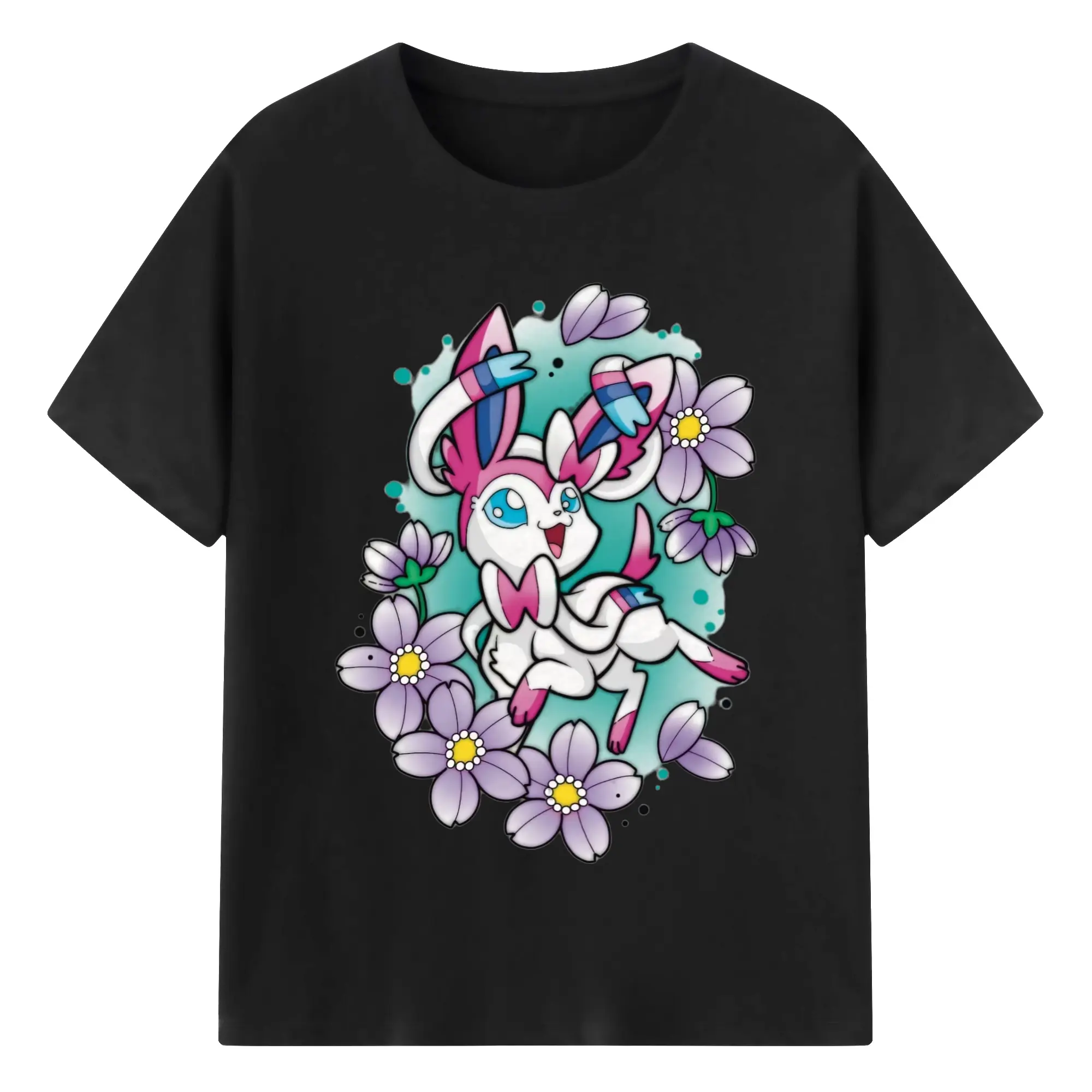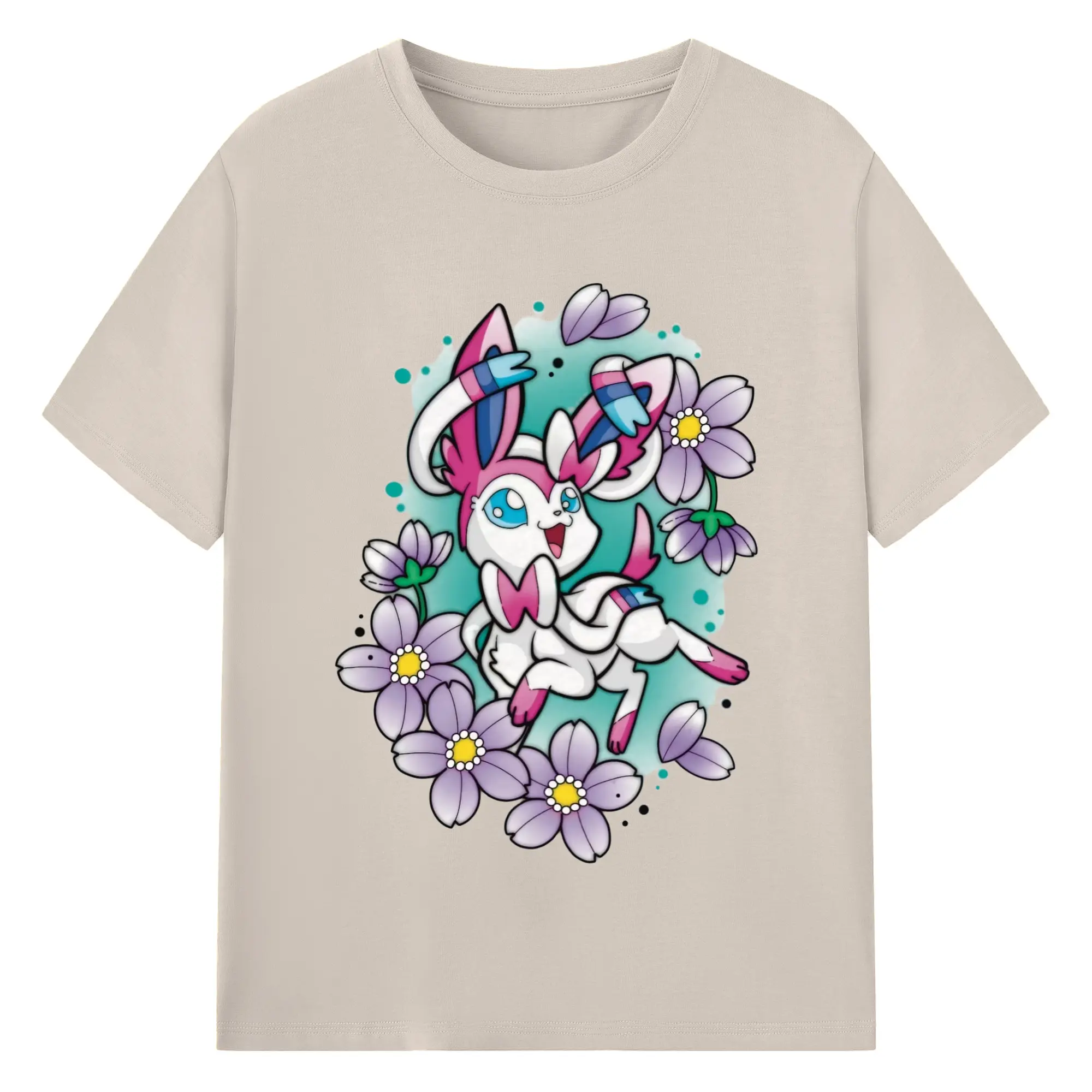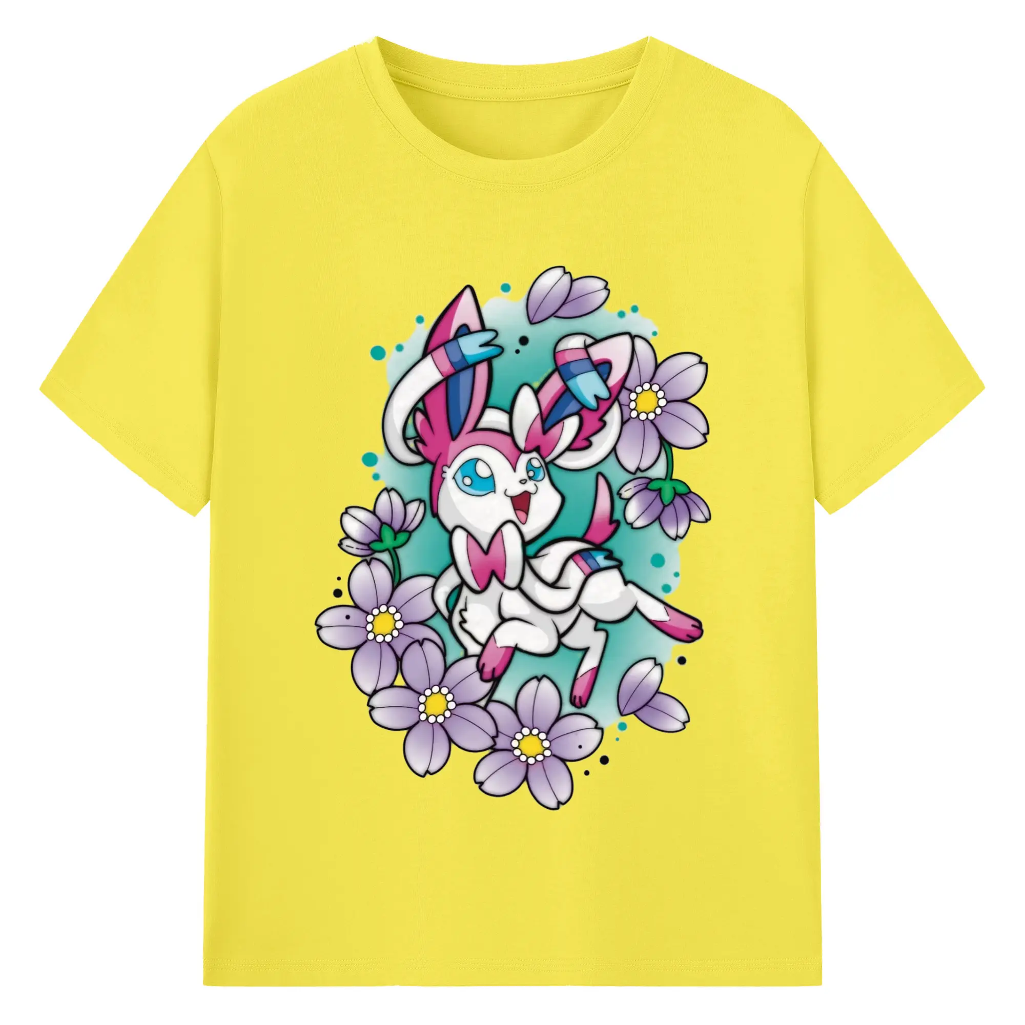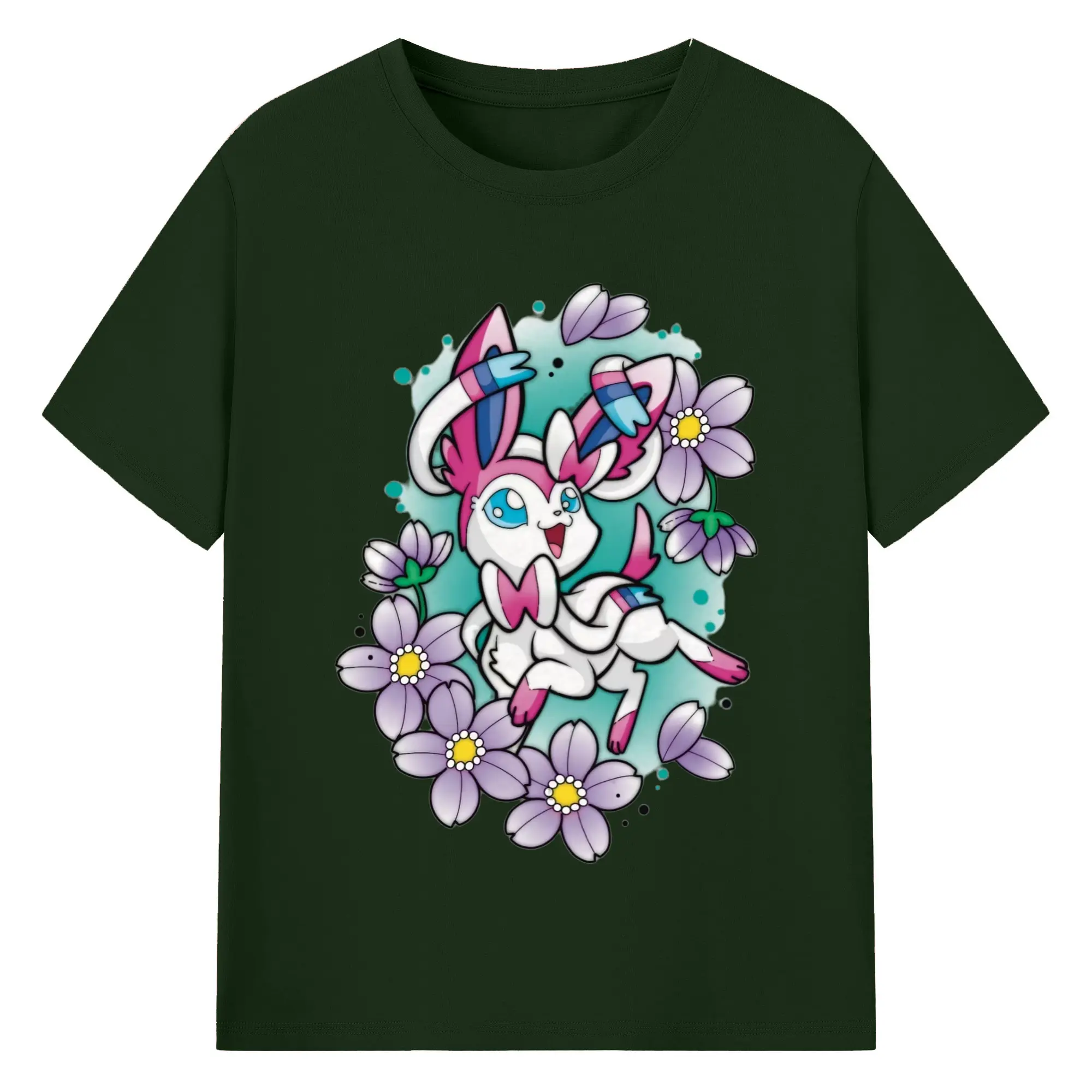Pokemon sylveon art graphic shirt - 180g Cotton T-Shirt With Front Heat Transfer Print – Soft, Lightweight, Fitted Design – Comfortable Casual Wear For Sports & Everyday Use