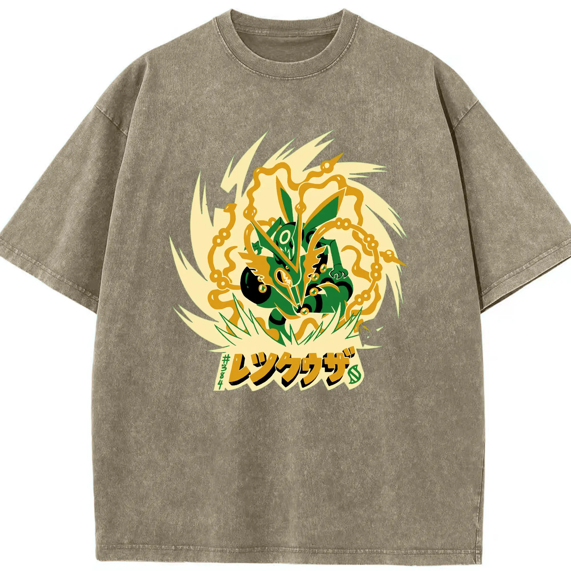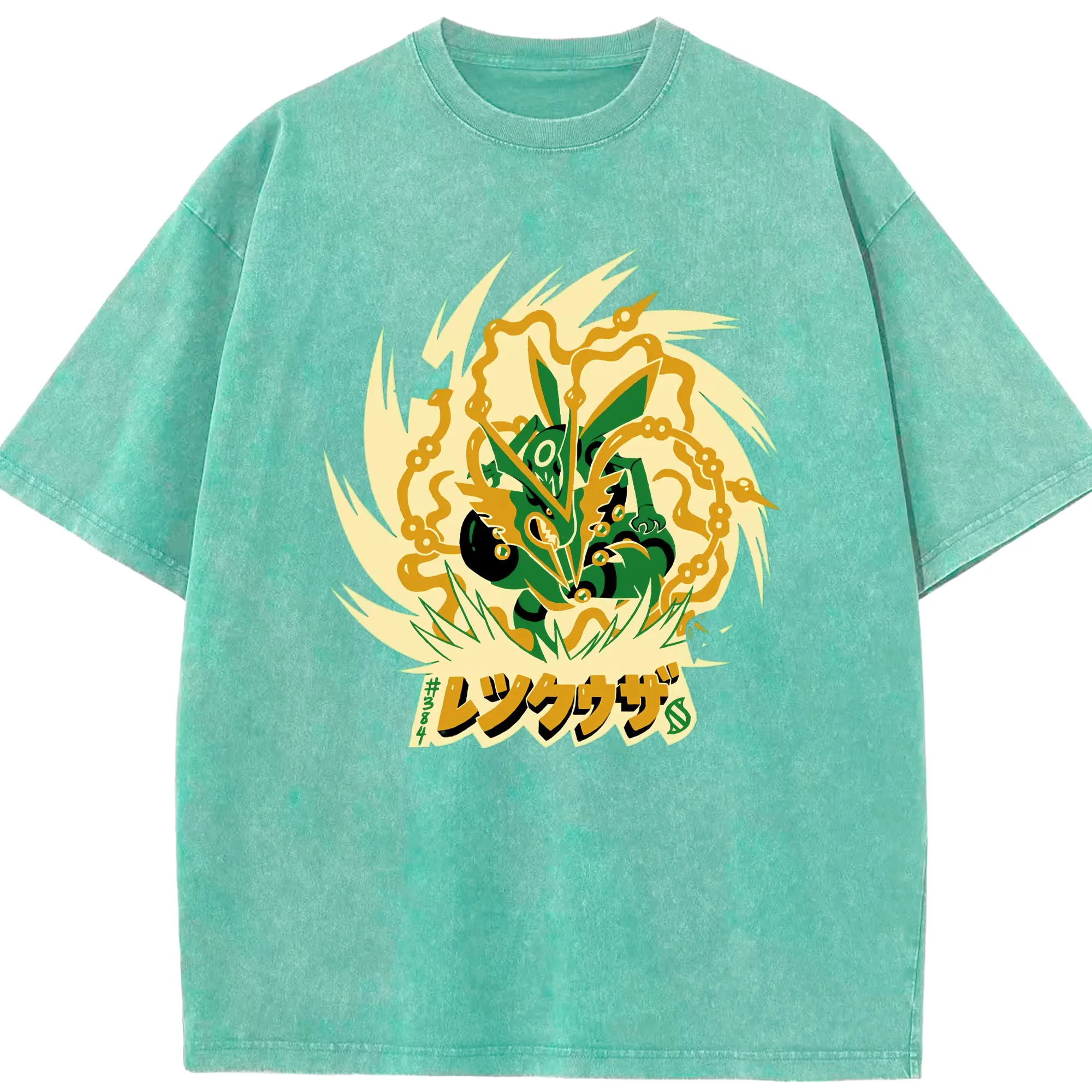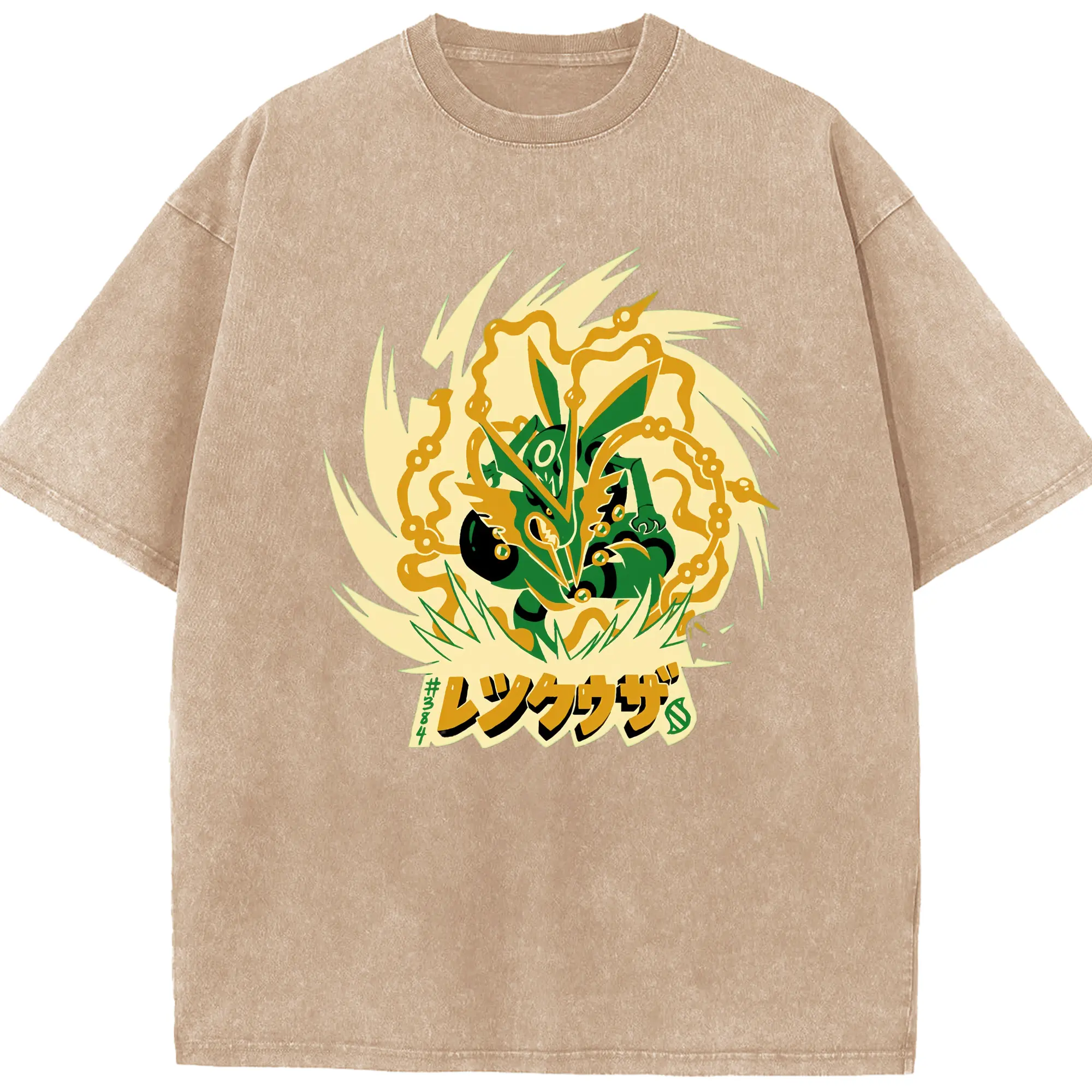 Retro rayquaza t shirt - Washed Vintage Look 230g Cotton Oversized T-Shirt With Front Heat Transfer Print – Soft, Lightweight, Stylish Fit – Comfortable Casual Wear For Sports & Everyday Use