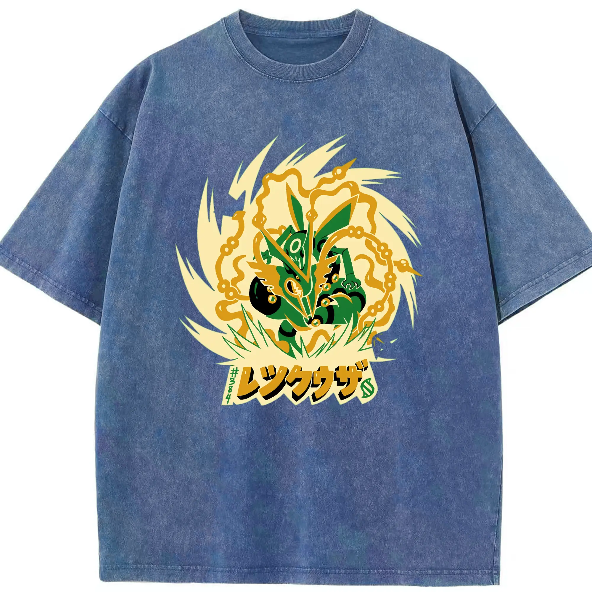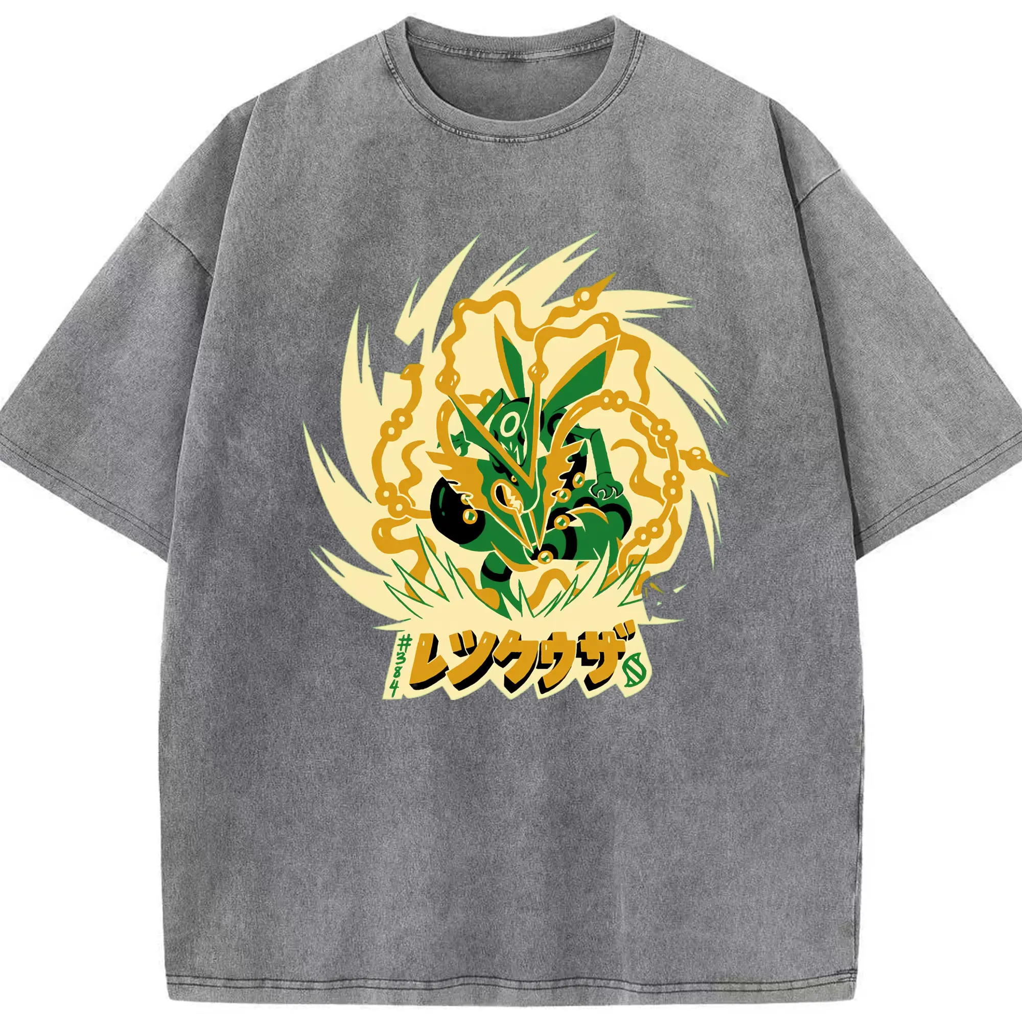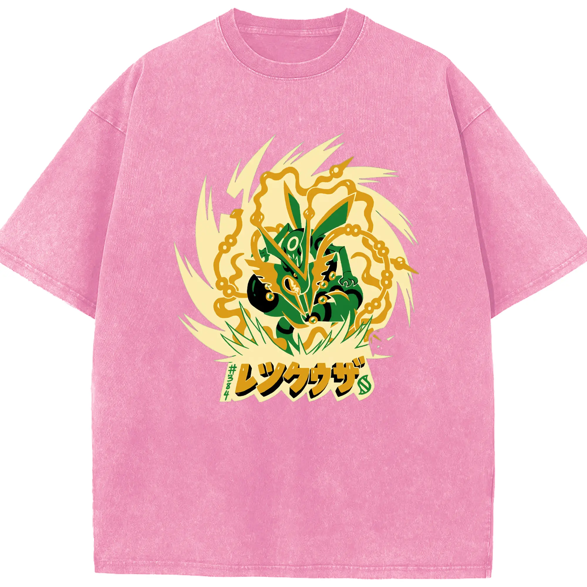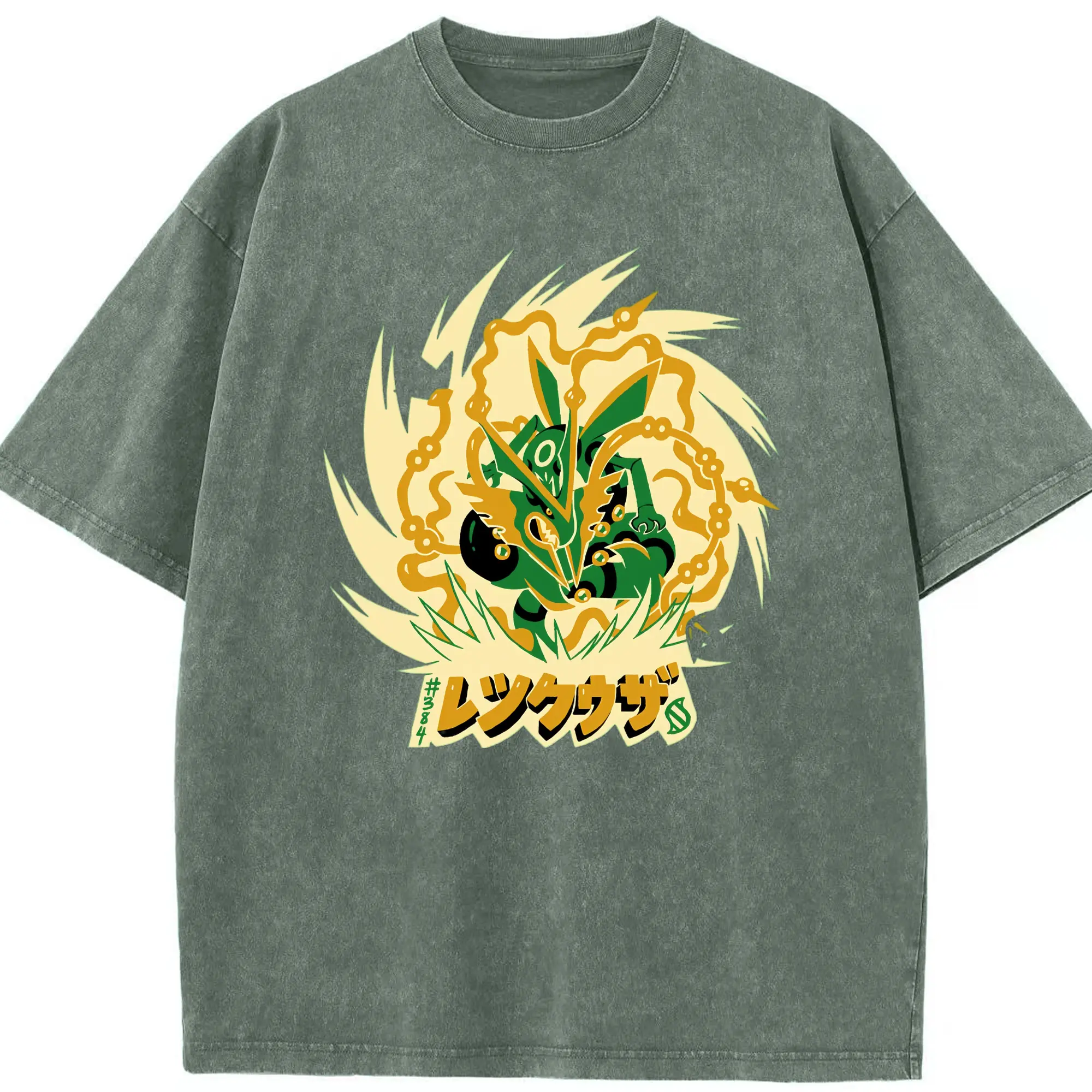 Retro rayquaza t shirt - Washed Vintage Look 230g Cotton Oversized T-Shirt With Front Heat Transfer Print – Soft, Lightweight, Stylish Fit – Comfortable Casual Wear For Sports & Everyday Use