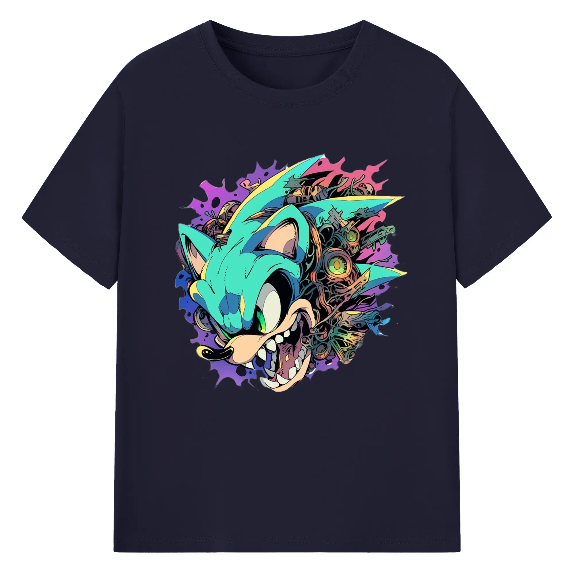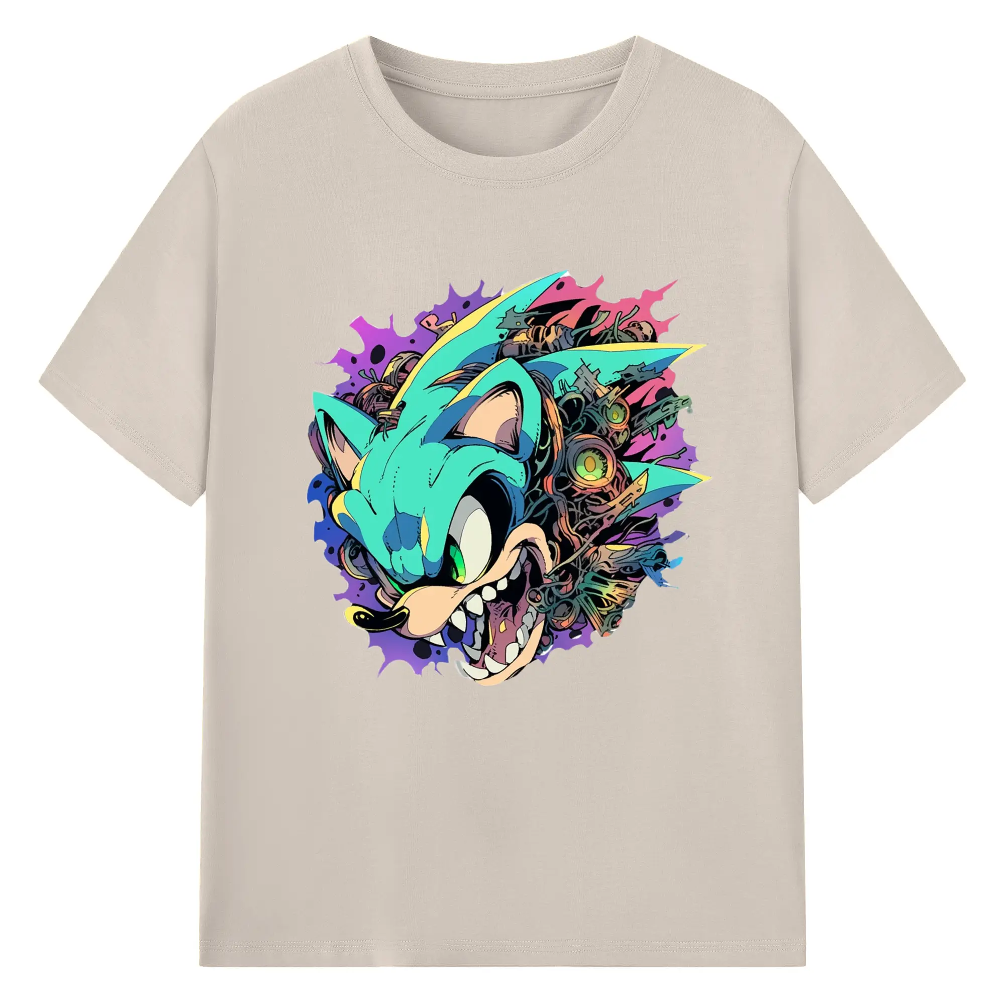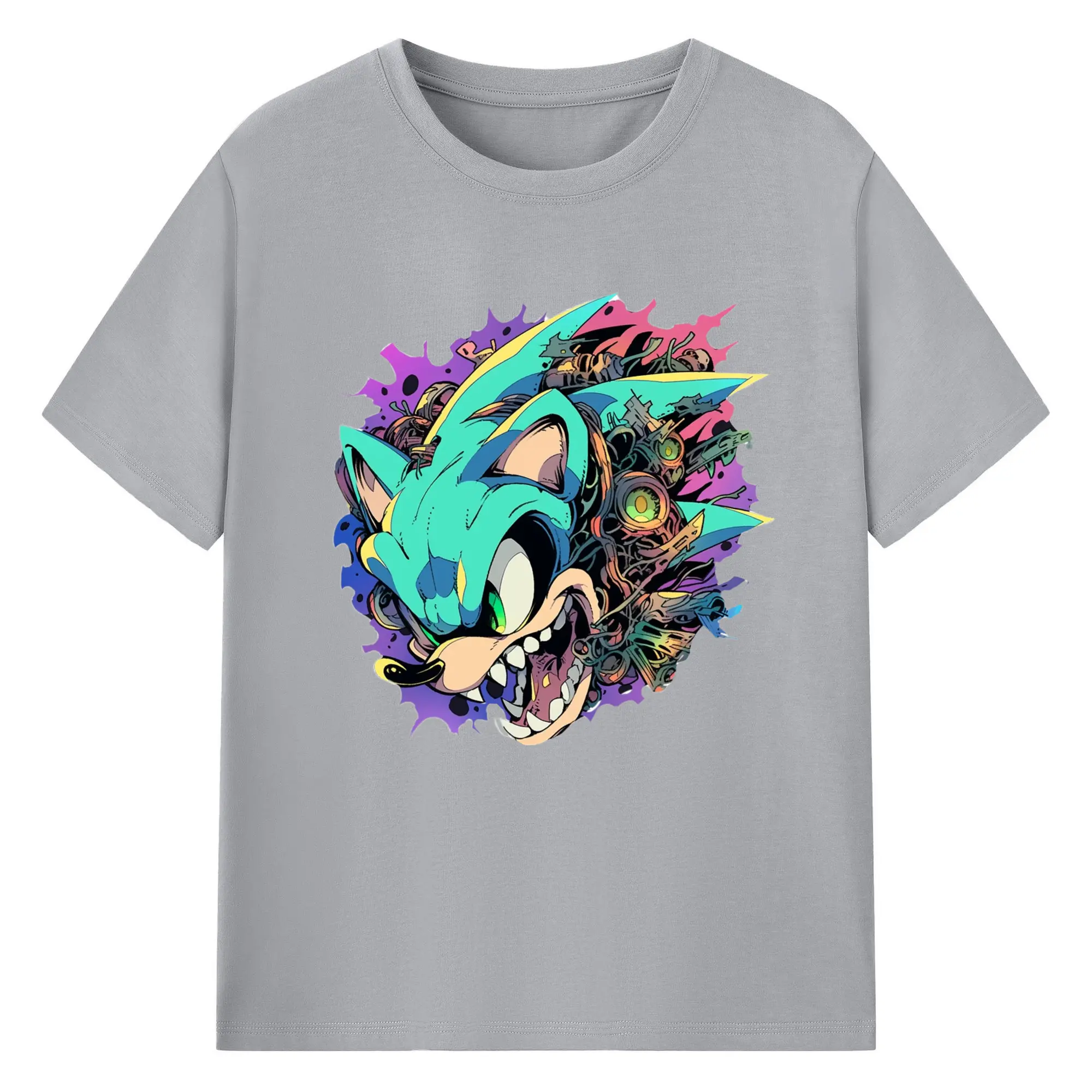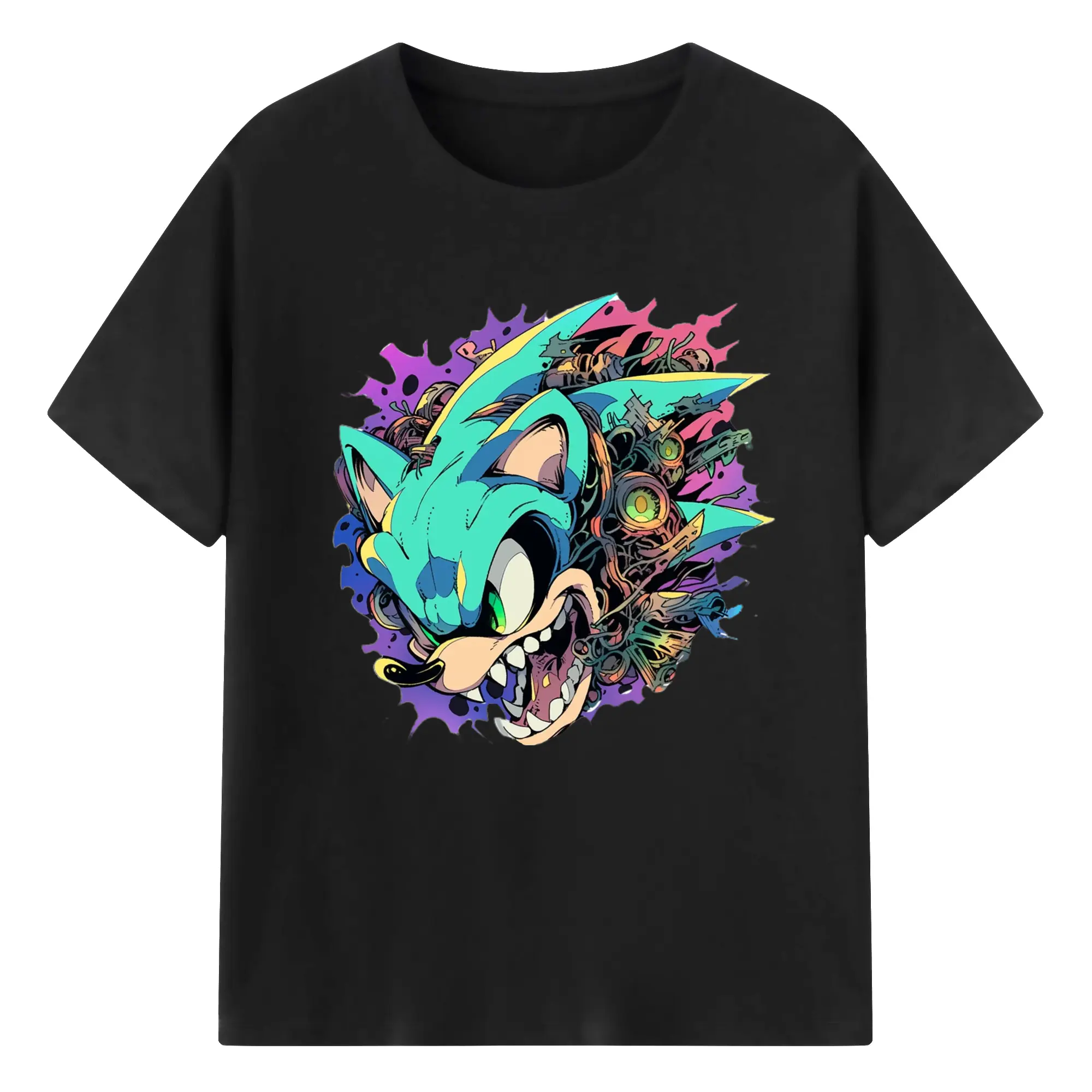 Sonic Collage Cyberpunk Graphic Tee - 180g Cotton T-Shirt With Front Heat Transfer Print – Soft, Lightweight, Fitted Design – Comfortable Casual Wear For Sports & Everyday Use