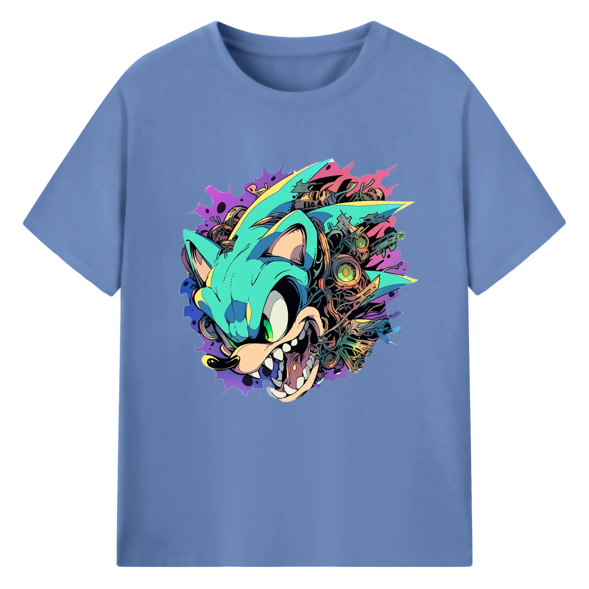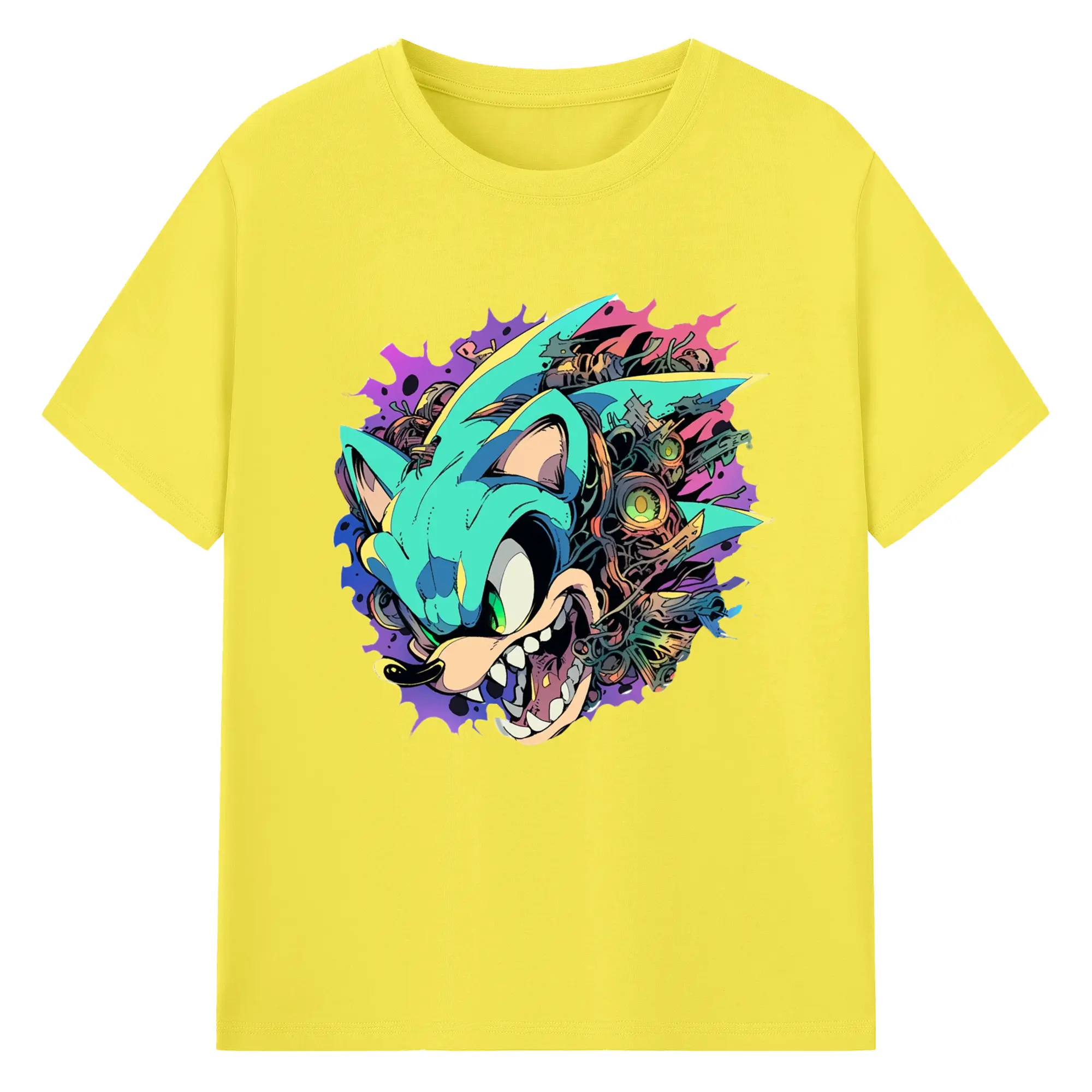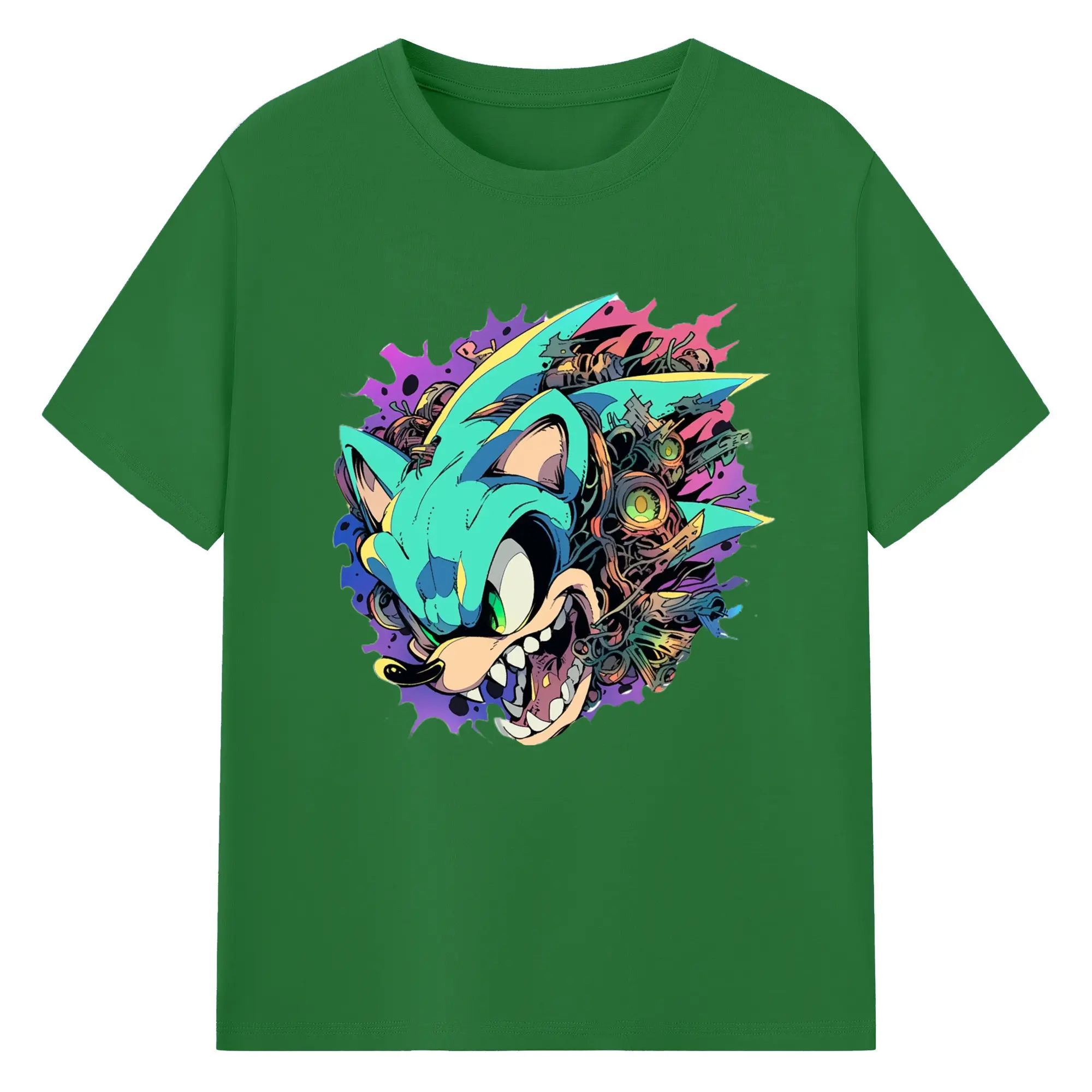 Sonic Collage Cyberpunk Graphic Tee - 180g Cotton T-Shirt With Front Heat Transfer Print – Soft, Lightweight, Fitted Design – Comfortable Casual Wear For Sports & Everyday Use