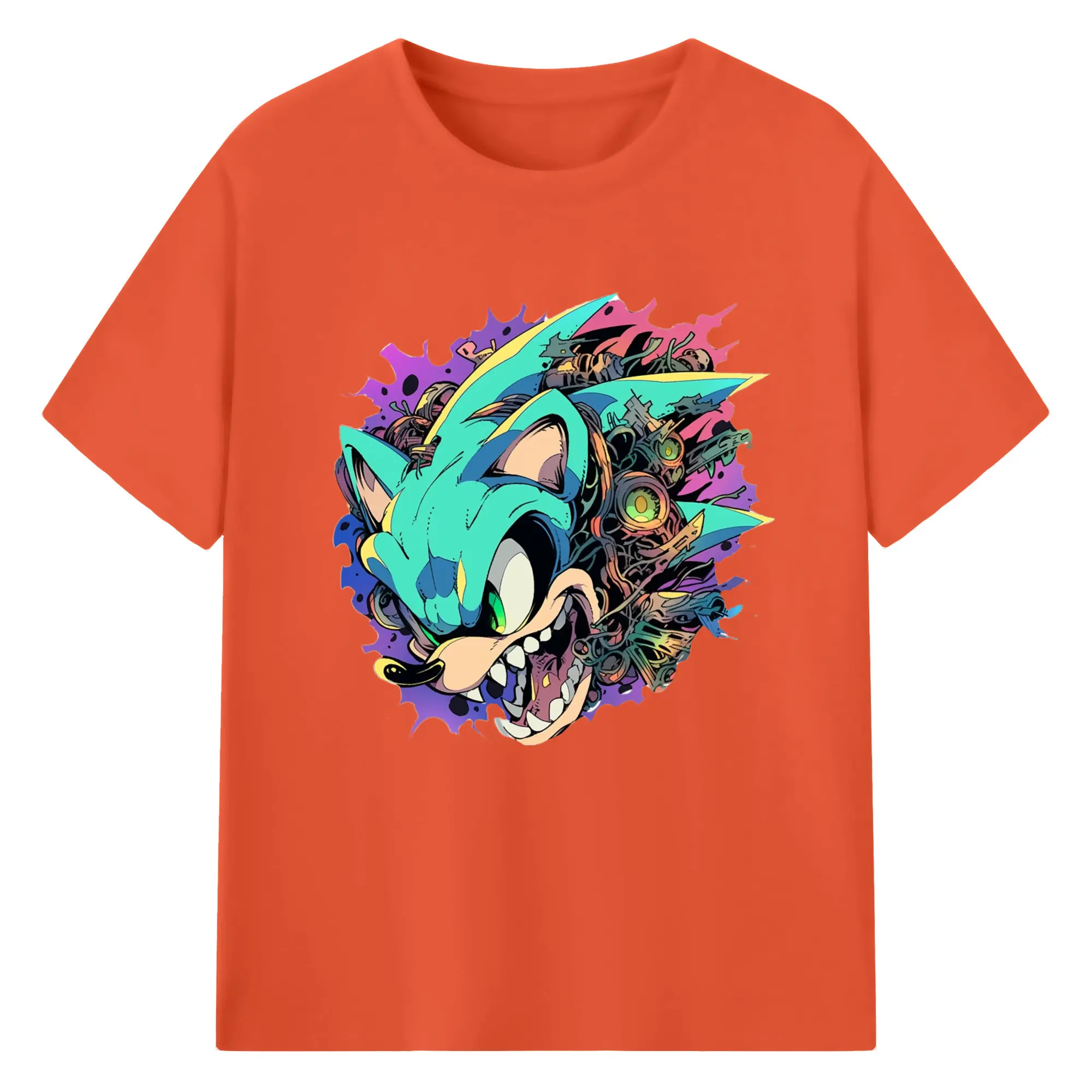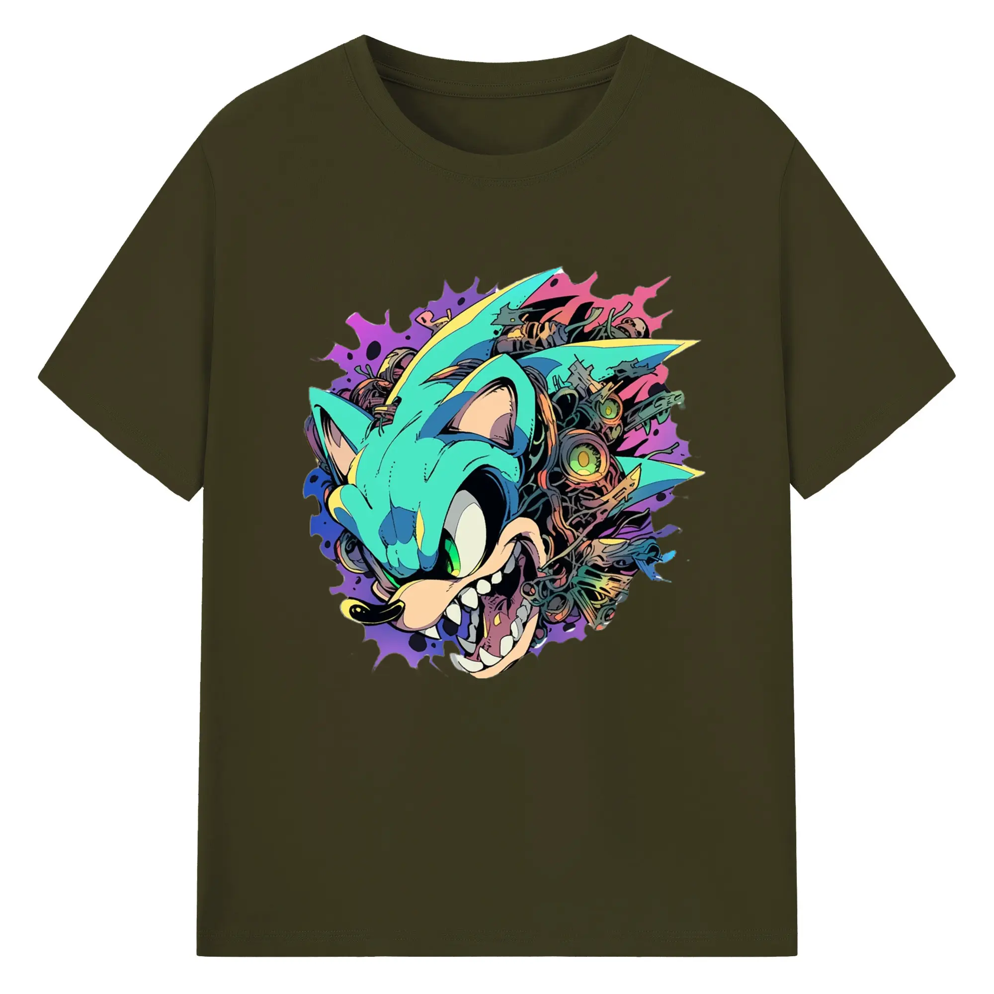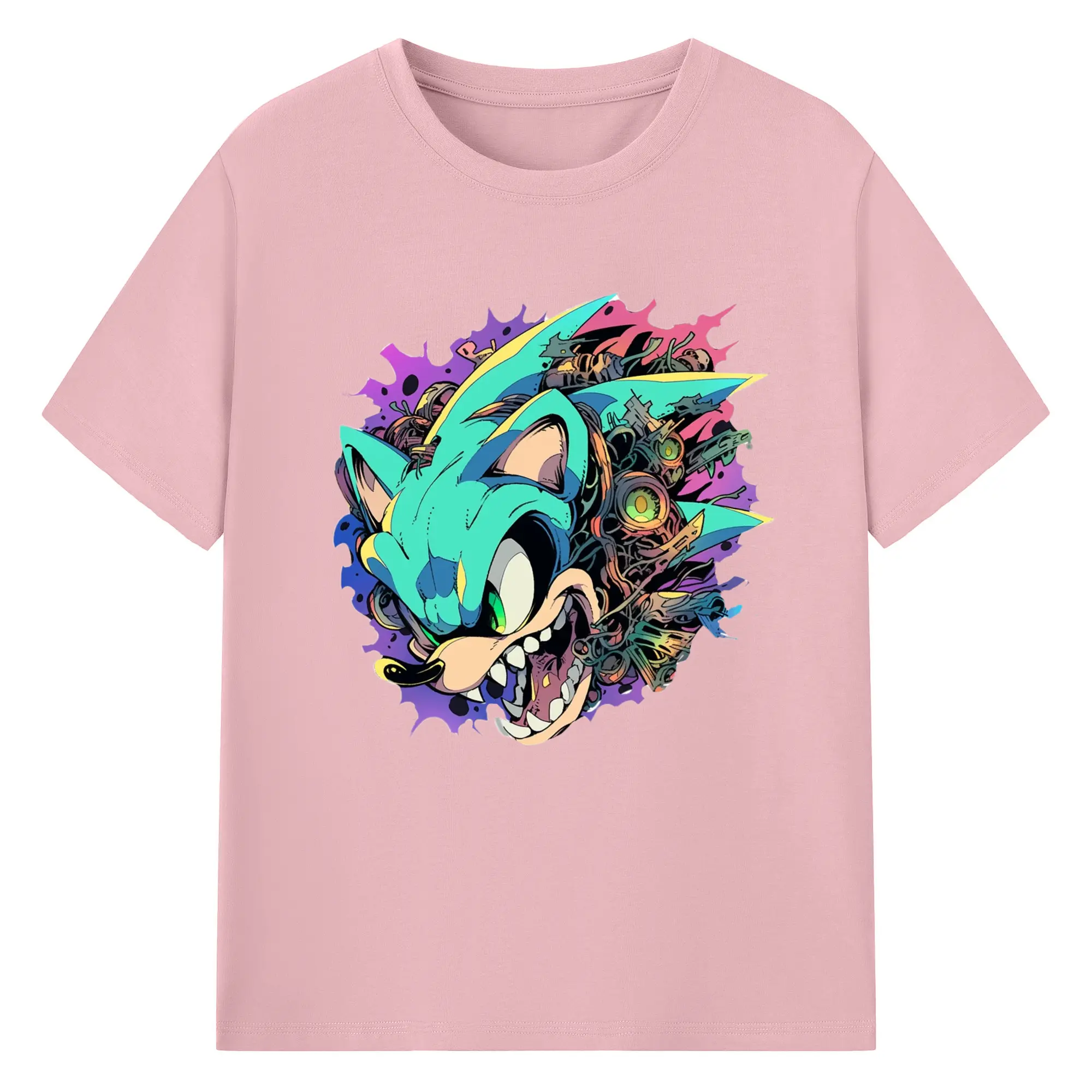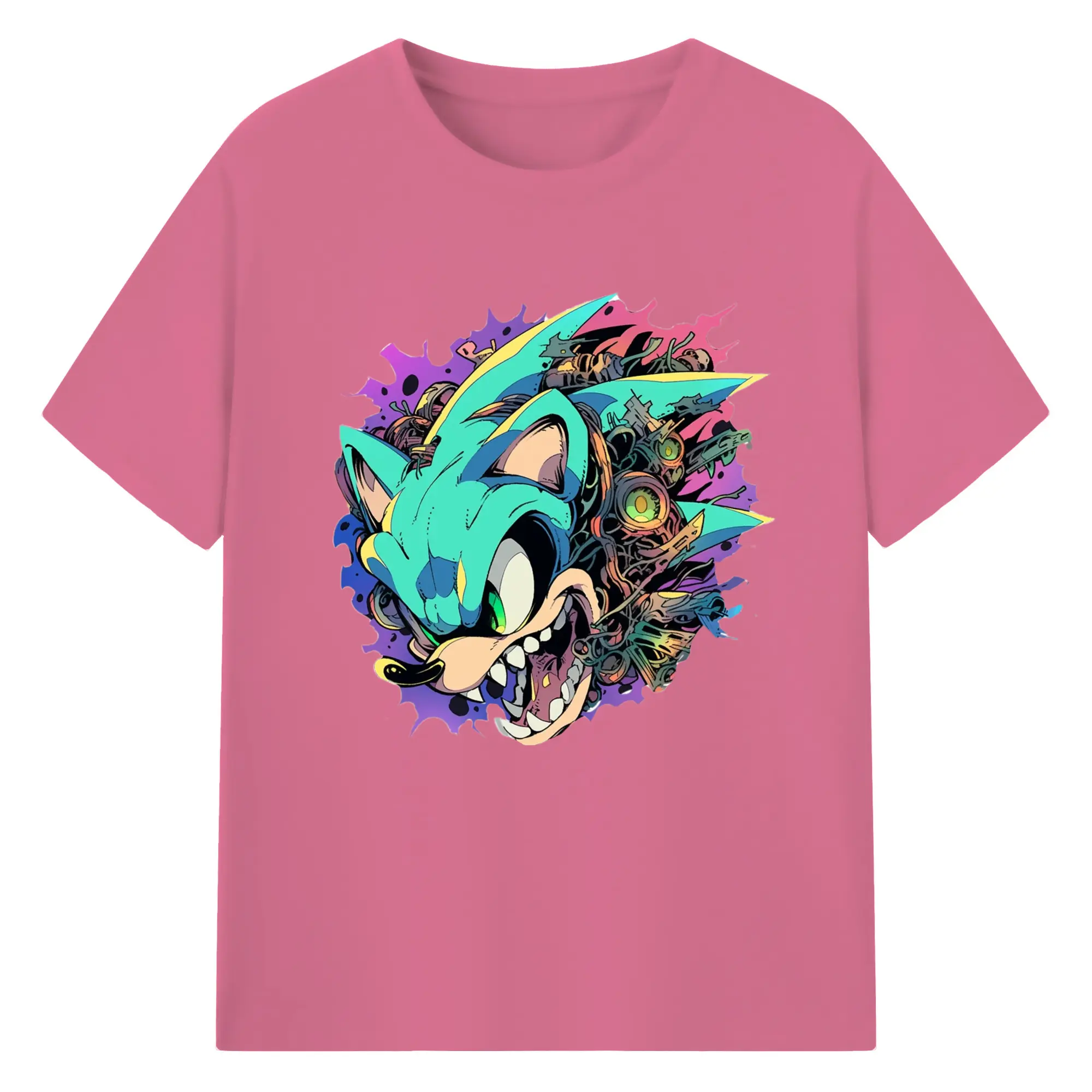 Sonic Collage Cyberpunk Graphic Tee - 180g Cotton T-Shirt With Front Heat Transfer Print – Soft, Lightweight, Fitted Design – Comfortable Casual Wear For Sports & Everyday Use