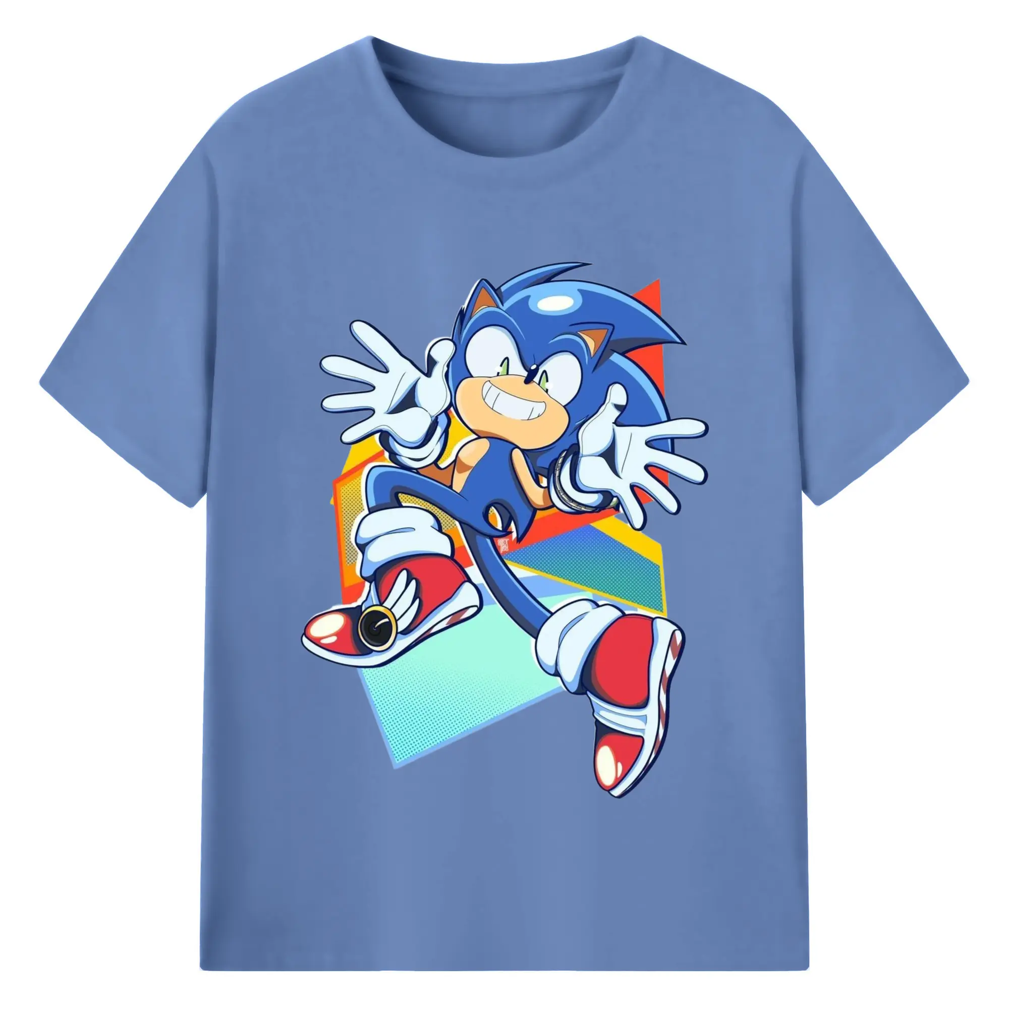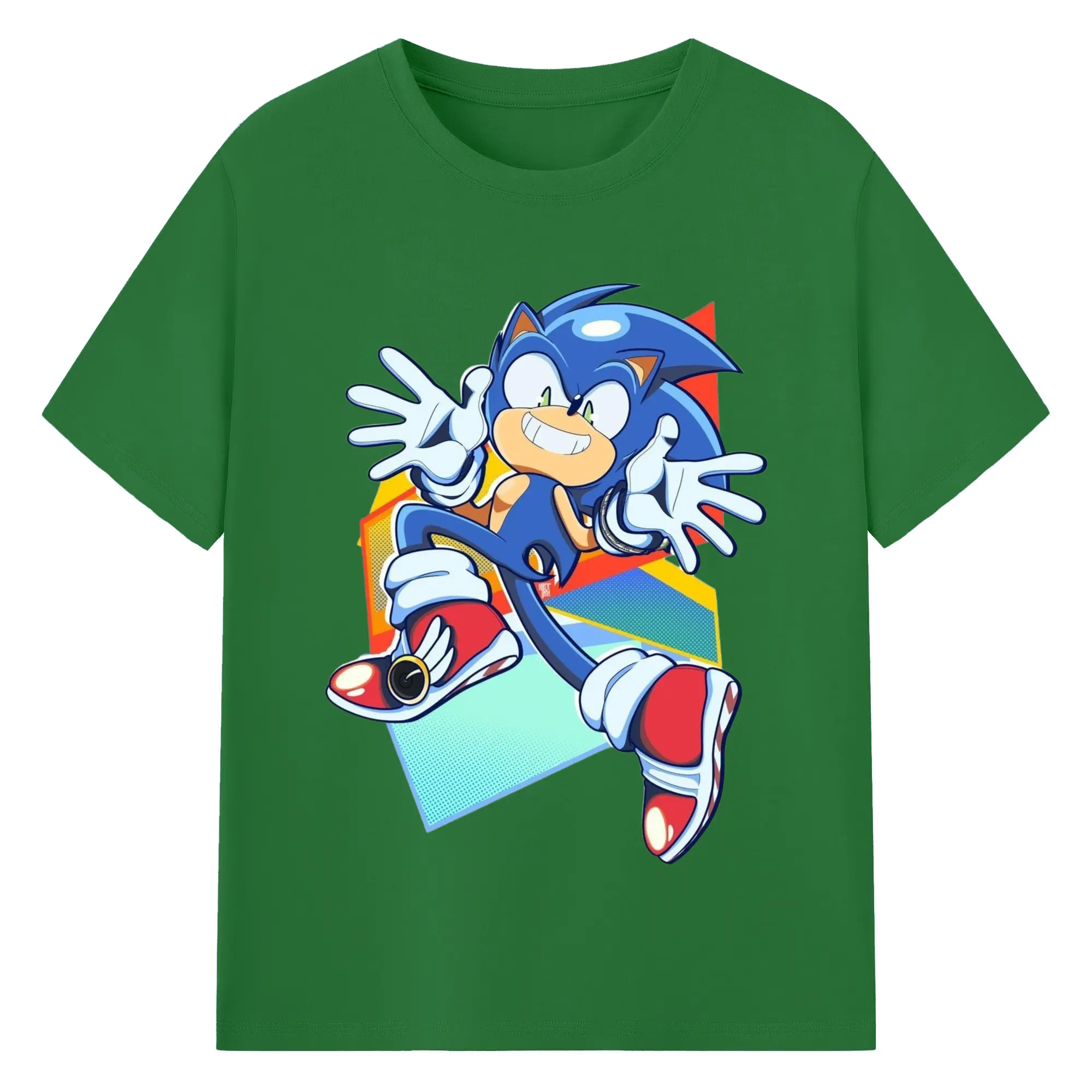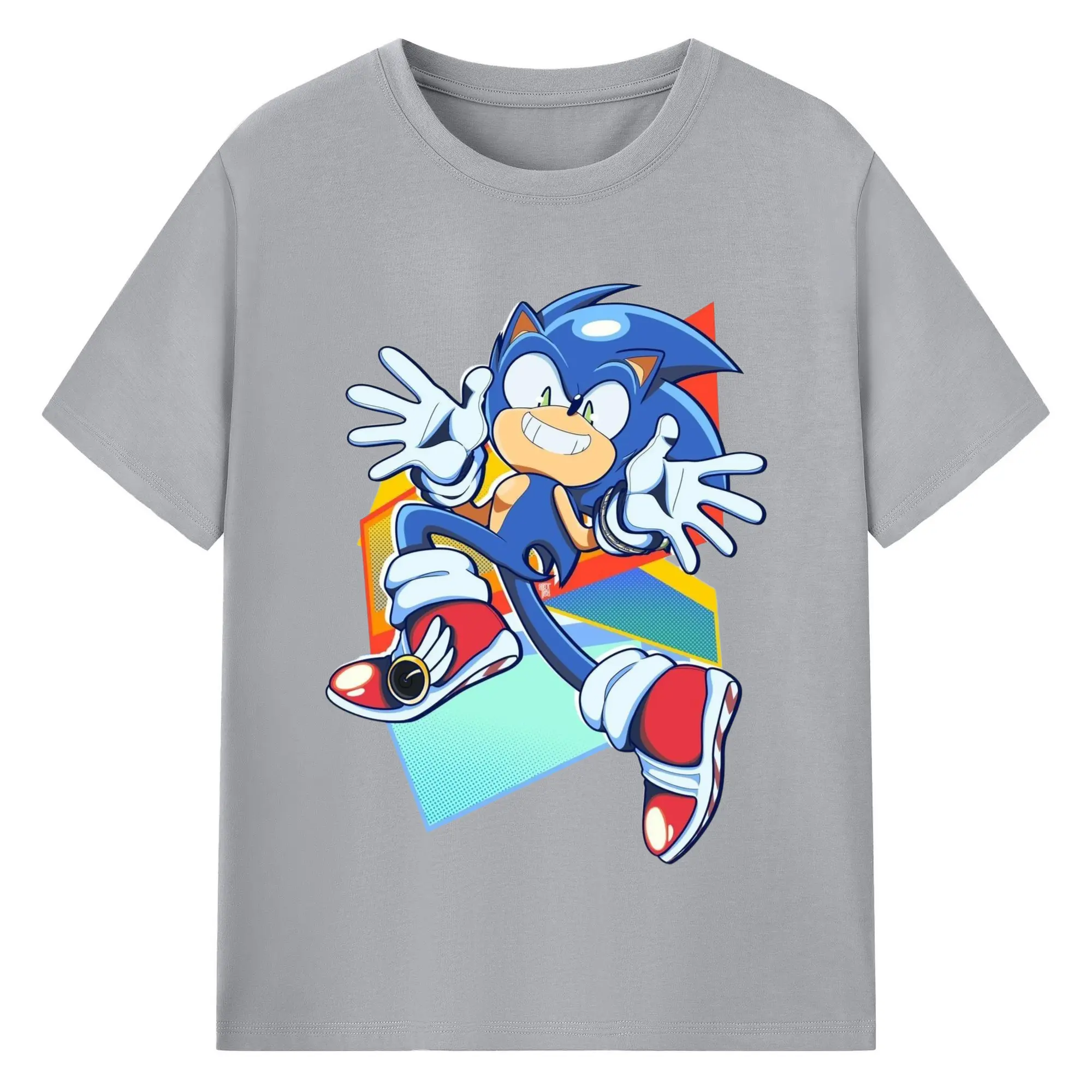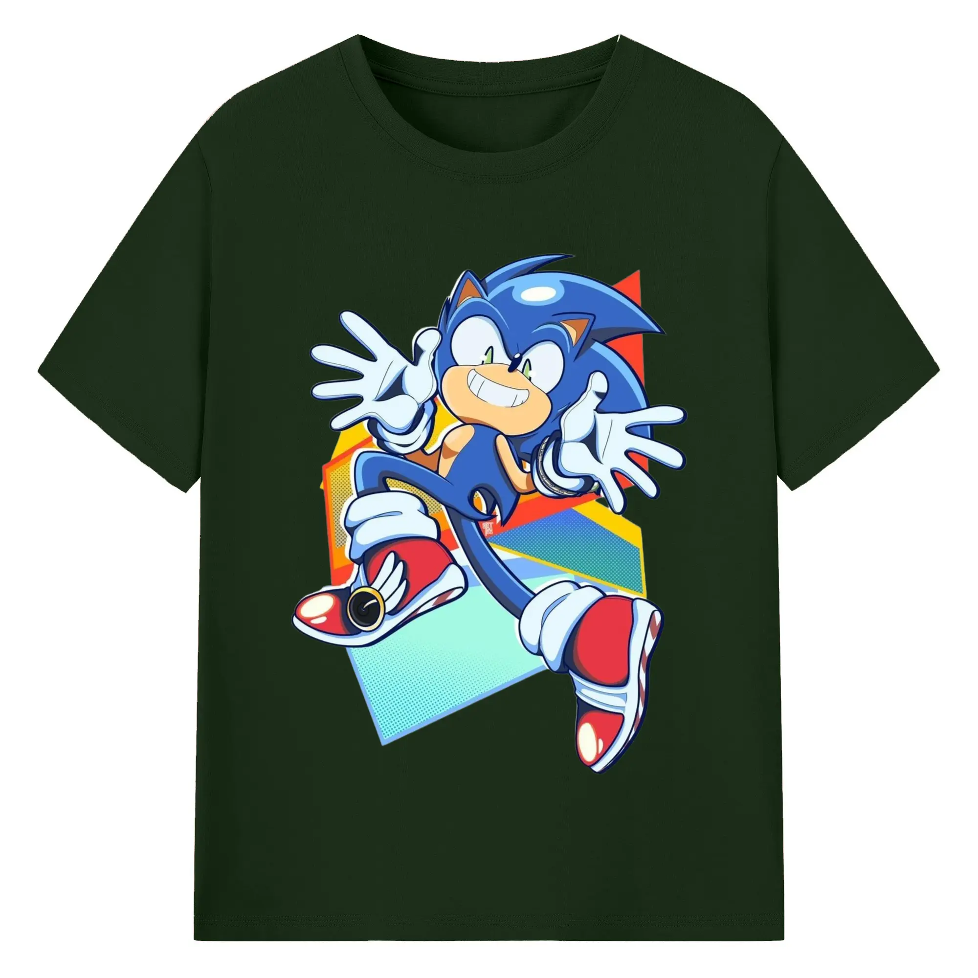 Sonic Collage Graphic Tee - 180g Cotton T-Shirt With Front Heat Transfer Print – Soft, Lightweight, Fitted Design – Comfortable Casual Wear For Sports & Everyday Use