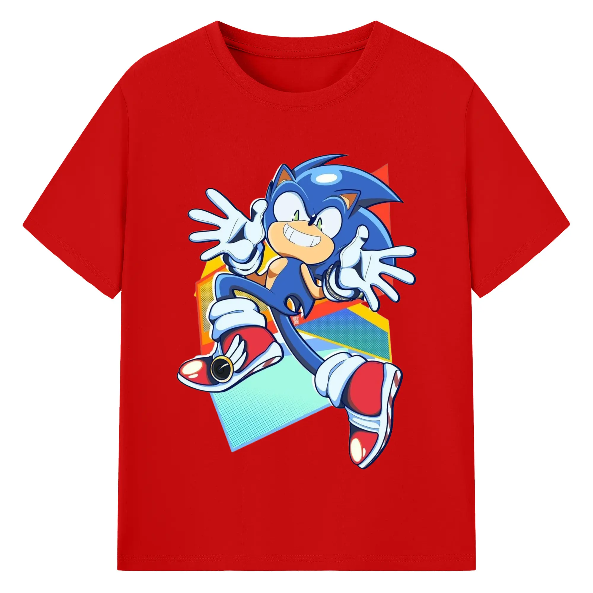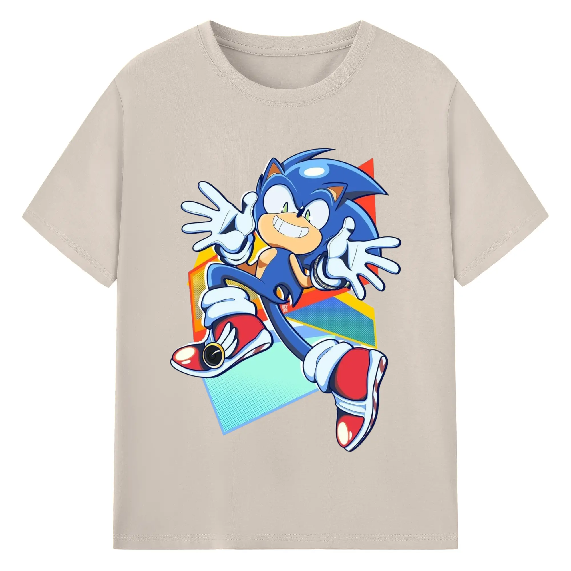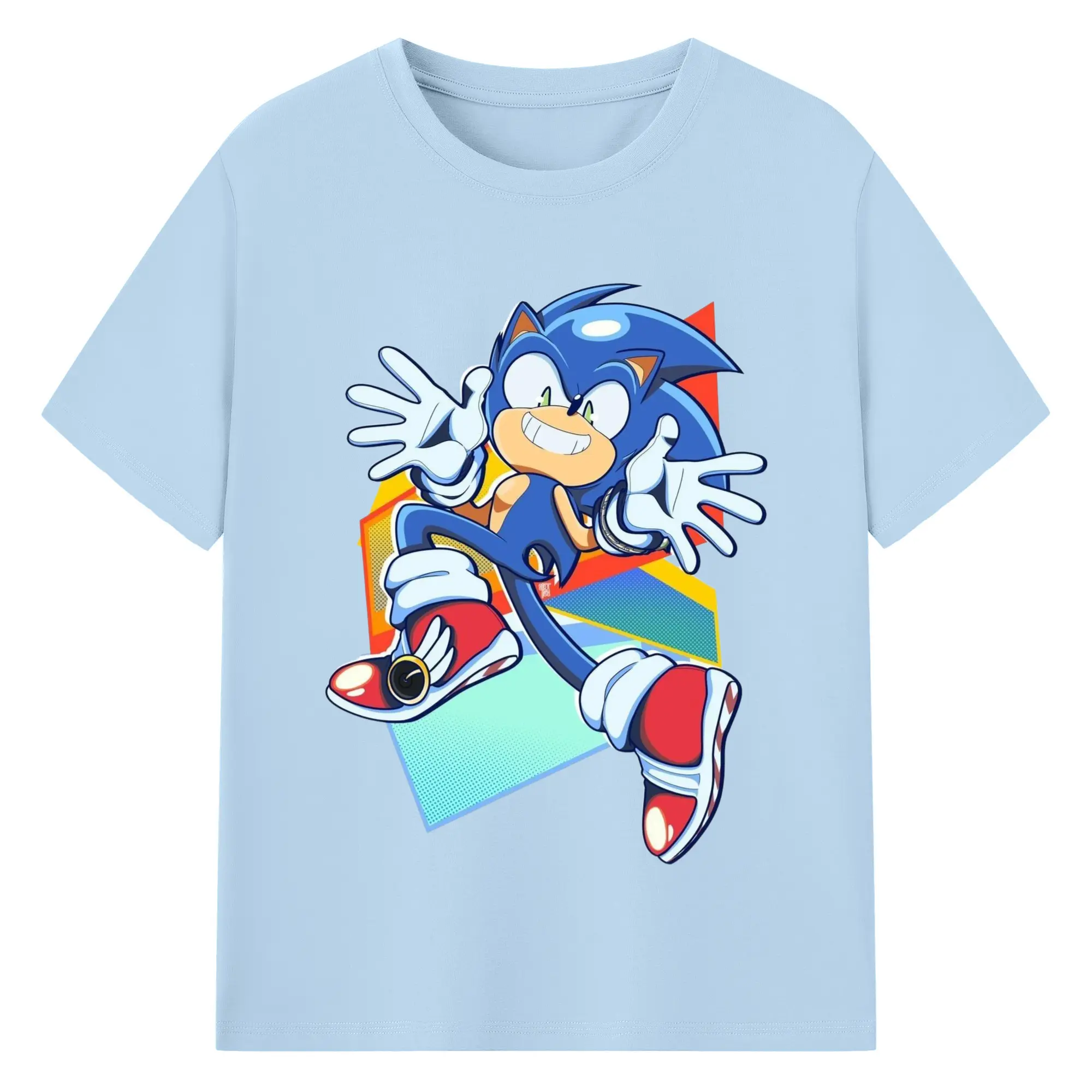 Sonic Collage Graphic Tee - 180g Cotton T-Shirt With Front Heat Transfer Print – Soft, Lightweight, Fitted Design – Comfortable Casual Wear For Sports & Everyday Use