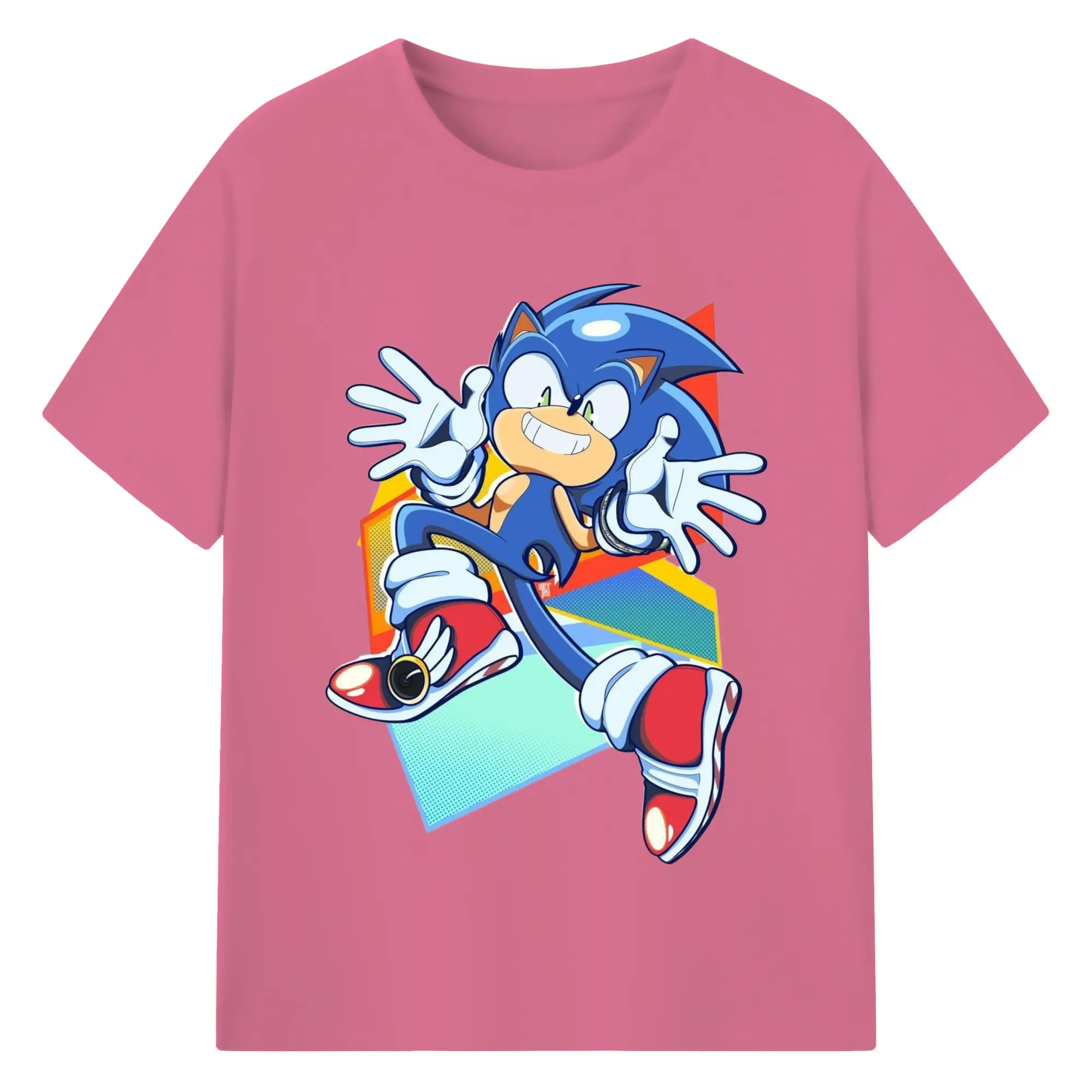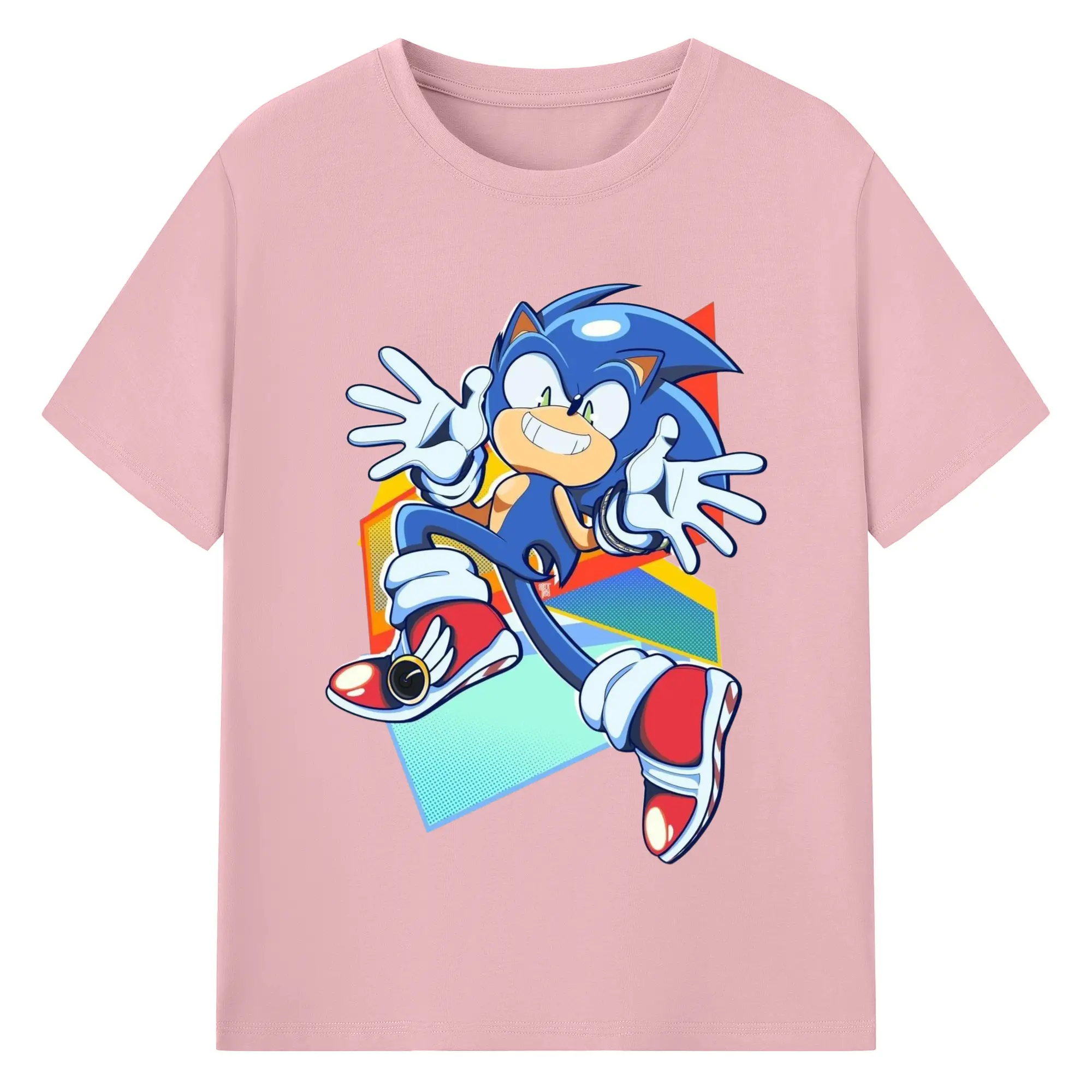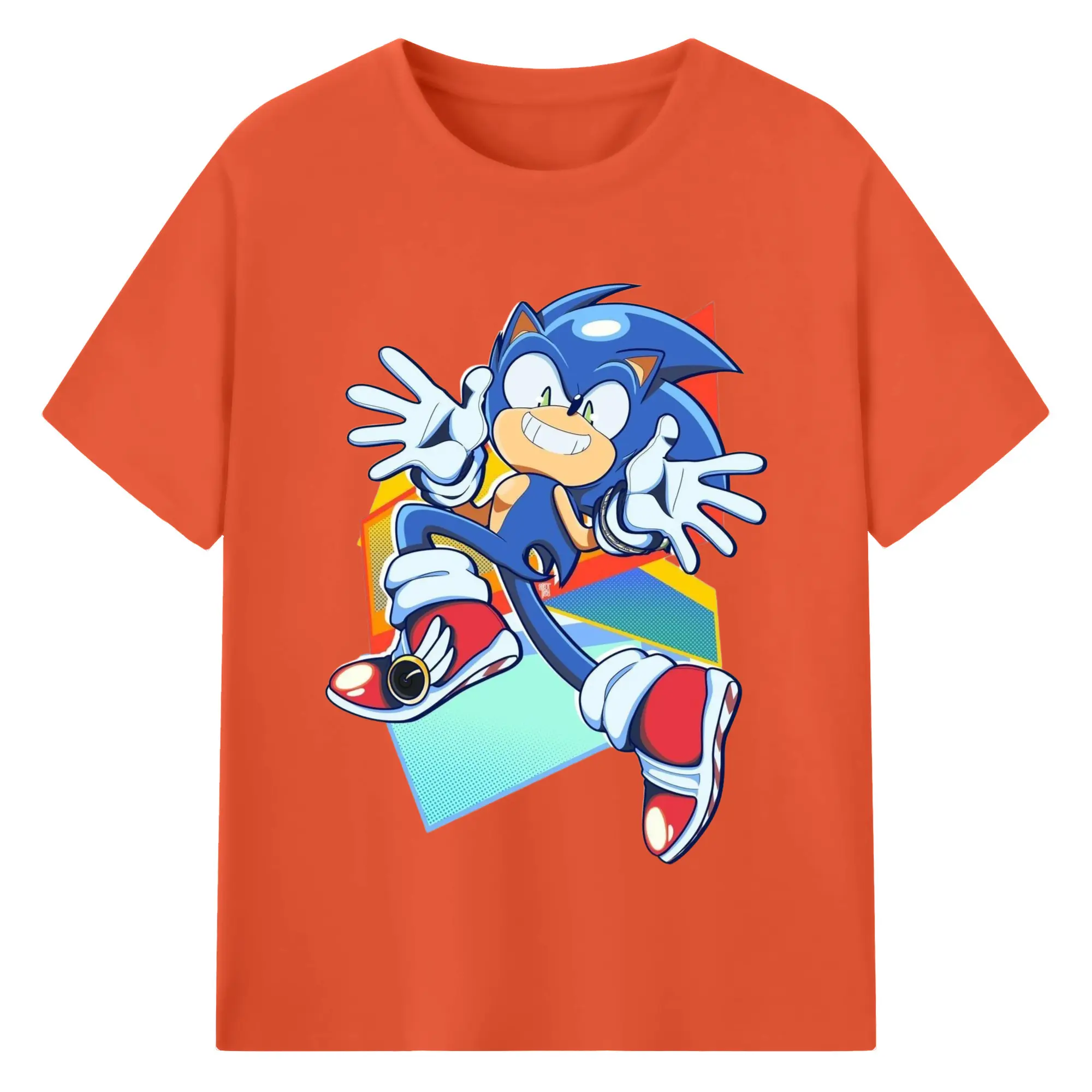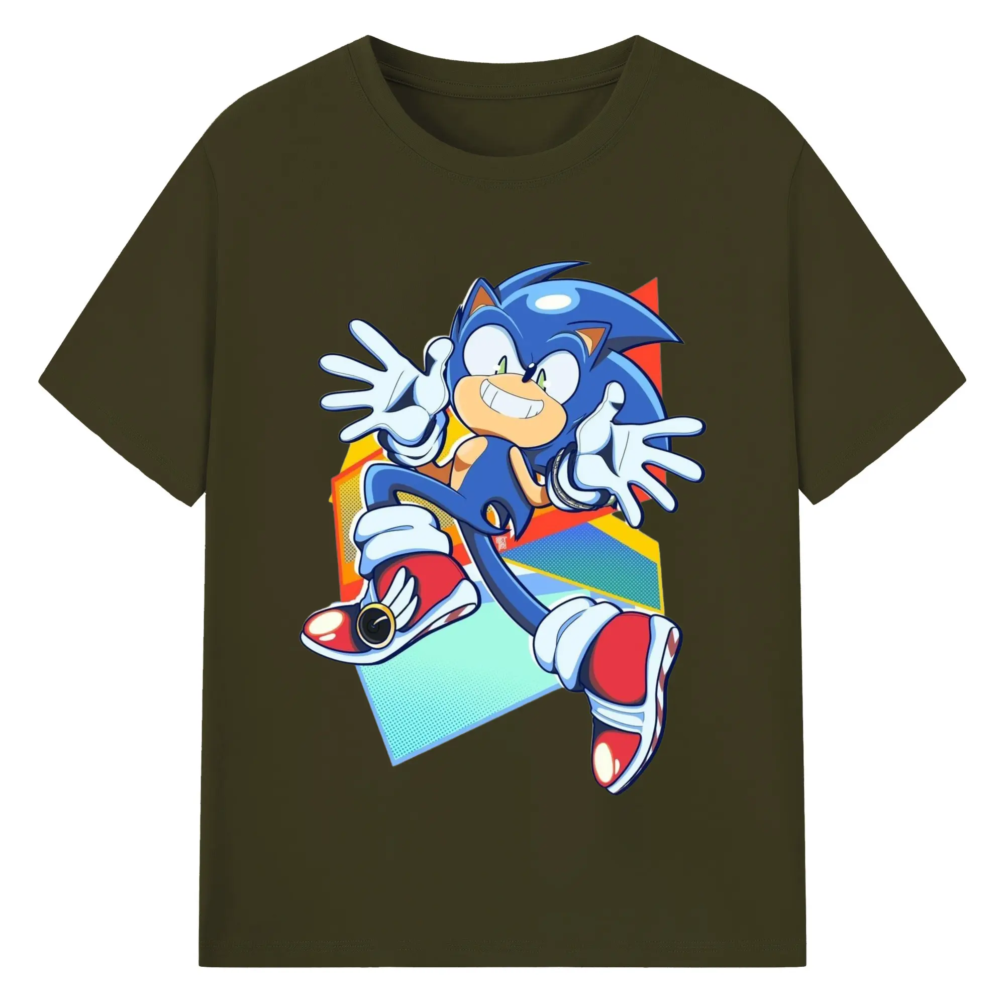 Sonic Collage Graphic Tee - 180g Cotton T-Shirt With Front Heat Transfer Print – Soft, Lightweight, Fitted Design – Comfortable Casual Wear For Sports & Everyday Use