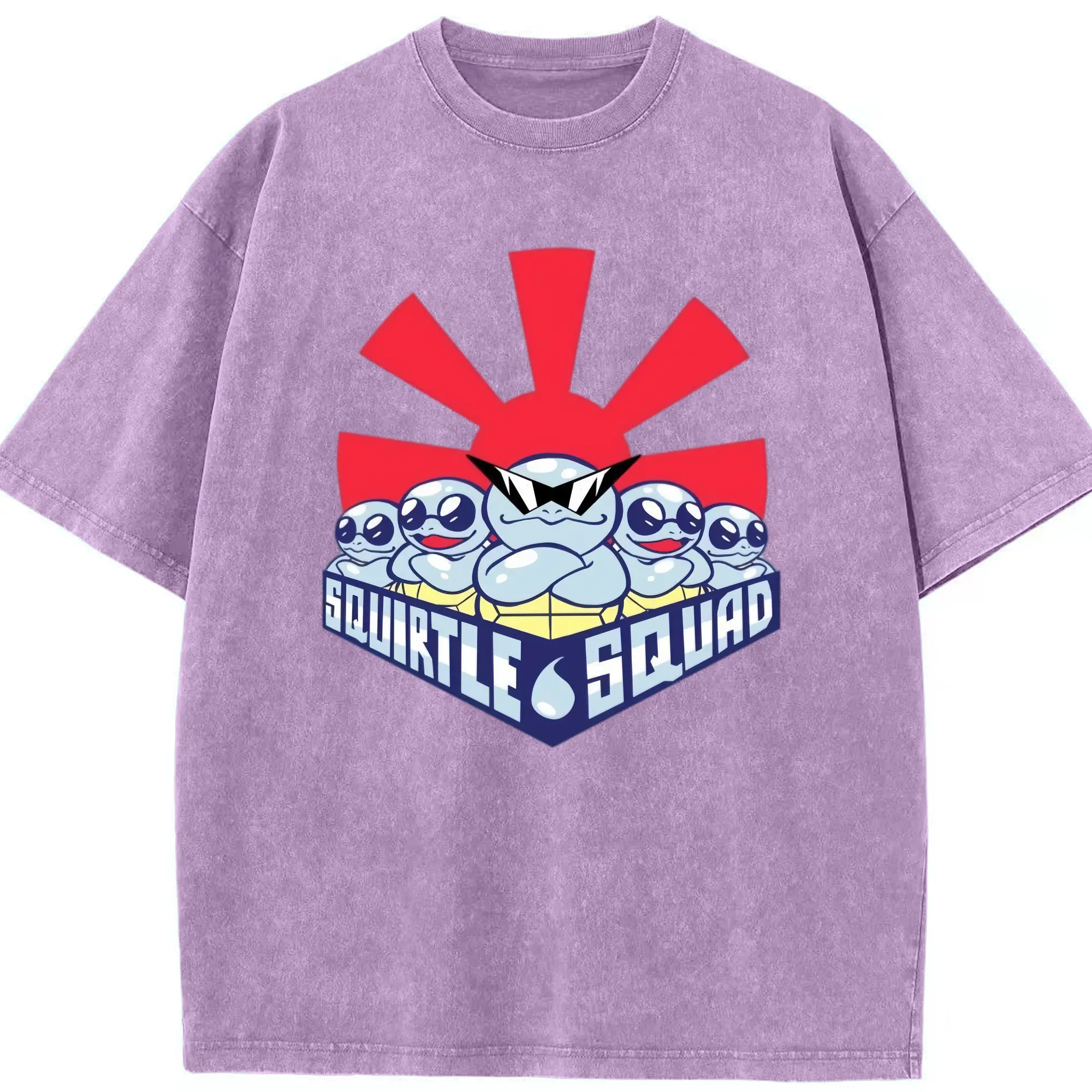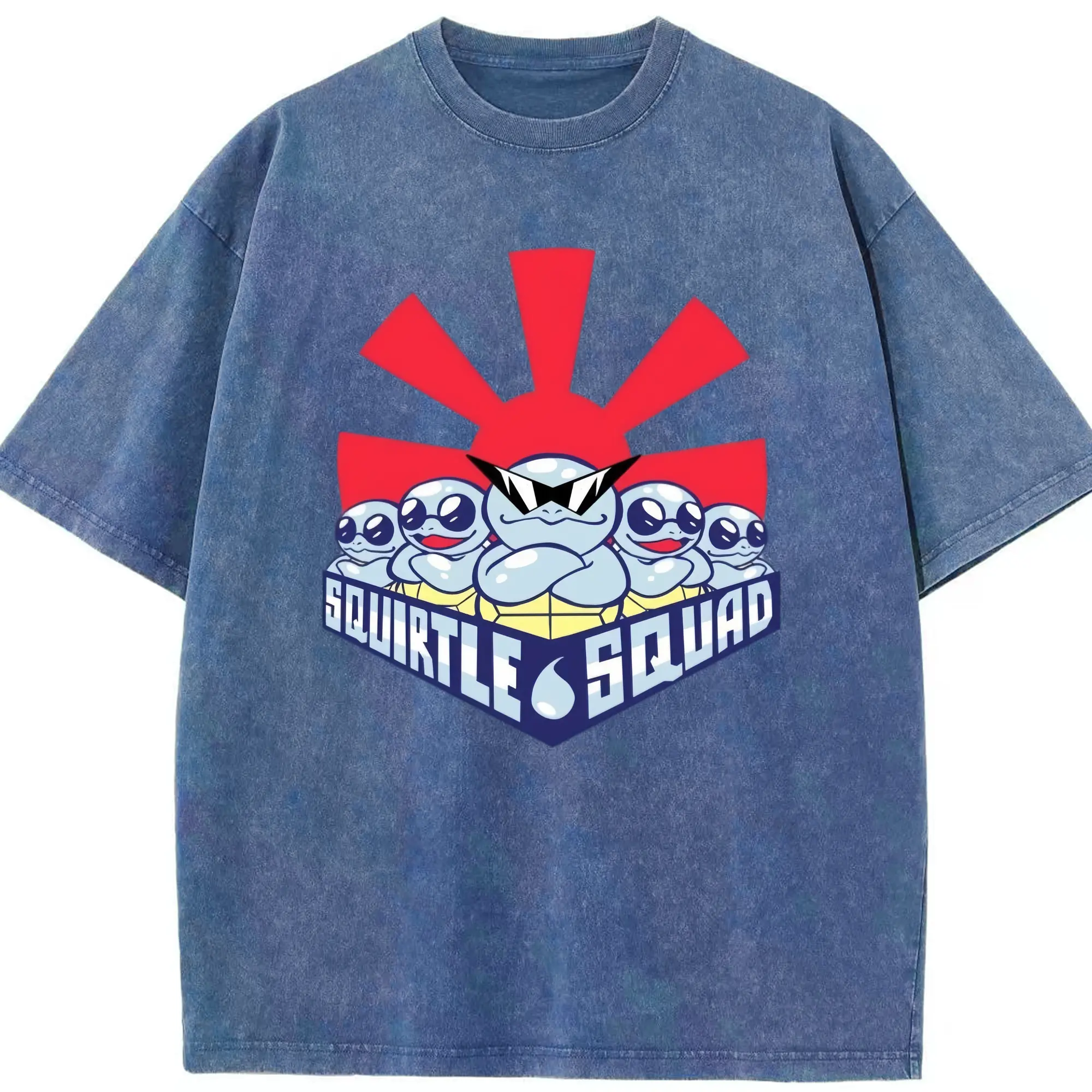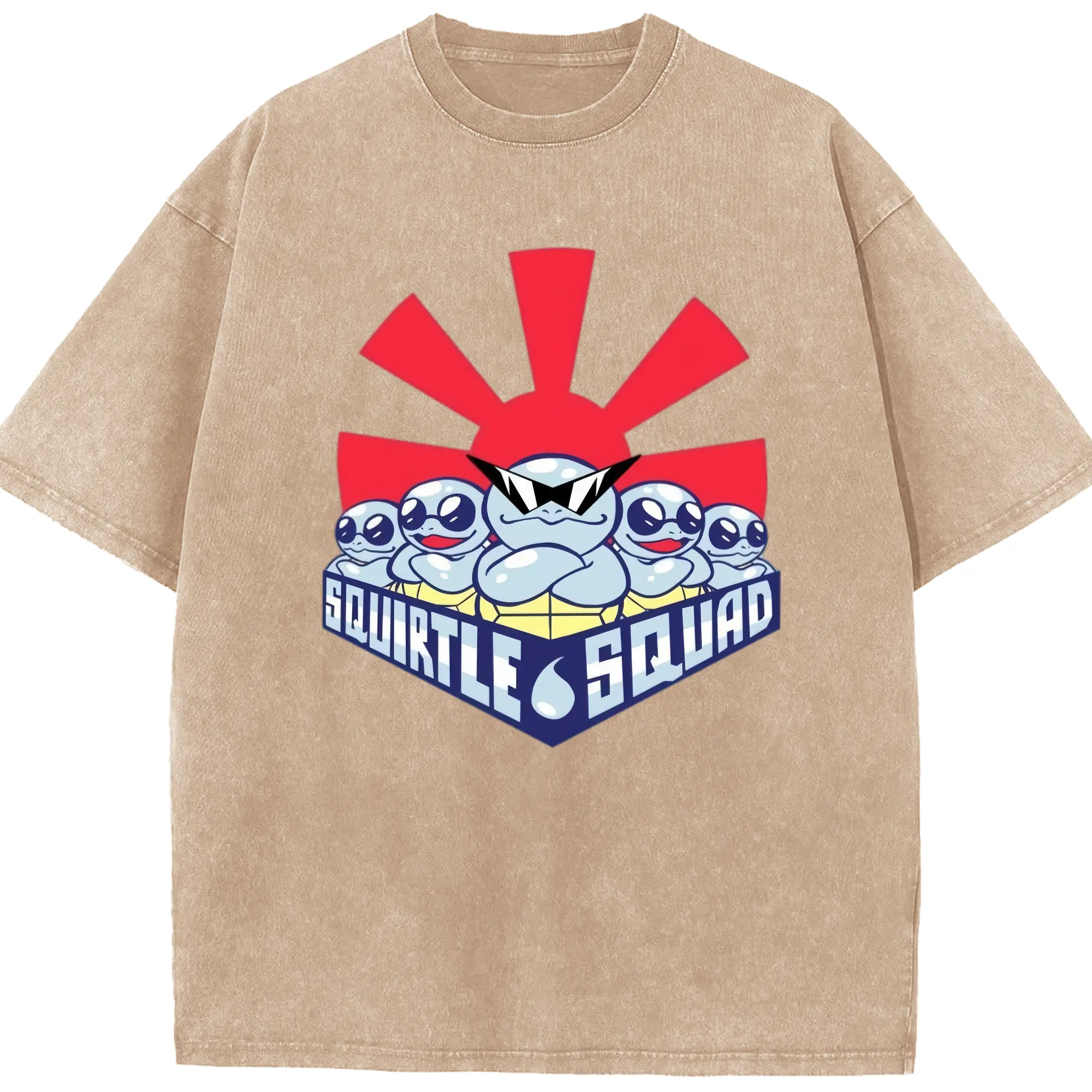 Squirtle squad tee - Washed Vintage Look 230g Cotton Oversized T-Shirt With Front Heat Transfer Print – Soft, Lightweight, Stylish Fit – Comfortable Casual Wear For Sports & Everyday Use