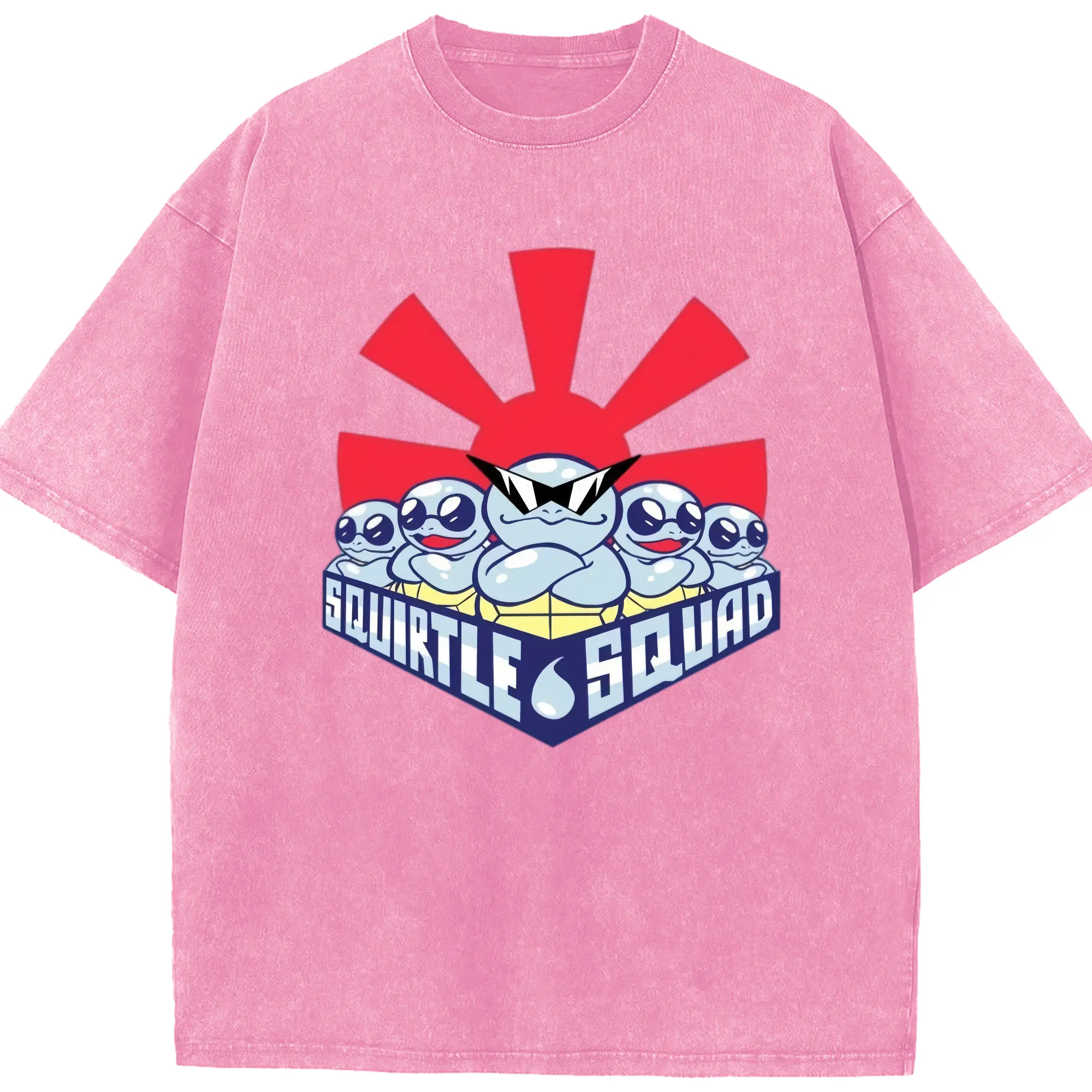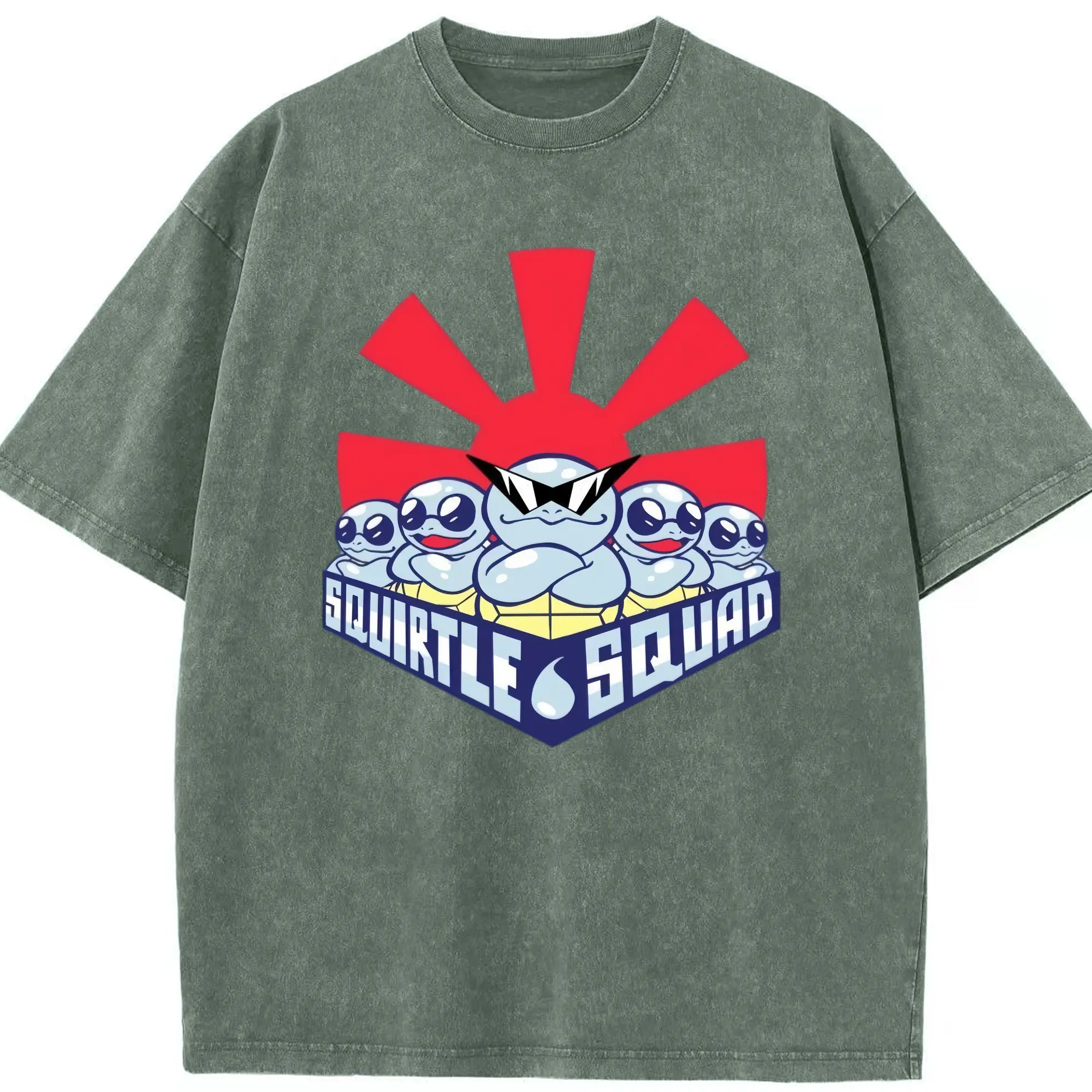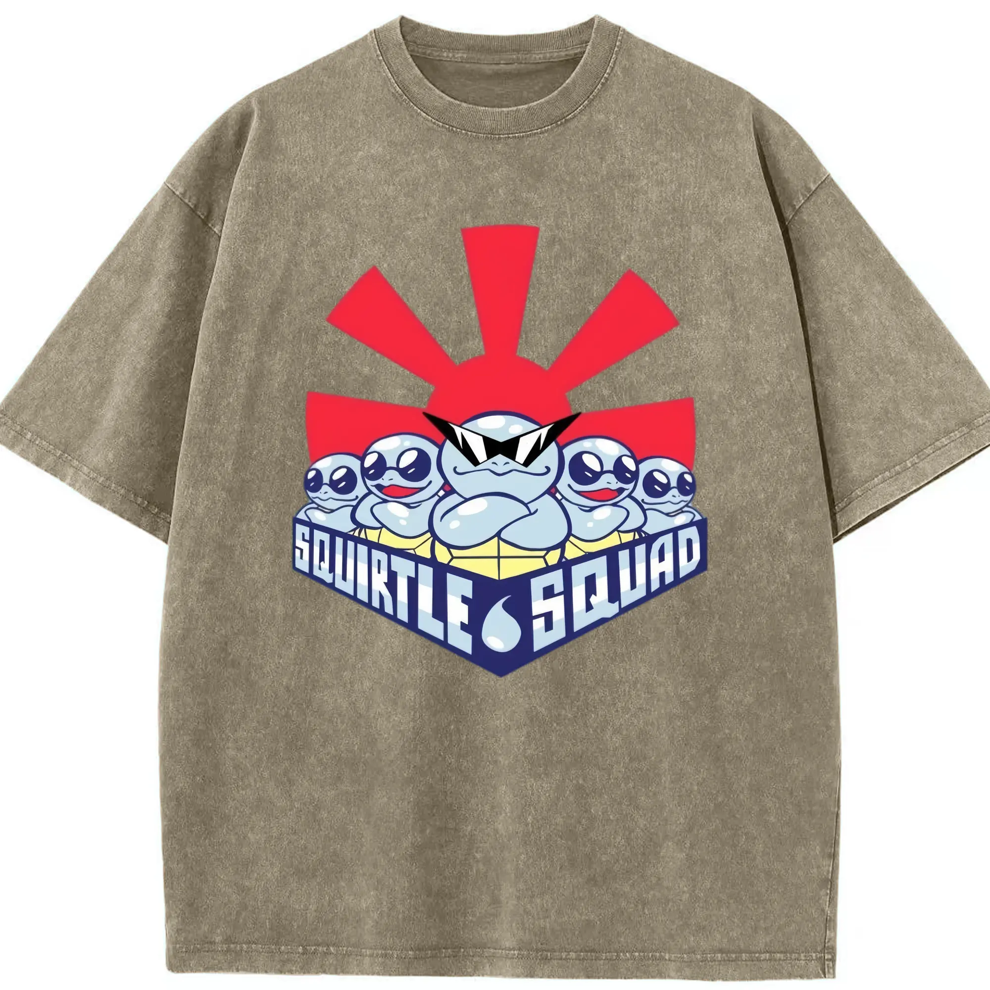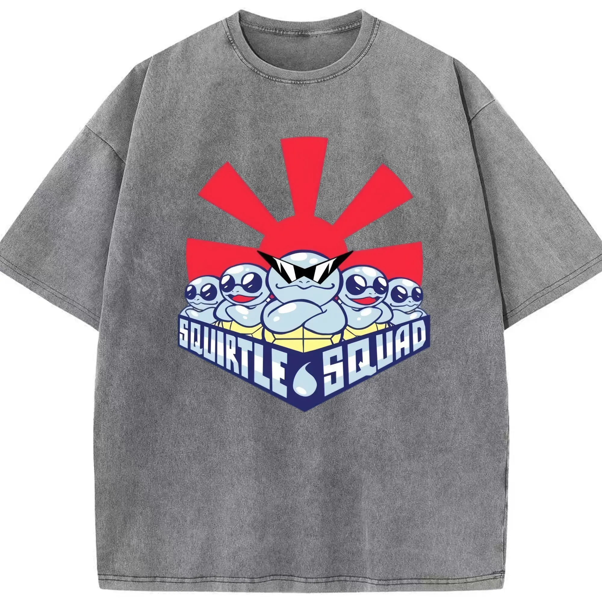 Squirtle squad tee - Washed Vintage Look 230g Cotton Oversized T-Shirt With Front Heat Transfer Print – Soft, Lightweight, Stylish Fit – Comfortable Casual Wear For Sports & Everyday Use