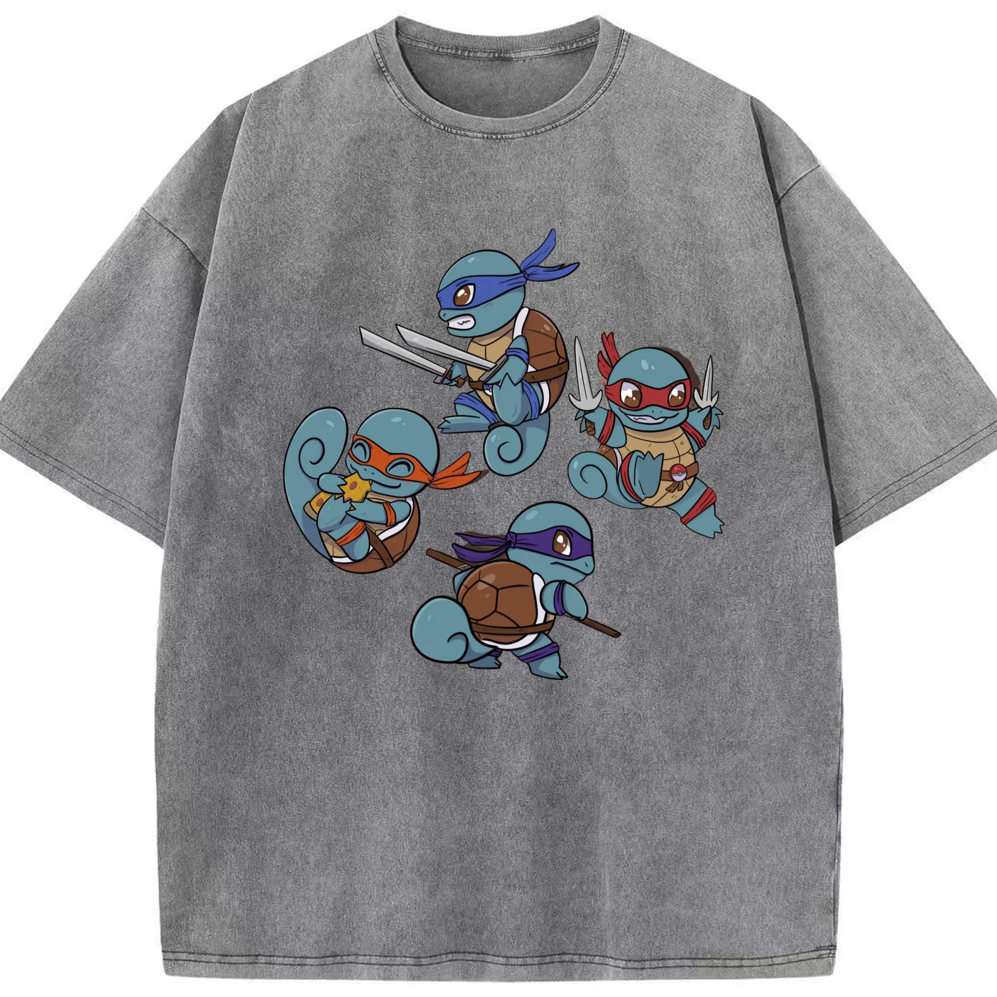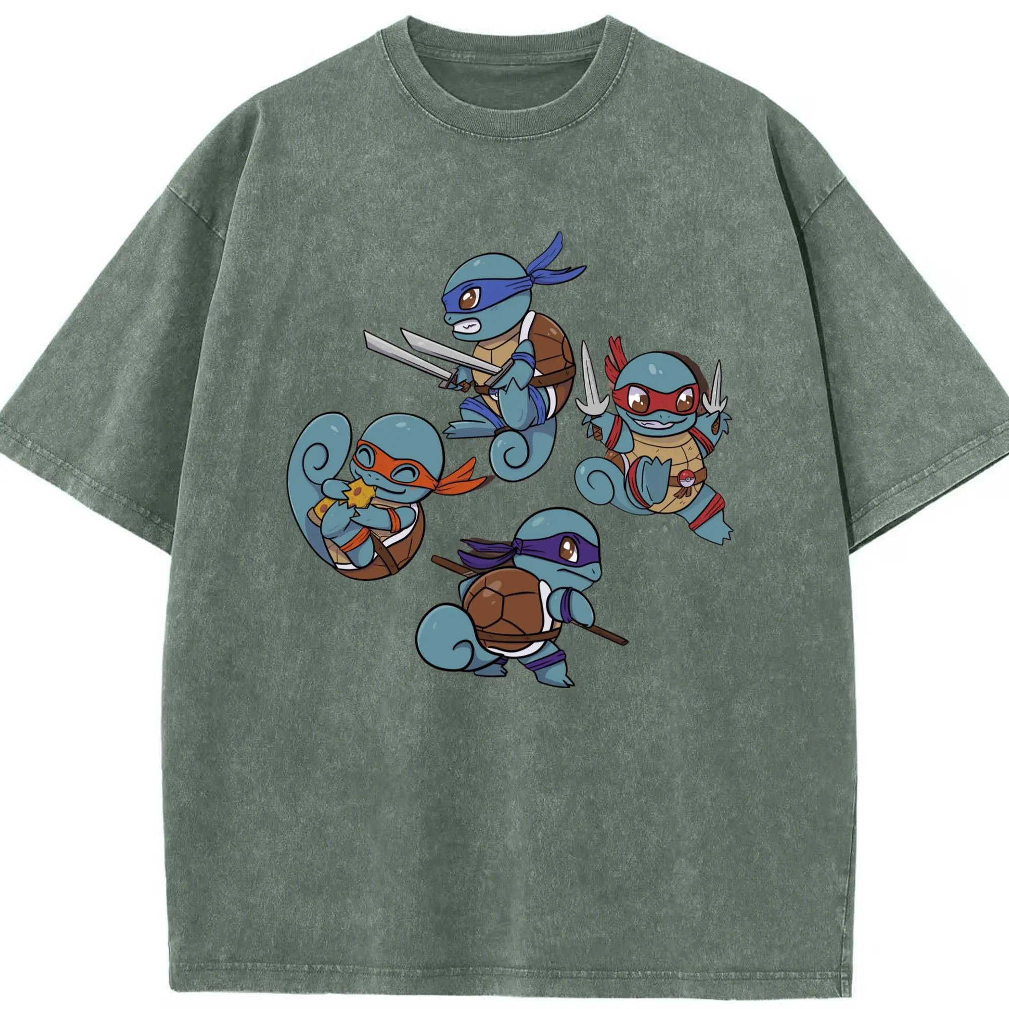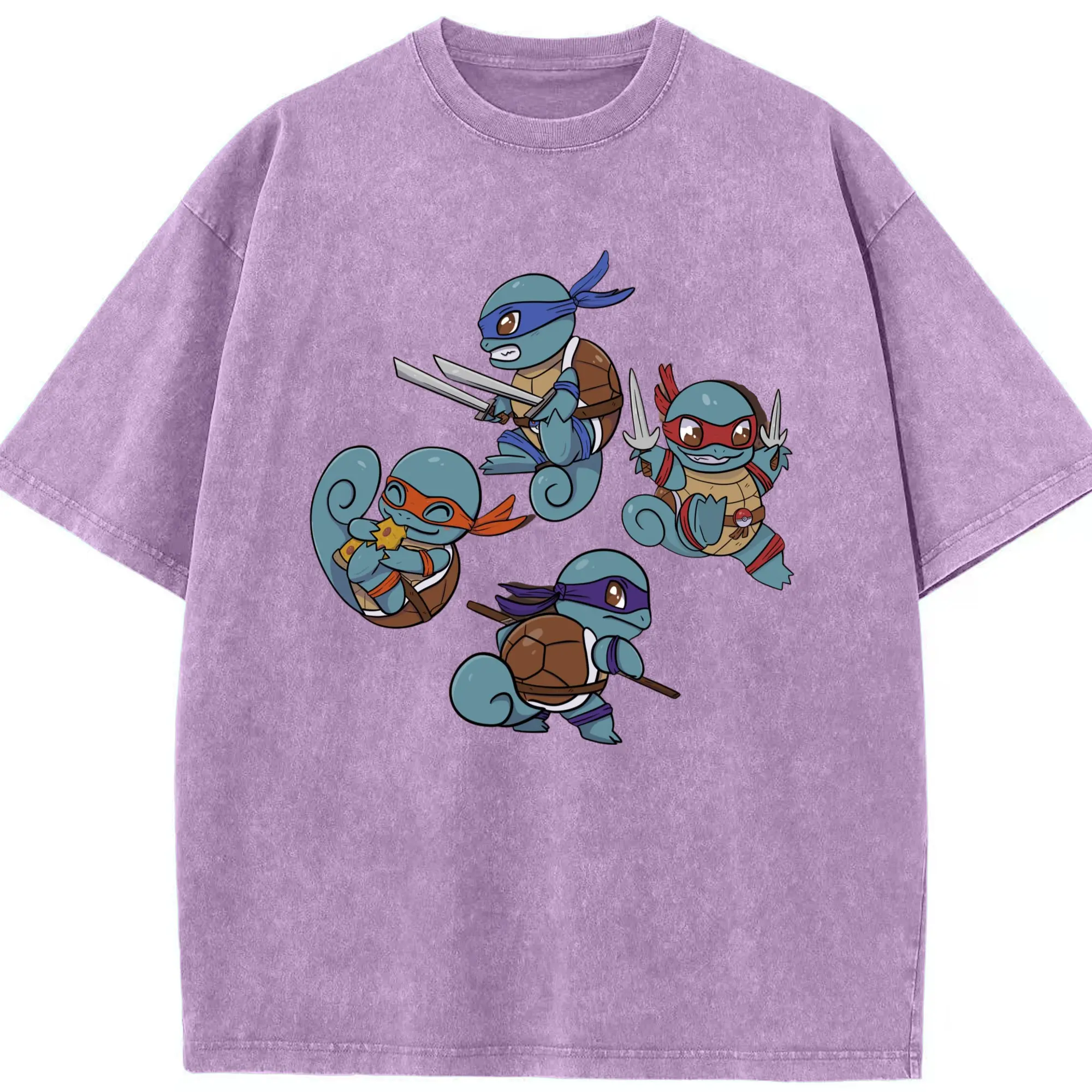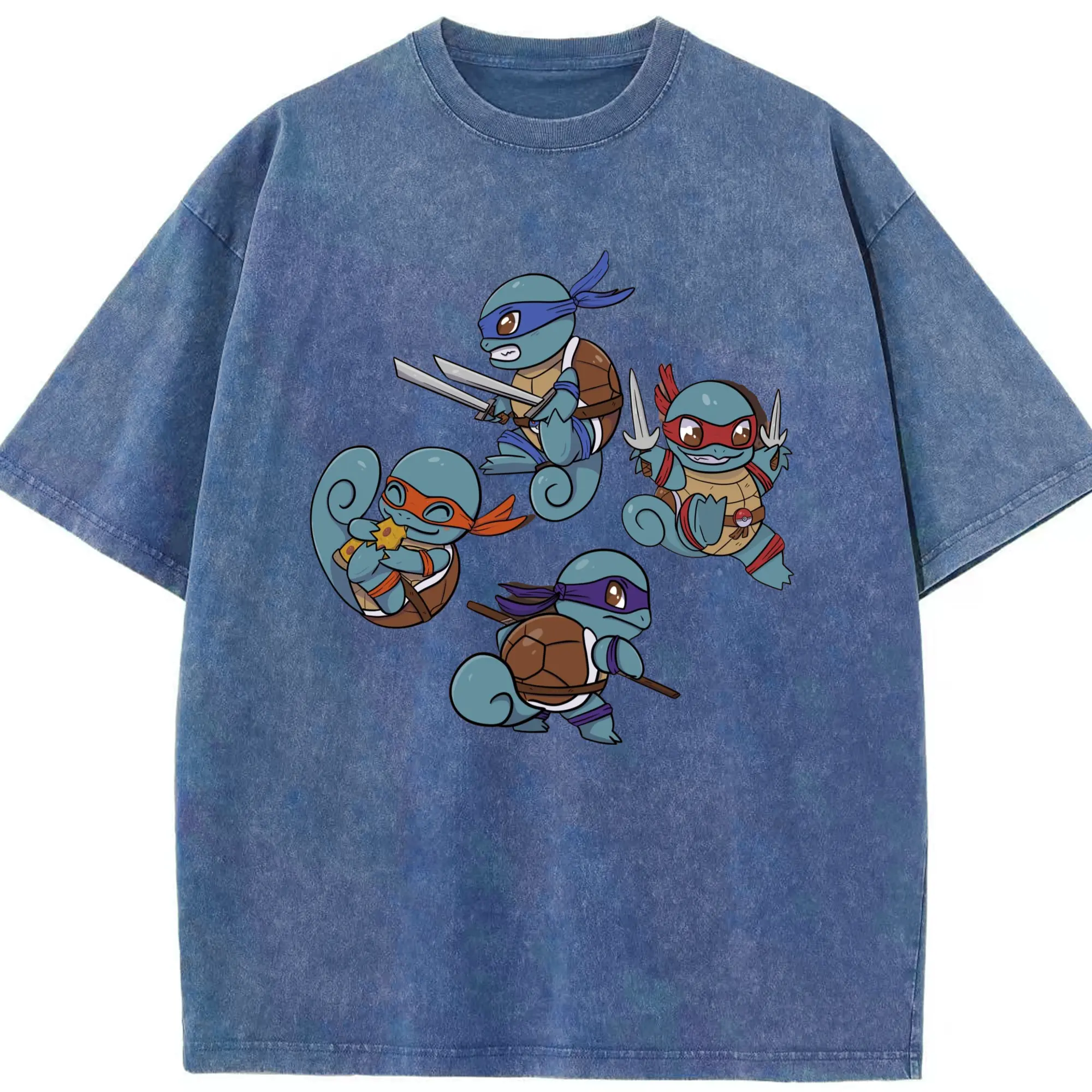 Squirtle squad t-shirt​ - Washed Vintage Look 230g Cotton Oversized T-Shirt With Front Heat Transfer Print – Soft, Lightweight, Stylish Fit – Comfortable Casual Wear For Sports & Everyday Use
