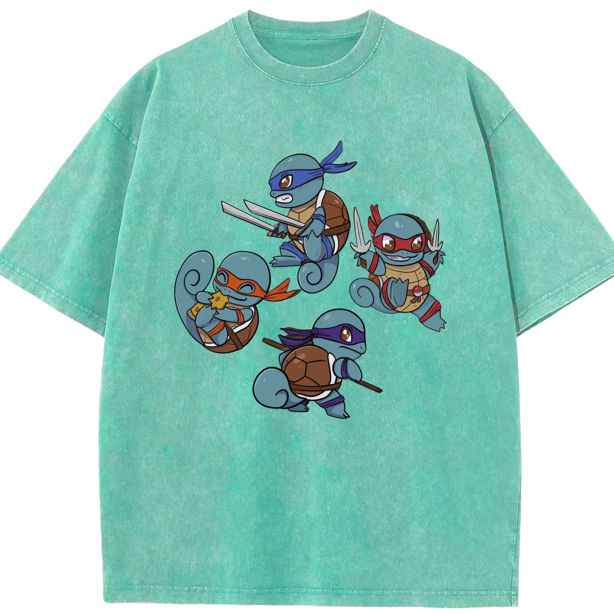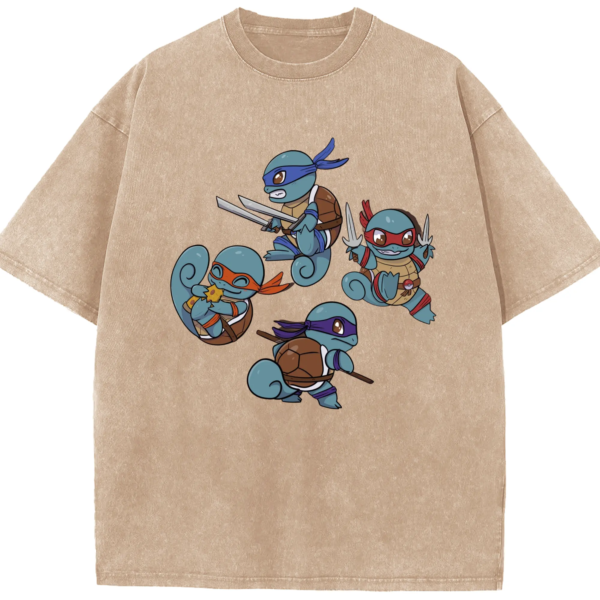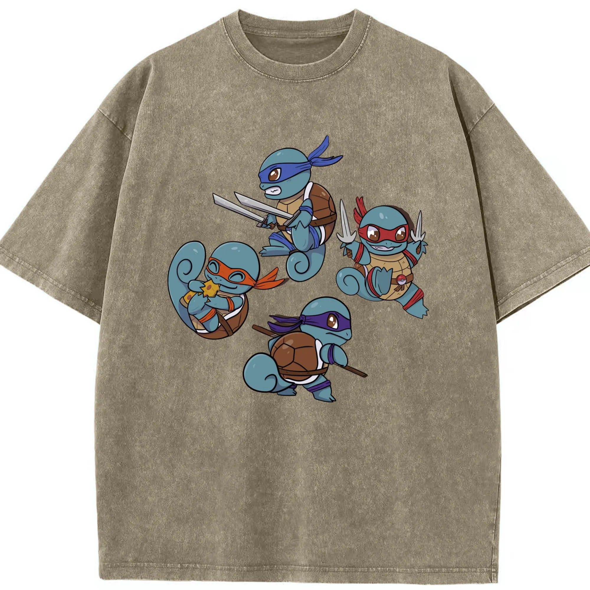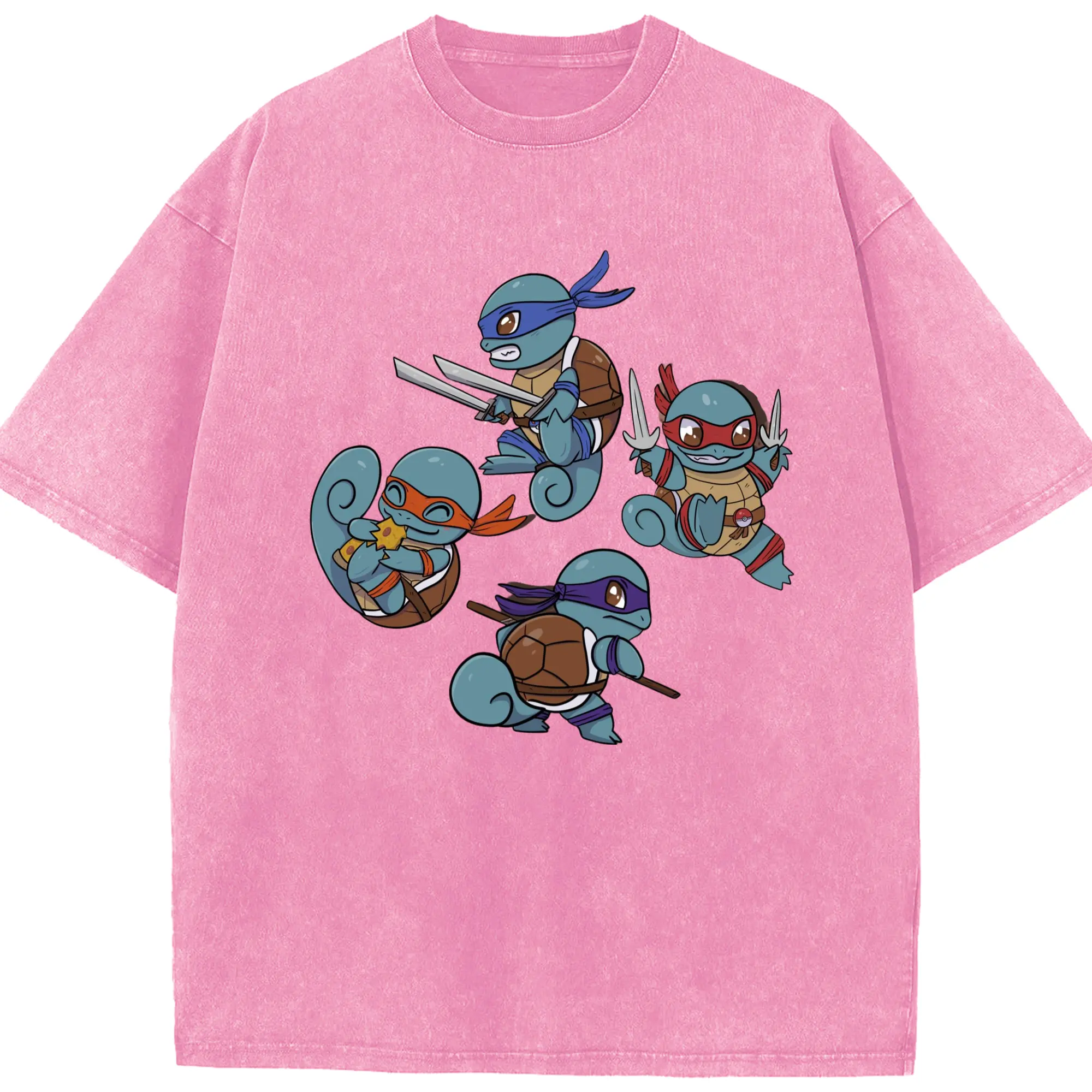 Squirtle squad t-shirt​ - Washed Vintage Look 230g Cotton Oversized T-Shirt With Front Heat Transfer Print – Soft, Lightweight, Stylish Fit – Comfortable Casual Wear For Sports & Everyday Use