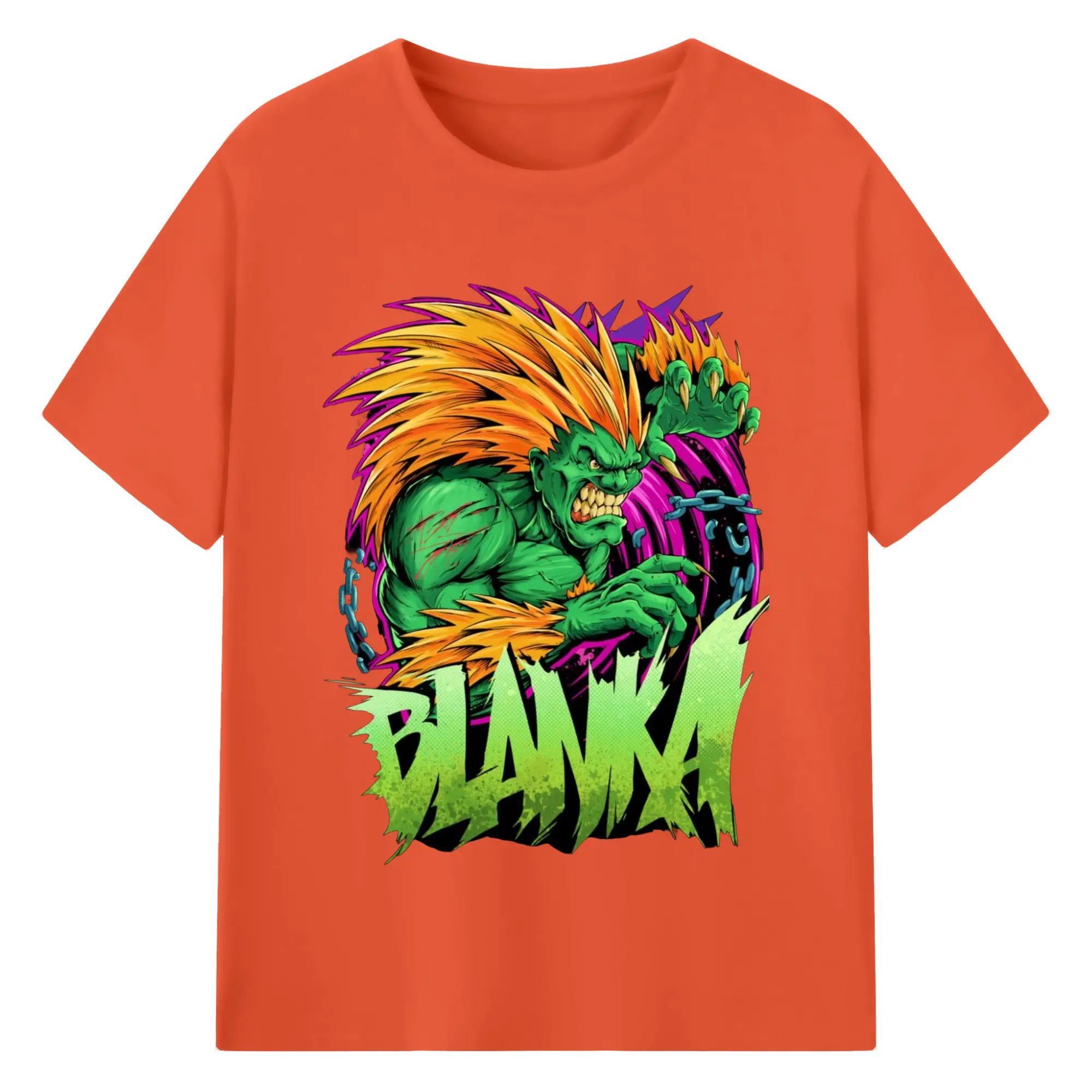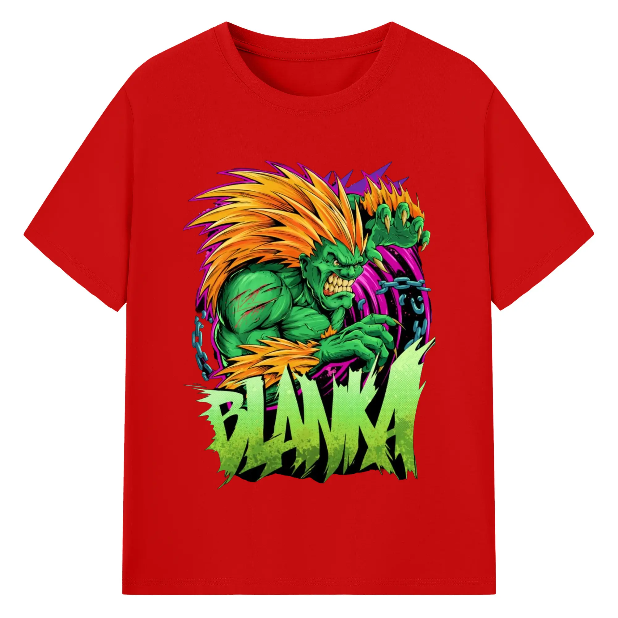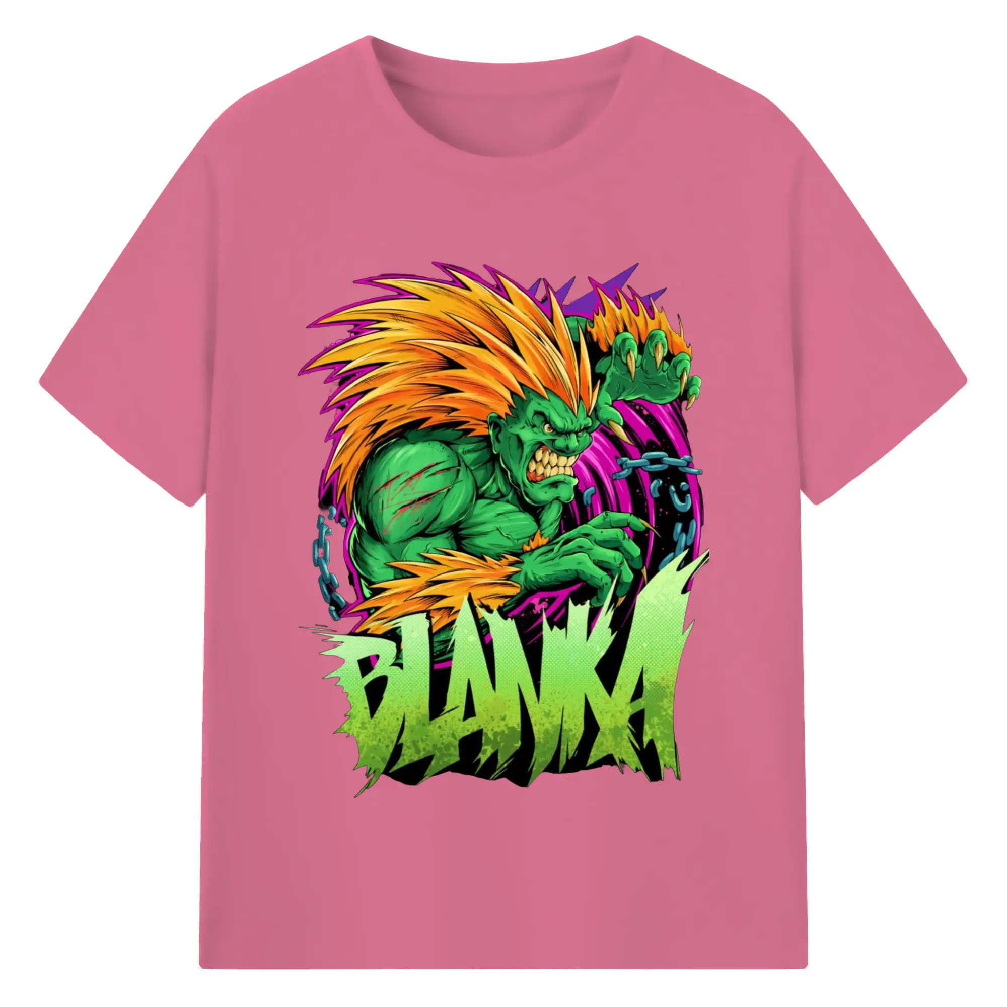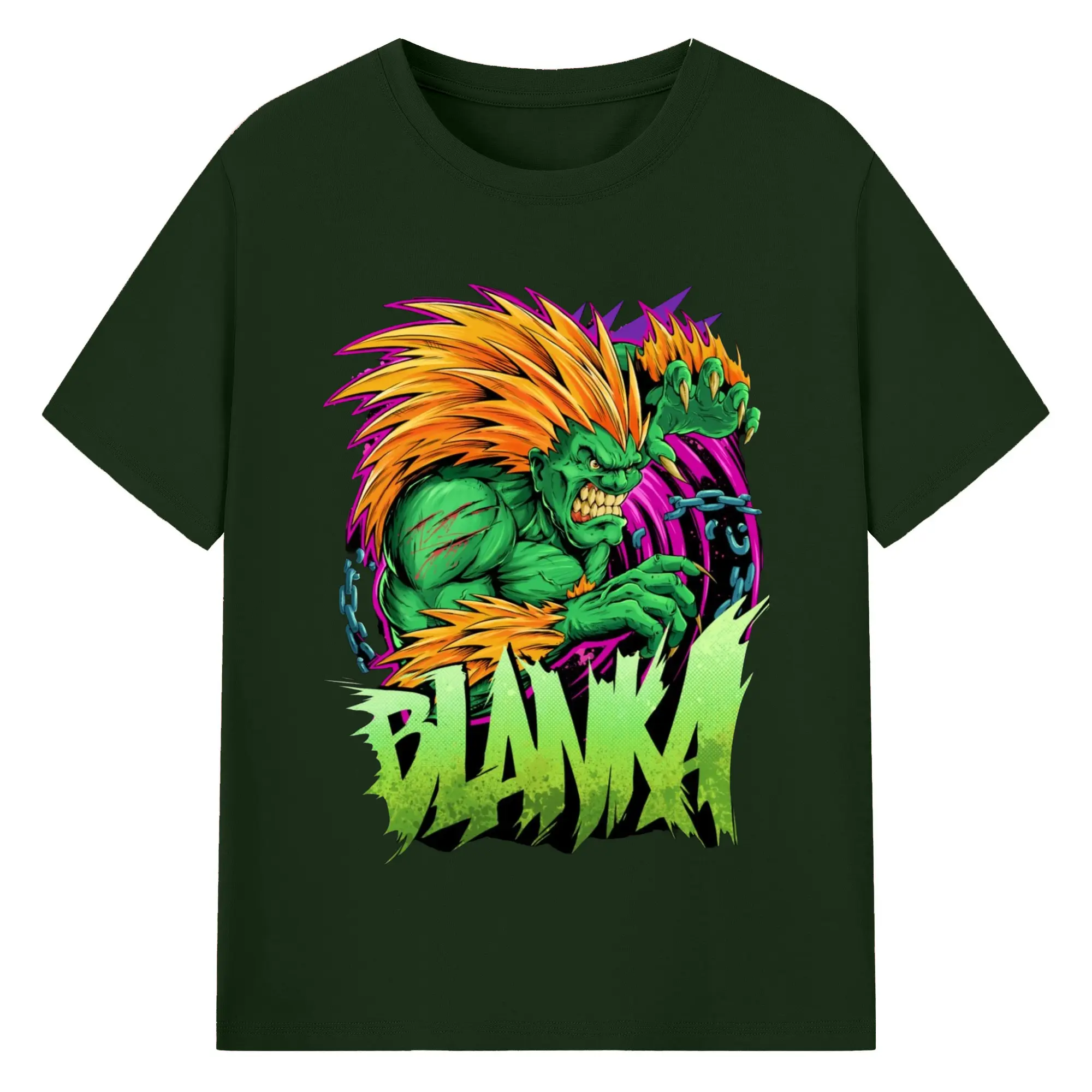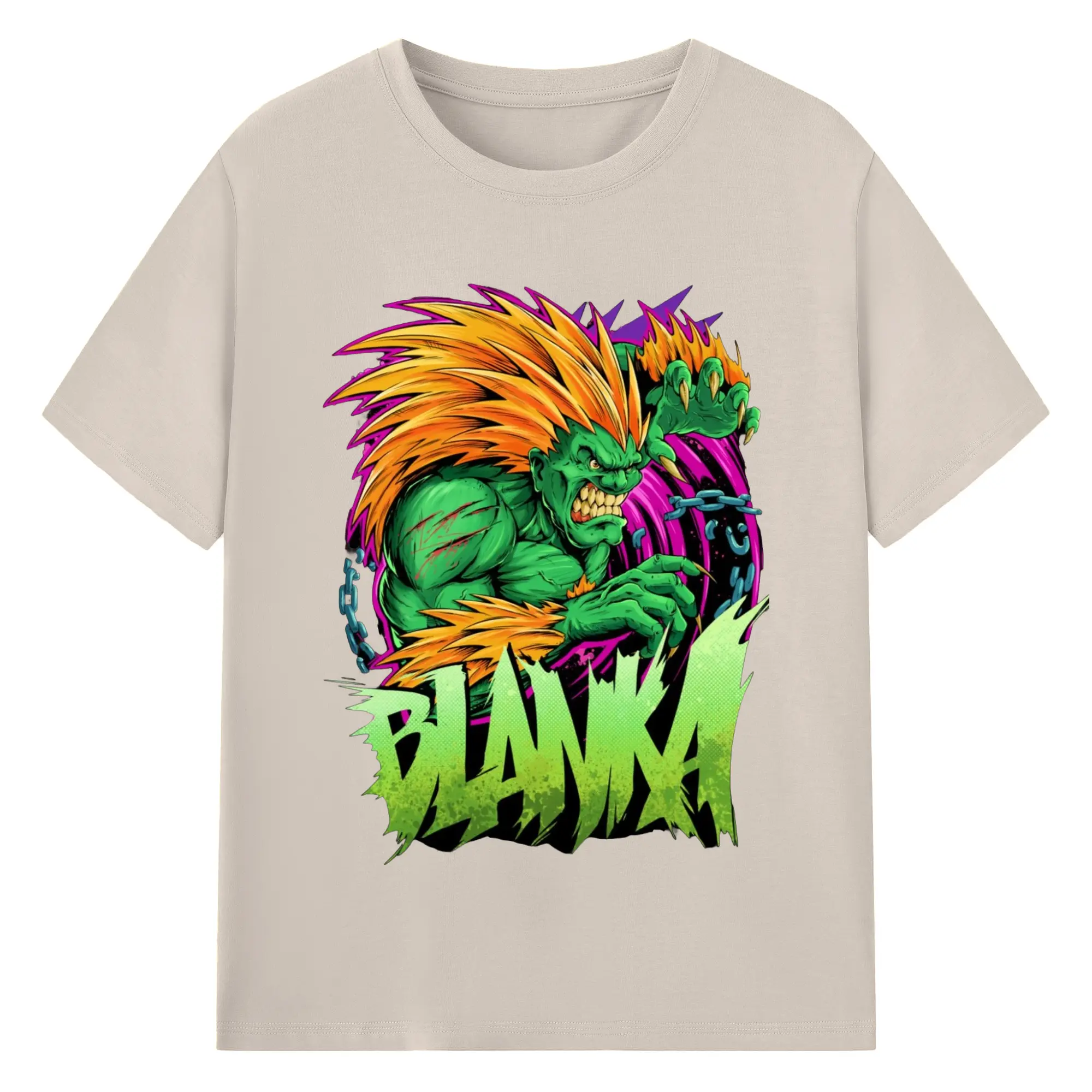 Street fighter blanka t shirt​ - 180g Cotton T-Shirt With Front Heat Transfer Print – Soft, Lightweight, Fitted Design – Comfortable Casual Wear For Sports & Everyday Use