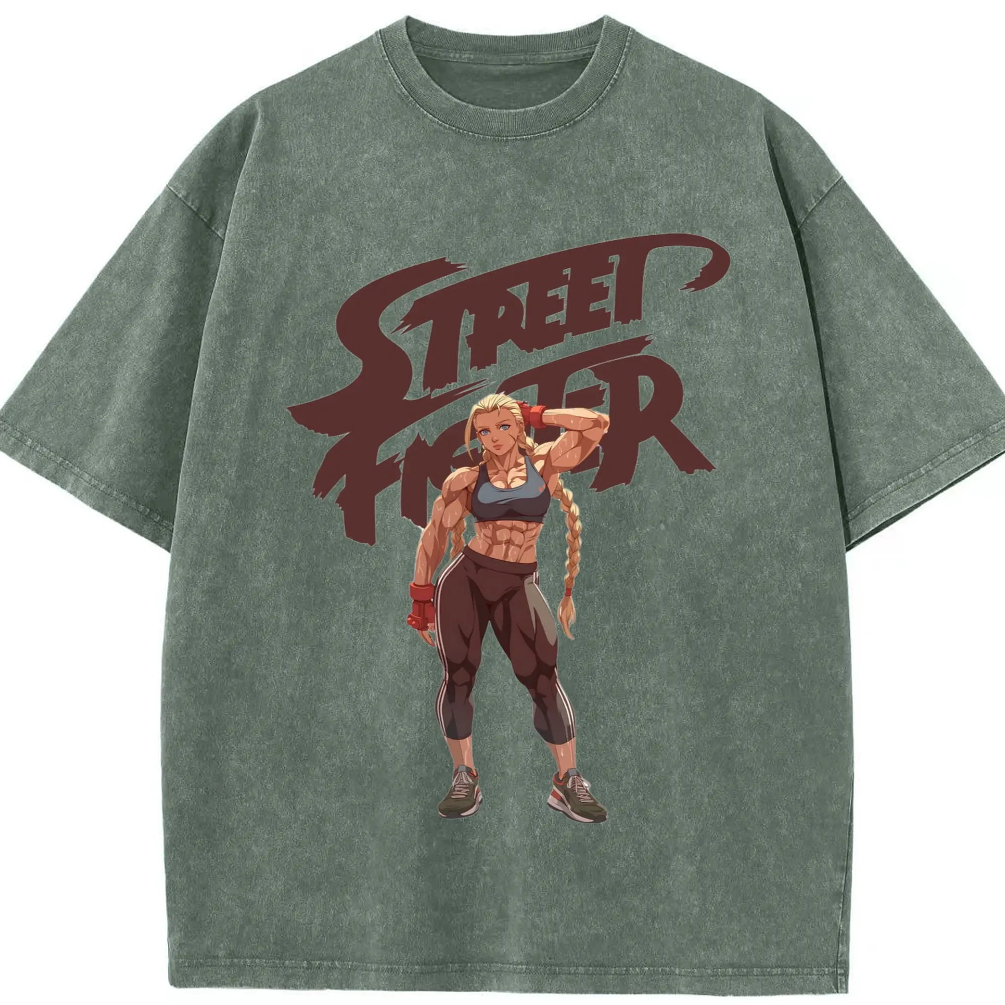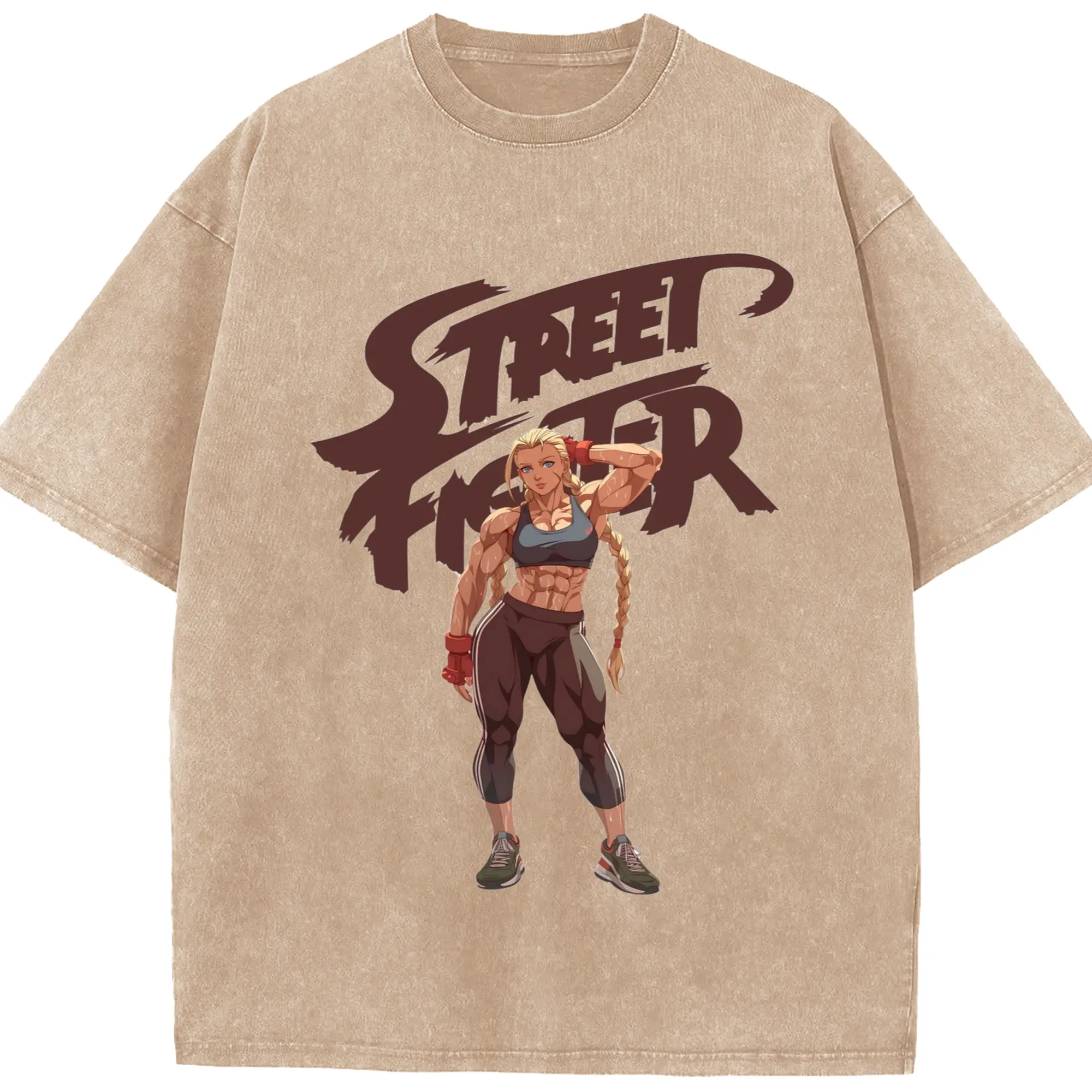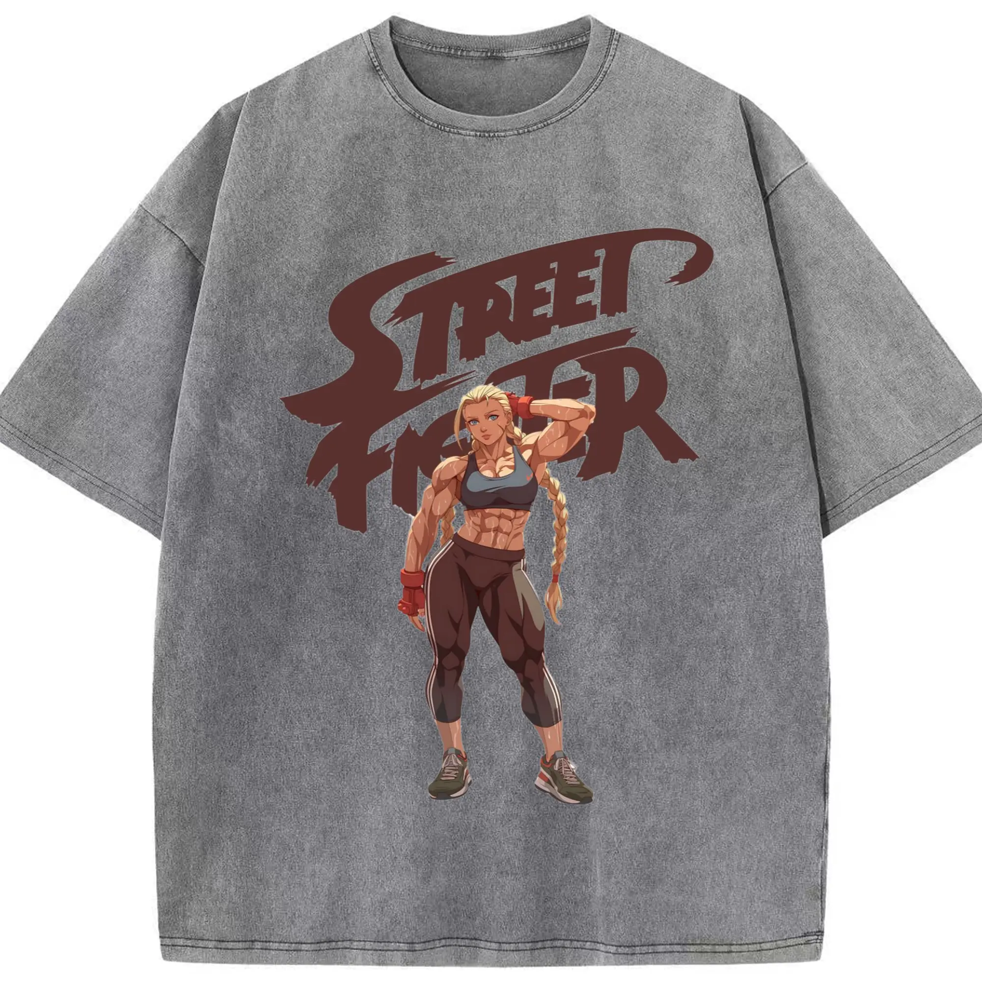 Street fighter Cammy shirt​ - Washed Vintage Look 230g Cotton Oversized T-Shirt With Front Heat Transfer Print – Soft, Lightweight, Stylish Fit – Comfortable Casual Wear For Sports & Everyday Use