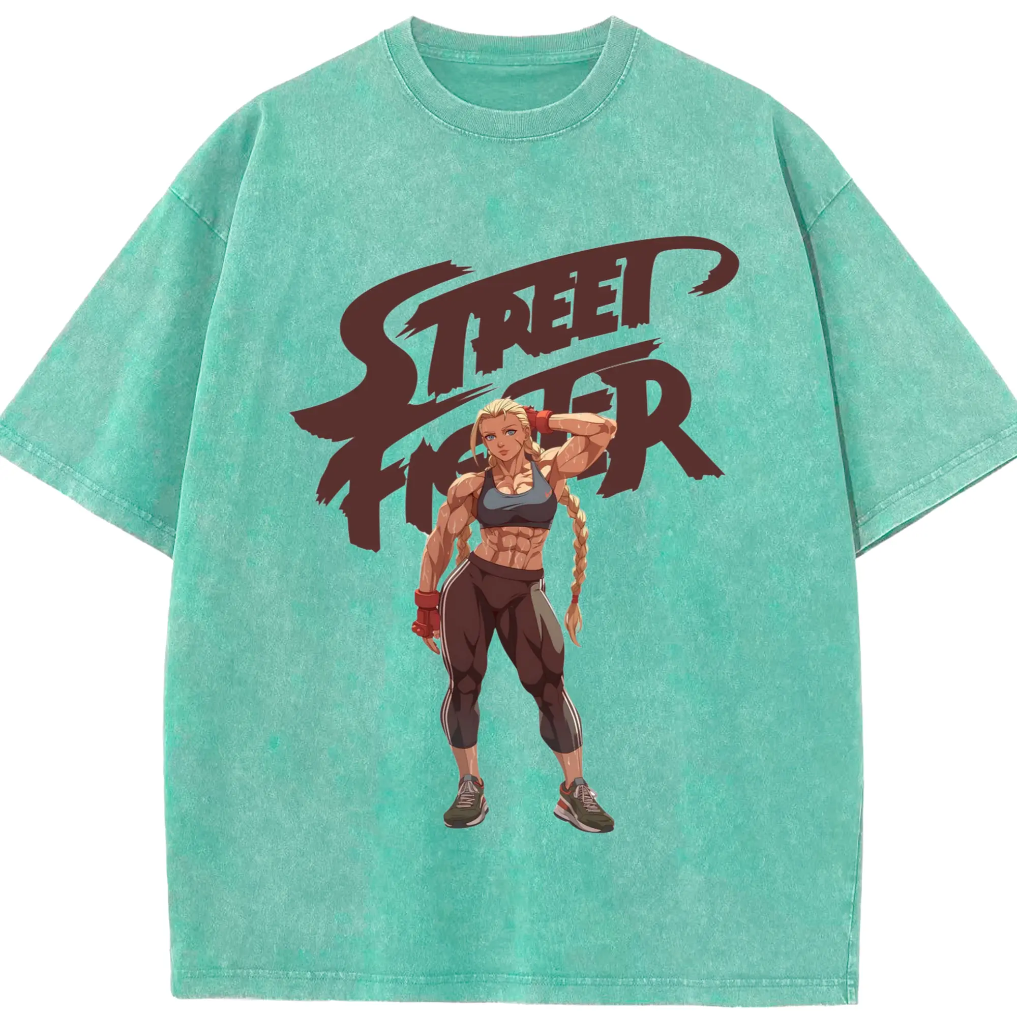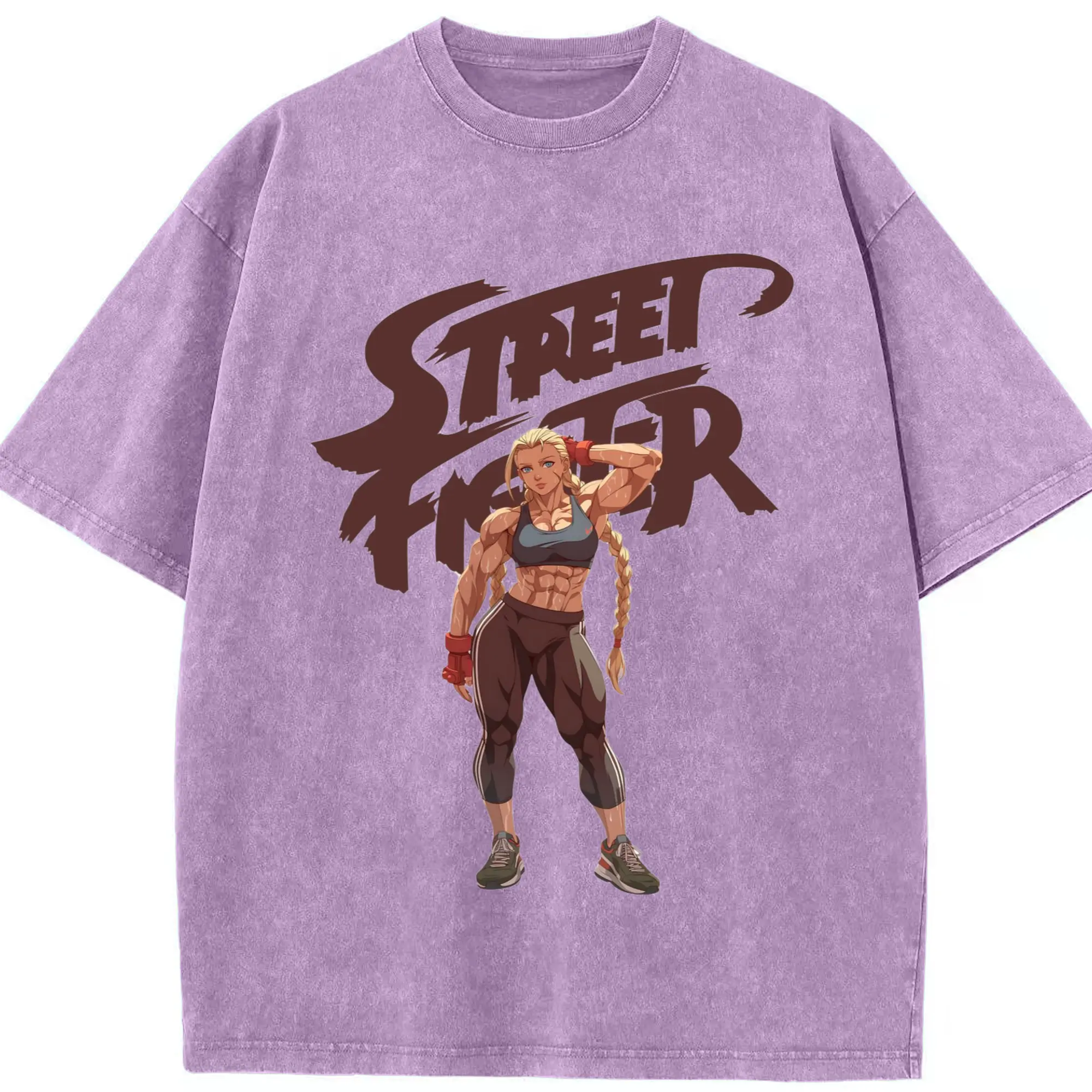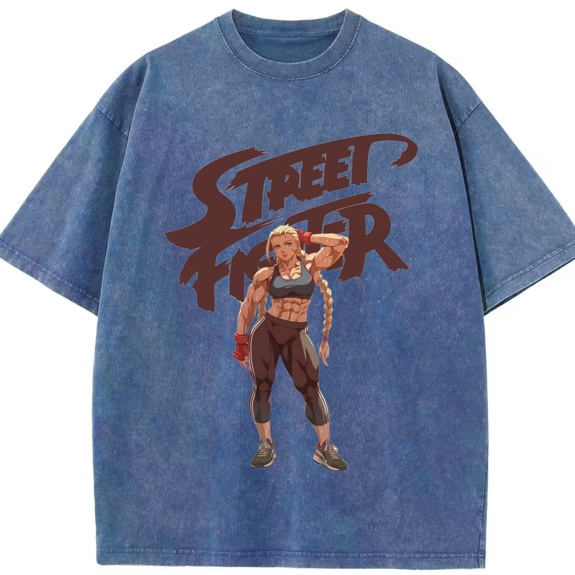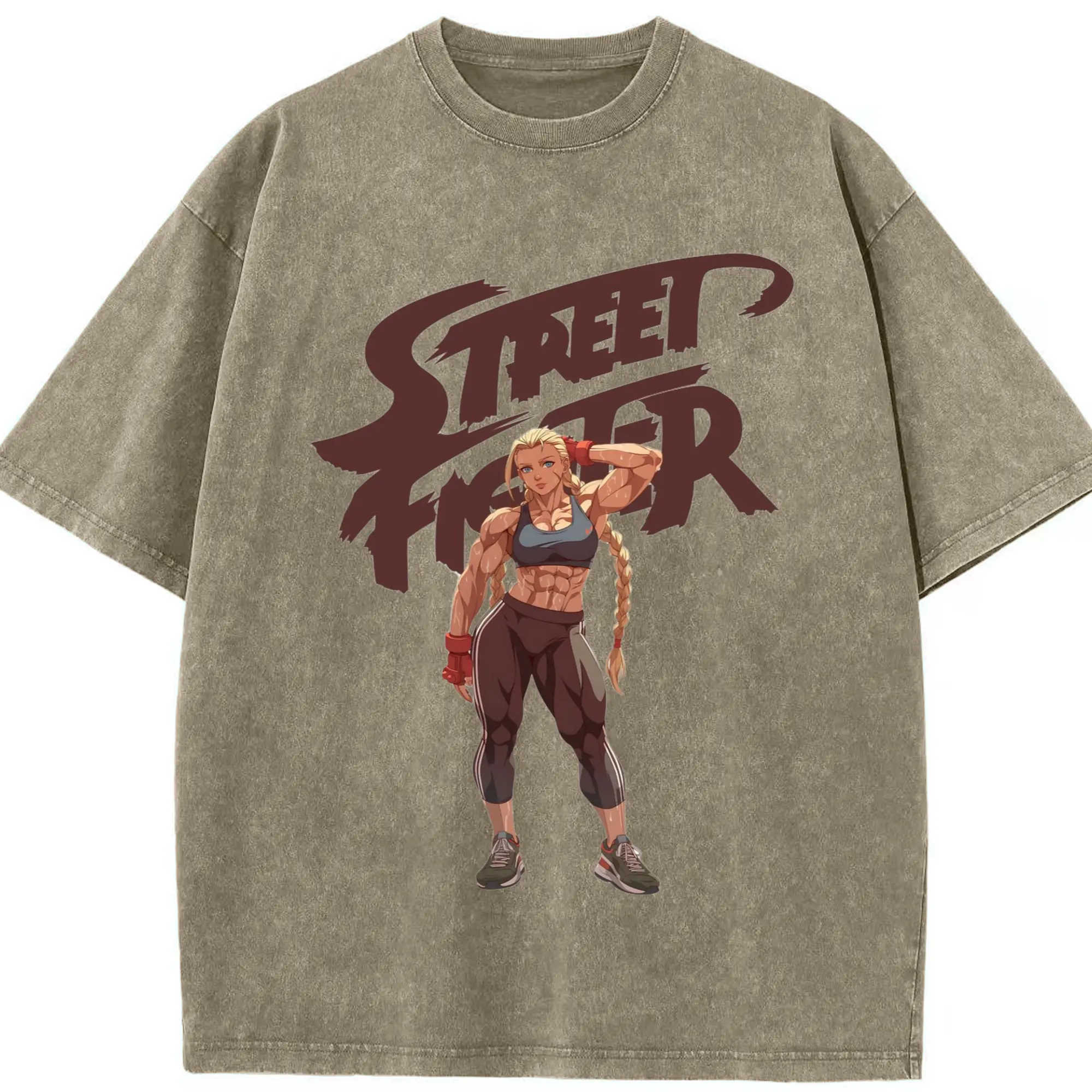 Street fighter Cammy shirt​ - Washed Vintage Look 230g Cotton Oversized T-Shirt With Front Heat Transfer Print – Soft, Lightweight, Stylish Fit – Comfortable Casual Wear For Sports & Everyday Use