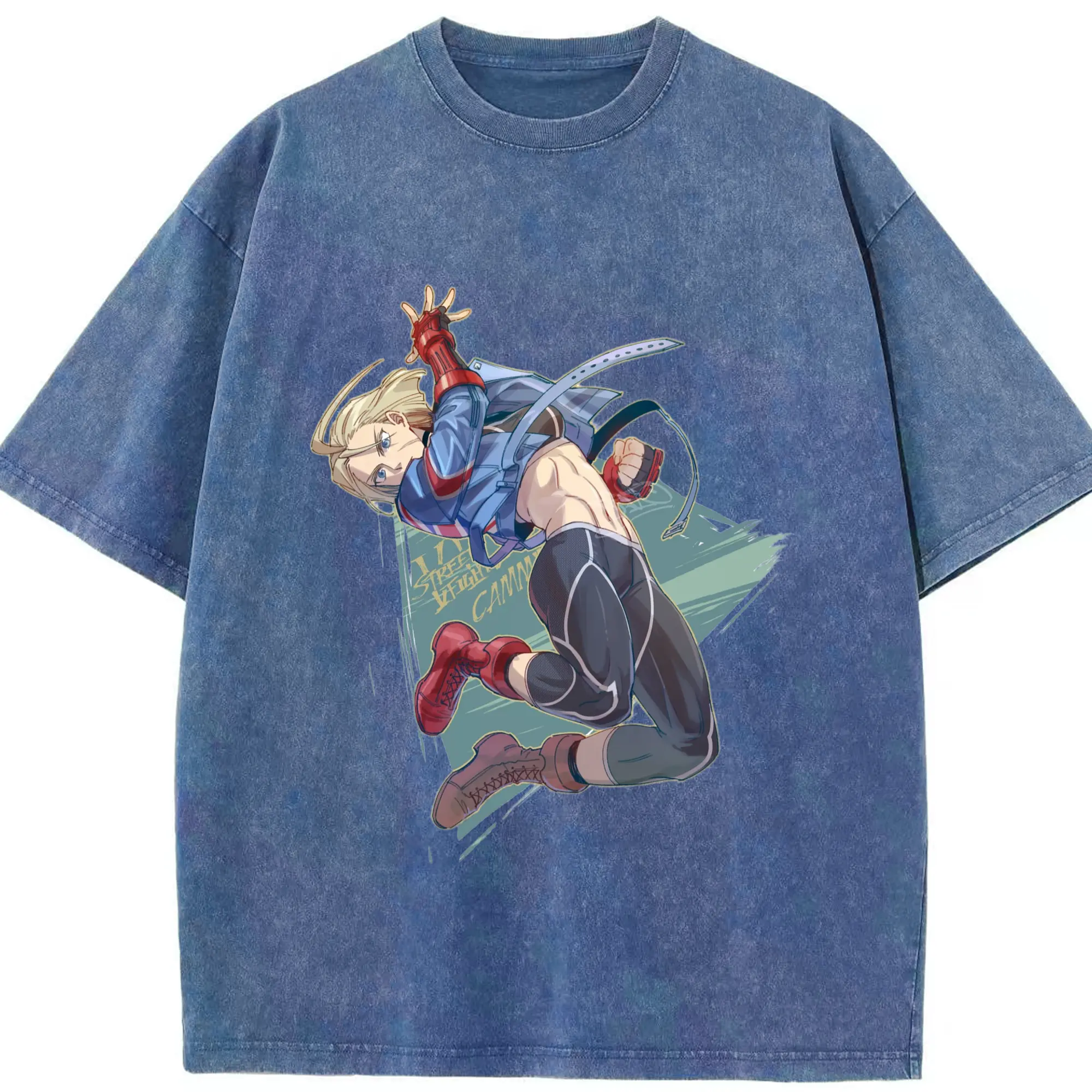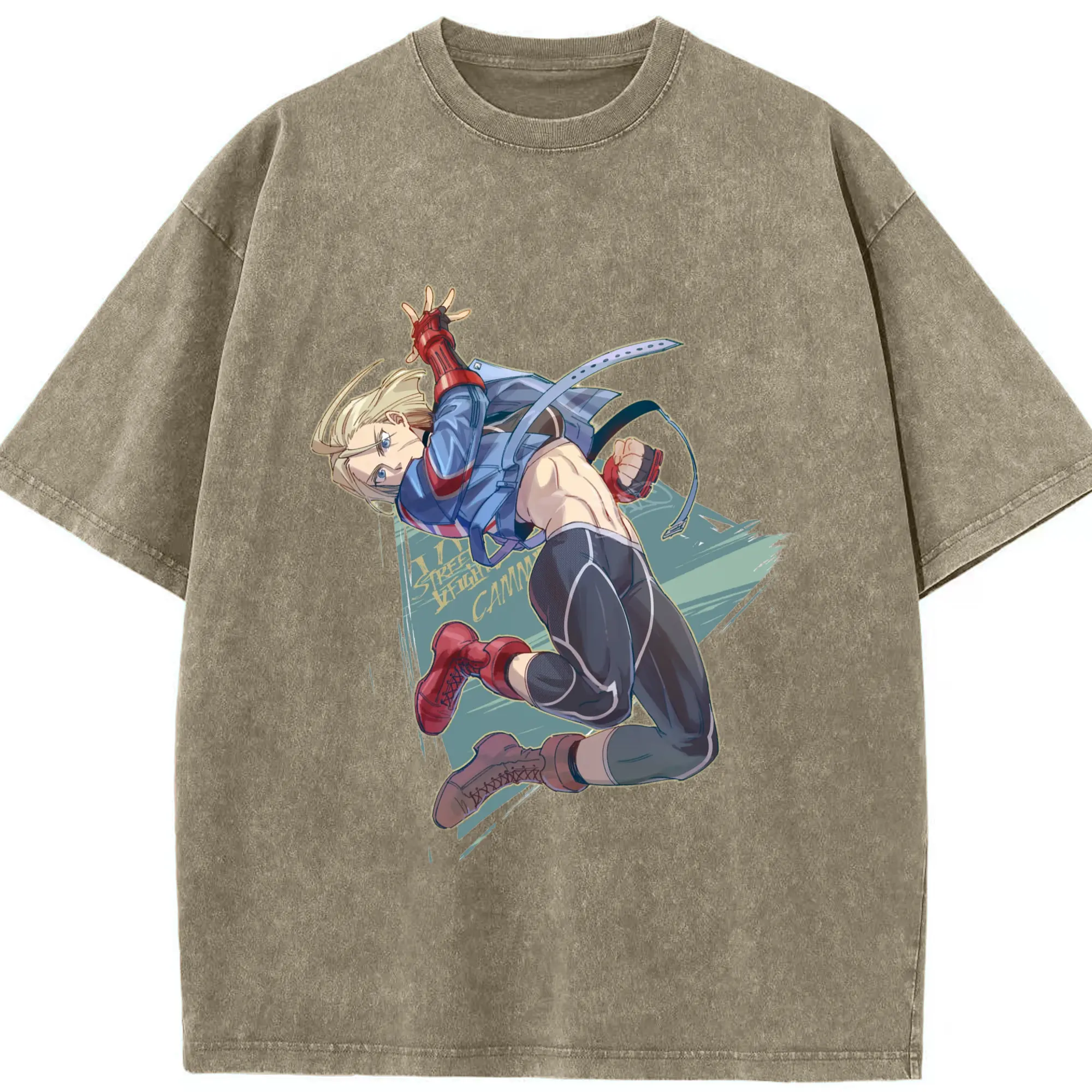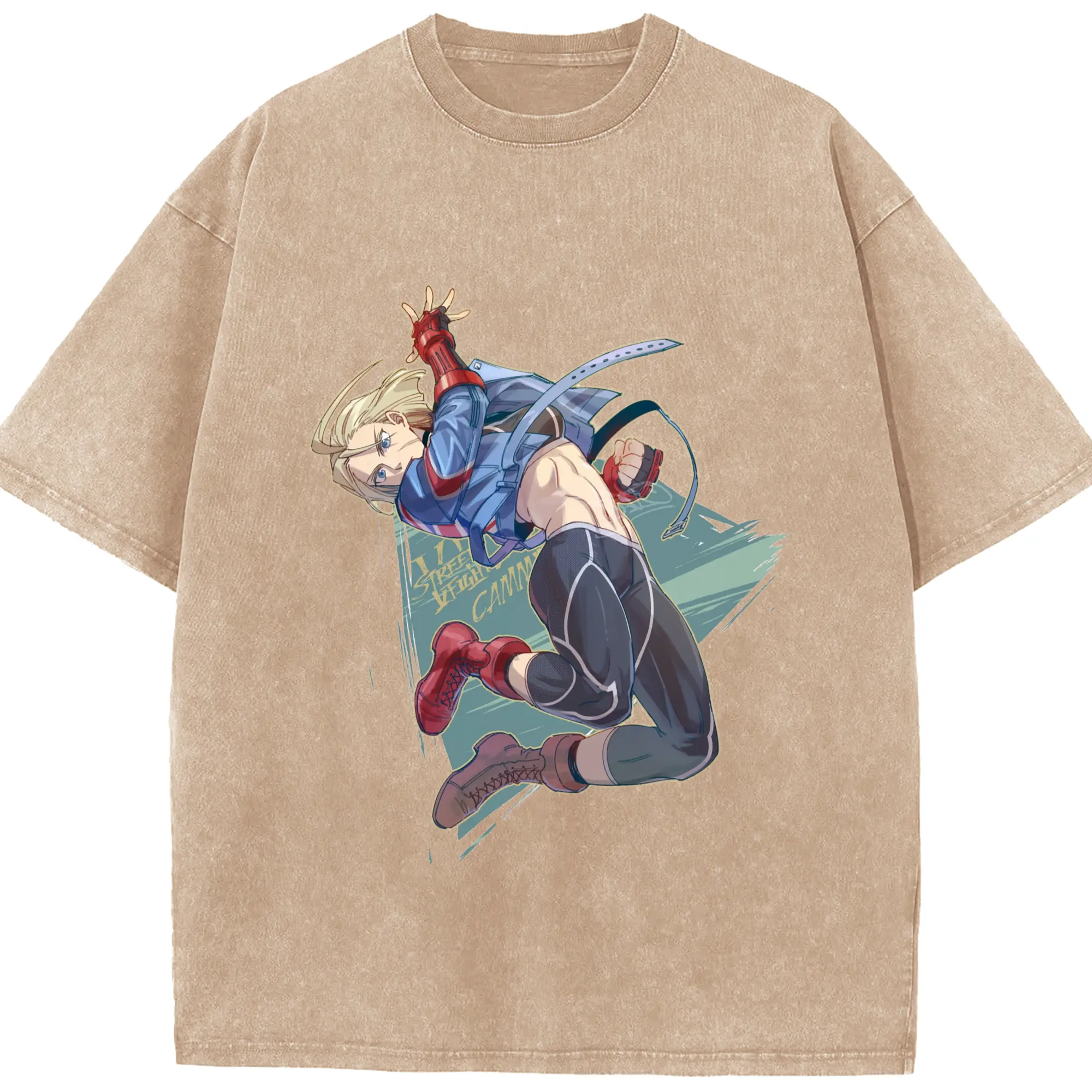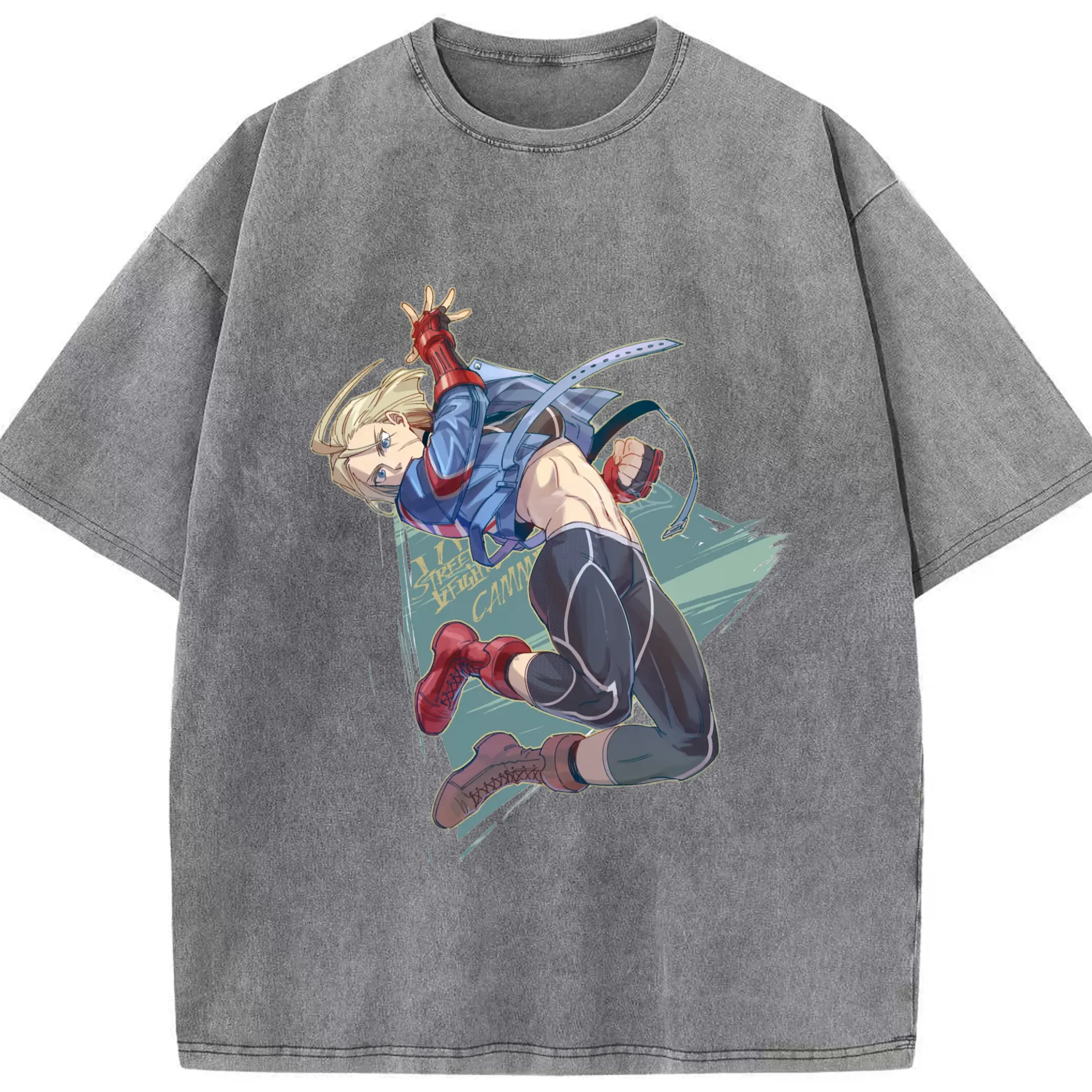 Street fighter Cammy t-shirt​ - Washed Vintage Look 230g Cotton Oversized T-Shirt With Front Heat Transfer Print – Soft, Lightweight, Stylish Fit – Comfortable Casual Wear For Sports & Everyday Use