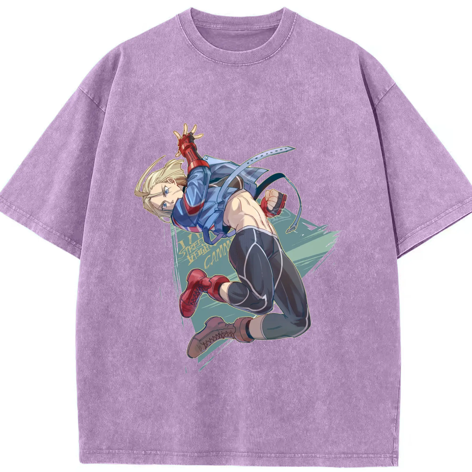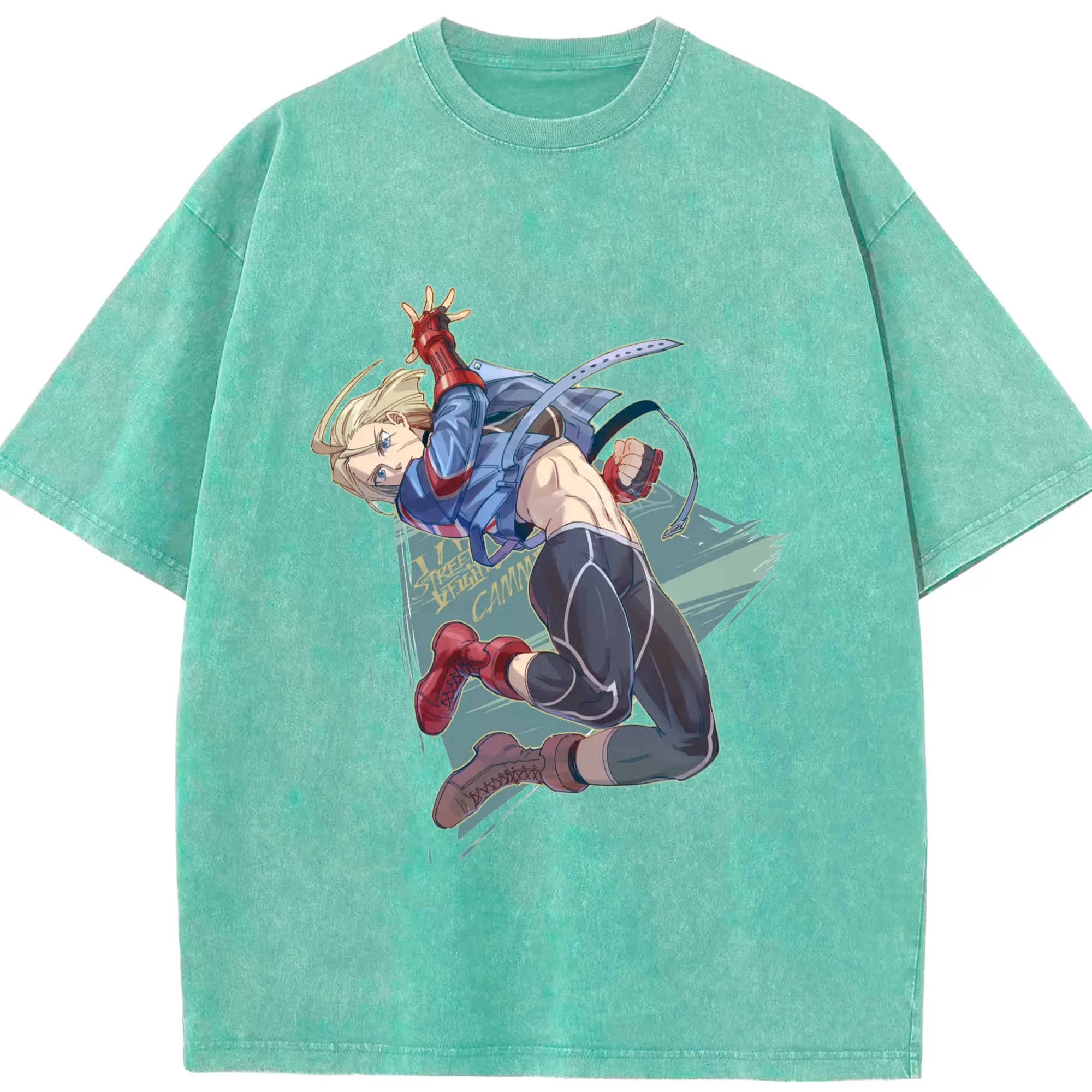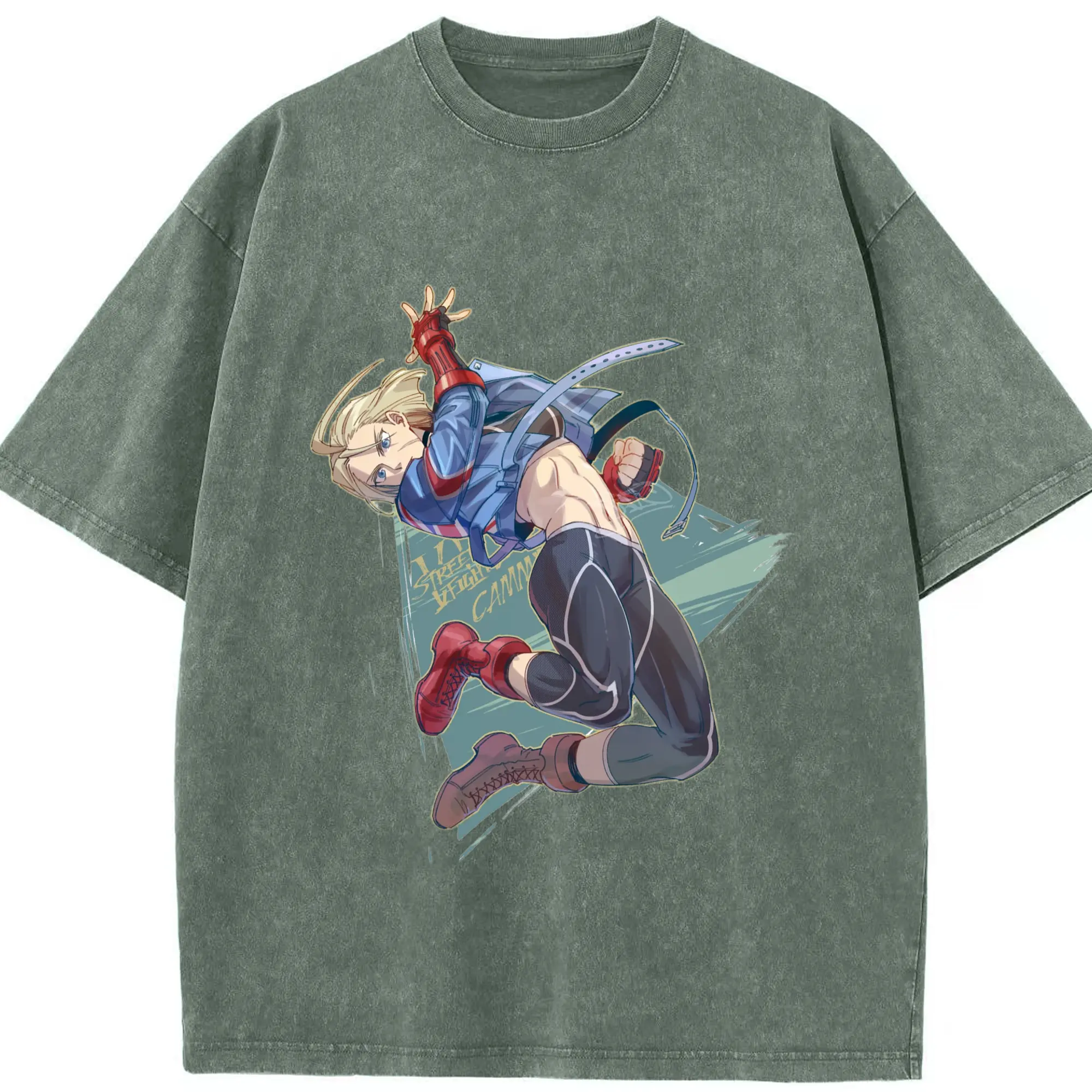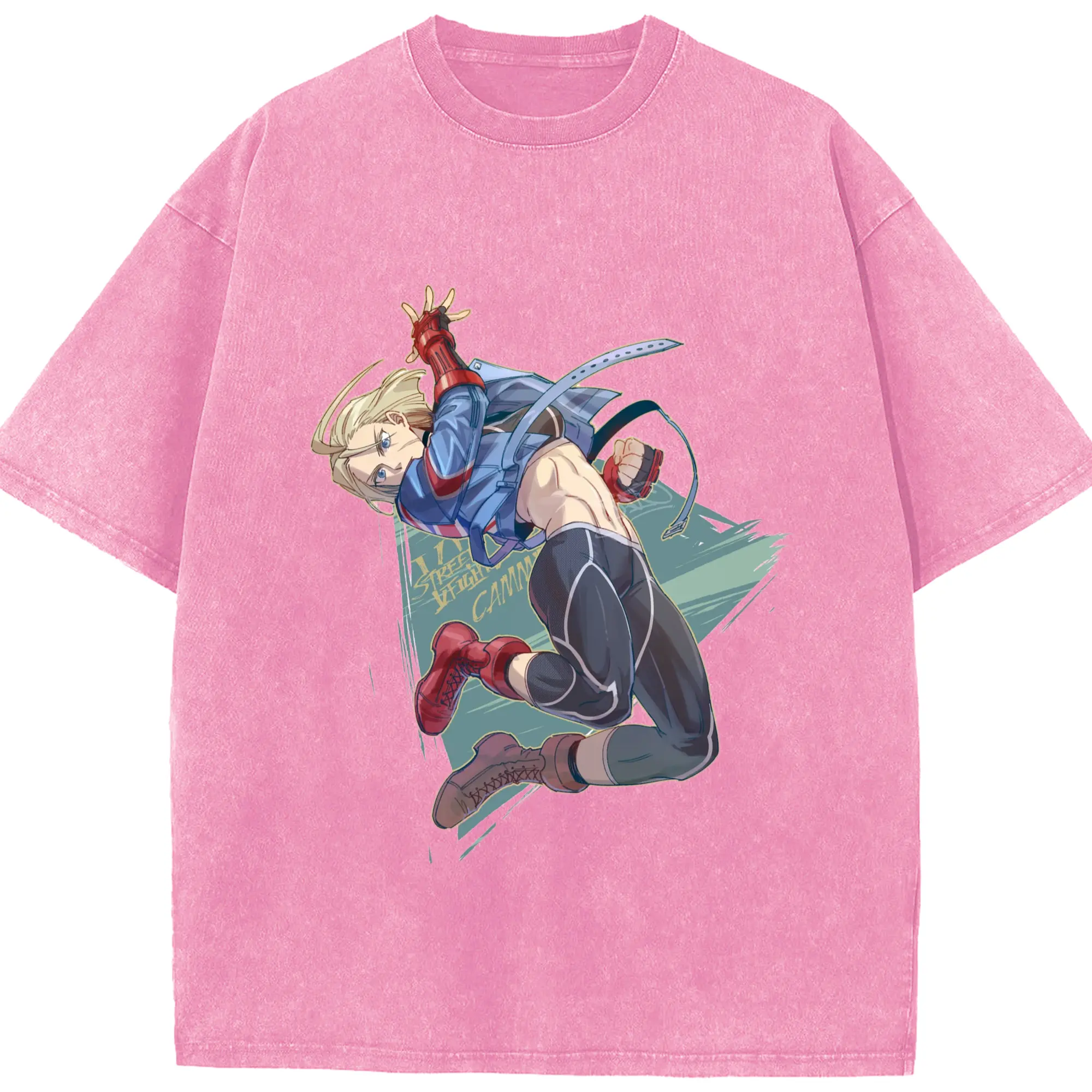 Street fighter Cammy t-shirt​ - Washed Vintage Look 230g Cotton Oversized T-Shirt With Front Heat Transfer Print – Soft, Lightweight, Stylish Fit – Comfortable Casual Wear For Sports & Everyday Use