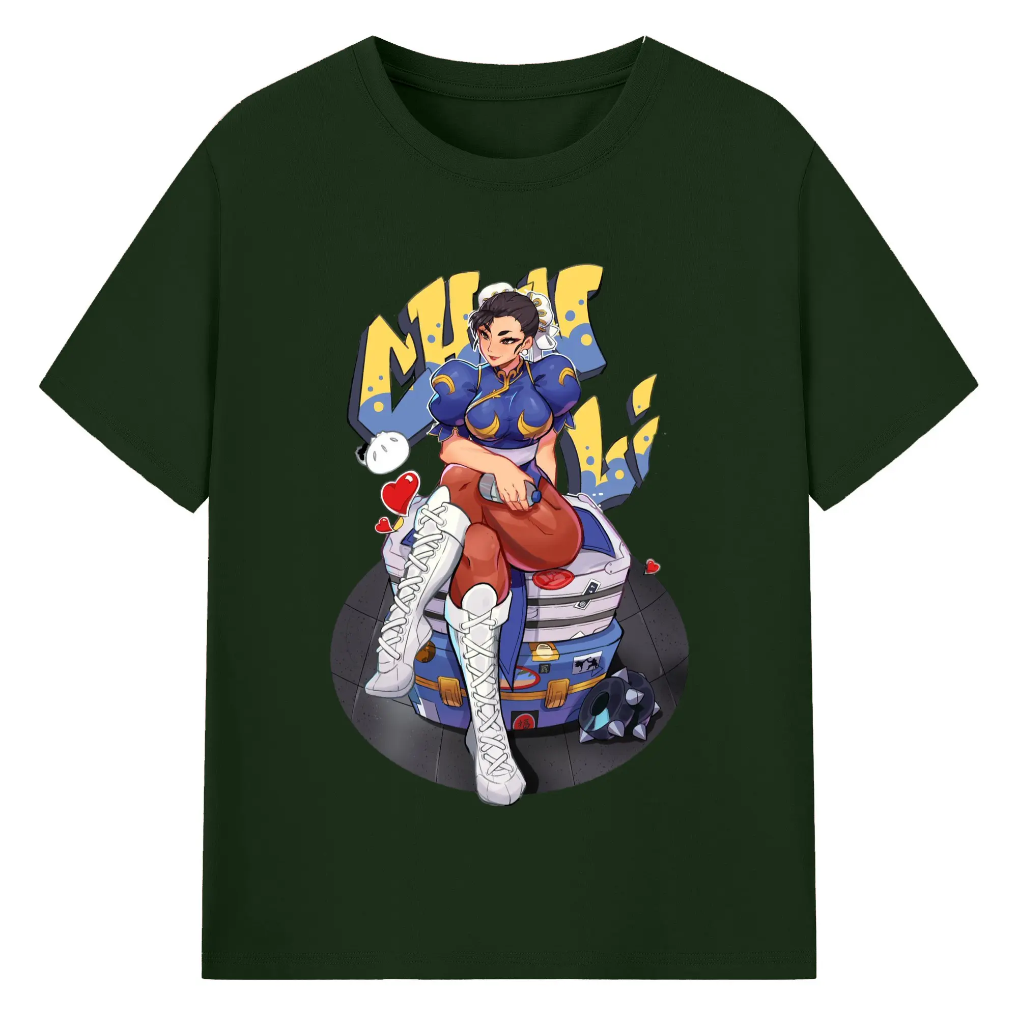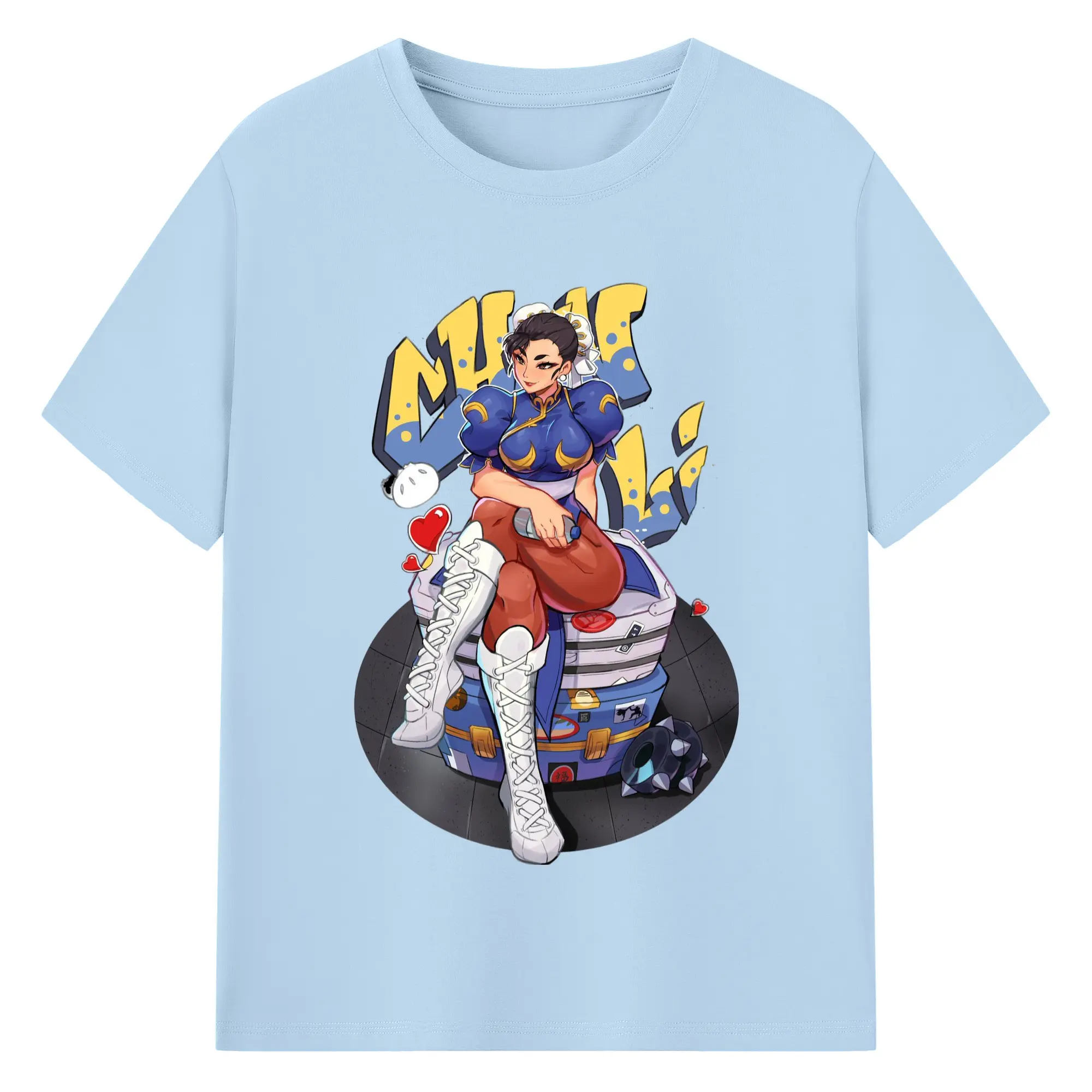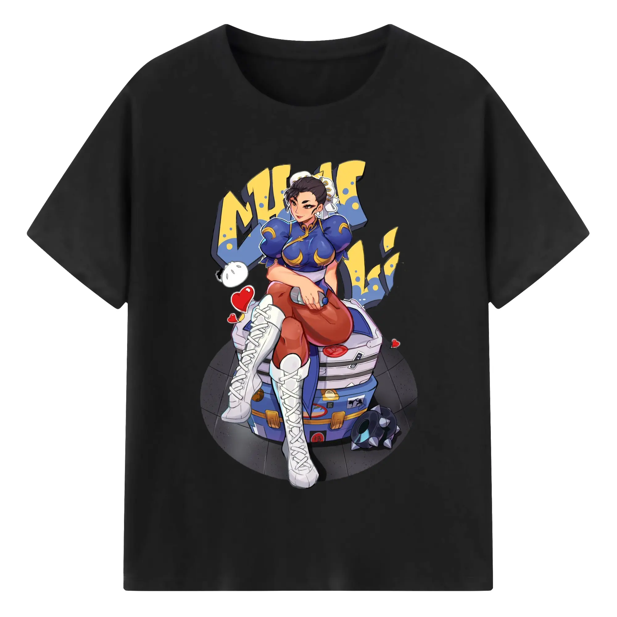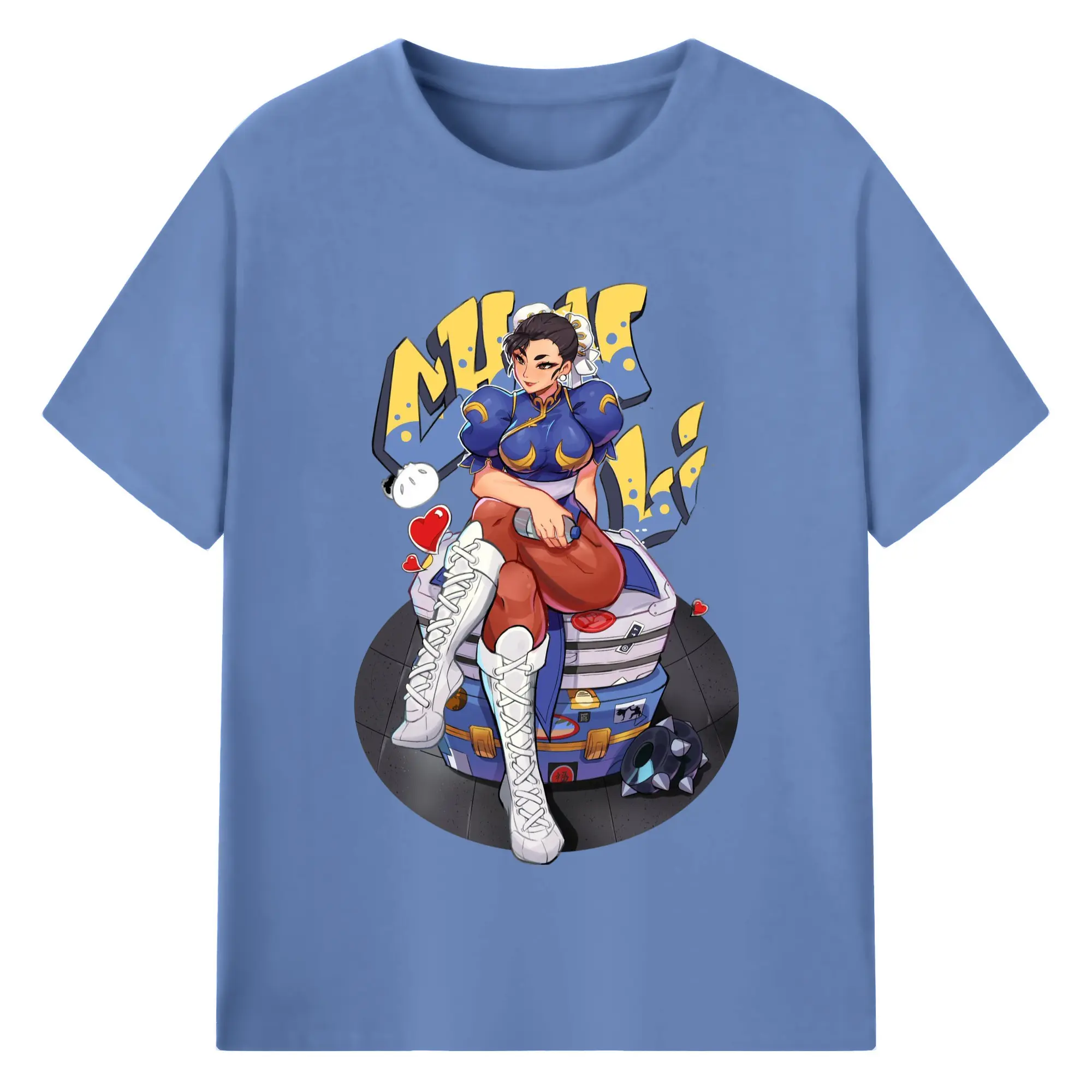 Street fighter chun li t-shirt​ - 180g Cotton T-Shirt With Front Heat Transfer Print – Soft, Lightweight, Fitted Design – Comfortable Casual Wear For Sports & Everyday Use