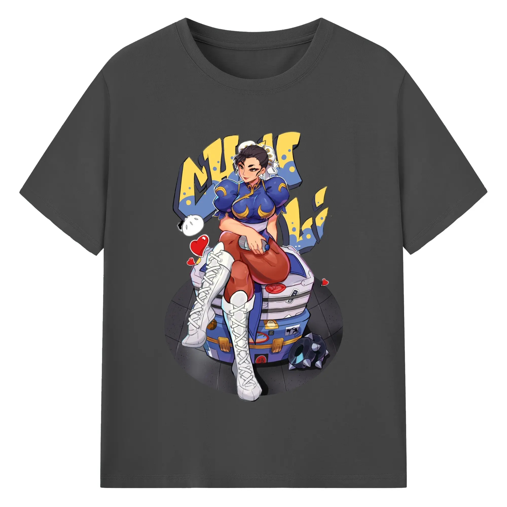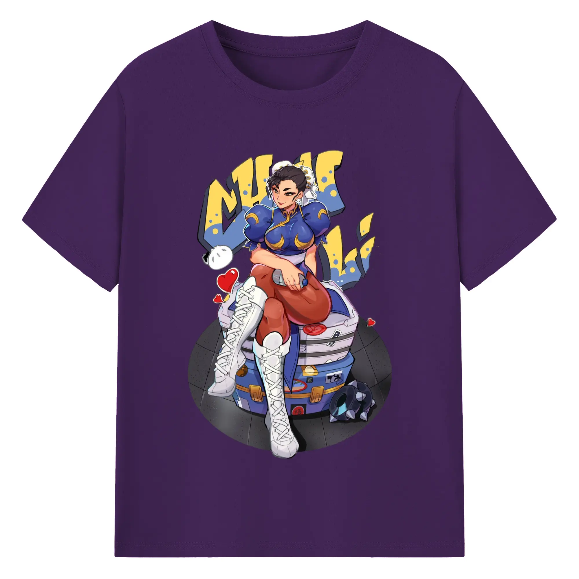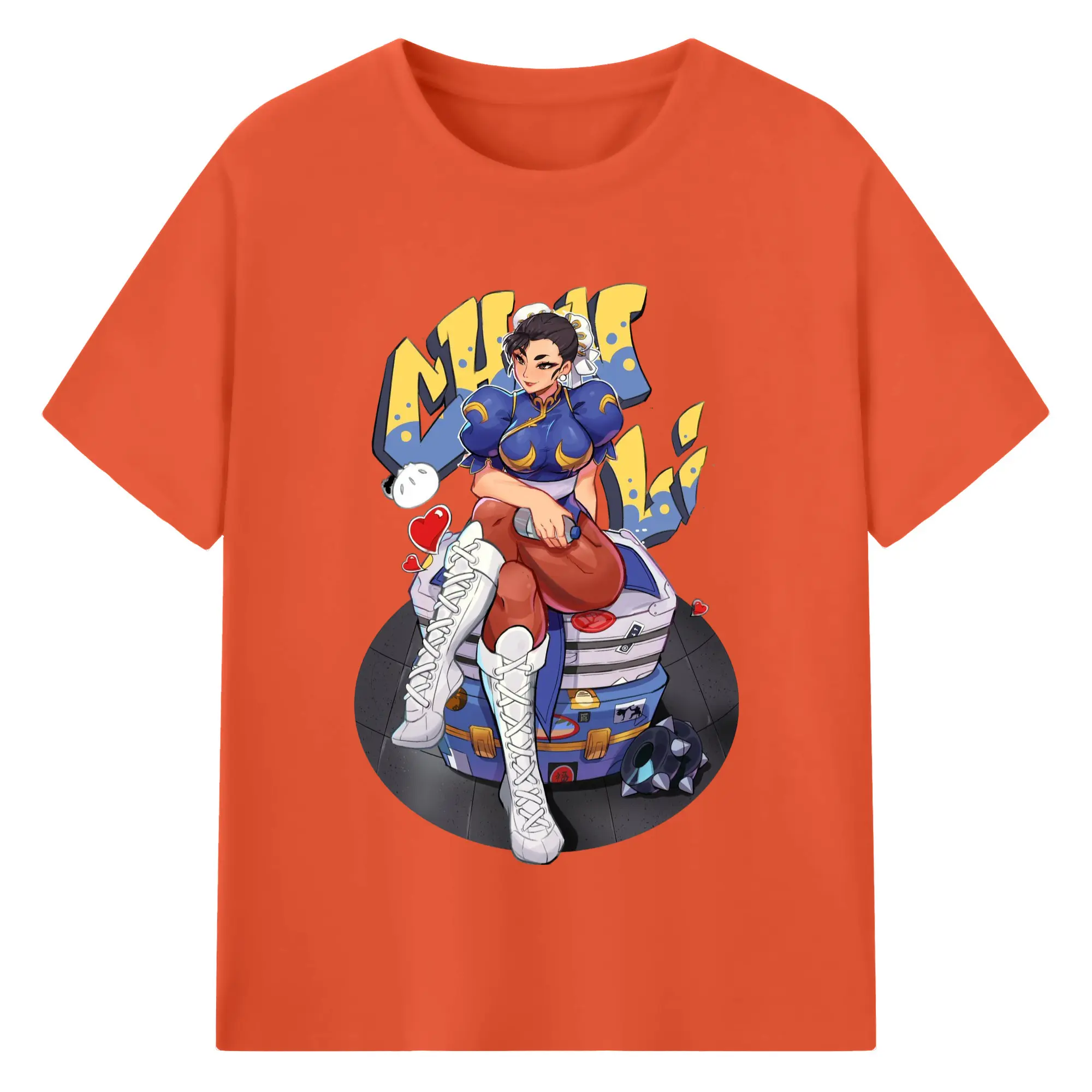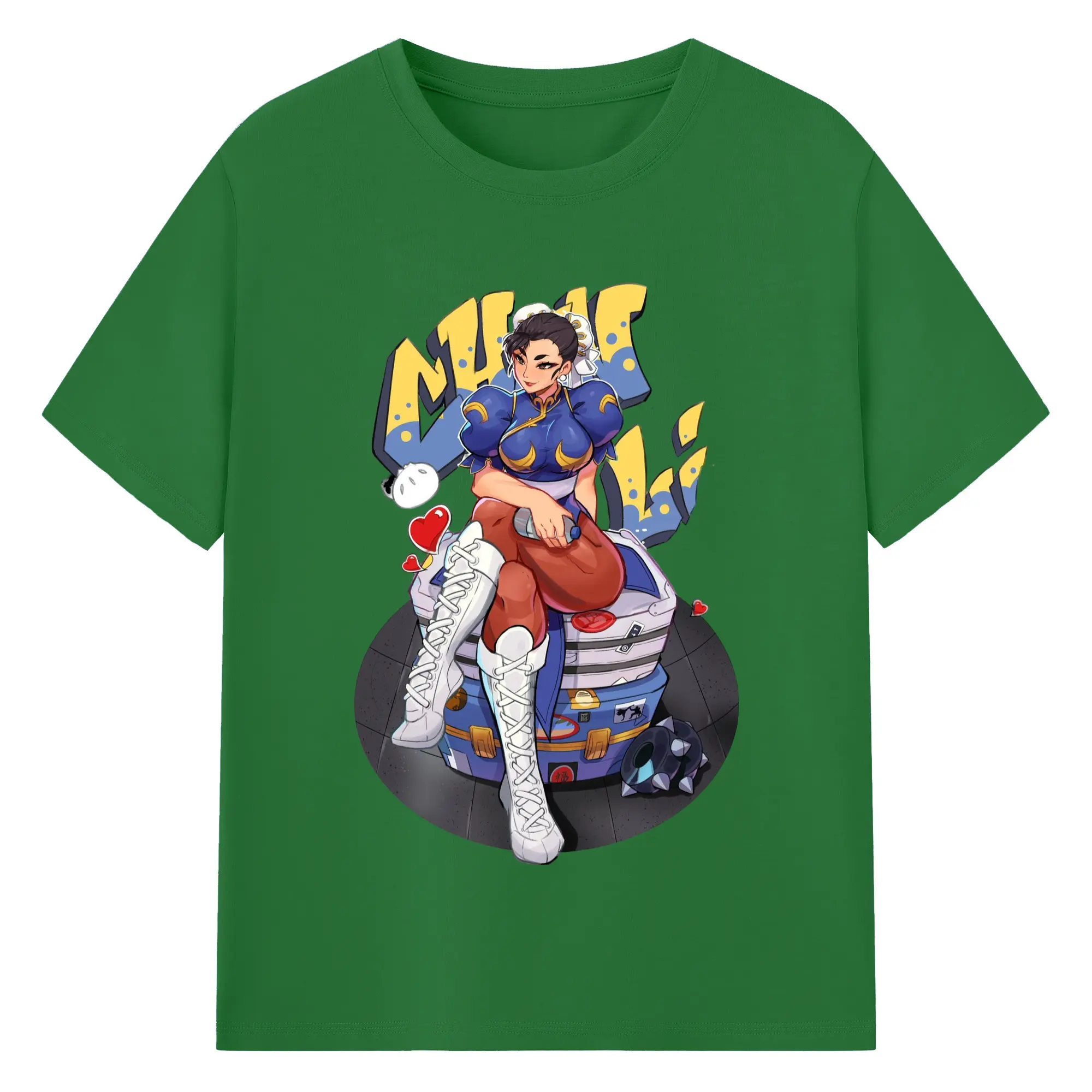 Street fighter chun li t-shirt​ - 180g Cotton T-Shirt With Front Heat Transfer Print – Soft, Lightweight, Fitted Design – Comfortable Casual Wear For Sports & Everyday Use