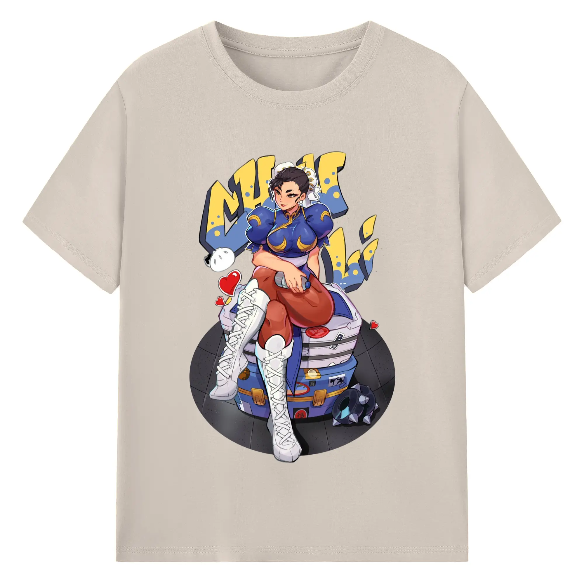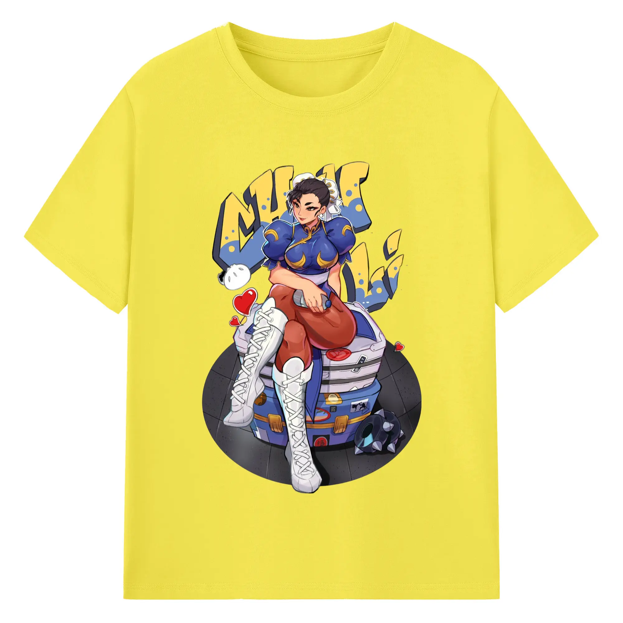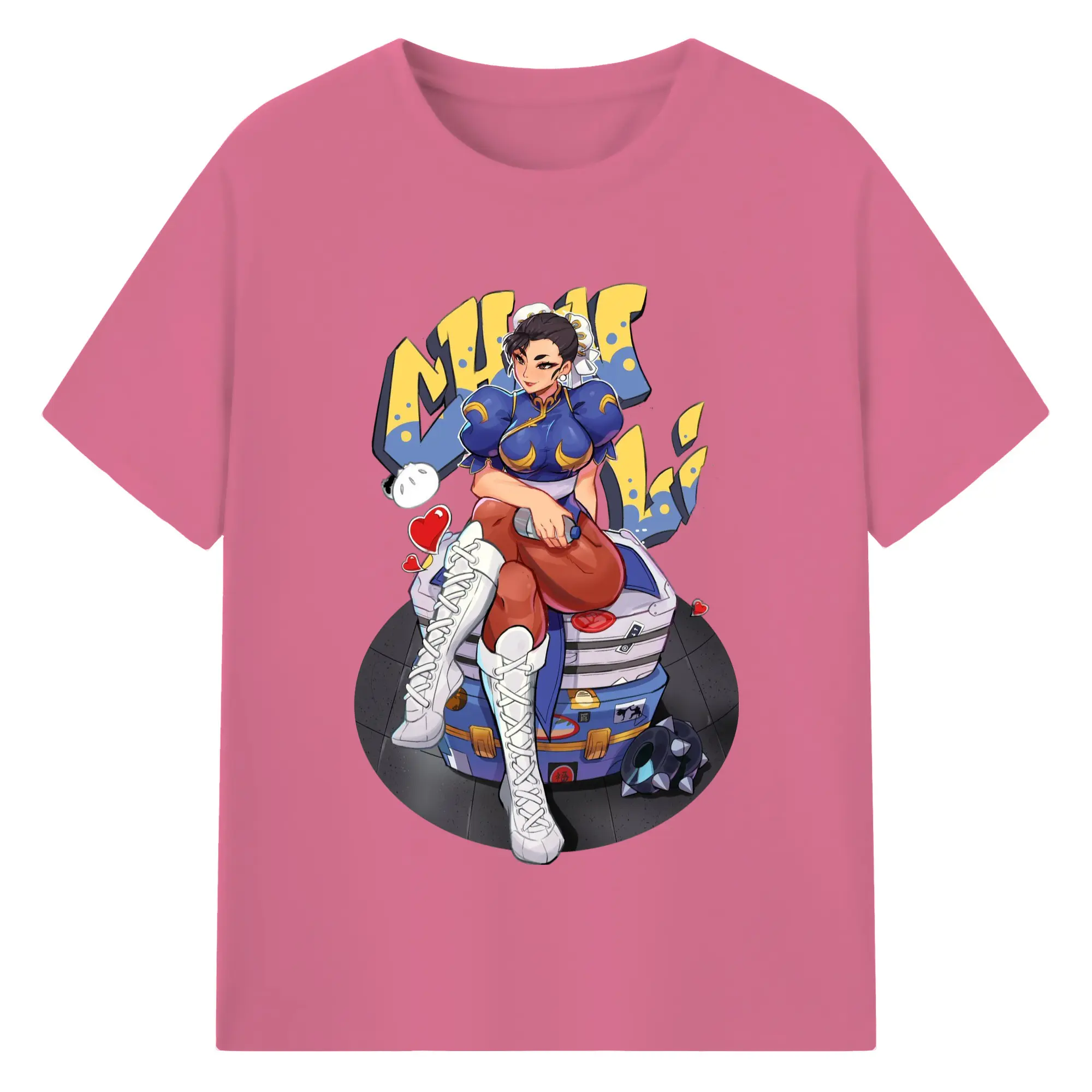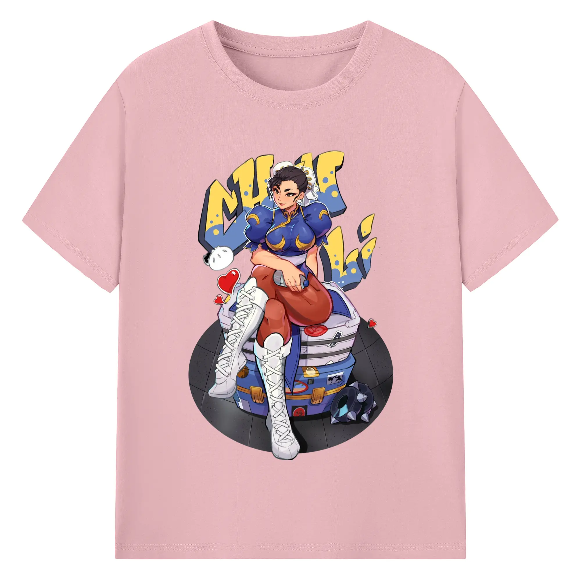 Street fighter chun li t-shirt​ - 180g Cotton T-Shirt With Front Heat Transfer Print – Soft, Lightweight, Fitted Design – Comfortable Casual Wear For Sports & Everyday Use
