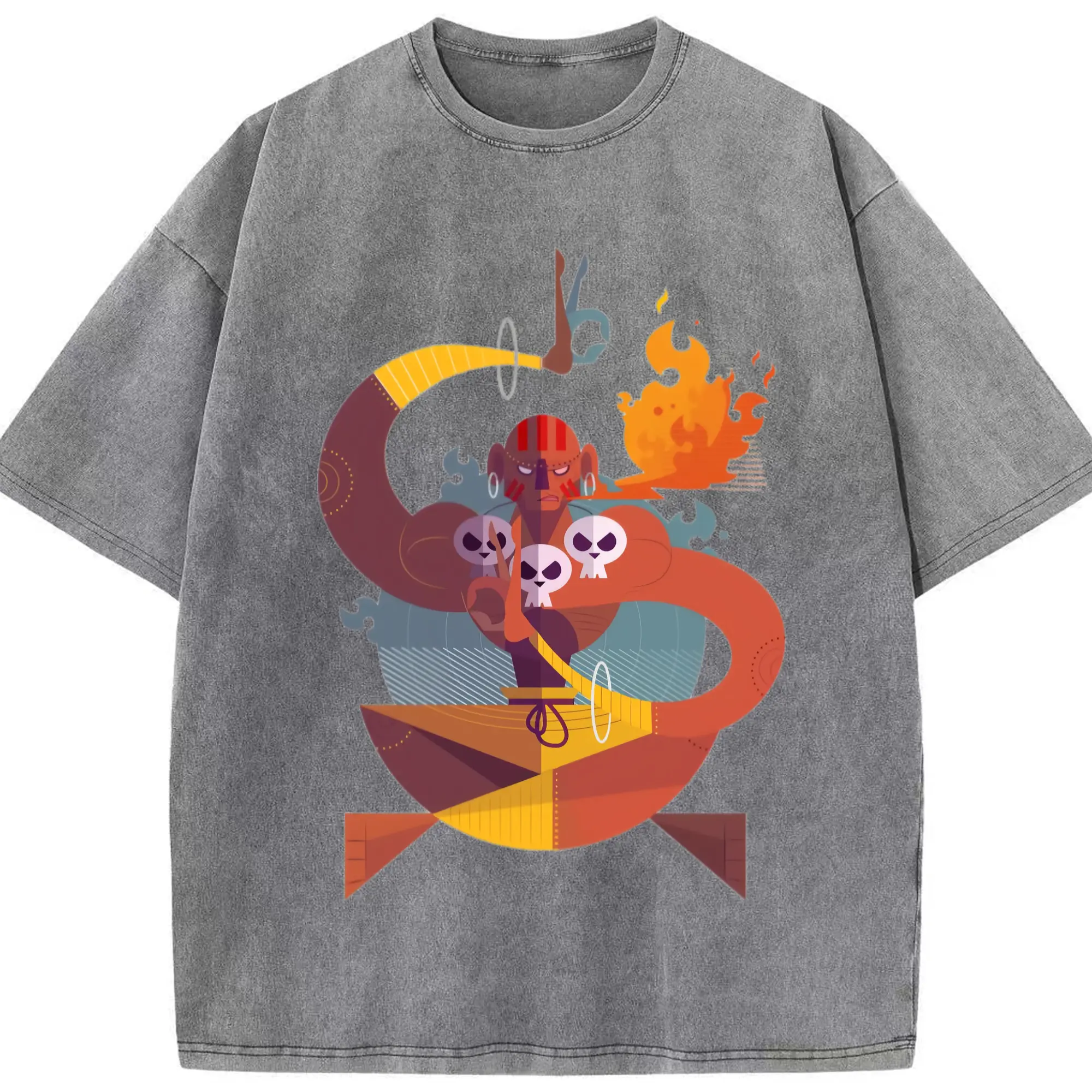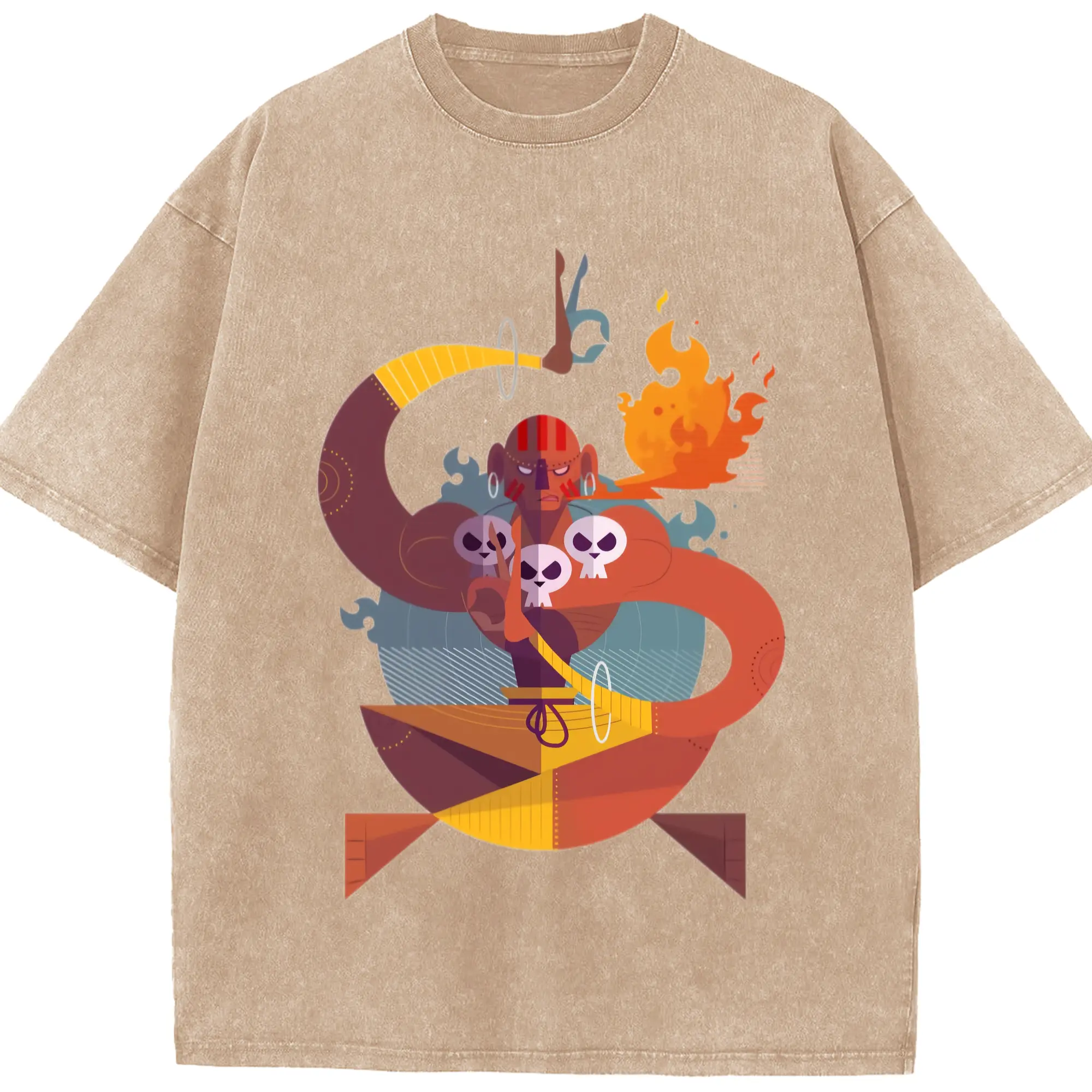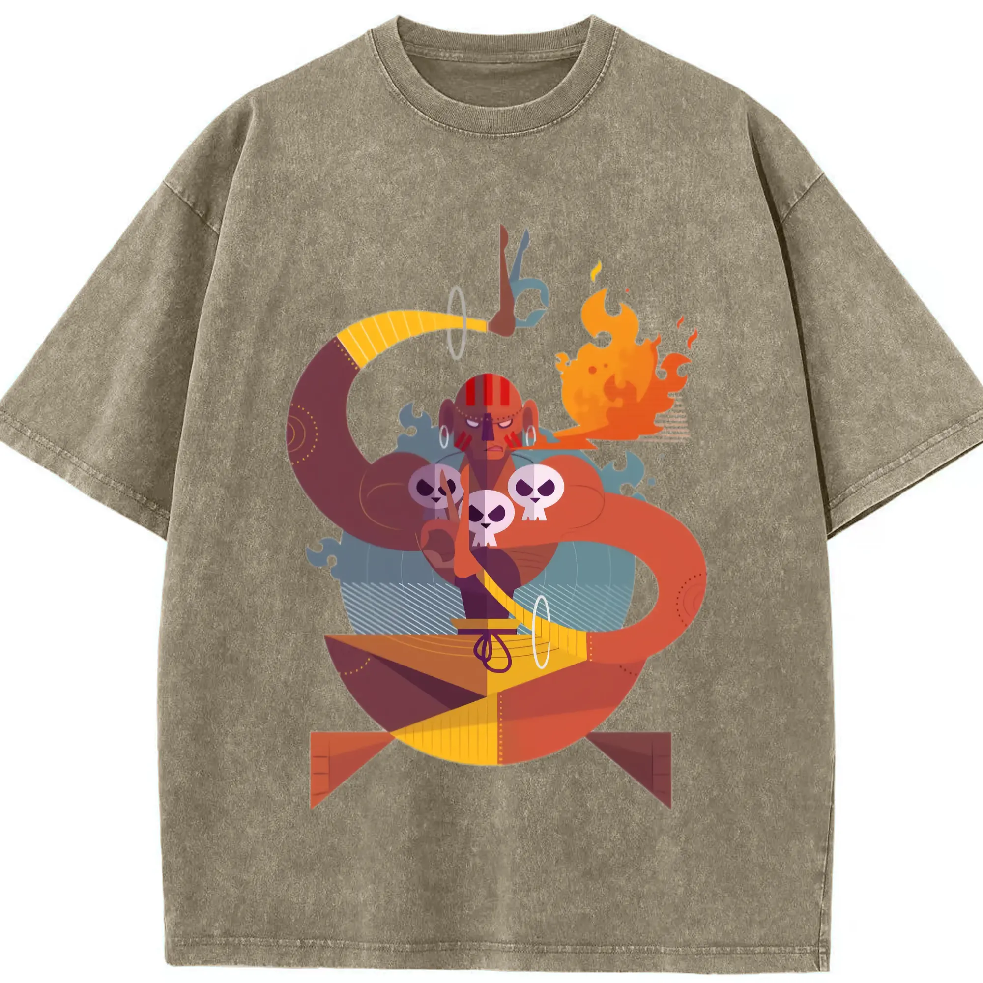 Street fighter dhalsim tee - Washed Vintage Look 230g Cotton Oversized T-Shirt With Front Heat Transfer Print – Soft, Lightweight, Stylish Fit – Comfortable Casual Wear For Sports & Everyday Use