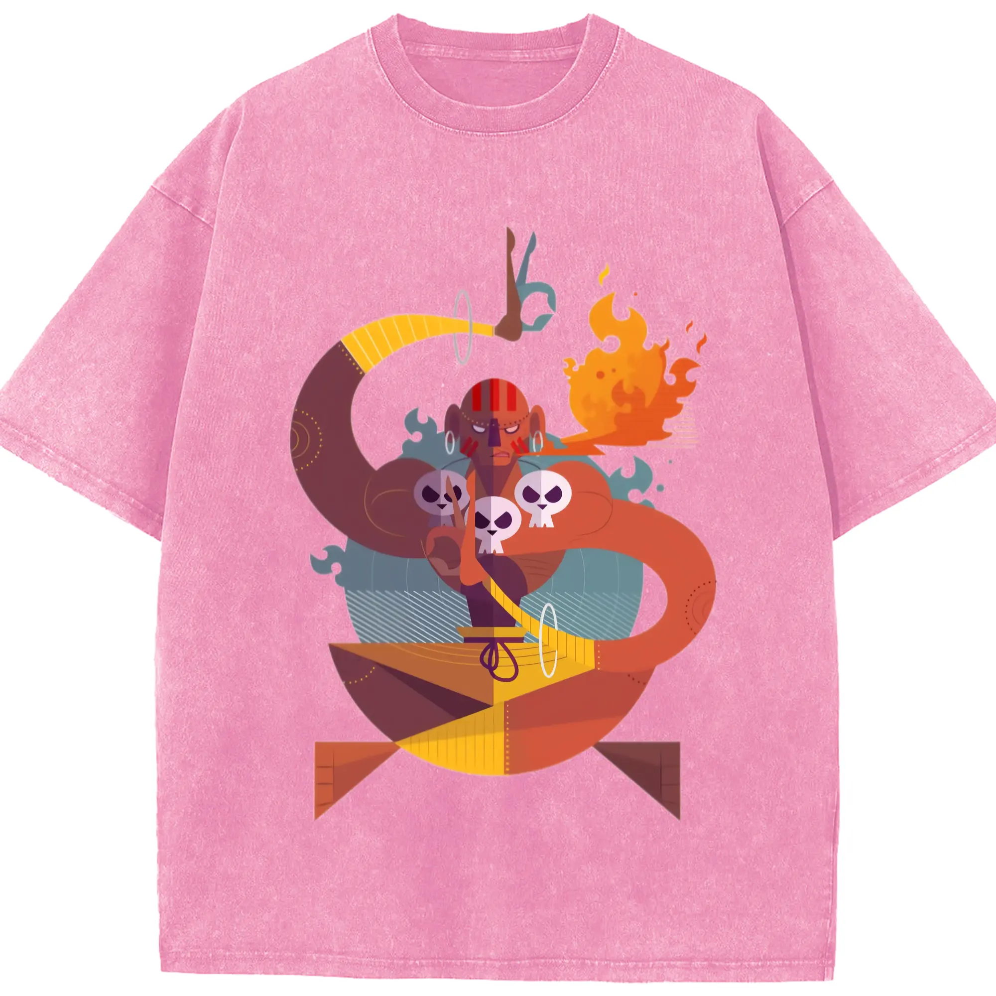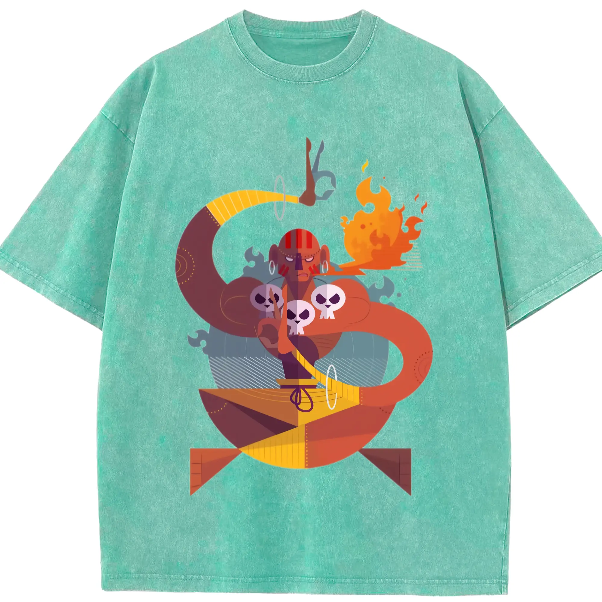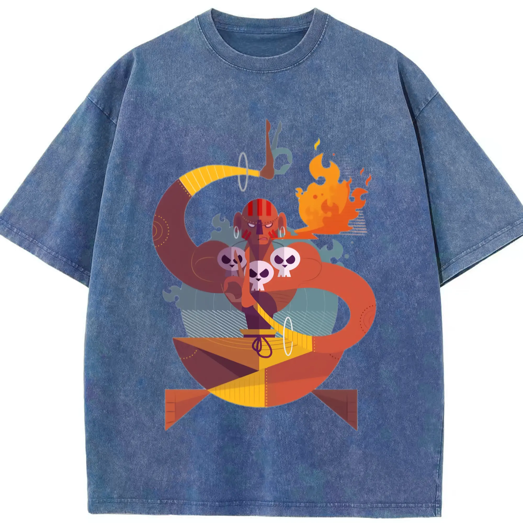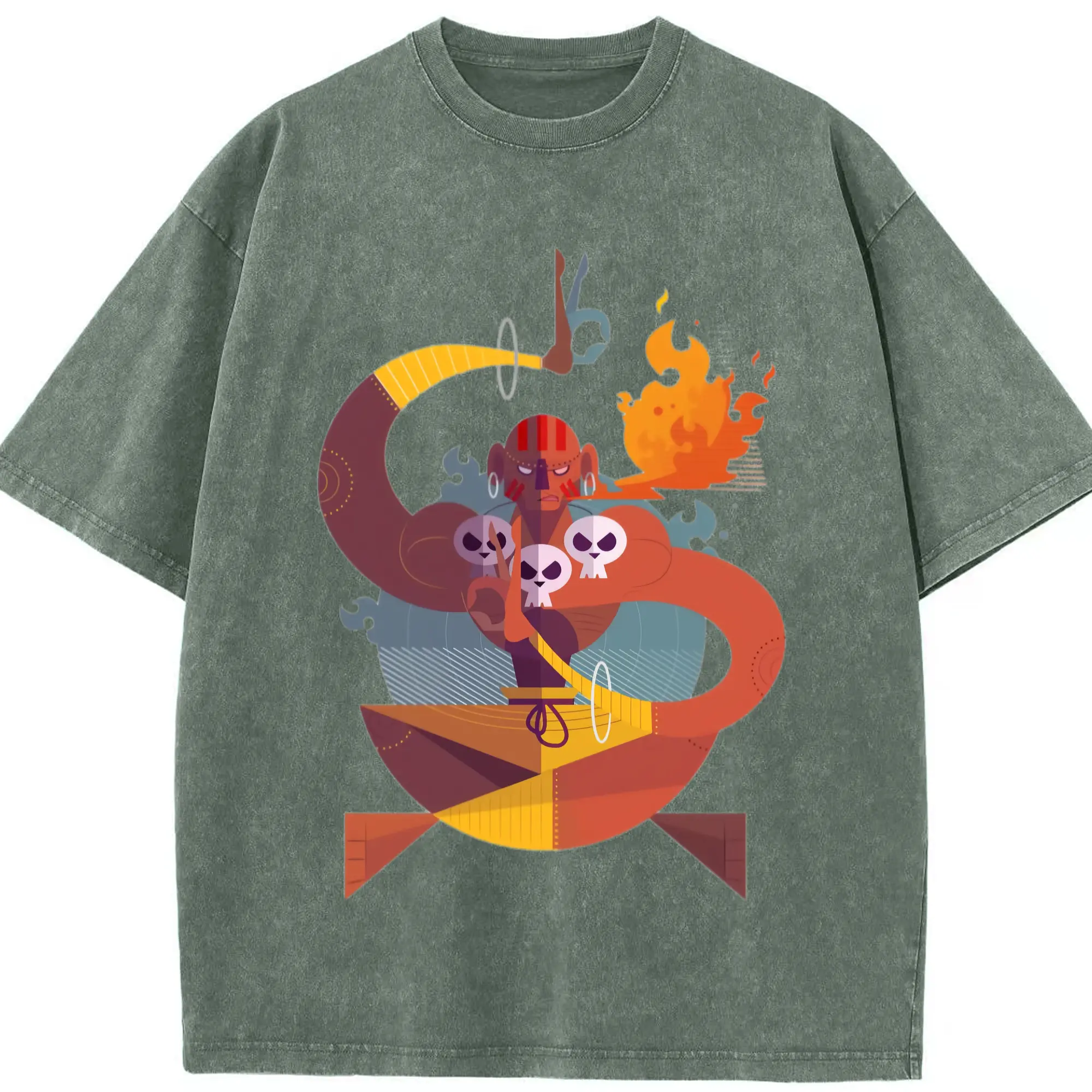 Street fighter dhalsim tee - Washed Vintage Look 230g Cotton Oversized T-Shirt With Front Heat Transfer Print – Soft, Lightweight, Stylish Fit – Comfortable Casual Wear For Sports & Everyday Use