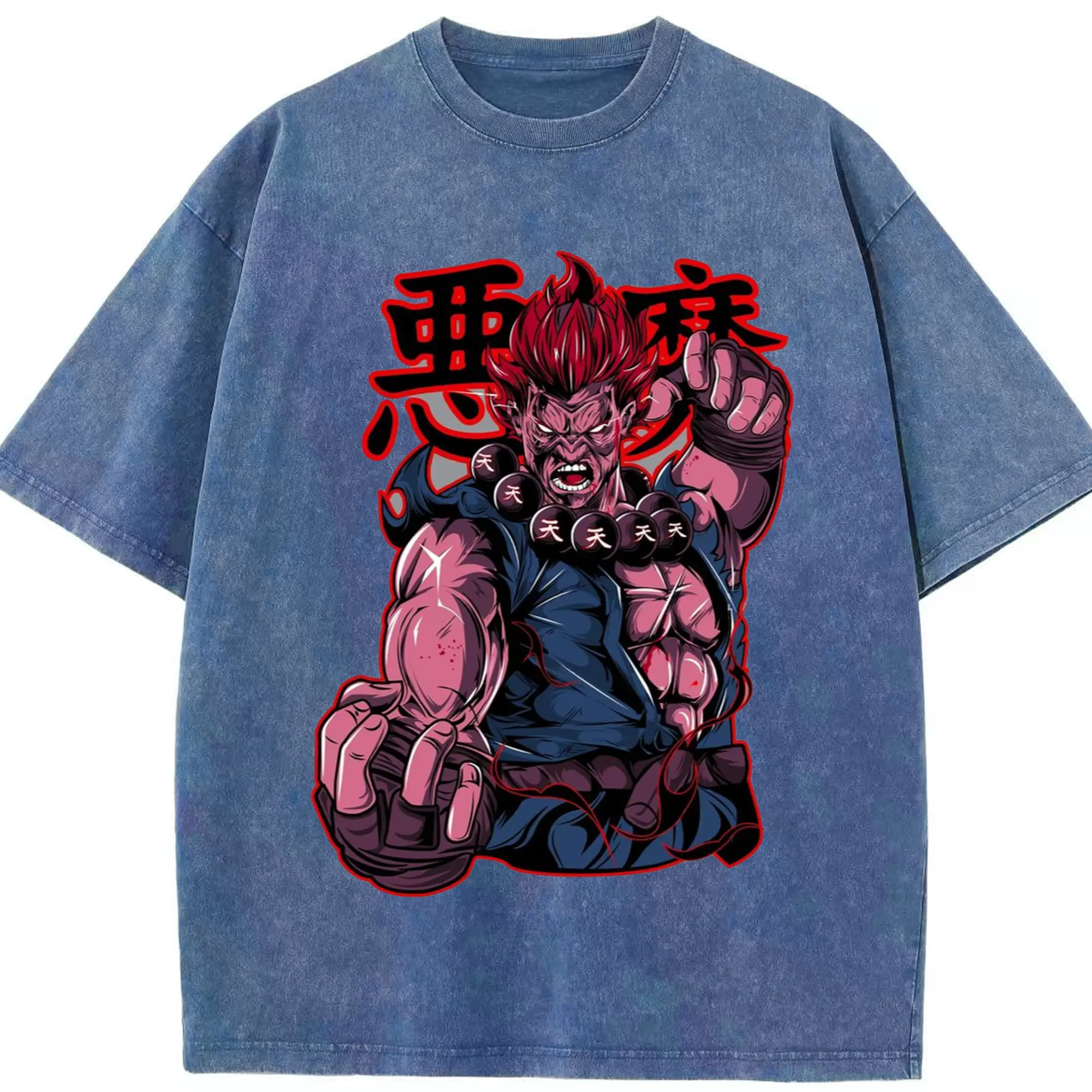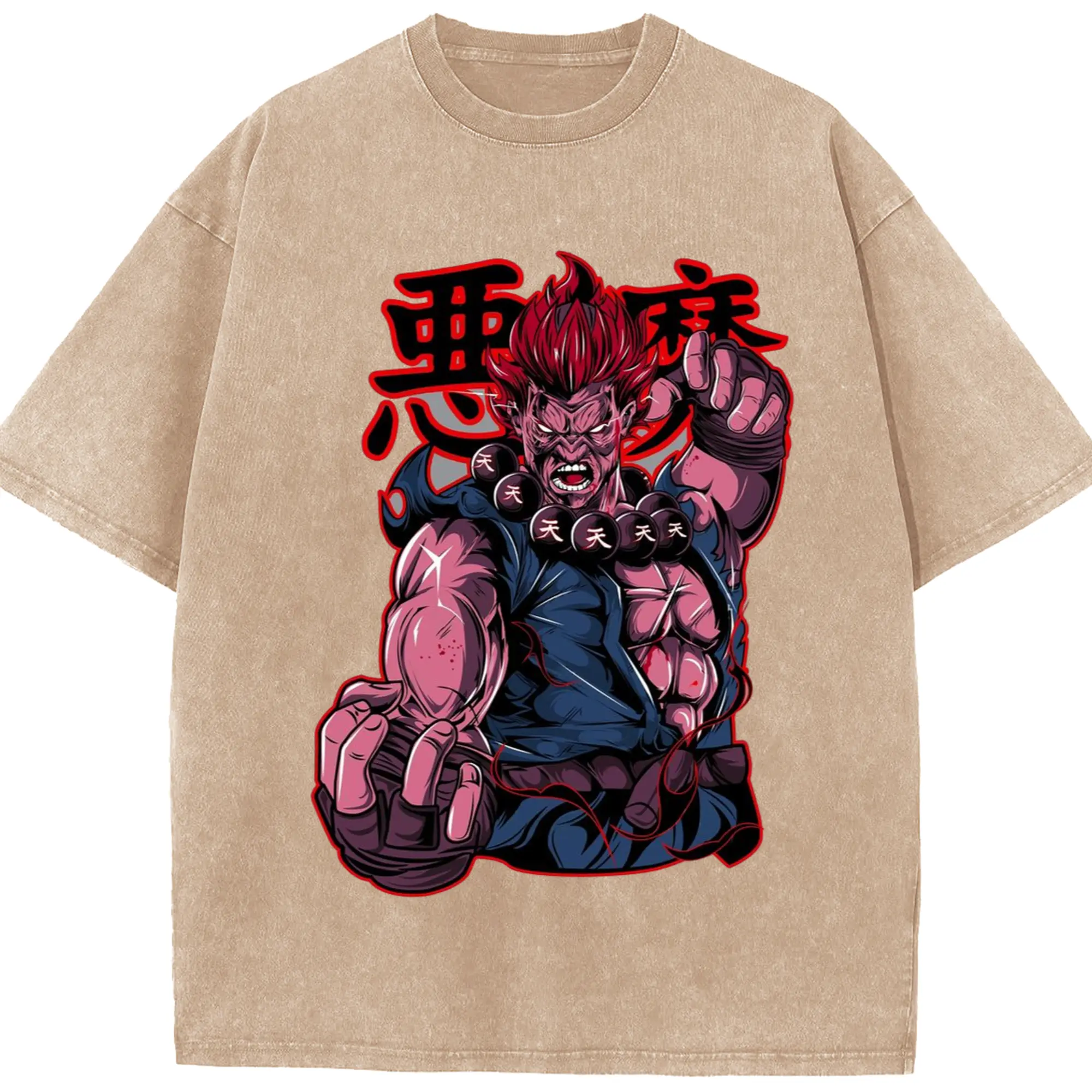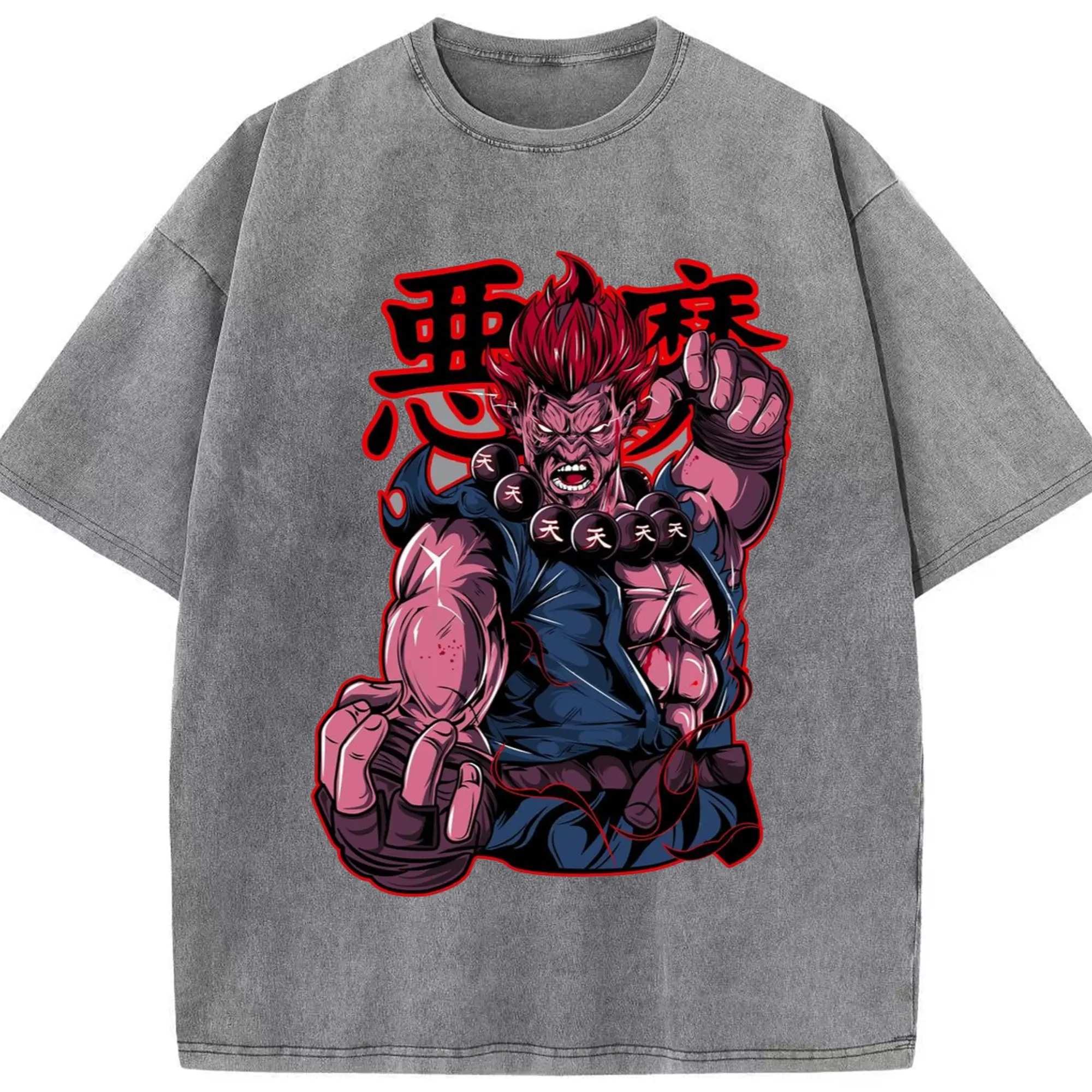 Street fighter gouki t shirt​ - Washed Vintage Look 230g Cotton Oversized T-Shirt With Front Heat Transfer Print – Soft, Lightweight, Stylish Fit – Comfortable Casual Wear For Sports & Everyday Use