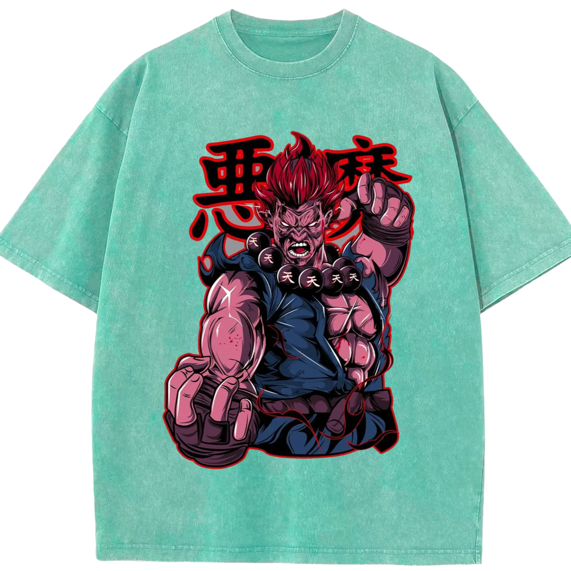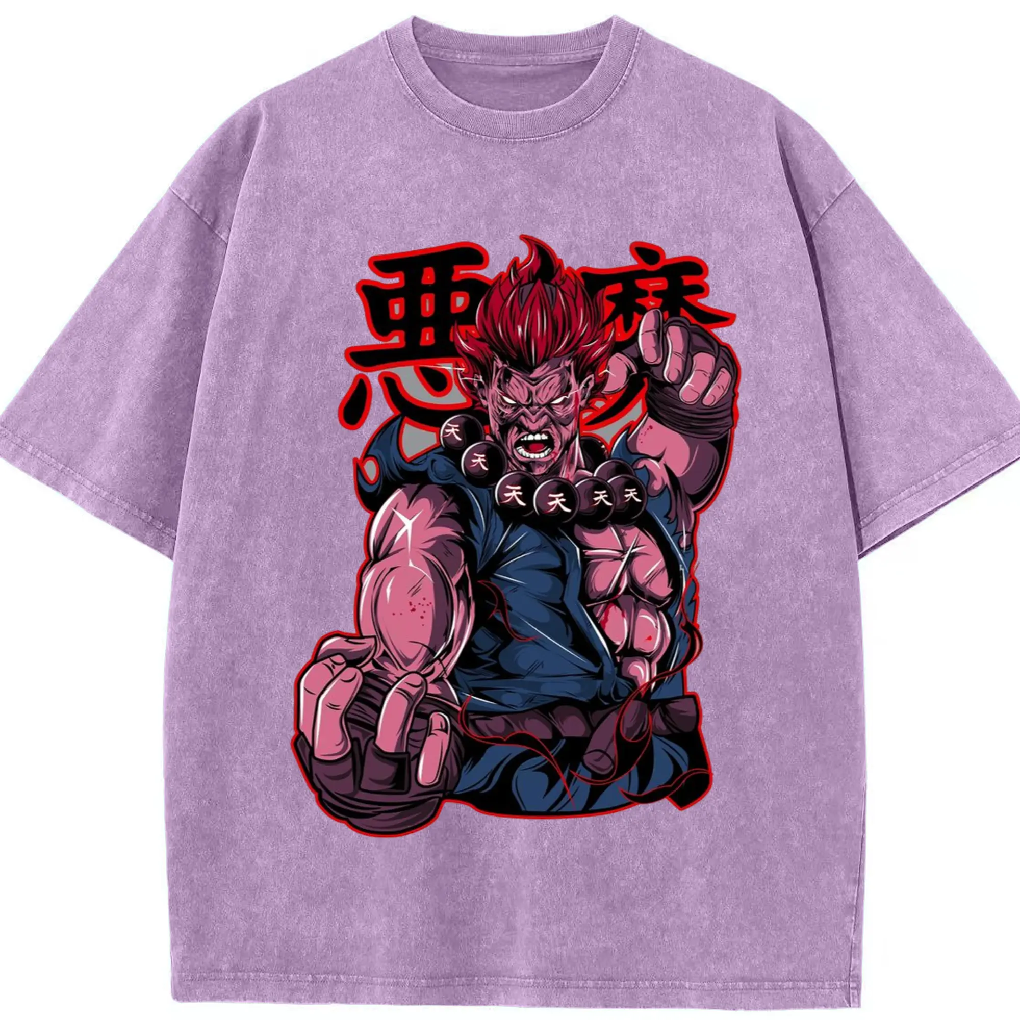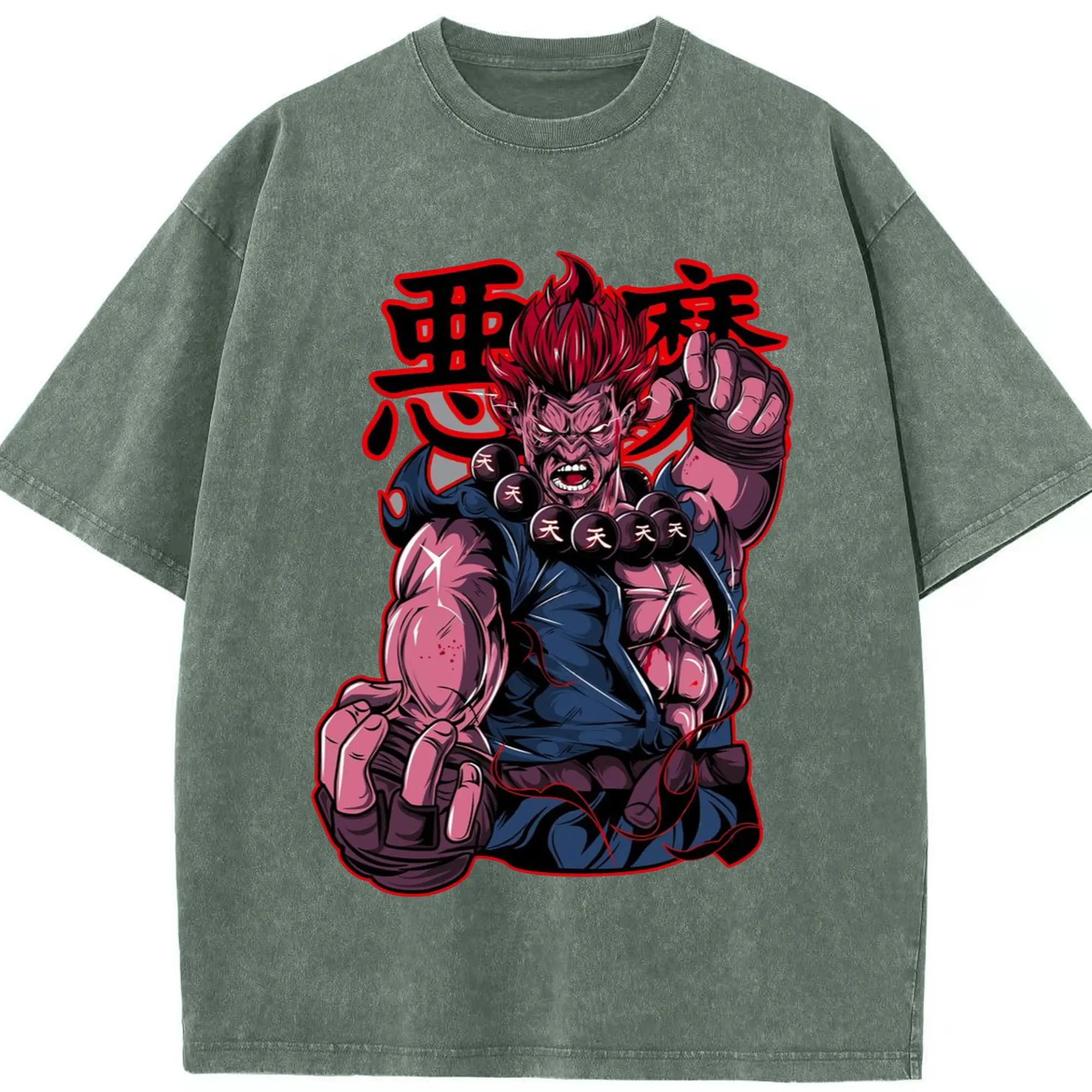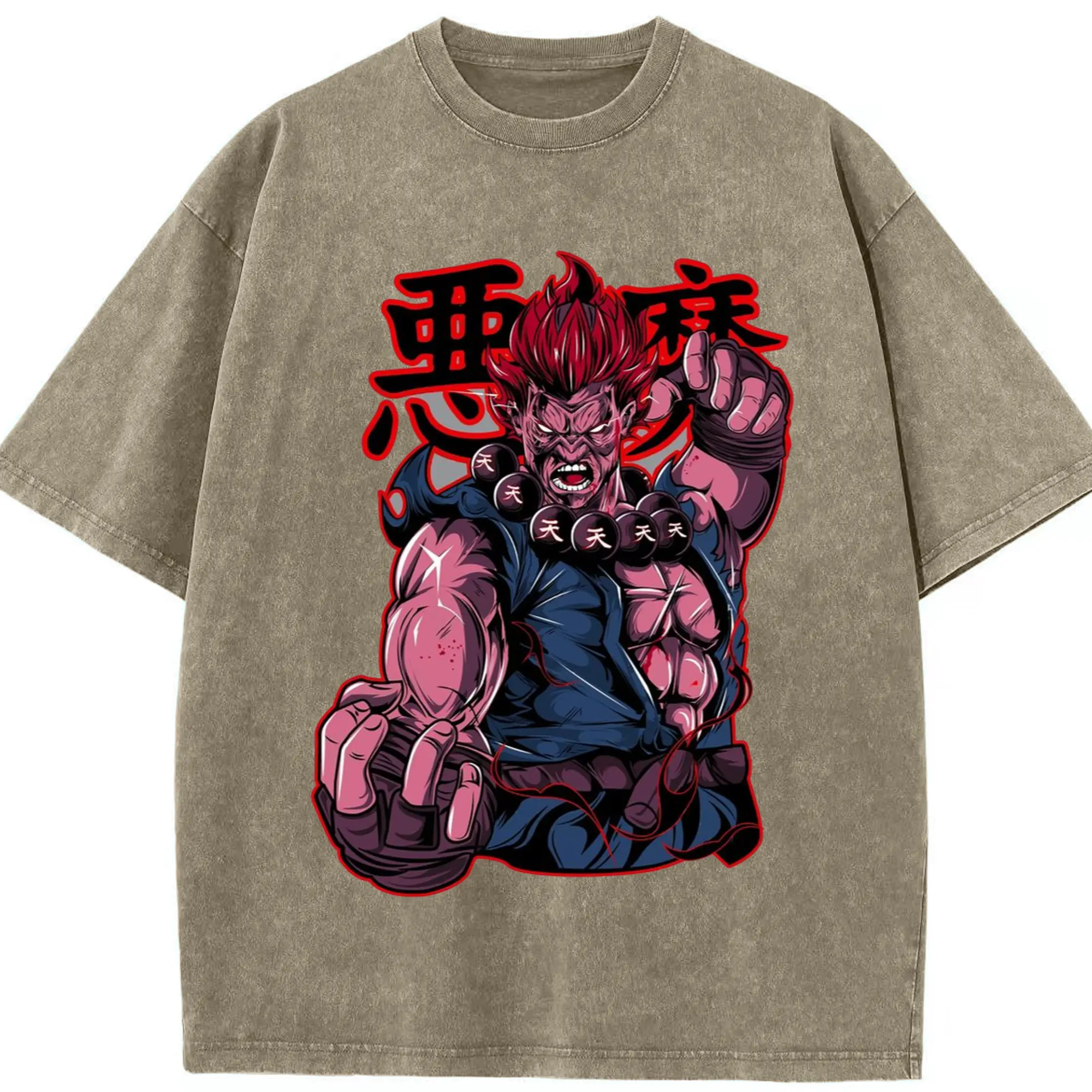 Street fighter gouki t shirt​ - Washed Vintage Look 230g Cotton Oversized T-Shirt With Front Heat Transfer Print – Soft, Lightweight, Stylish Fit – Comfortable Casual Wear For Sports & Everyday Use