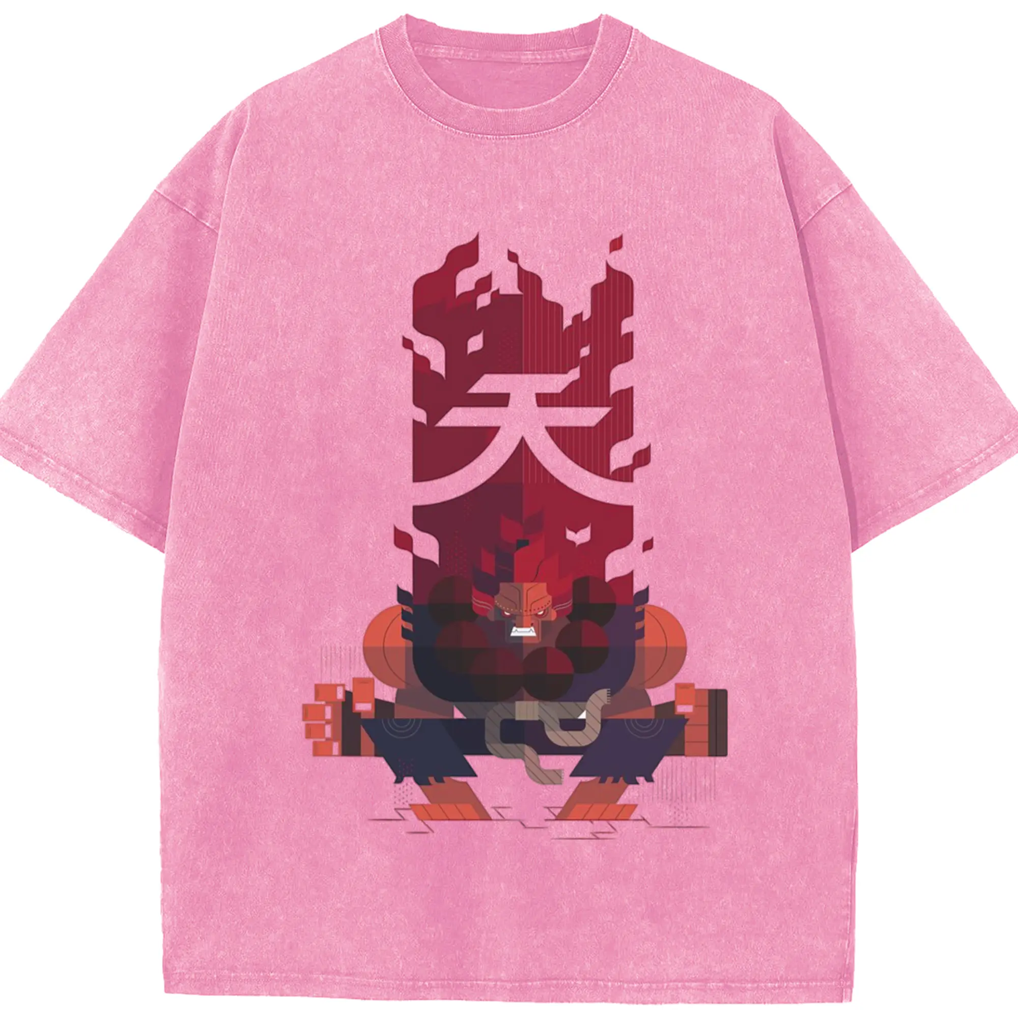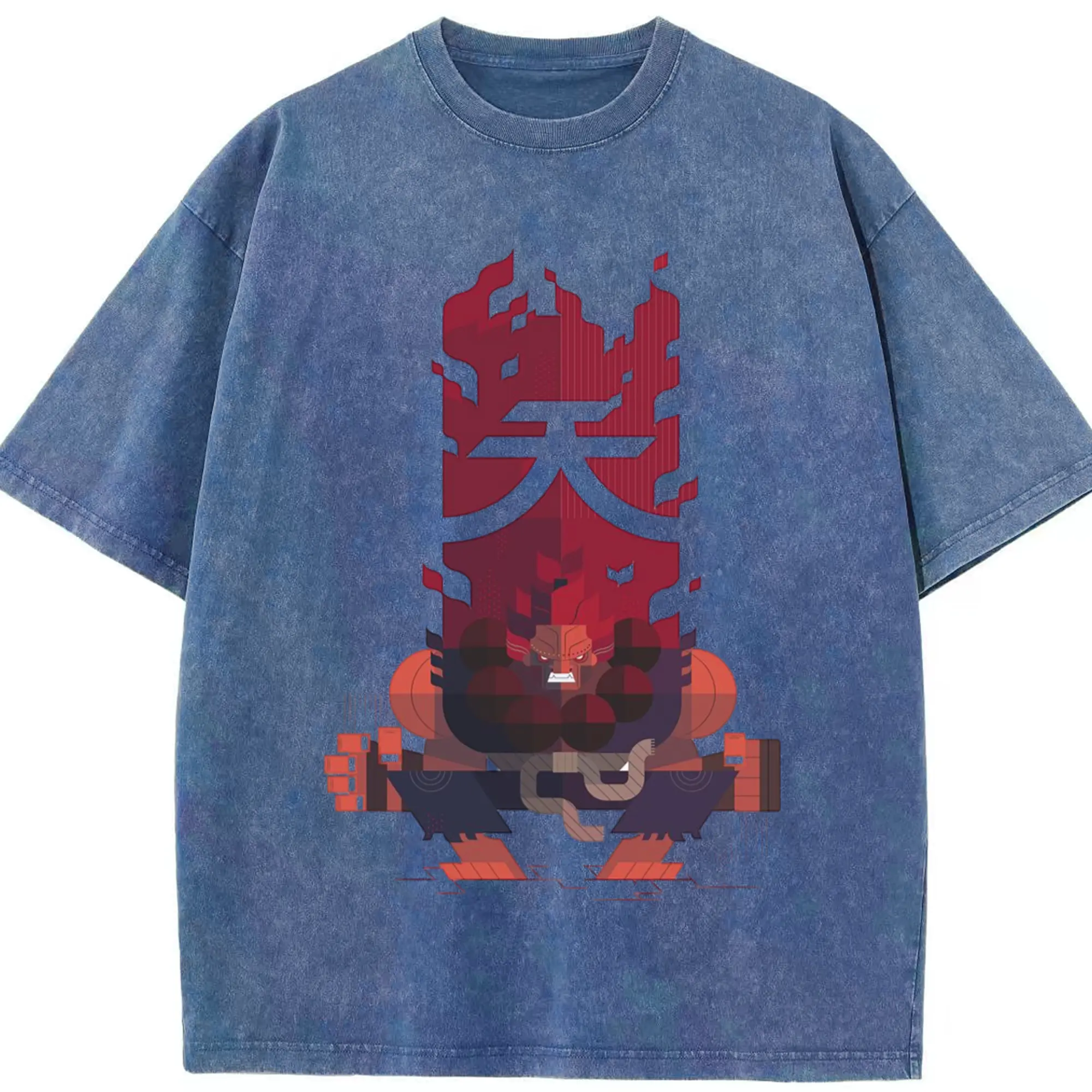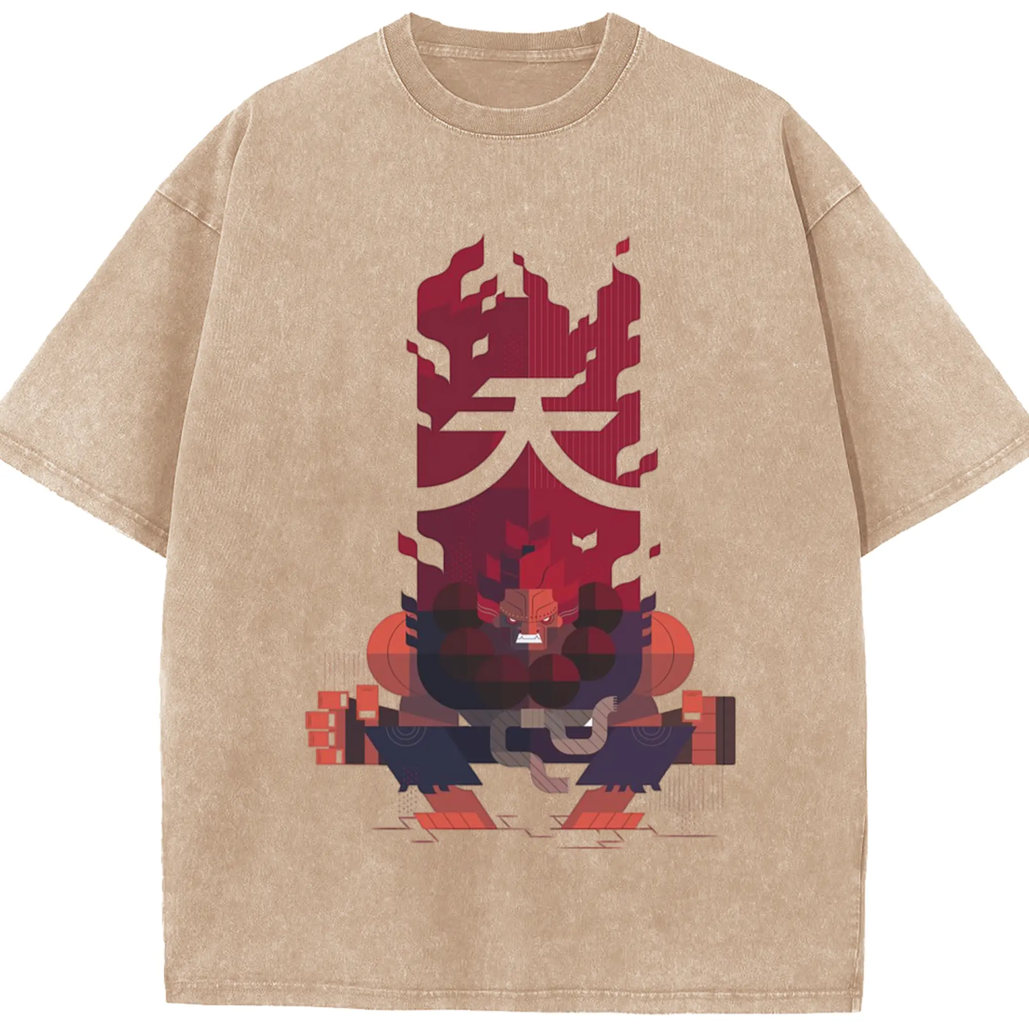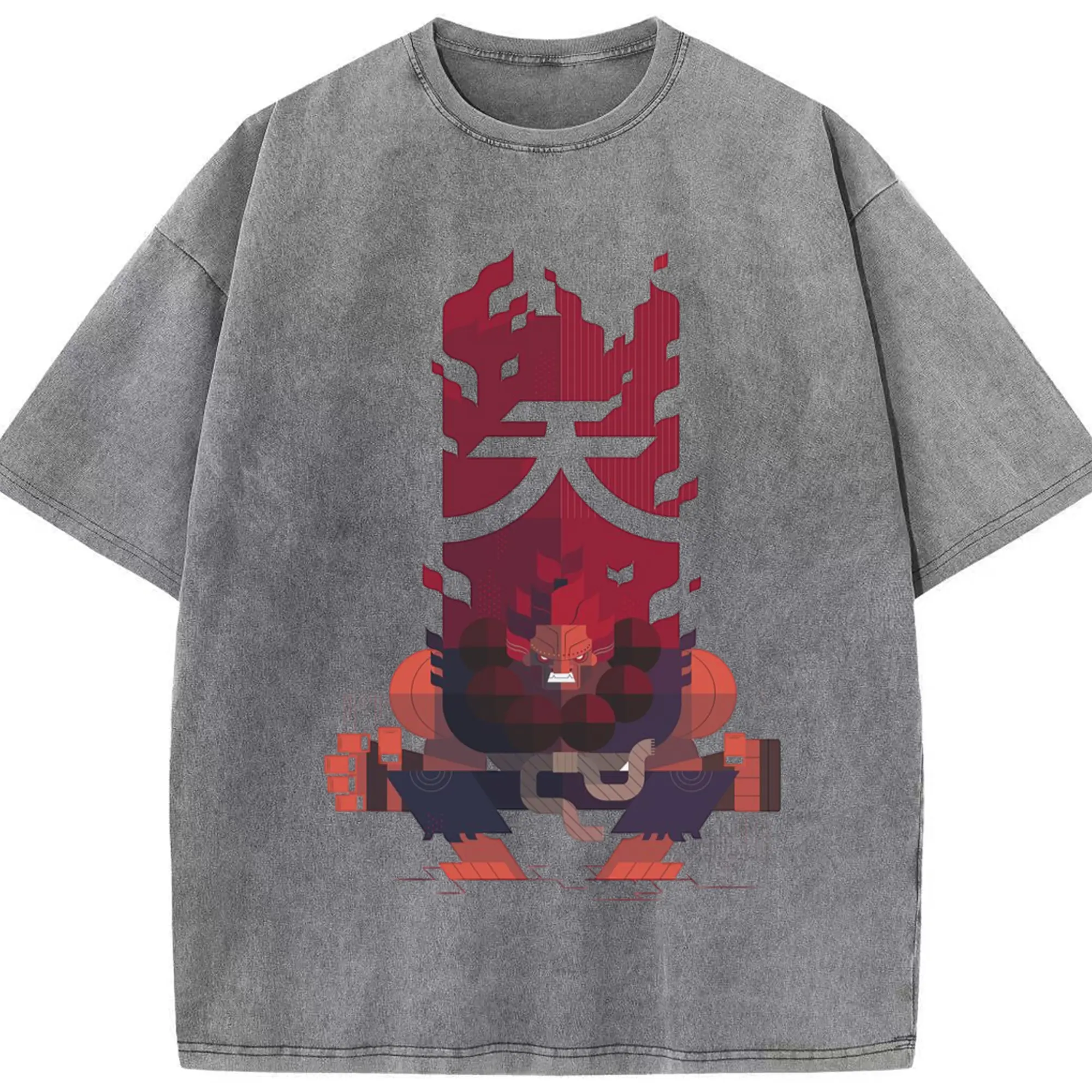 Street fighter gouki tee - Washed Vintage Look 230g Cotton Oversized T-Shirt With Front Heat Transfer Print – Soft, Lightweight, Stylish Fit – Comfortable Casual Wear For Sports & Everyday Use