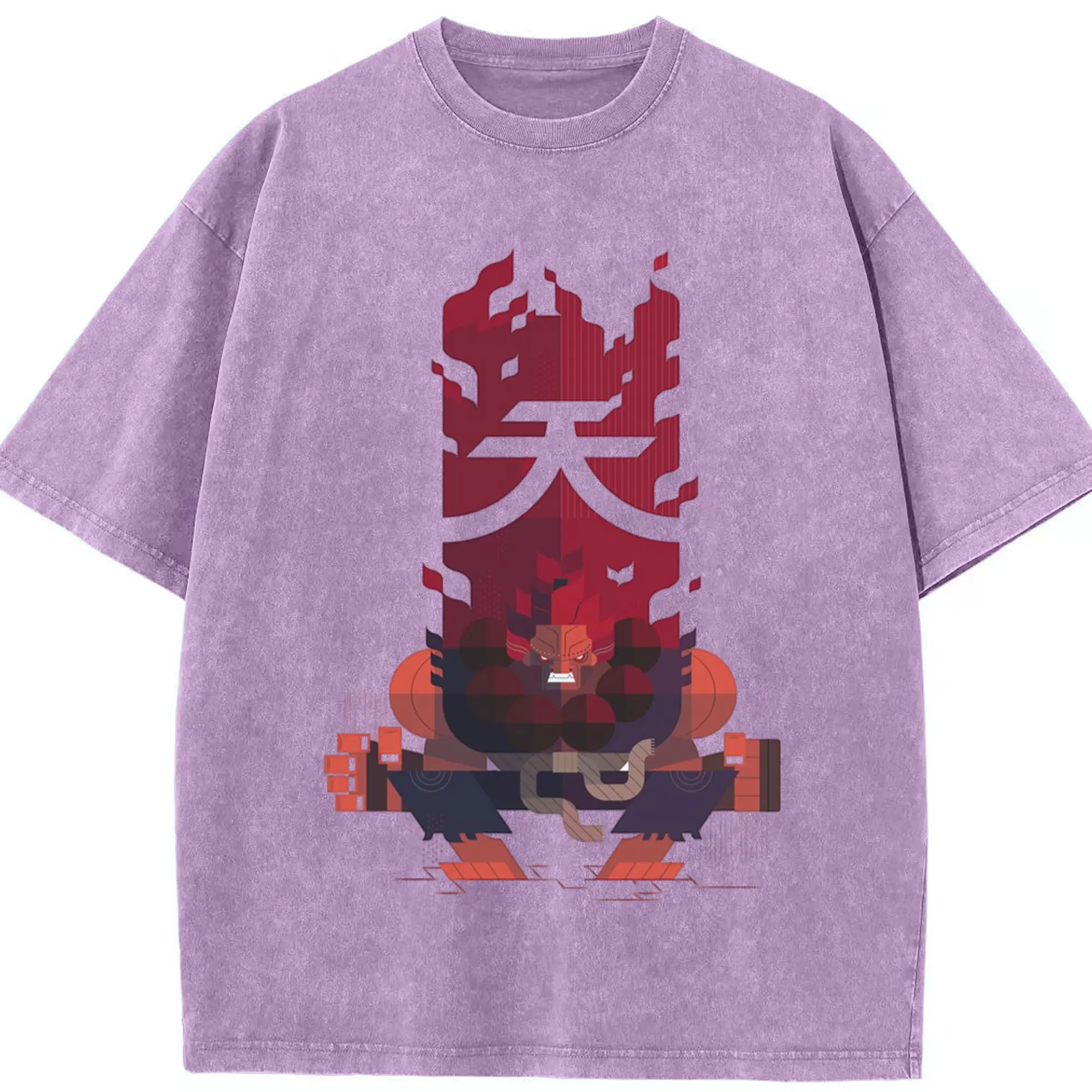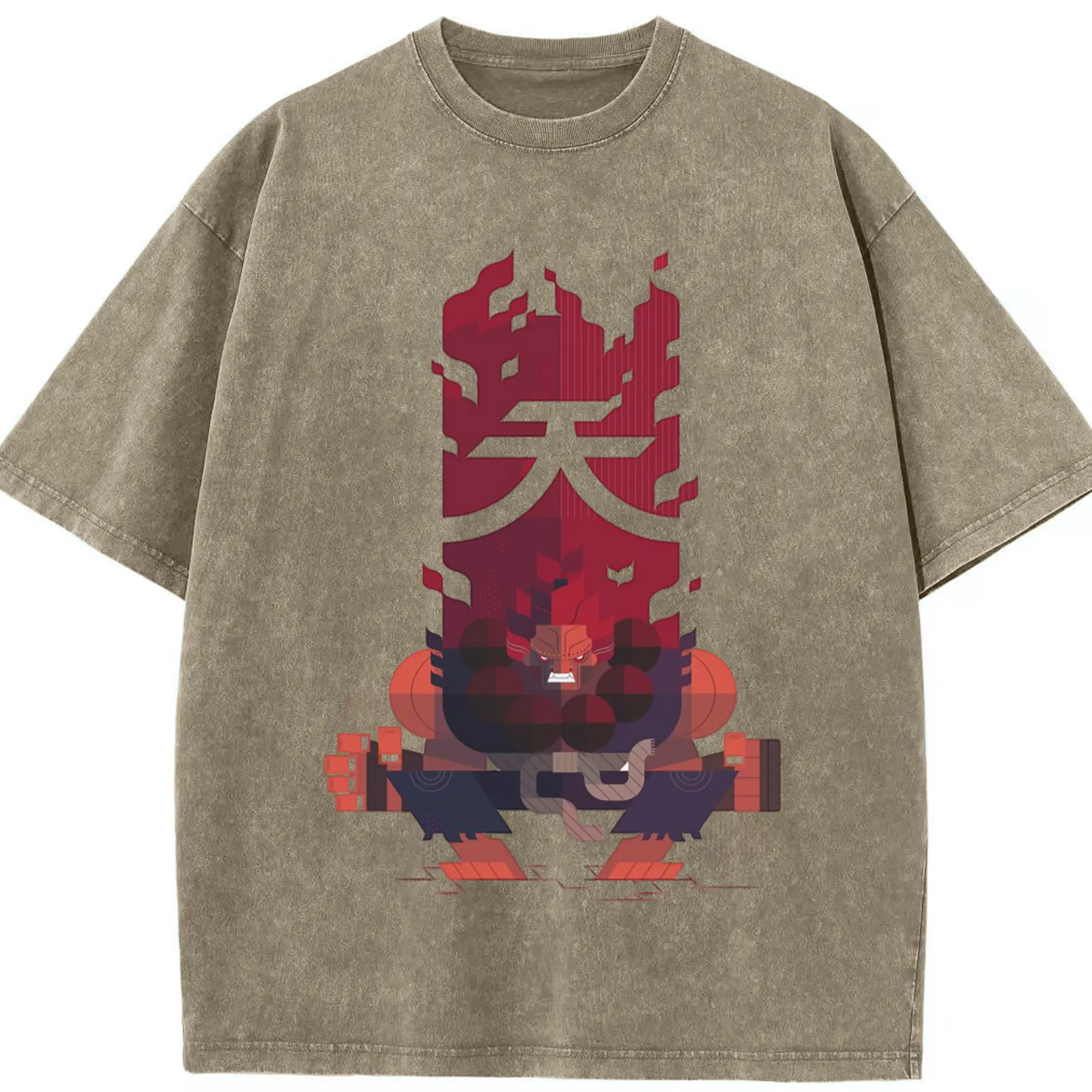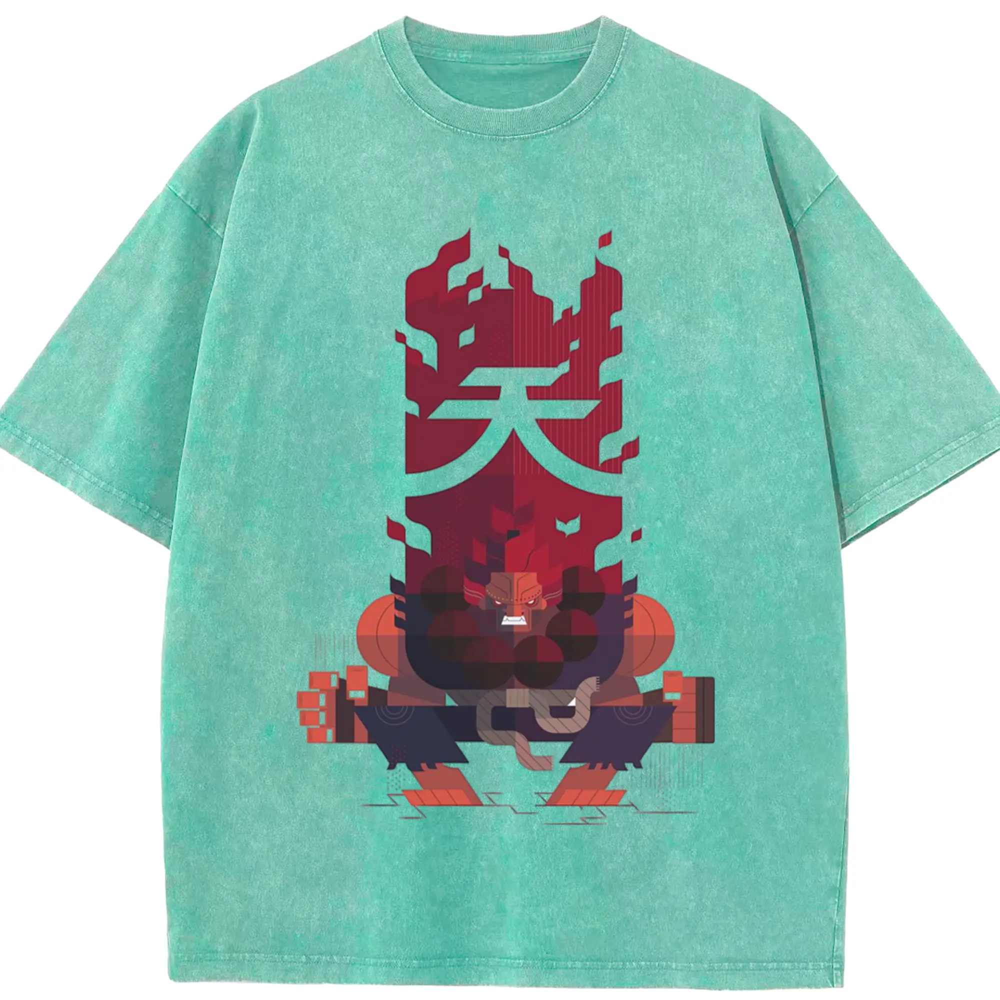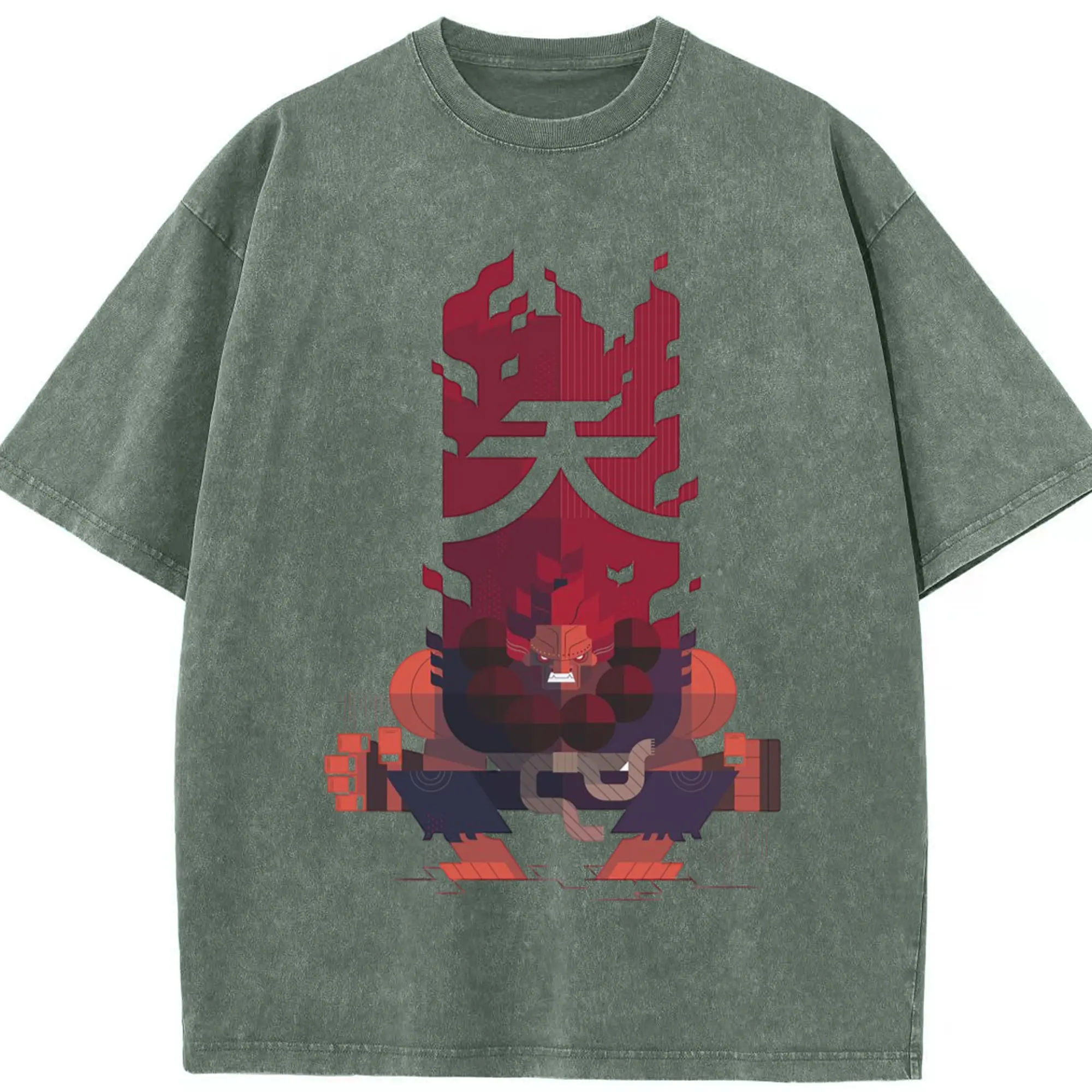 Street fighter gouki tee - Washed Vintage Look 230g Cotton Oversized T-Shirt With Front Heat Transfer Print – Soft, Lightweight, Stylish Fit – Comfortable Casual Wear For Sports & Everyday Use