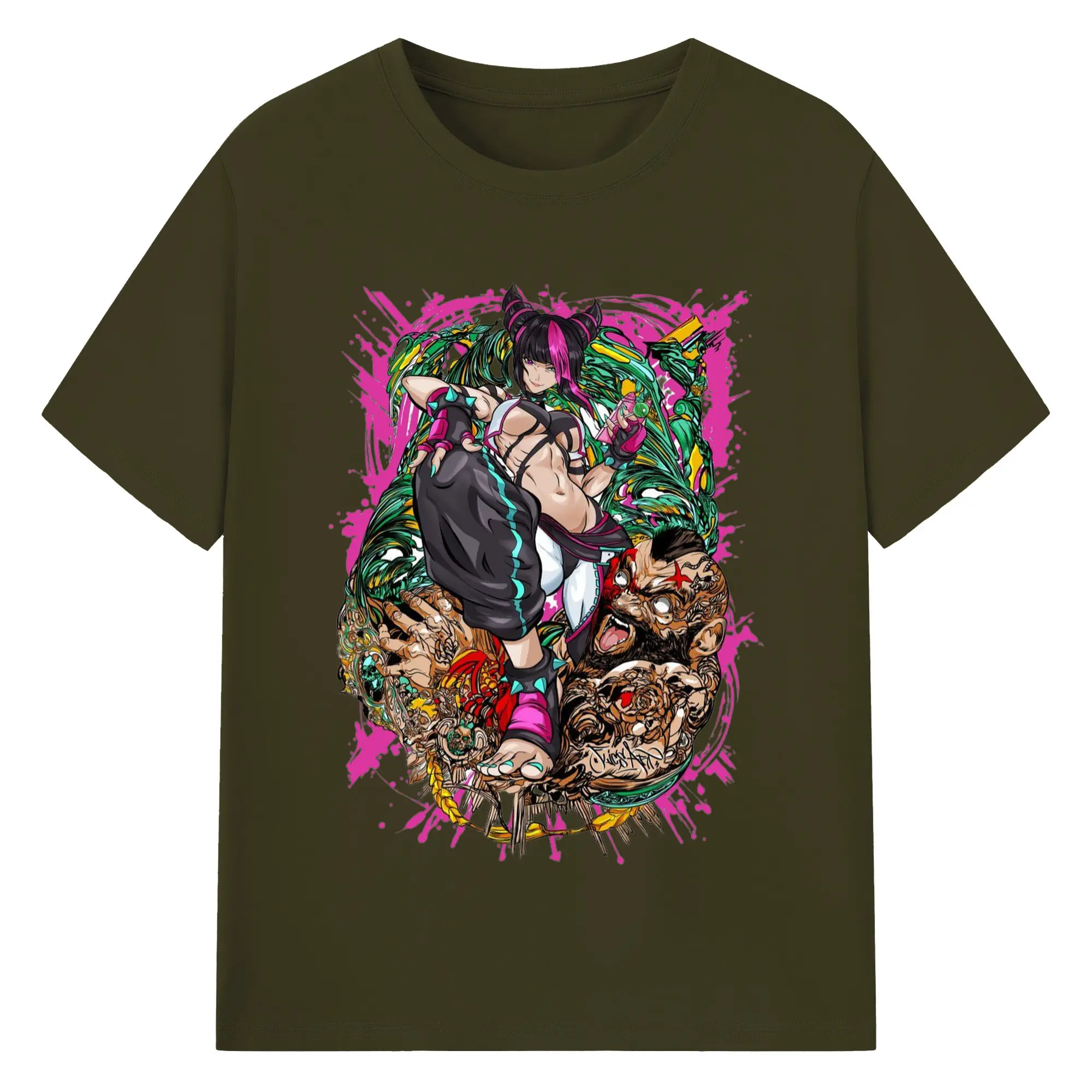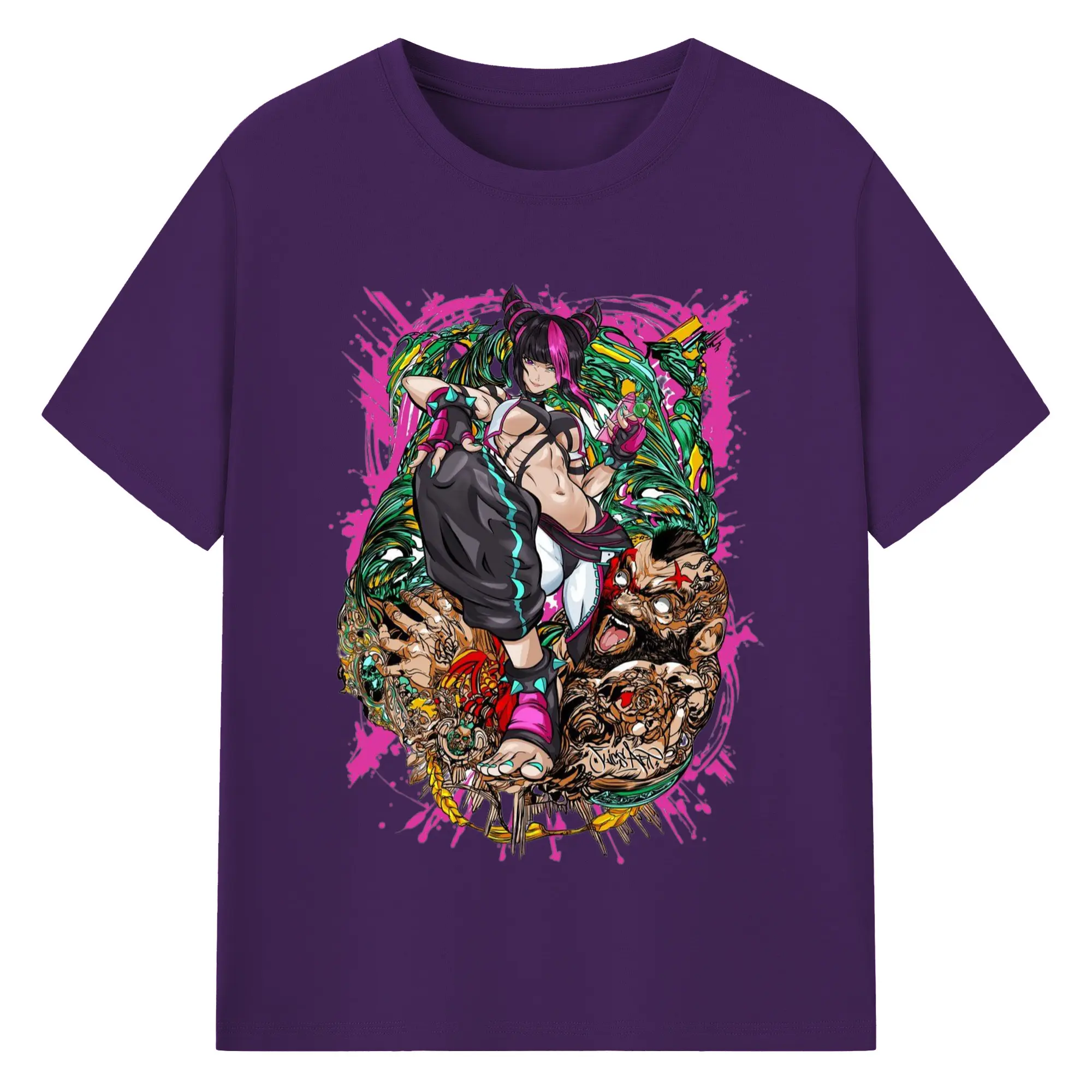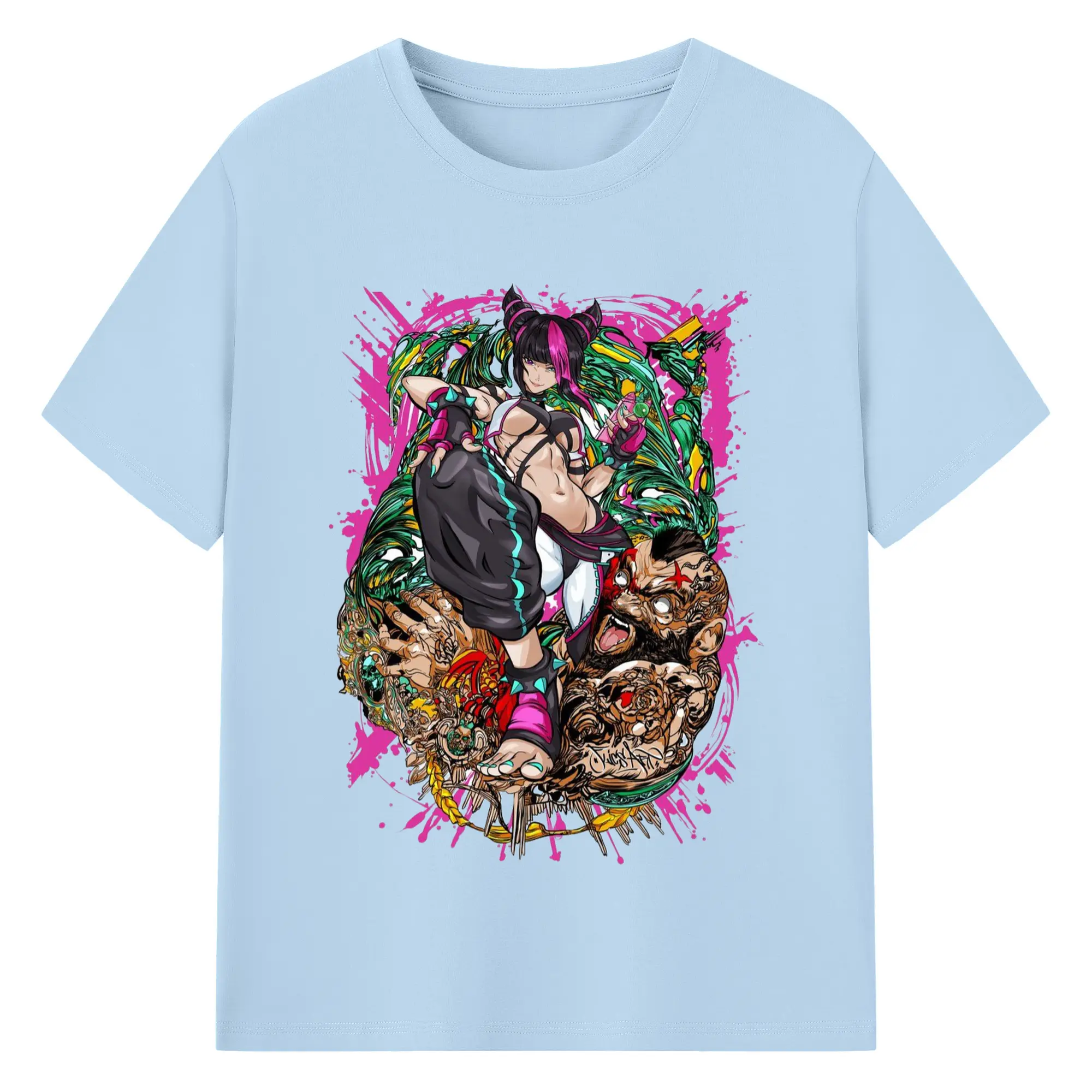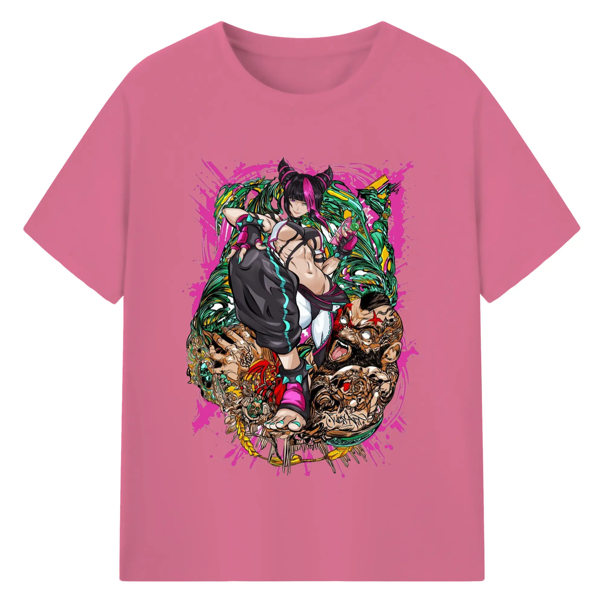 Street fighter juri collage shirt - 180g Cotton T-Shirt With Front Heat Transfer Print – Soft, Lightweight, Fitted Design – Comfortable Casual Wear For Sports & Everyday Use