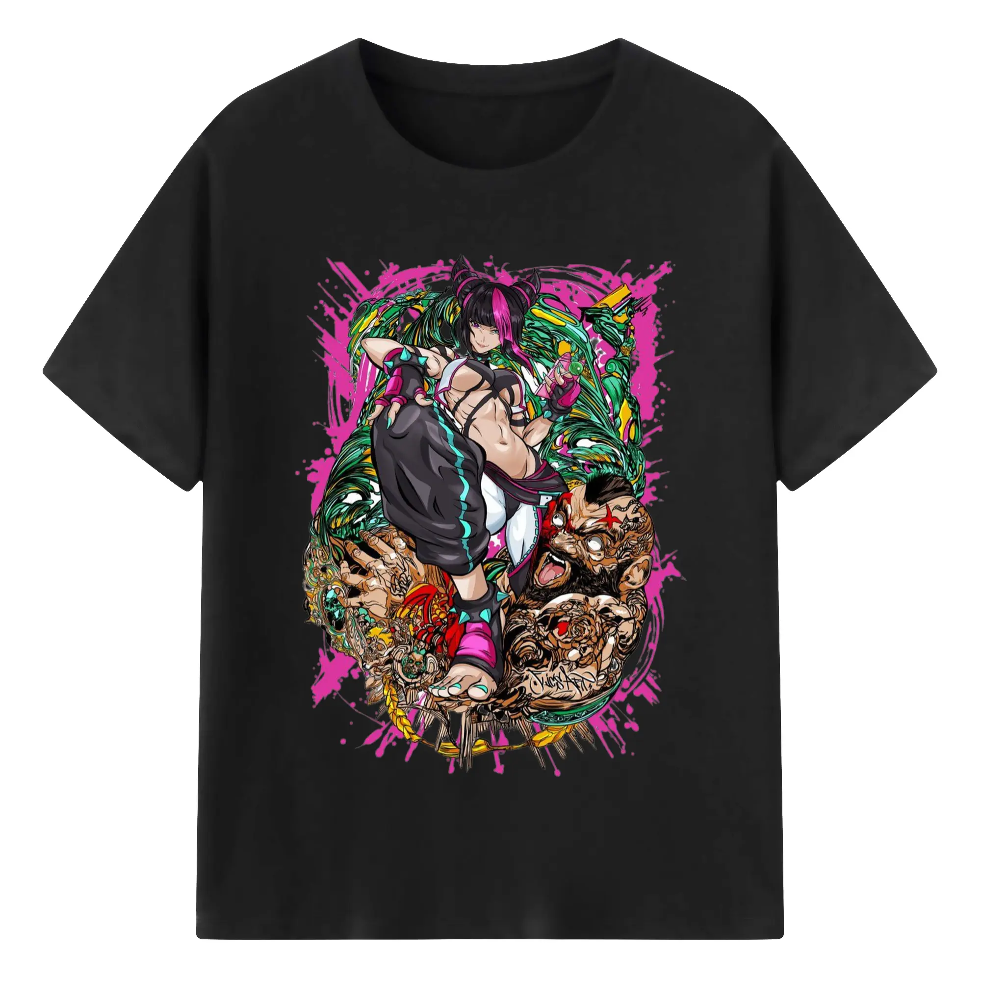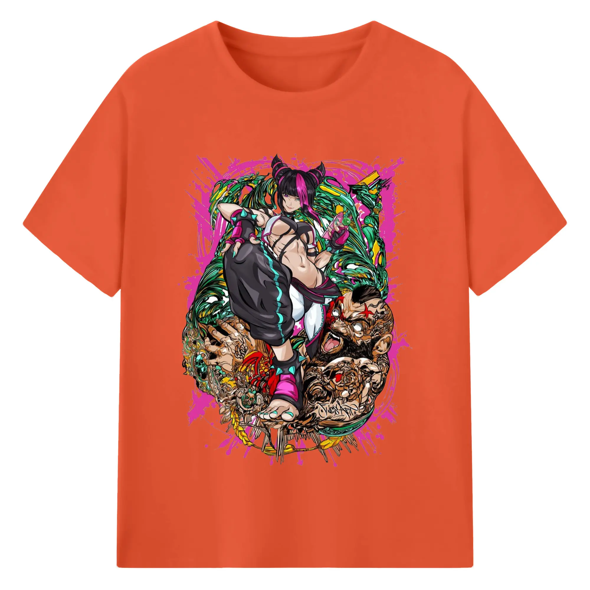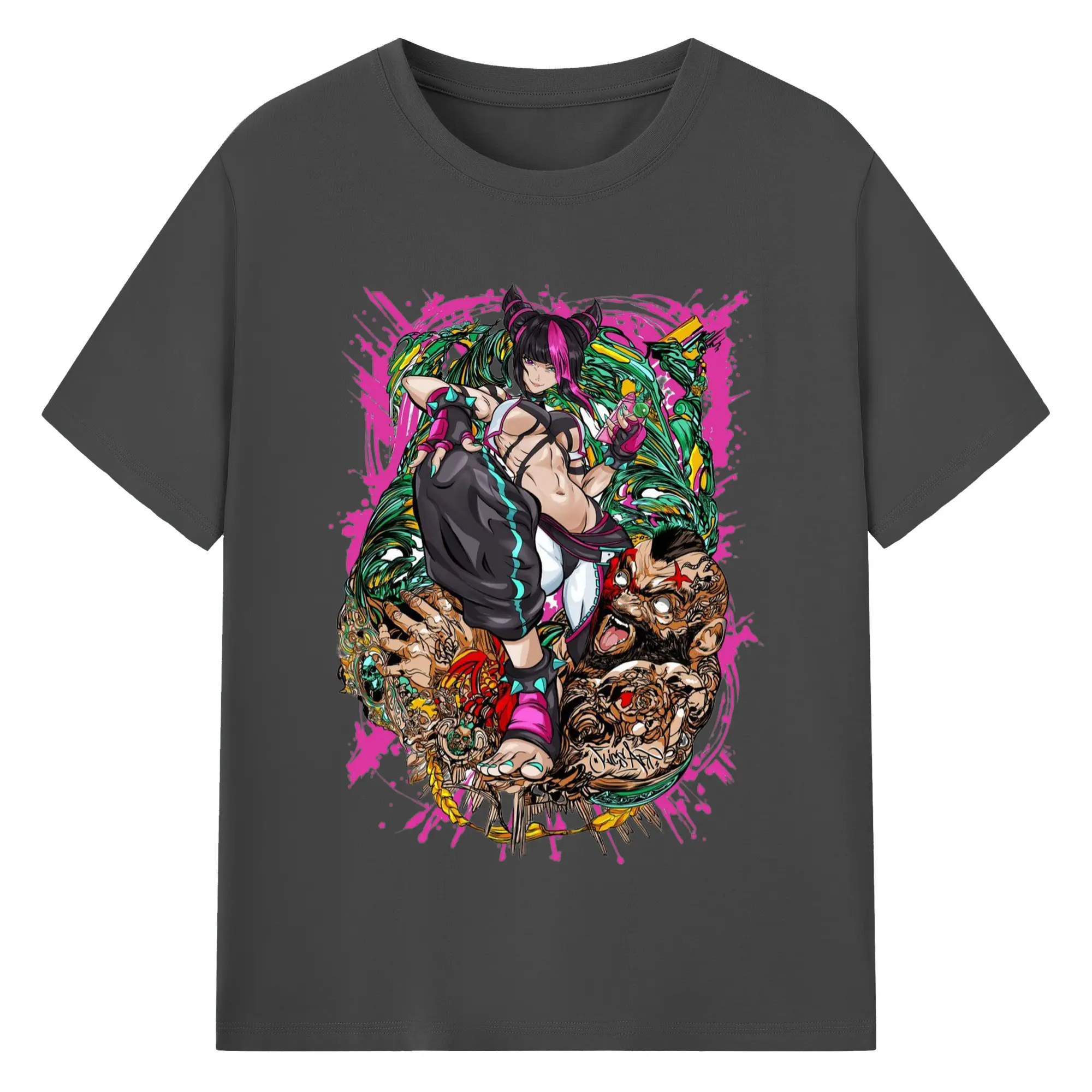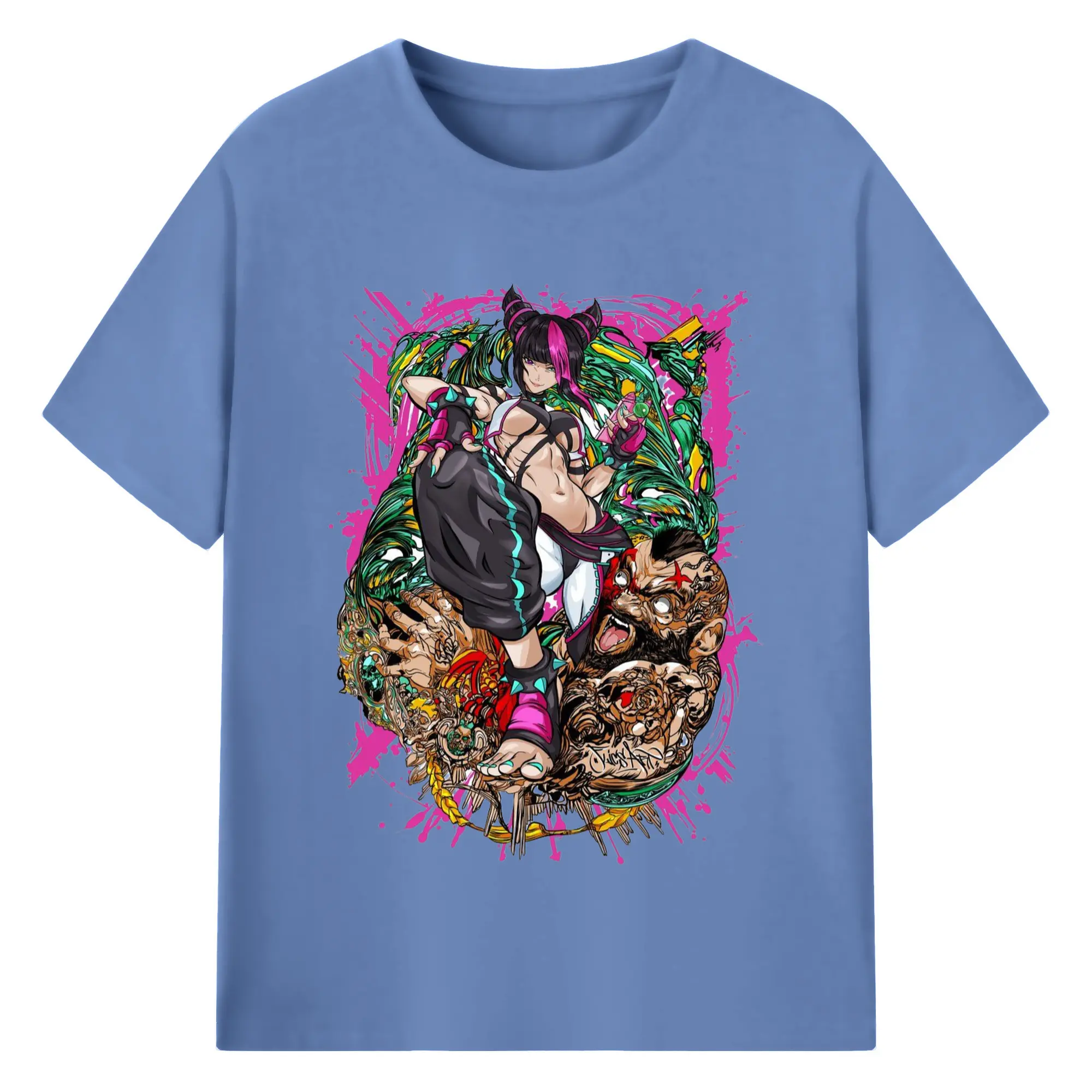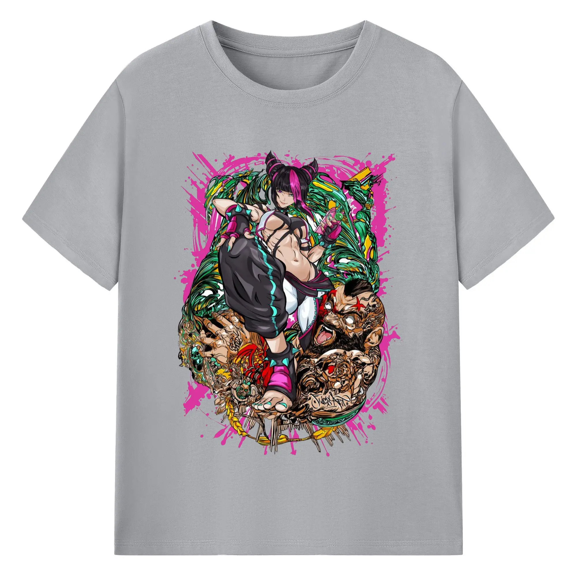Street fighter juri collage shirt - 180g Cotton T-Shirt With Front Heat Transfer Print – Soft, Lightweight, Fitted Design – Comfortable Casual Wear For Sports & Everyday Use