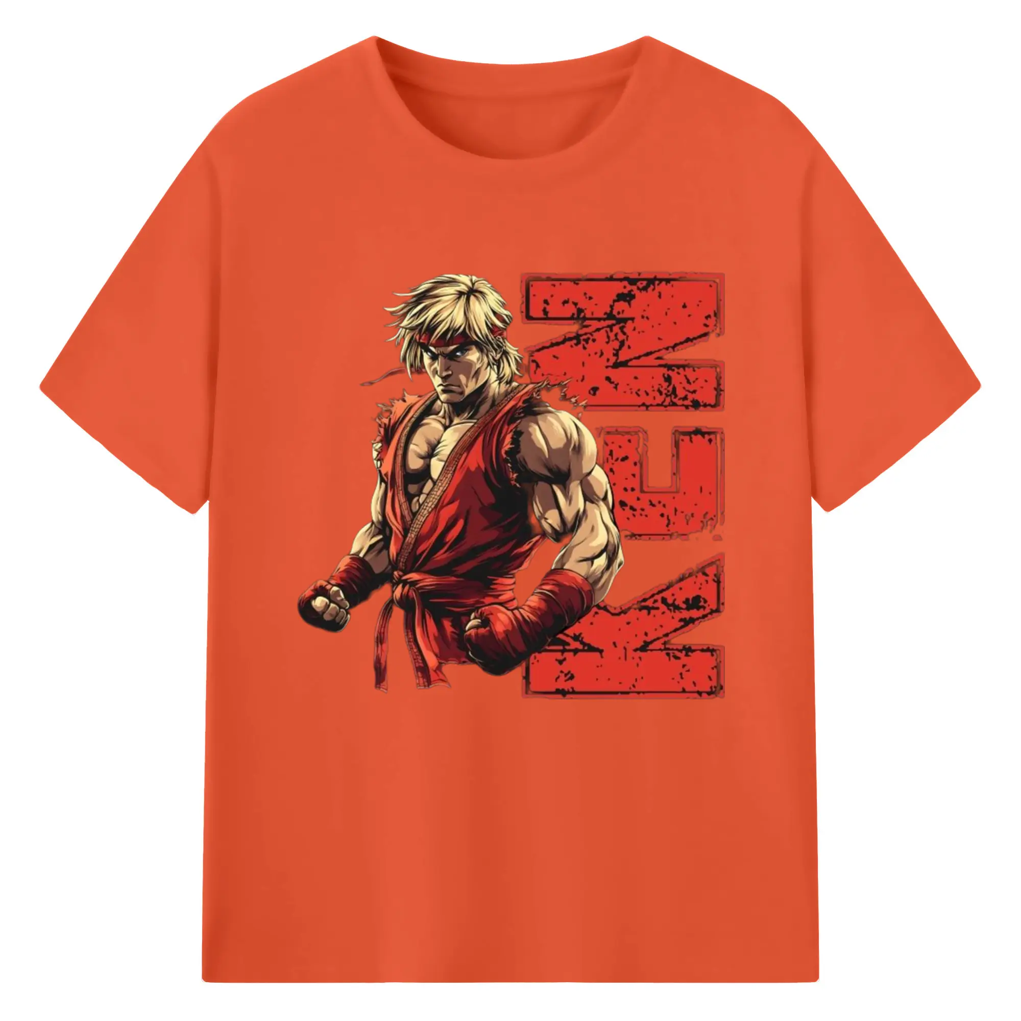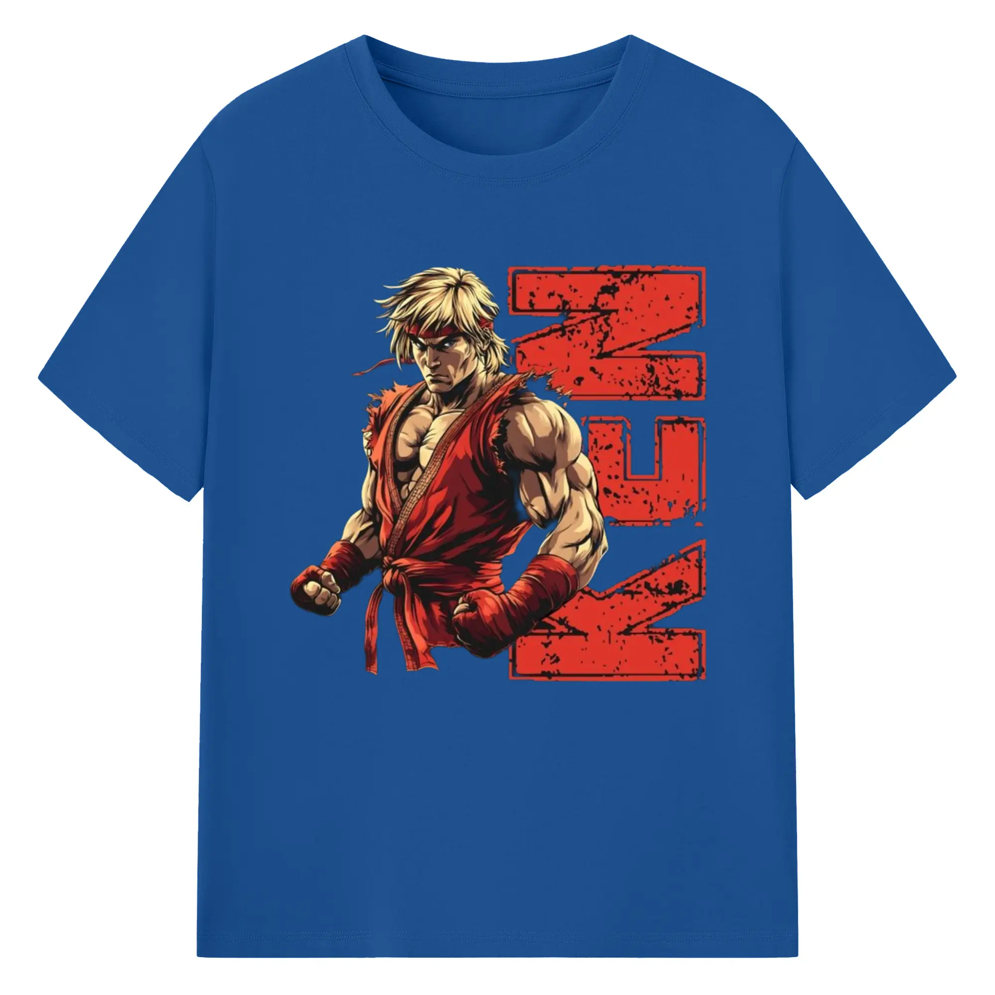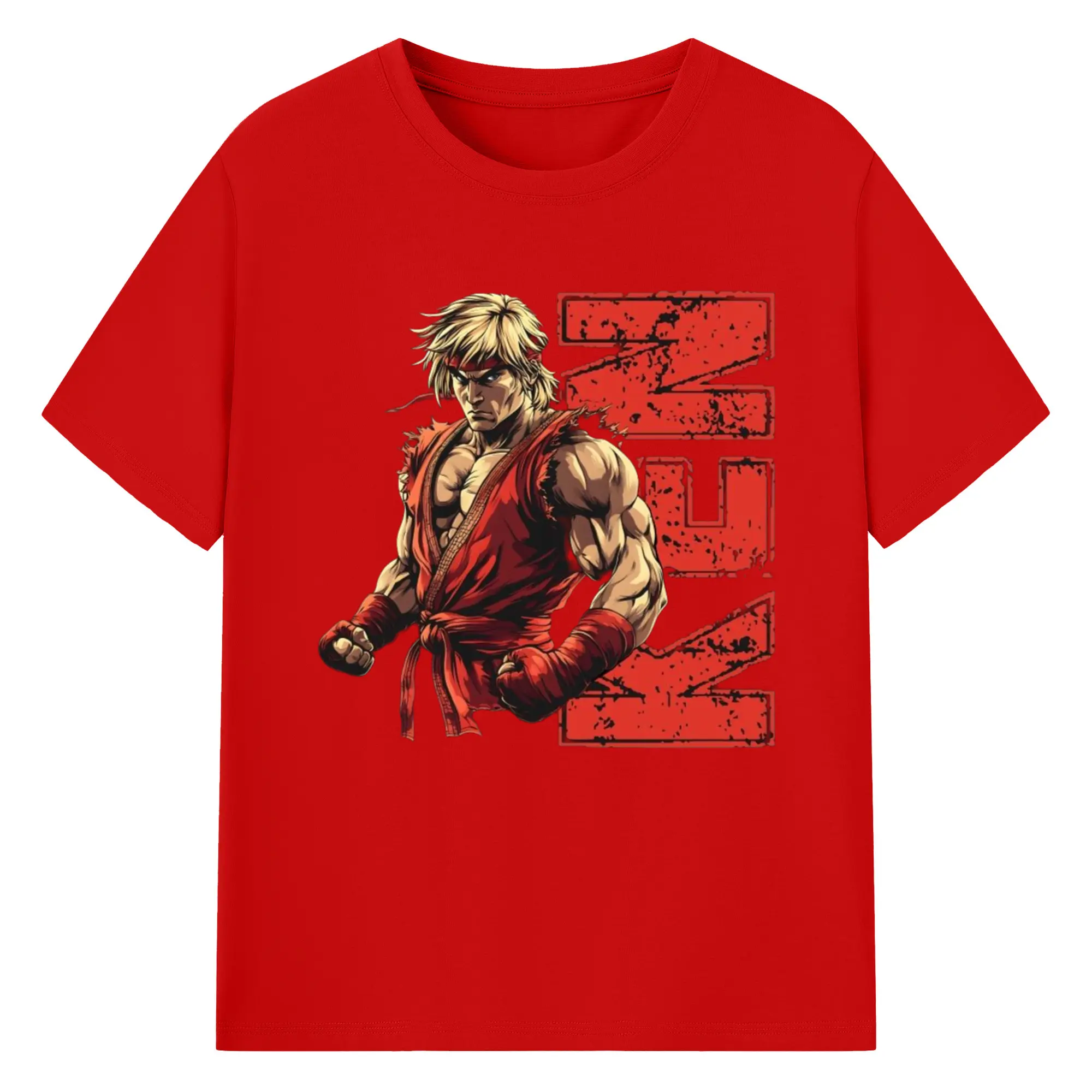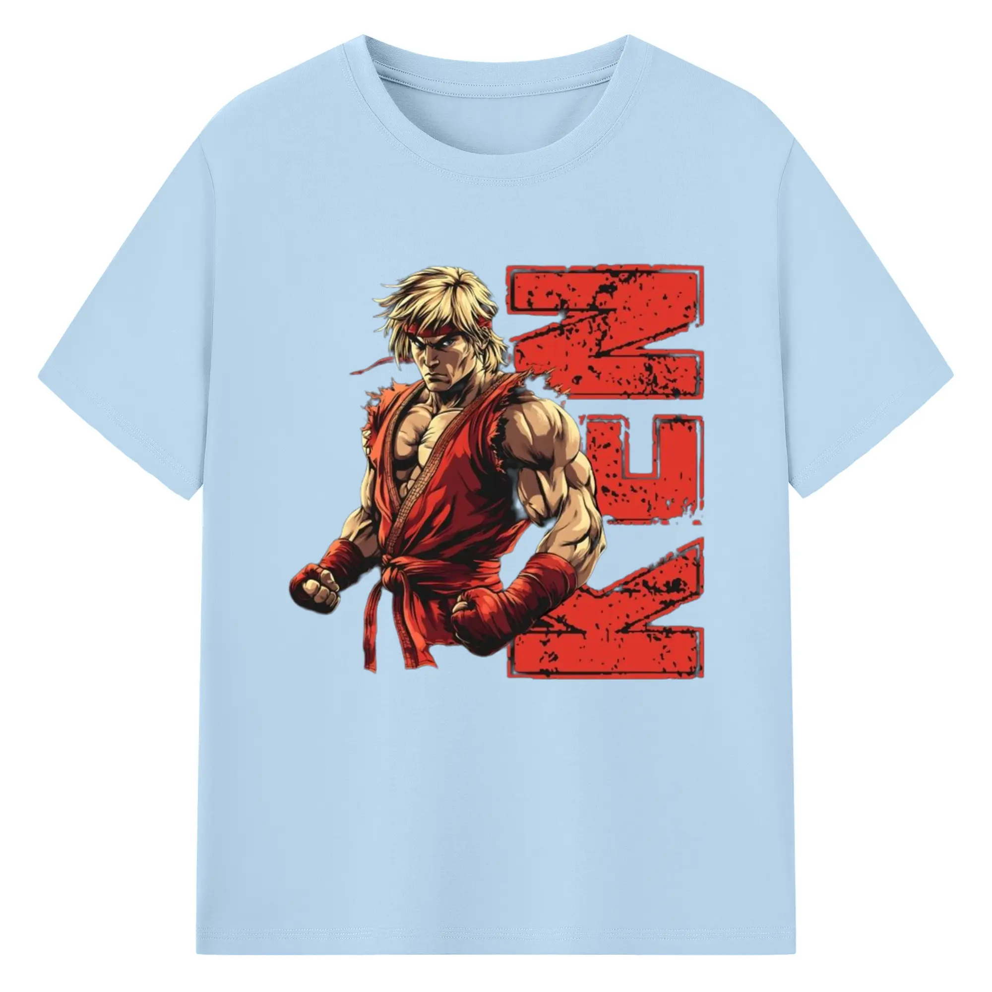 Street fighter ken t shirt​ - 180g Cotton T-Shirt With Front Heat Transfer Print – Soft, Lightweight, Fitted Design – Comfortable Casual Wear For Sports & Everyday Use