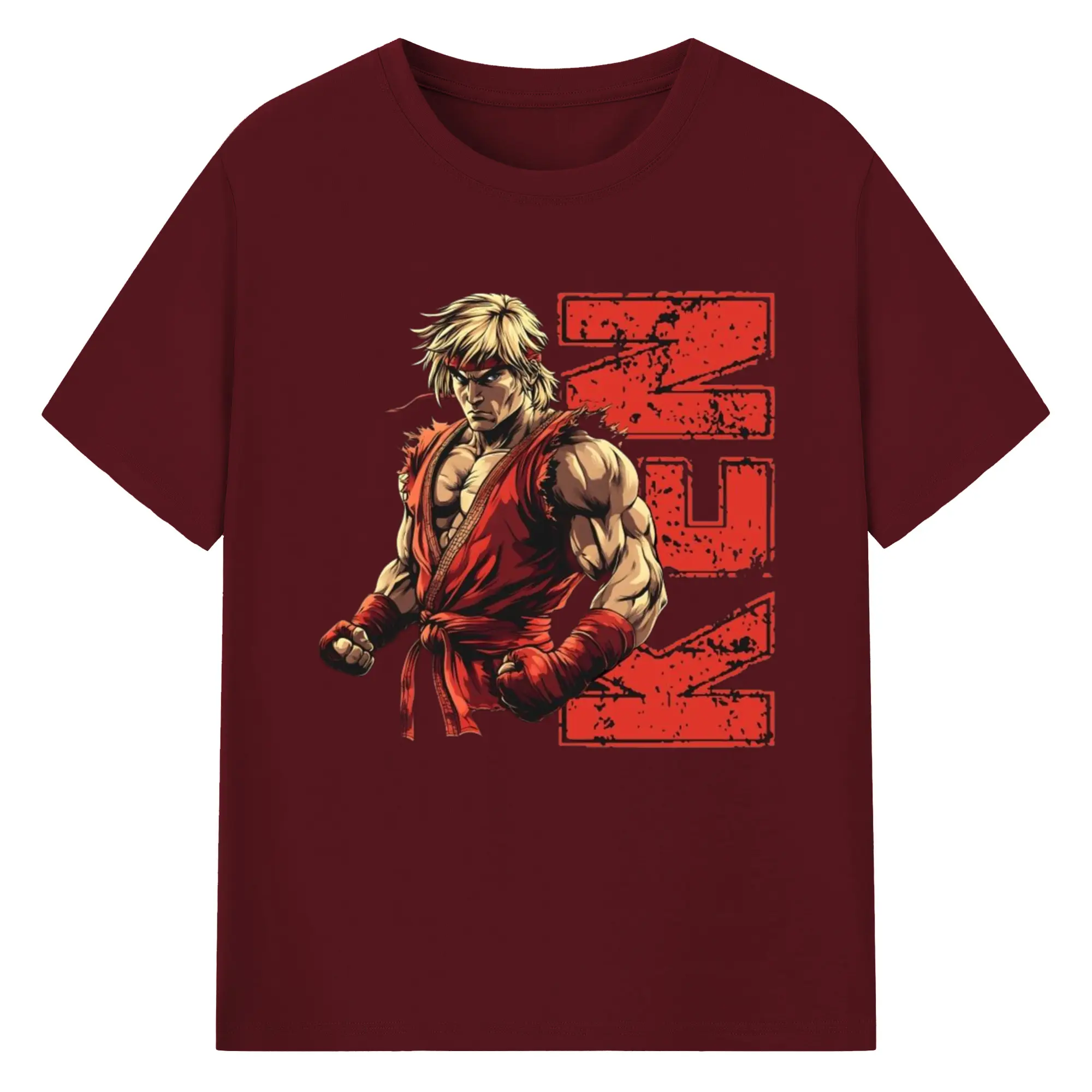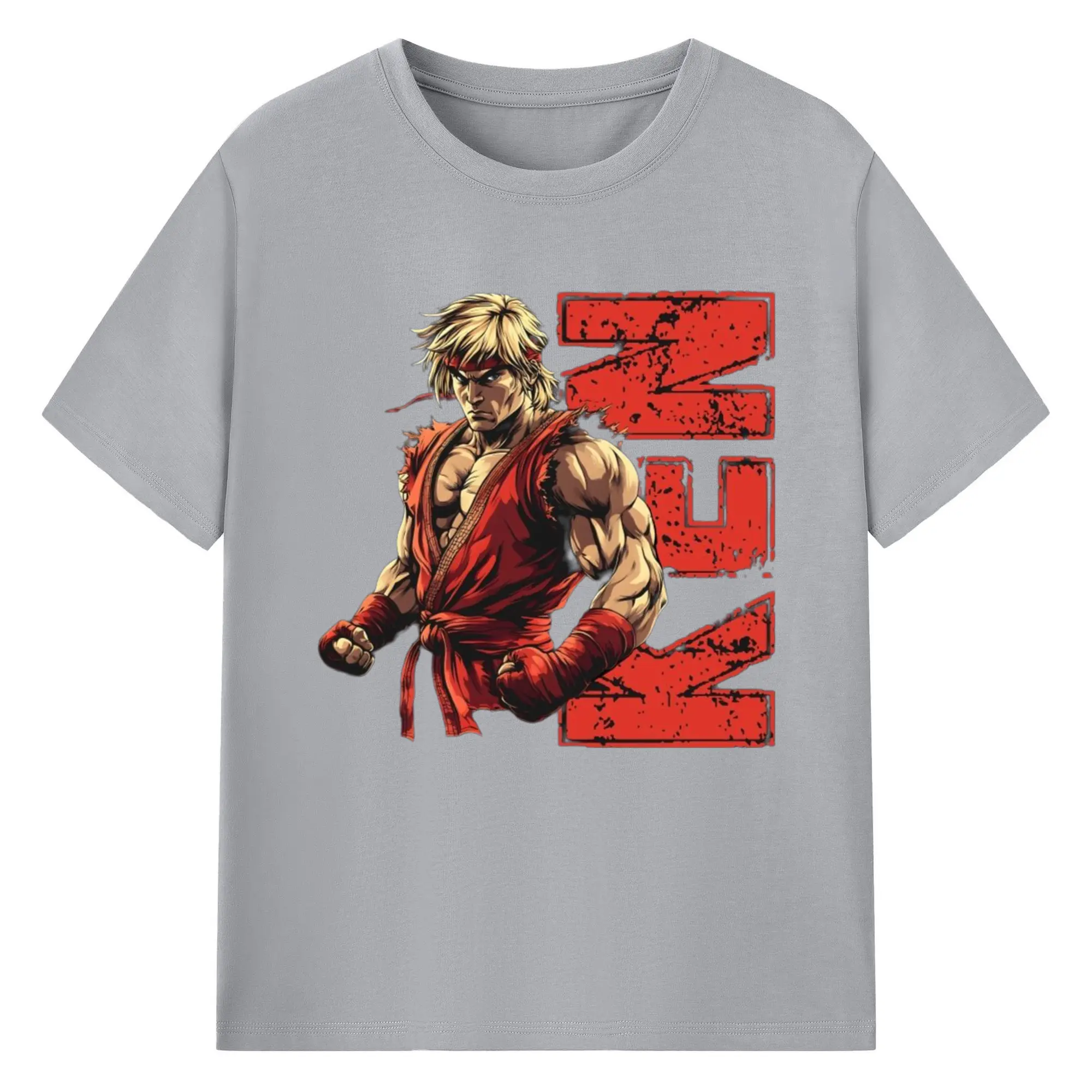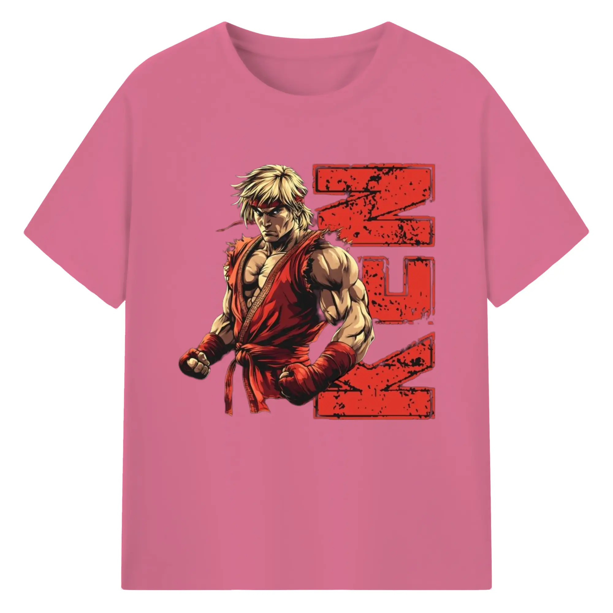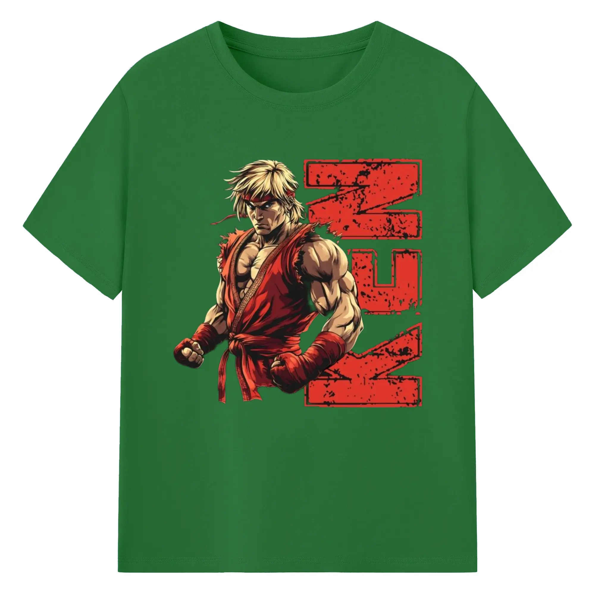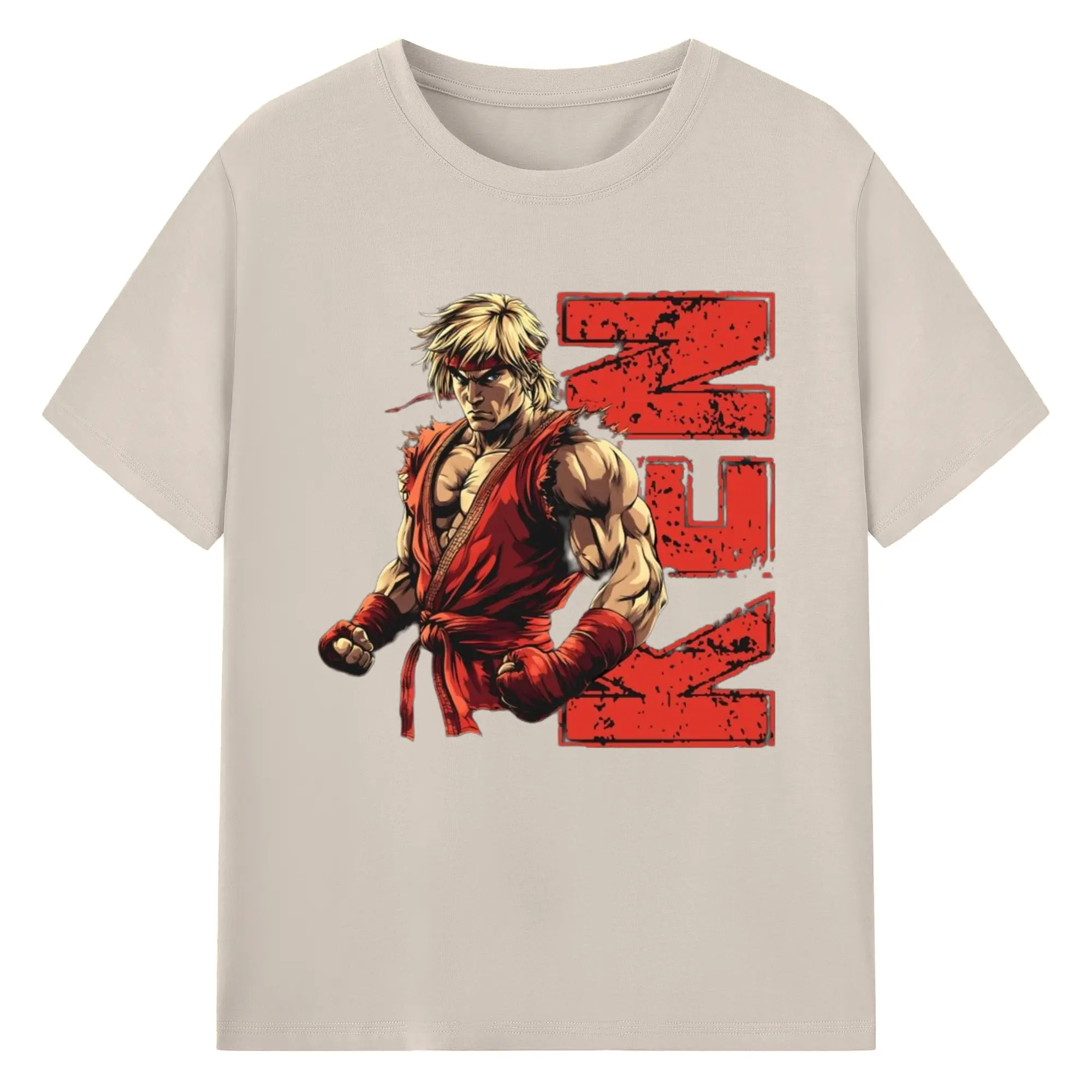 Street fighter ken t shirt​ - 180g Cotton T-Shirt With Front Heat Transfer Print – Soft, Lightweight, Fitted Design – Comfortable Casual Wear For Sports & Everyday Use