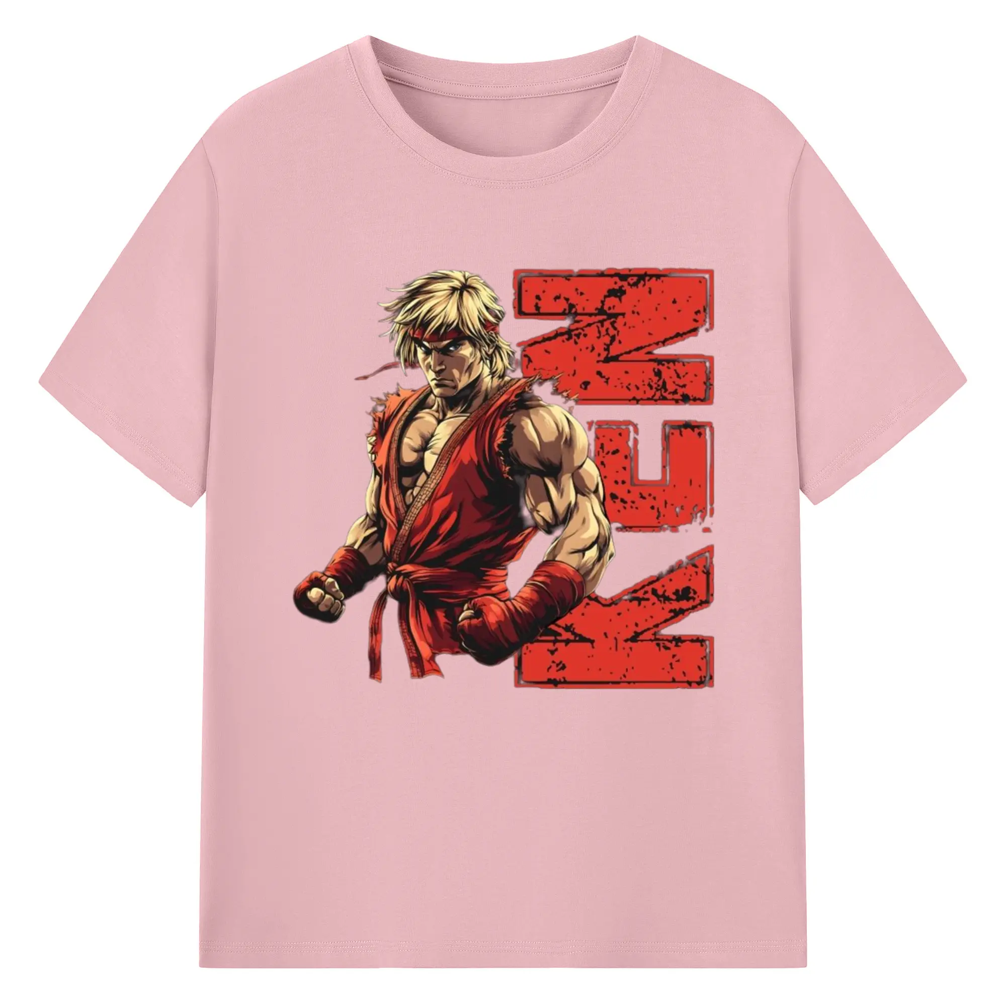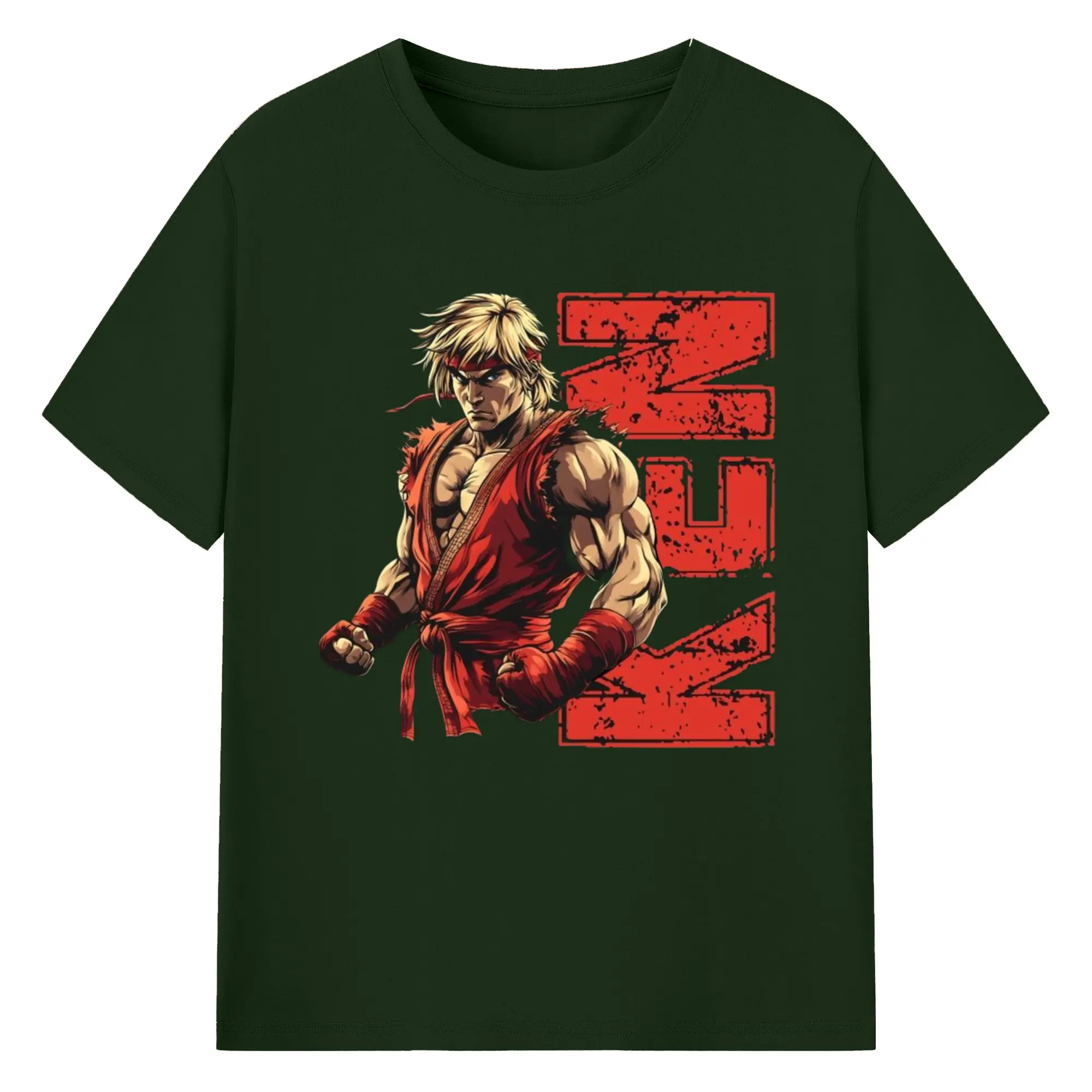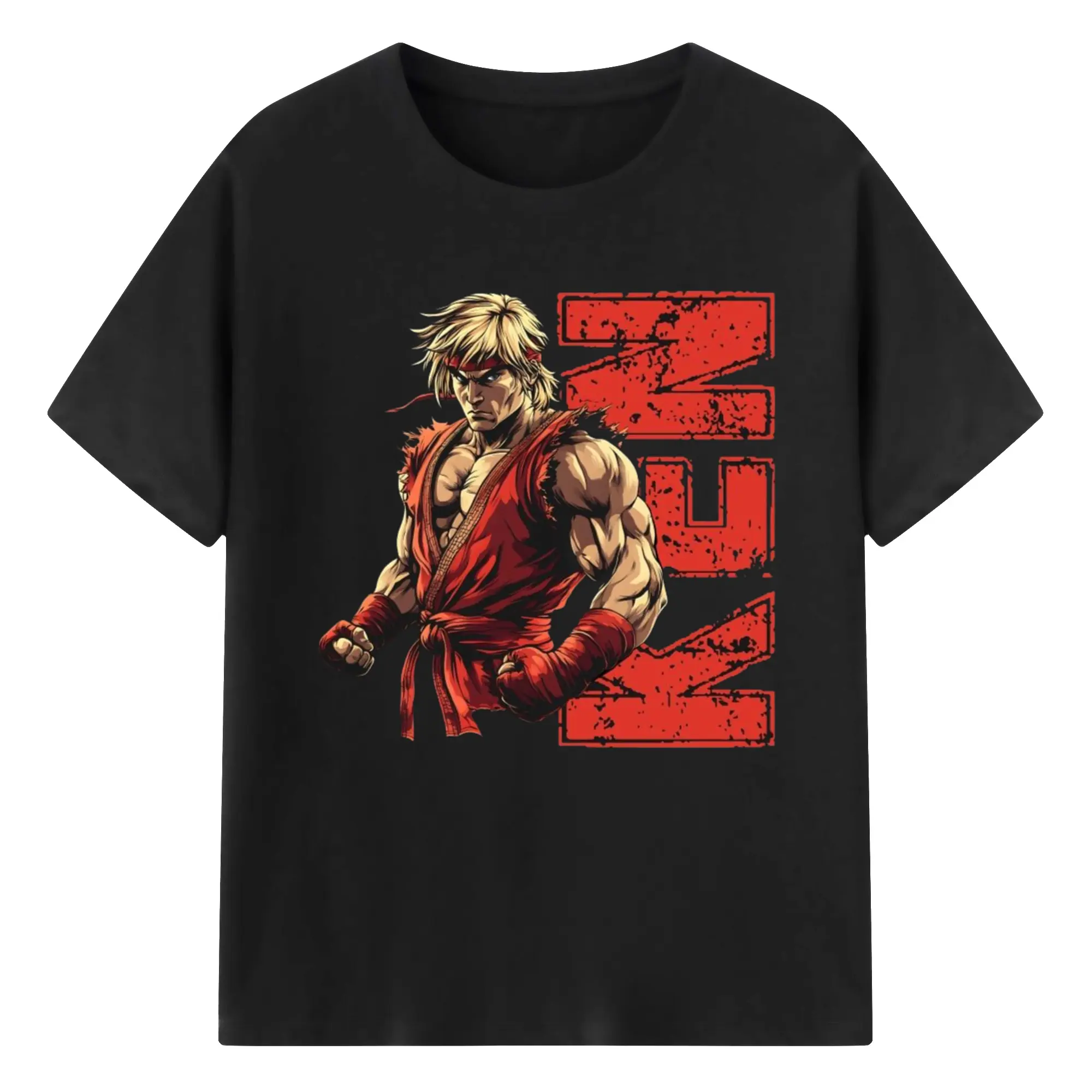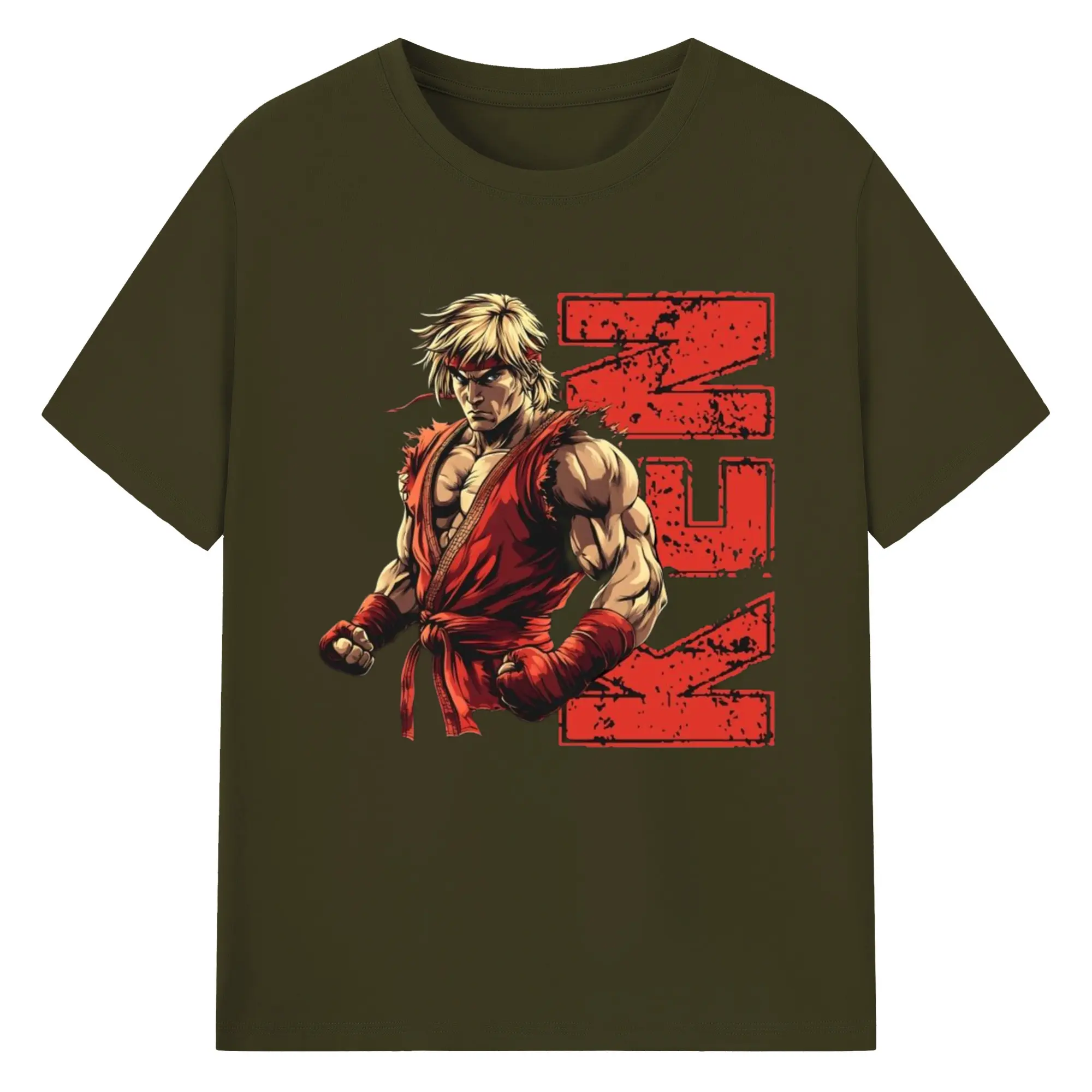 Street fighter ken t shirt​ - 180g Cotton T-Shirt With Front Heat Transfer Print – Soft, Lightweight, Fitted Design – Comfortable Casual Wear For Sports & Everyday Use