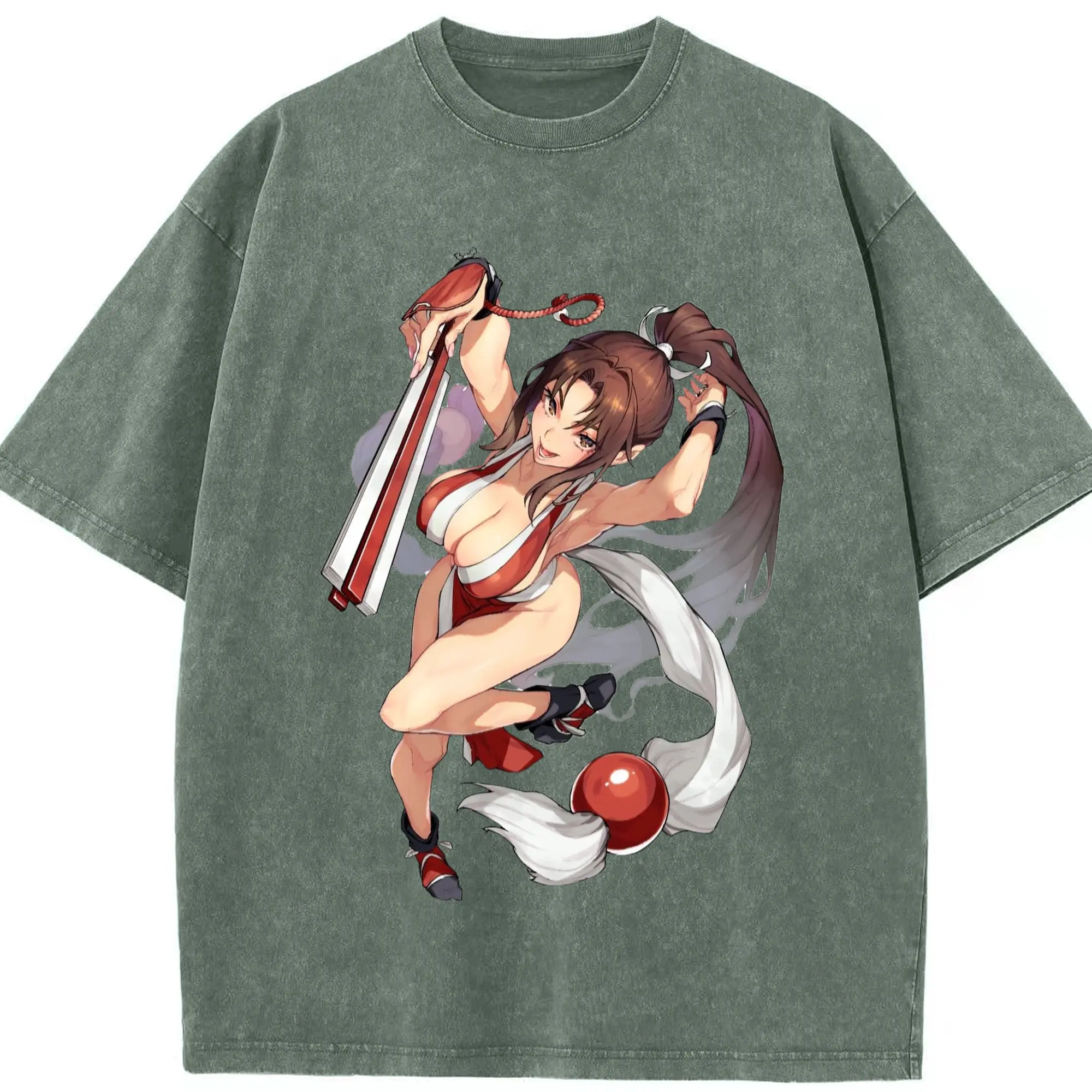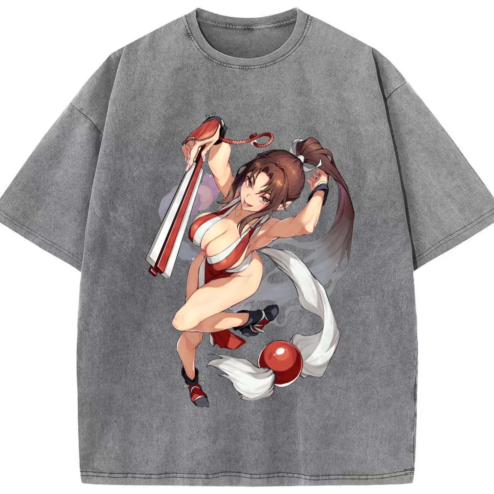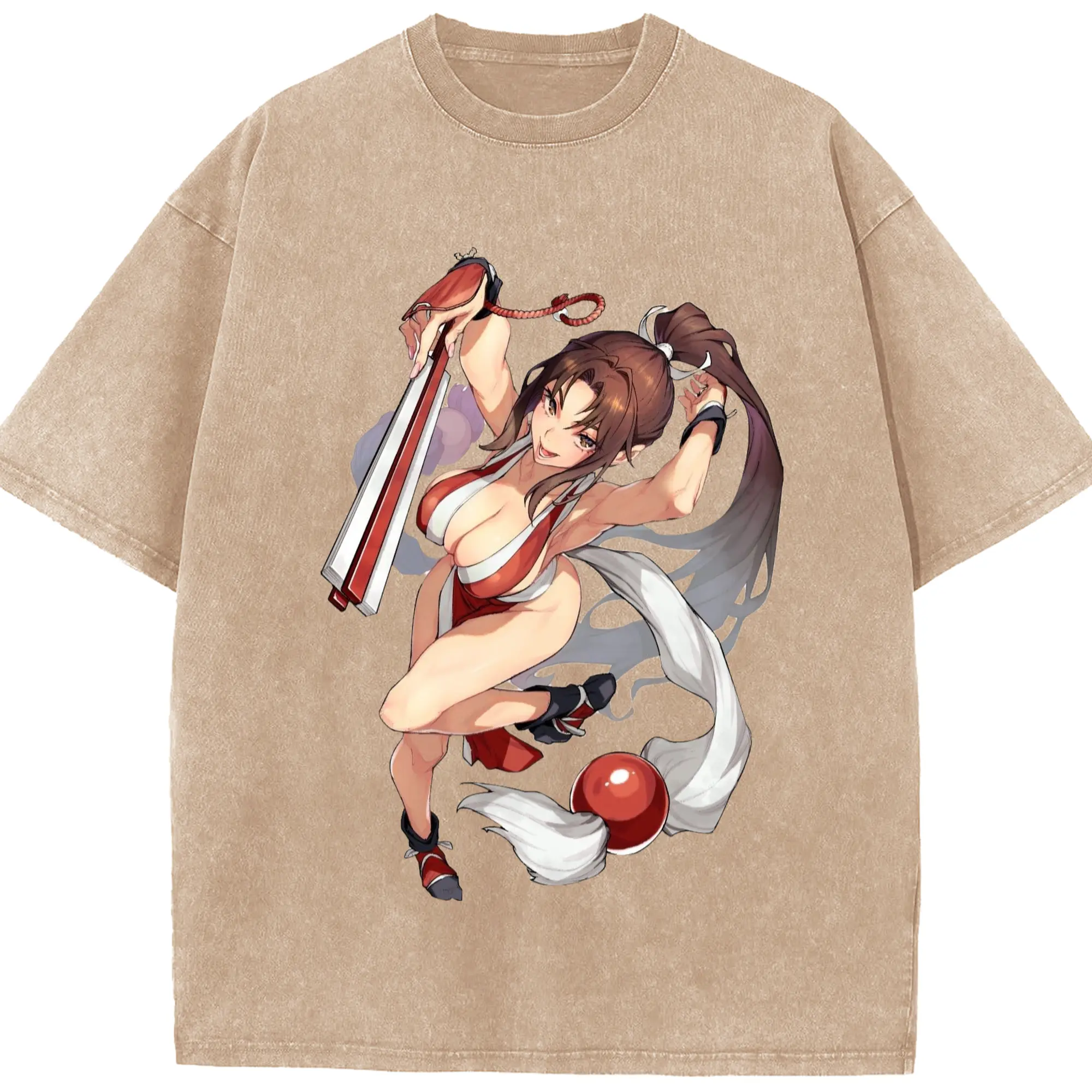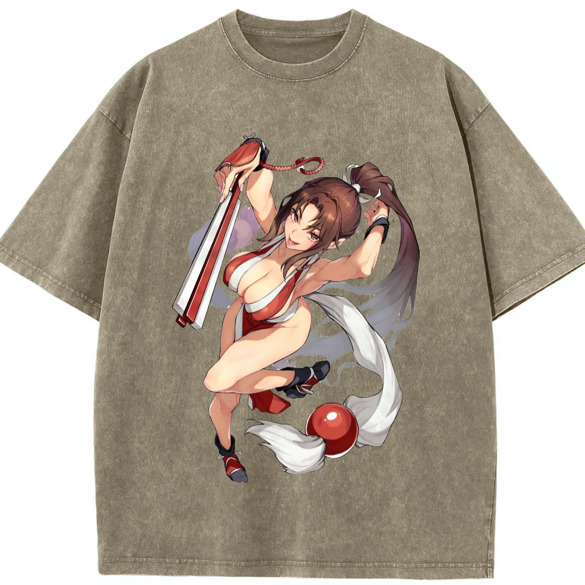 Street fighter Mai Shiranui t shirt​ - Washed Vintage Look 230g Cotton Oversized T-Shirt With Front Heat Transfer Print – Soft, Lightweight, Stylish Fit – Comfortable Casual Wear For Sports & Everyday Use