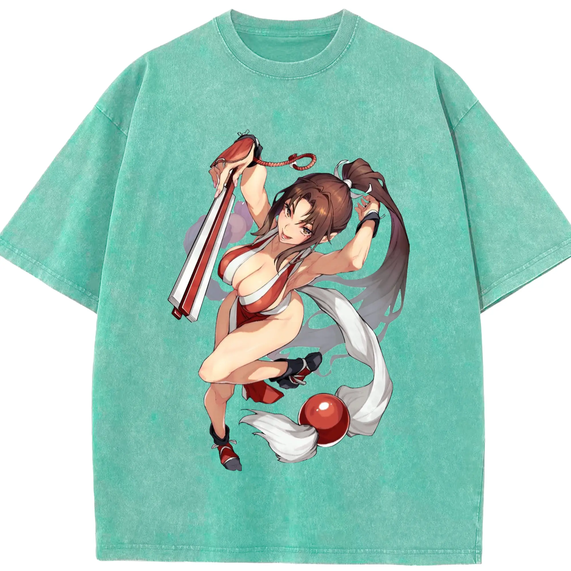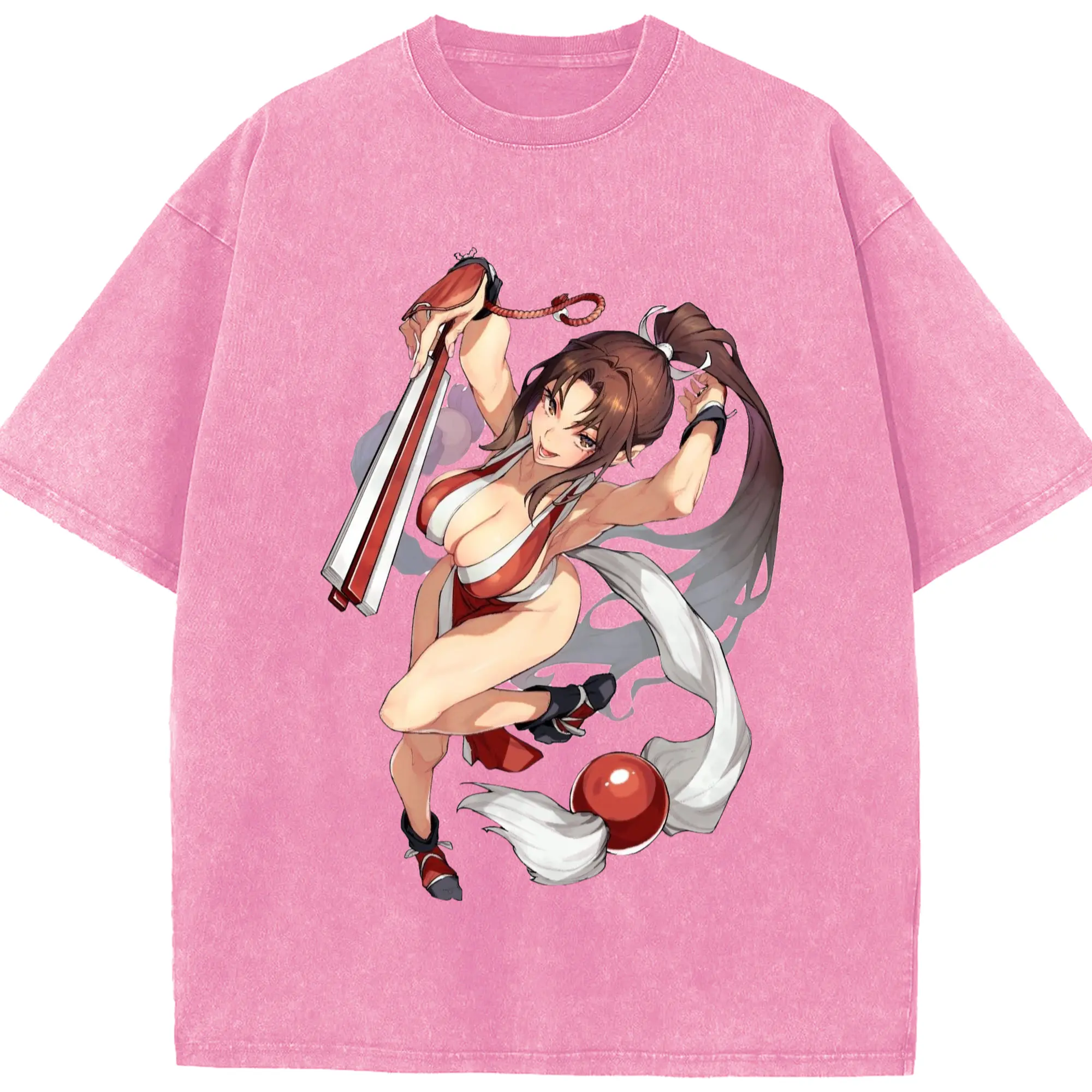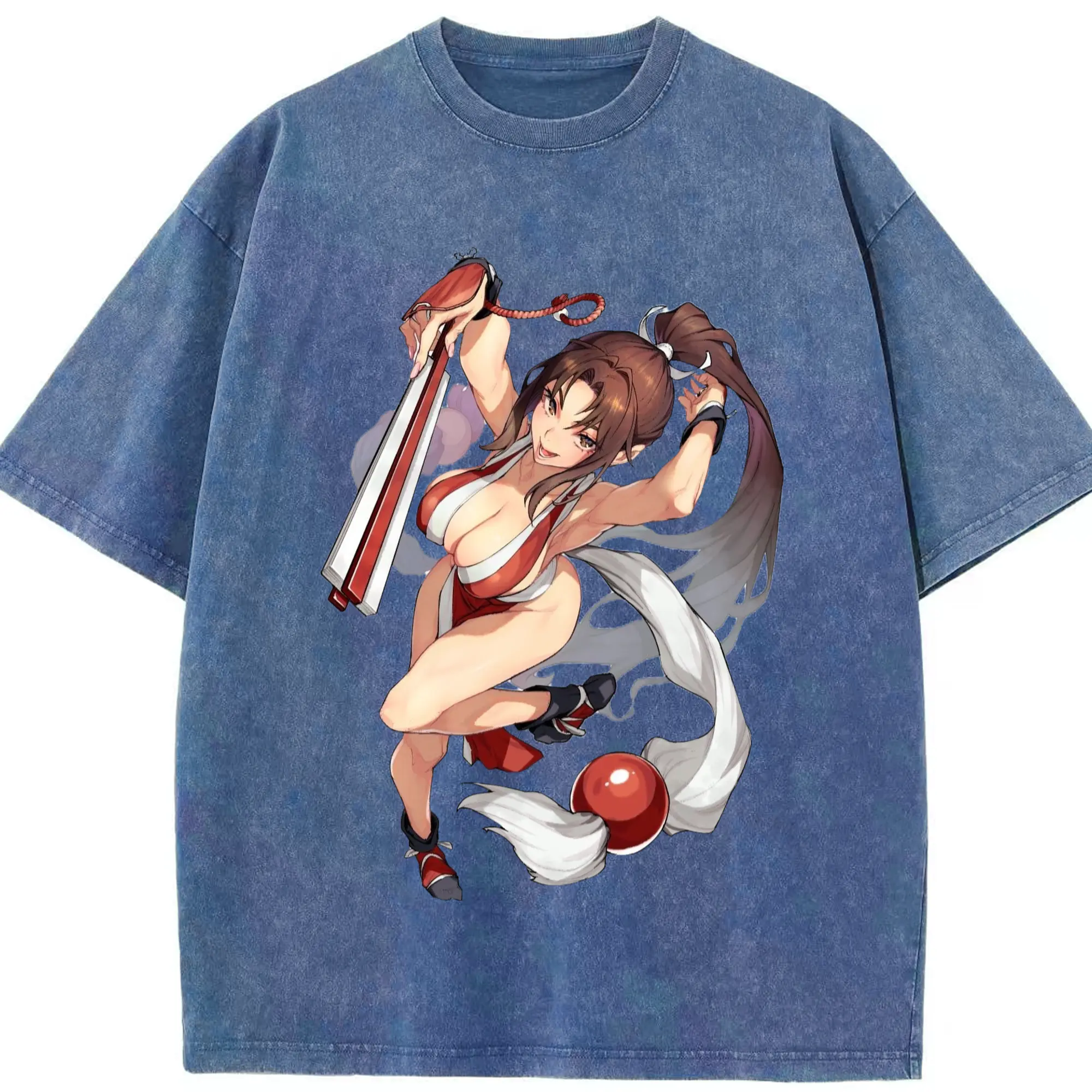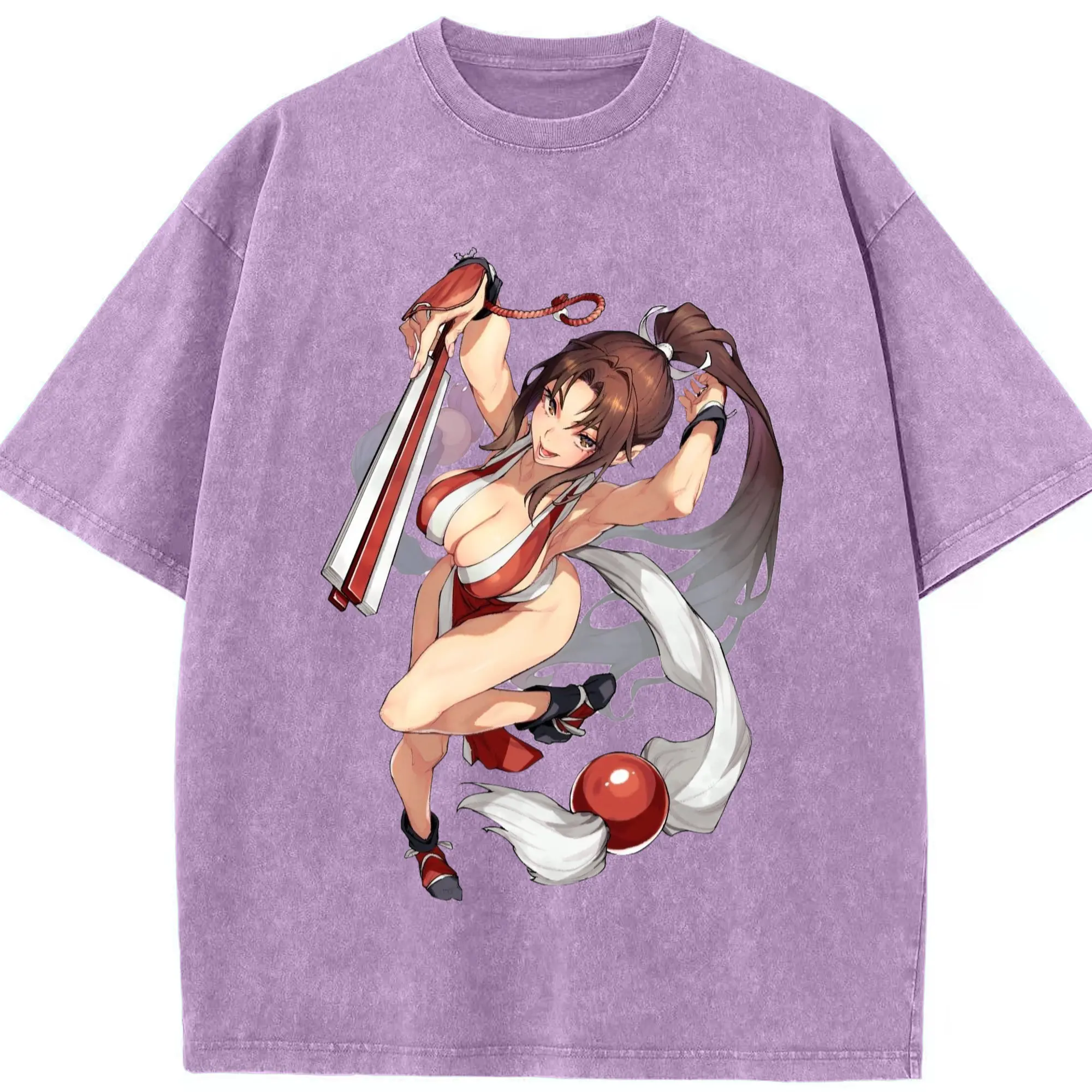 Street fighter Mai Shiranui t shirt​ - Washed Vintage Look 230g Cotton Oversized T-Shirt With Front Heat Transfer Print – Soft, Lightweight, Stylish Fit – Comfortable Casual Wear For Sports & Everyday Use