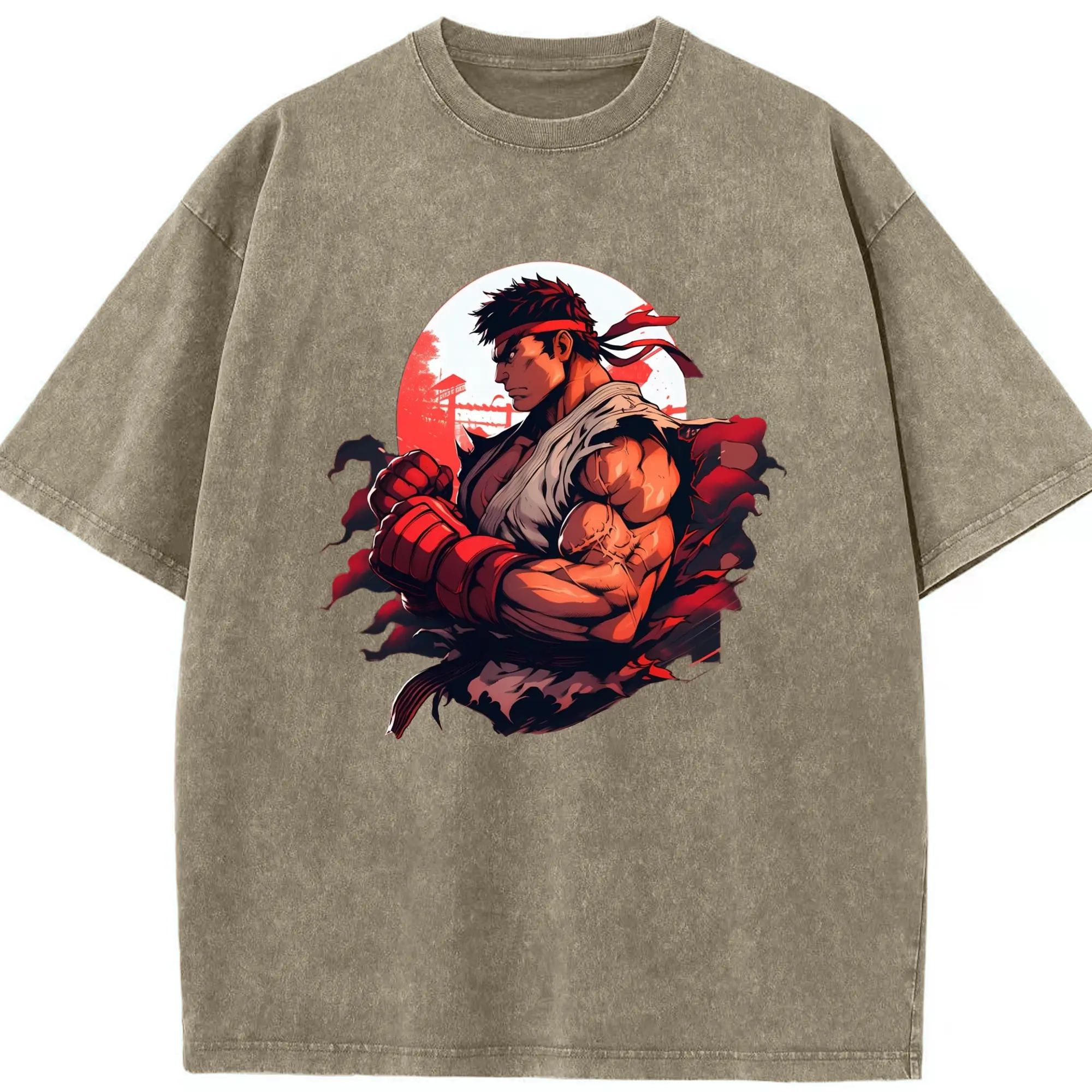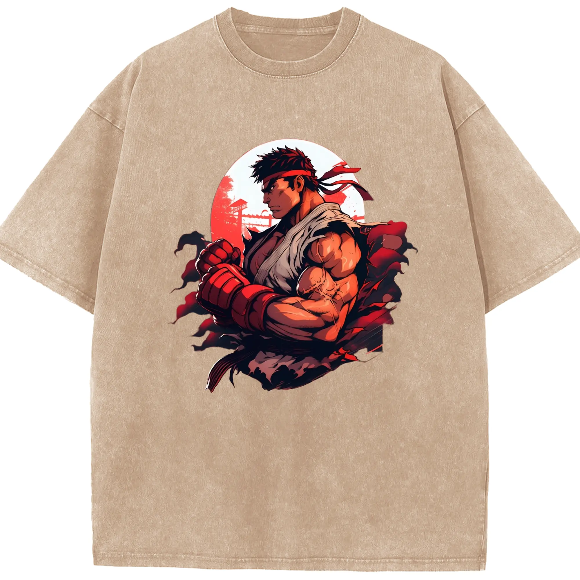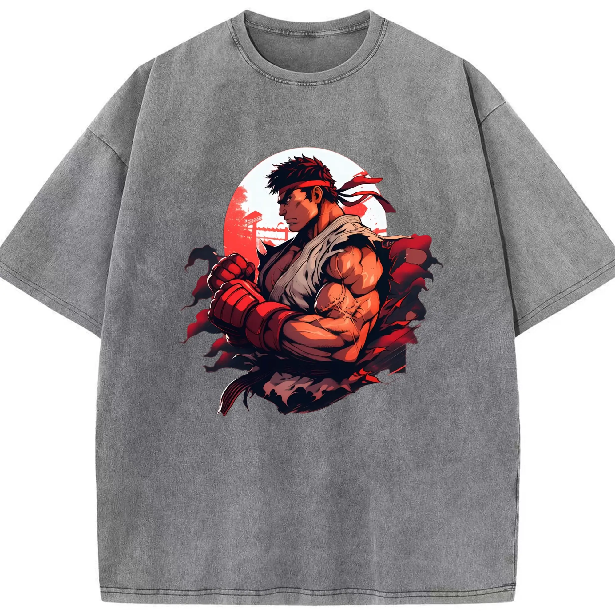 Street fighter ryu shirt​ - Washed Vintage Look 230g Cotton Oversized T-Shirt With Front Heat Transfer Print – Soft, Lightweight, Stylish Fit – Comfortable Casual Wear For Sports & Everyday Use