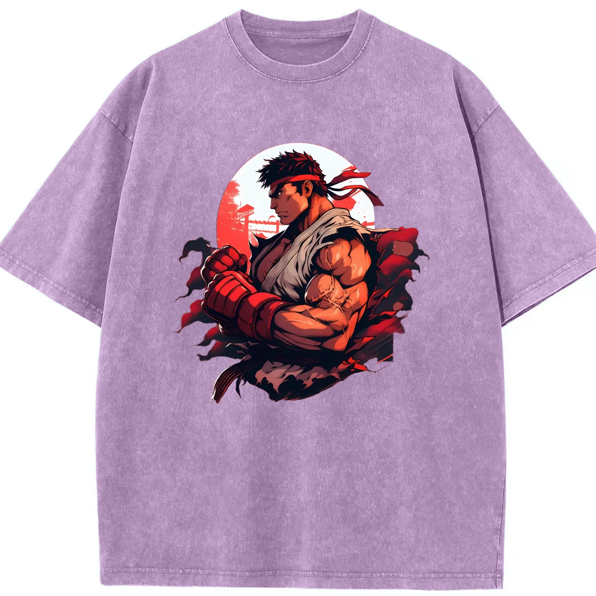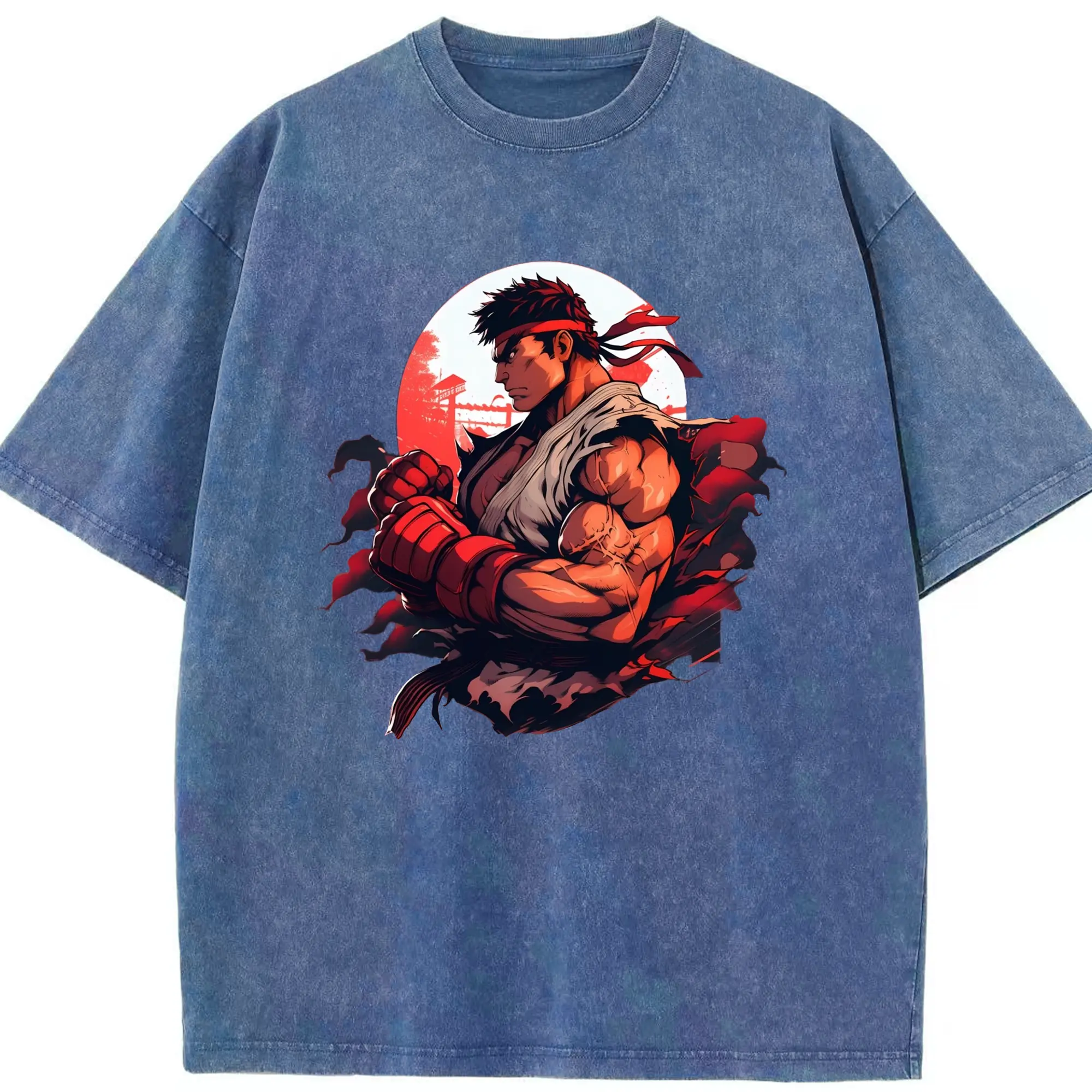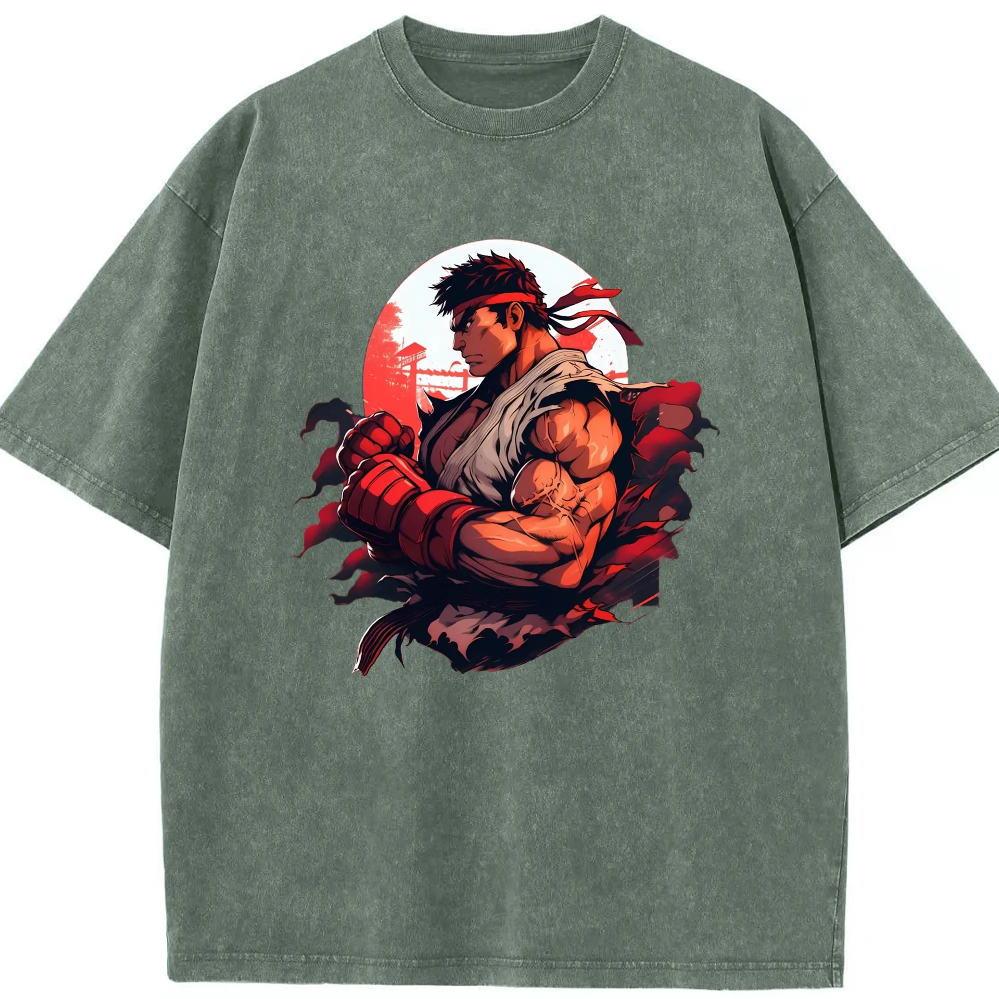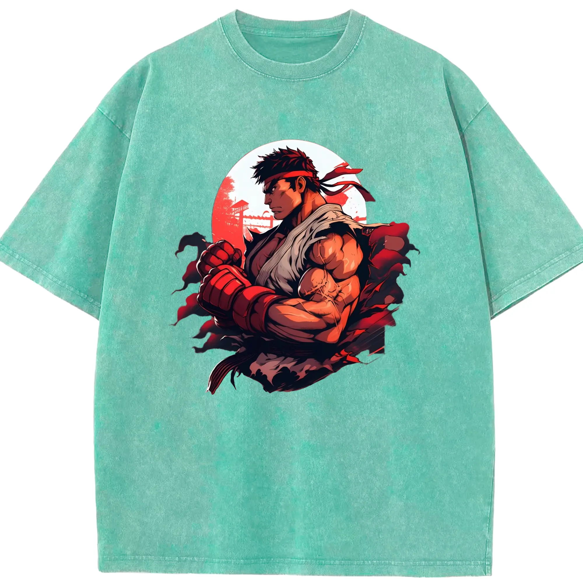 Street fighter ryu shirt​ - Washed Vintage Look 230g Cotton Oversized T-Shirt With Front Heat Transfer Print – Soft, Lightweight, Stylish Fit – Comfortable Casual Wear For Sports & Everyday Use