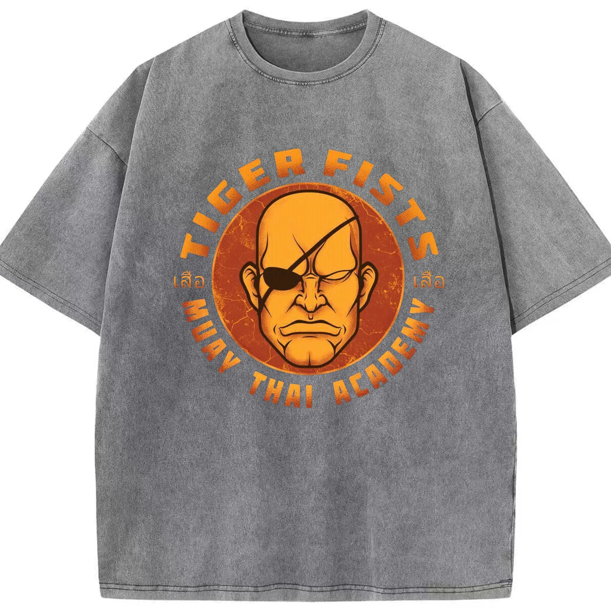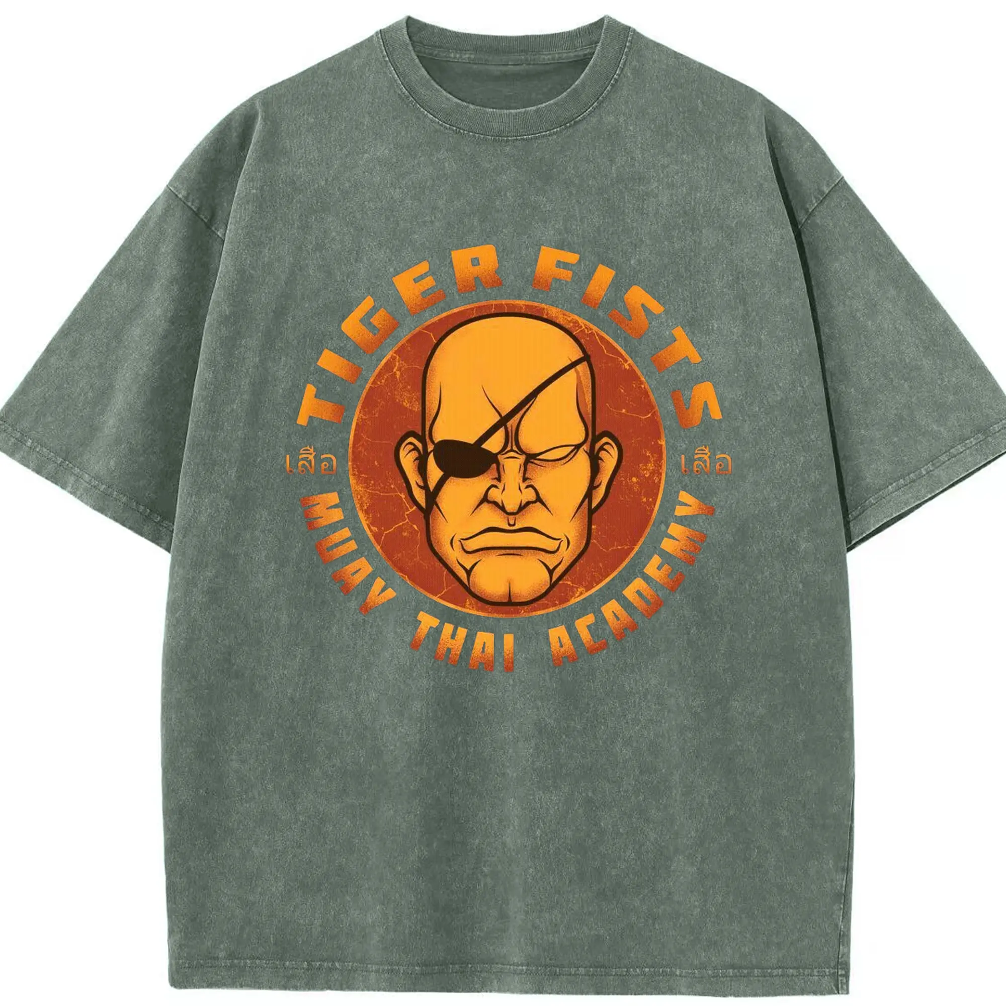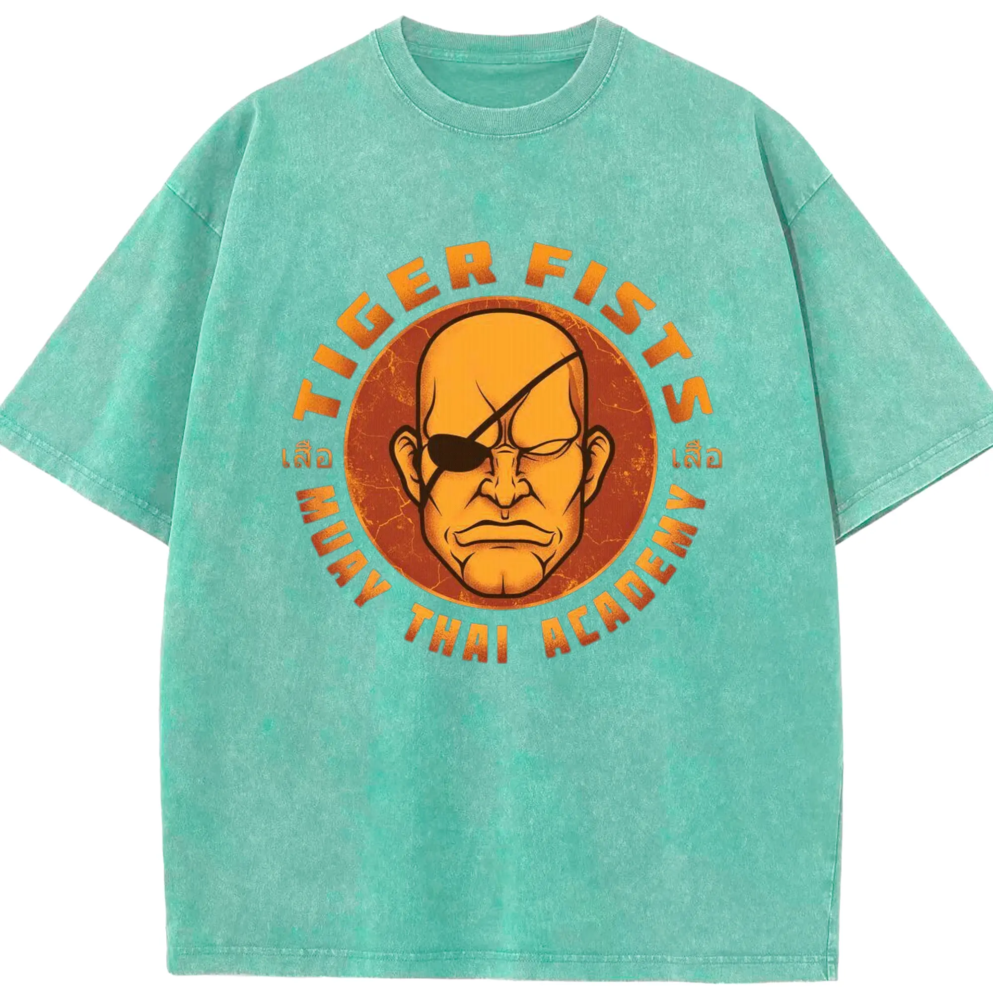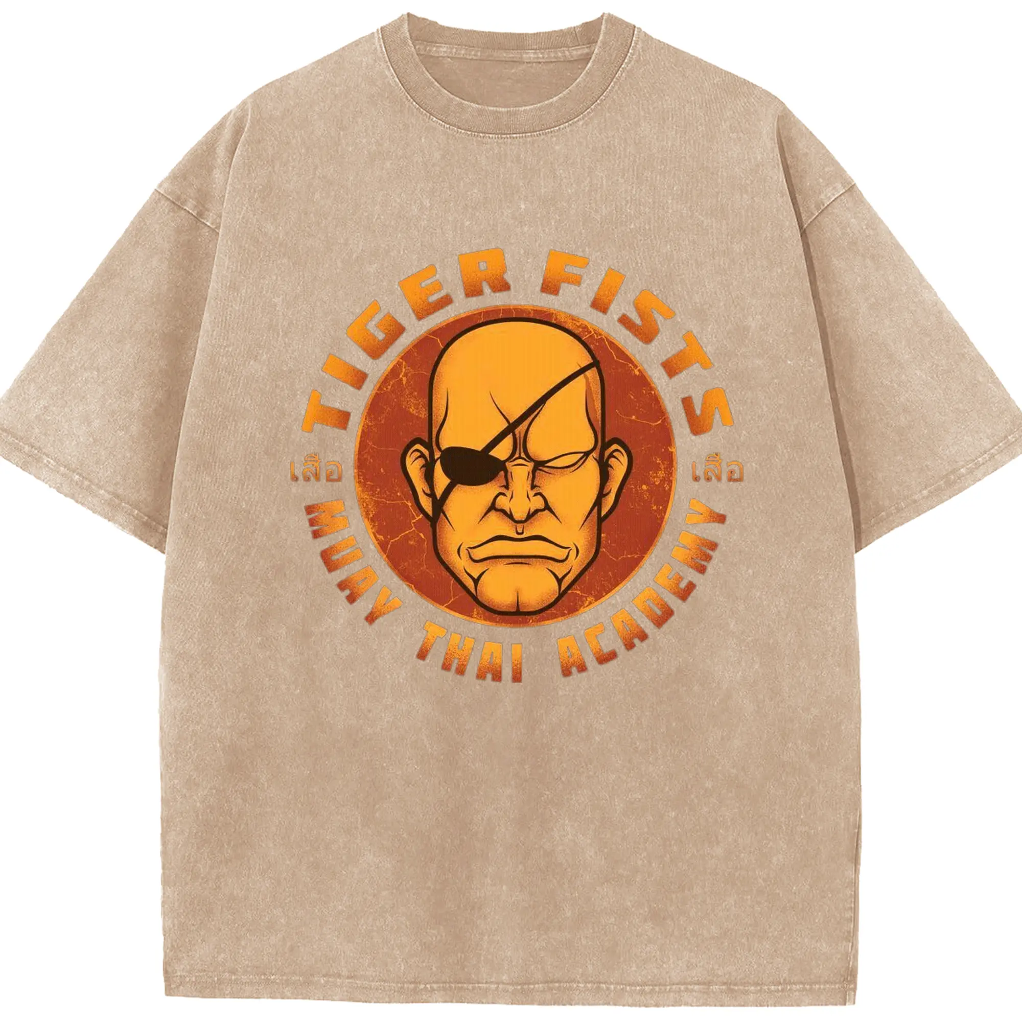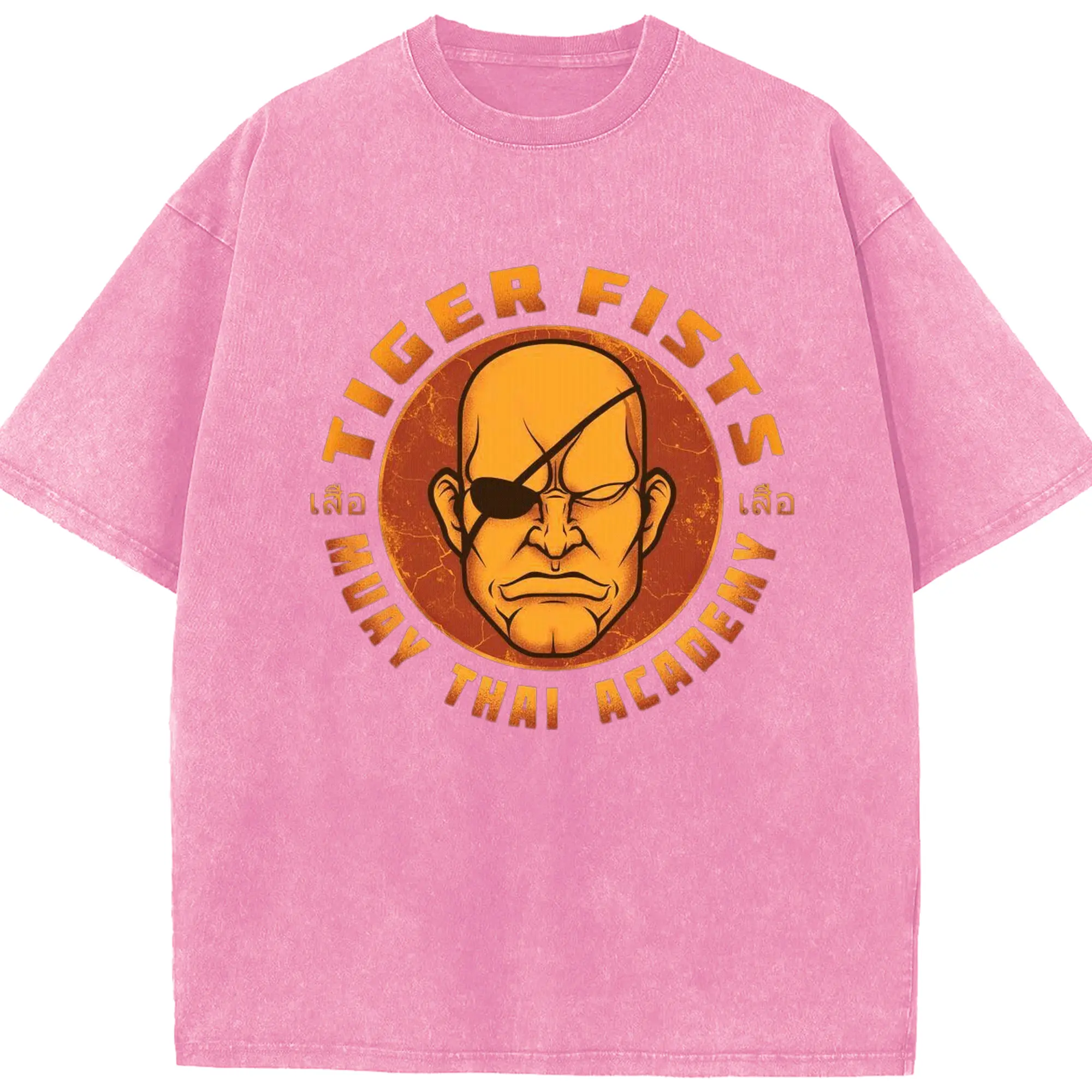 Street fighter sagat t shirt​ - Washed Vintage Look 230g Cotton Oversized T-Shirt With Front Heat Transfer Print – Soft, Lightweight, Stylish Fit – Comfortable Casual Wear For Sports & Everyday Use