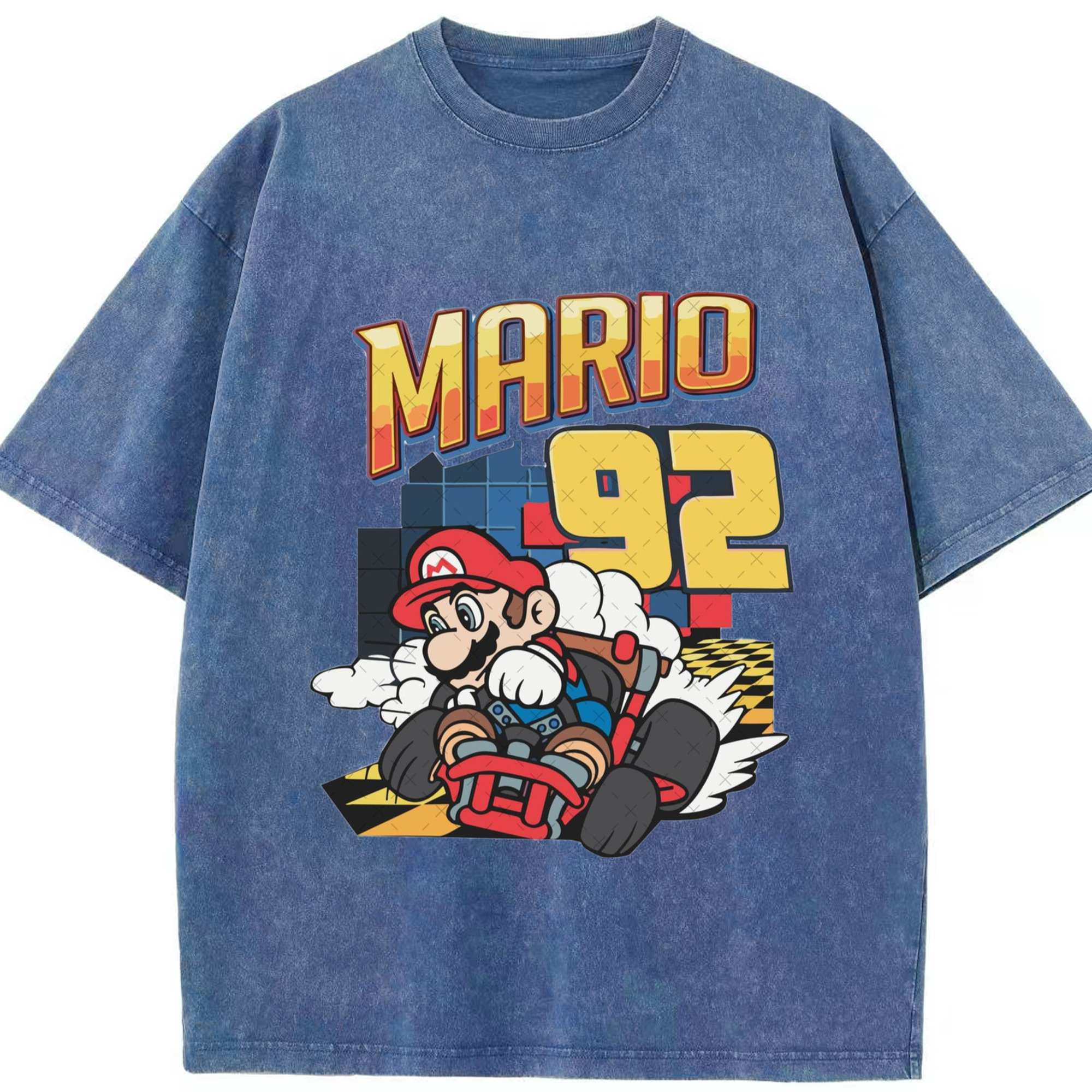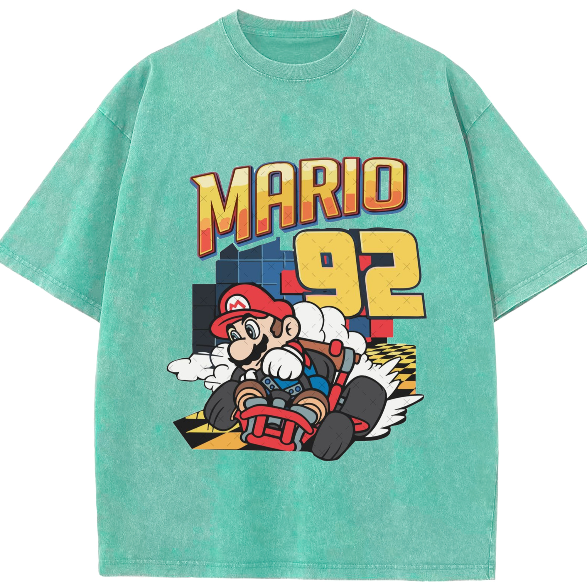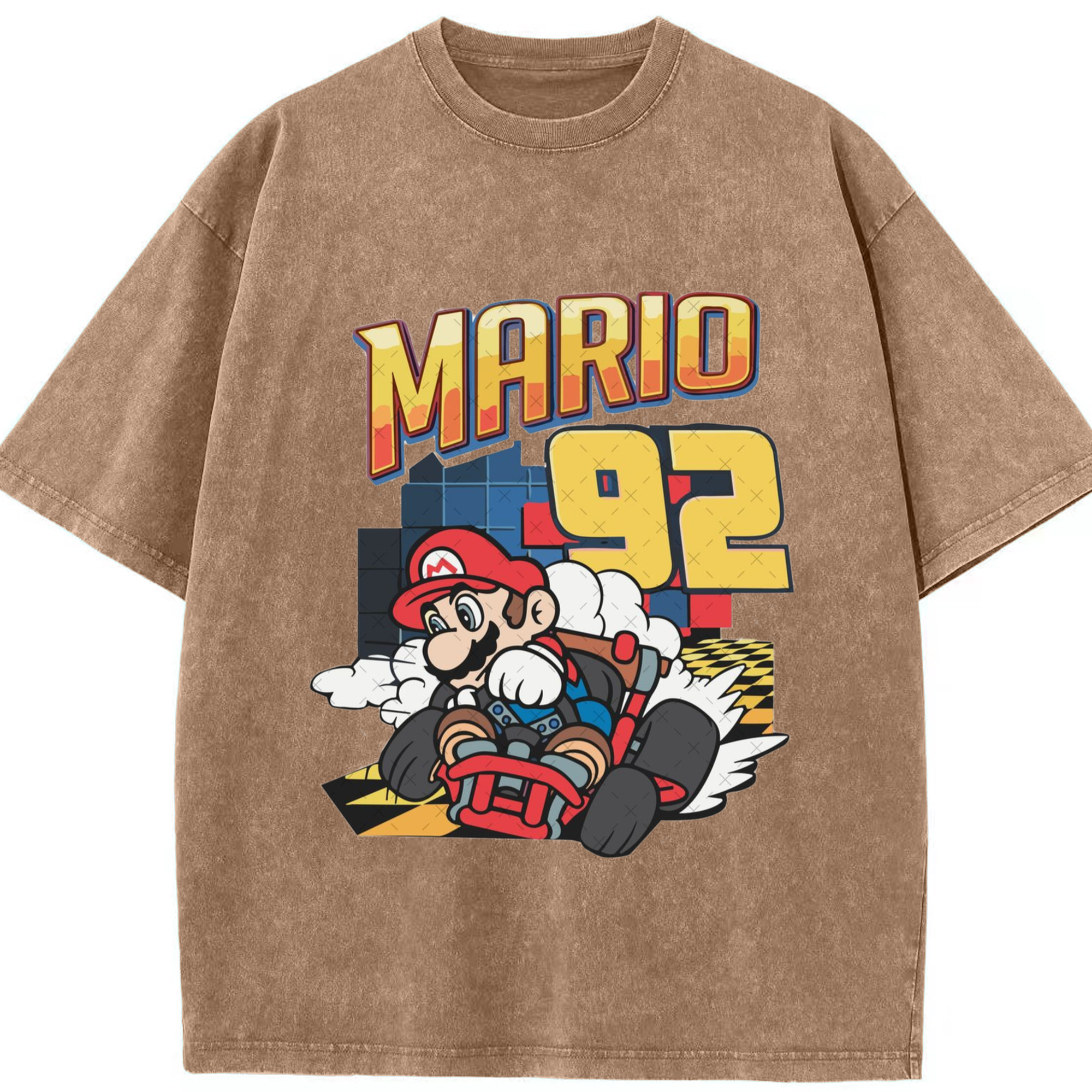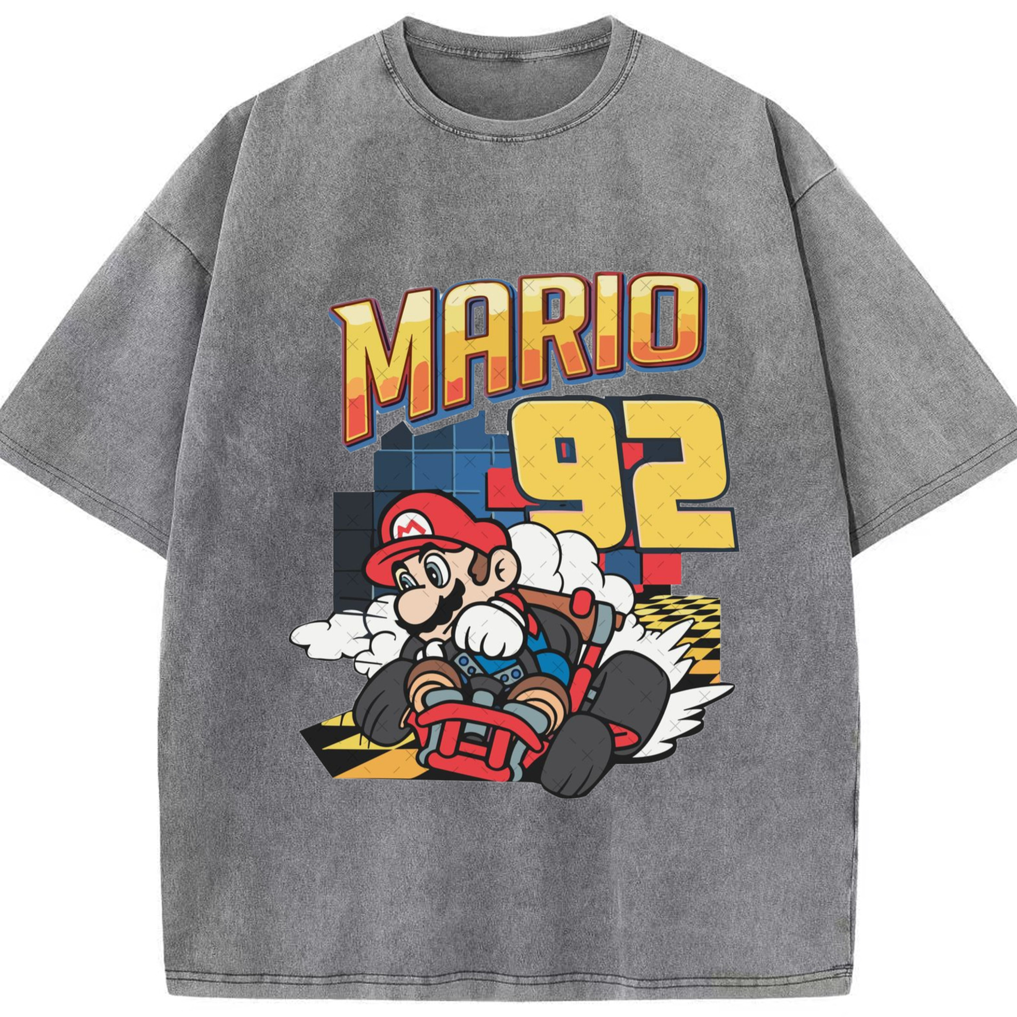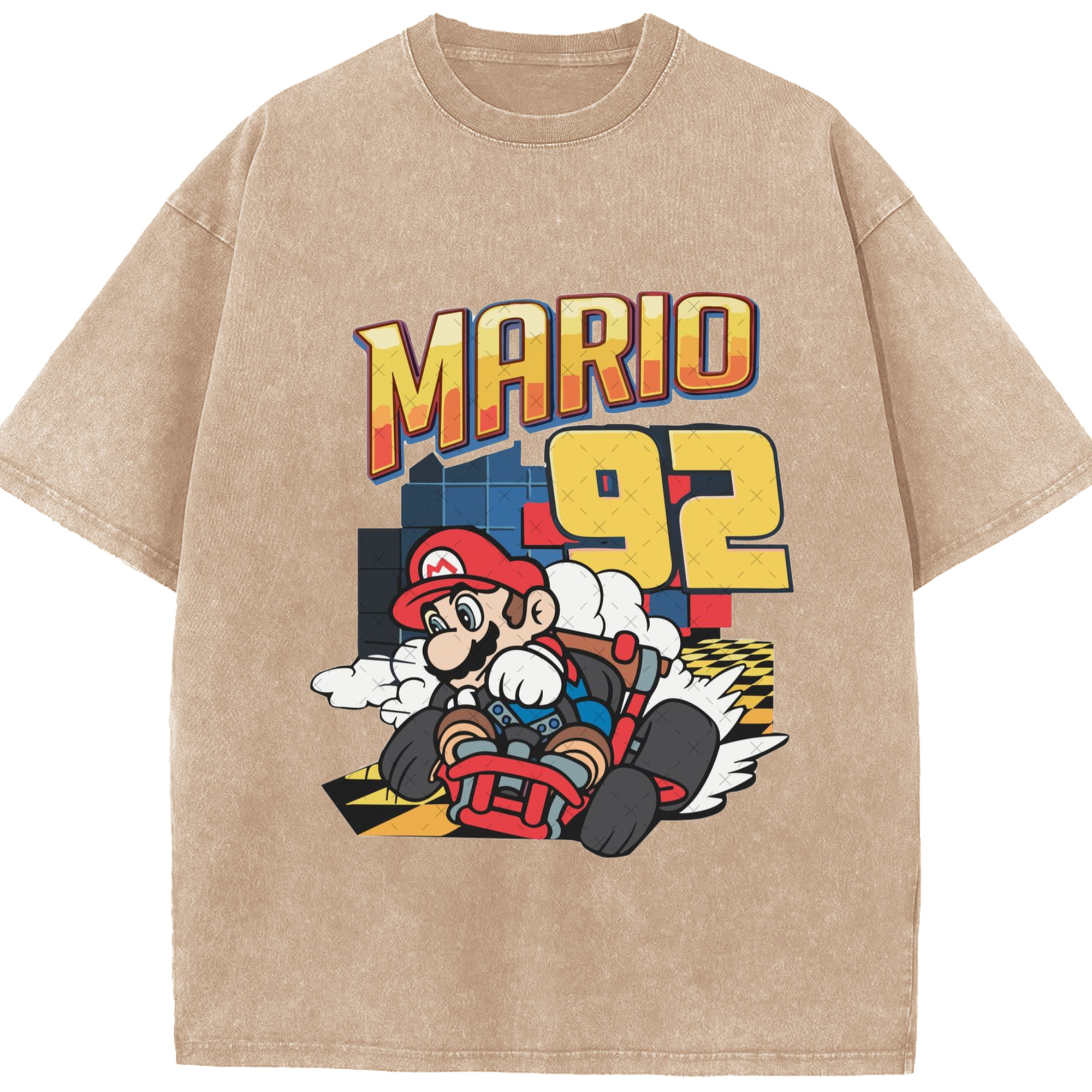 Super Mario '92'kart T-shirt - Washed Vintage Look 230g Cotton Oversized T-Shirt With Front Heat Transfer Print – Soft, Lightweight, Stylish Fit – Comfortable Casual Wear For Sports & Everyday Use