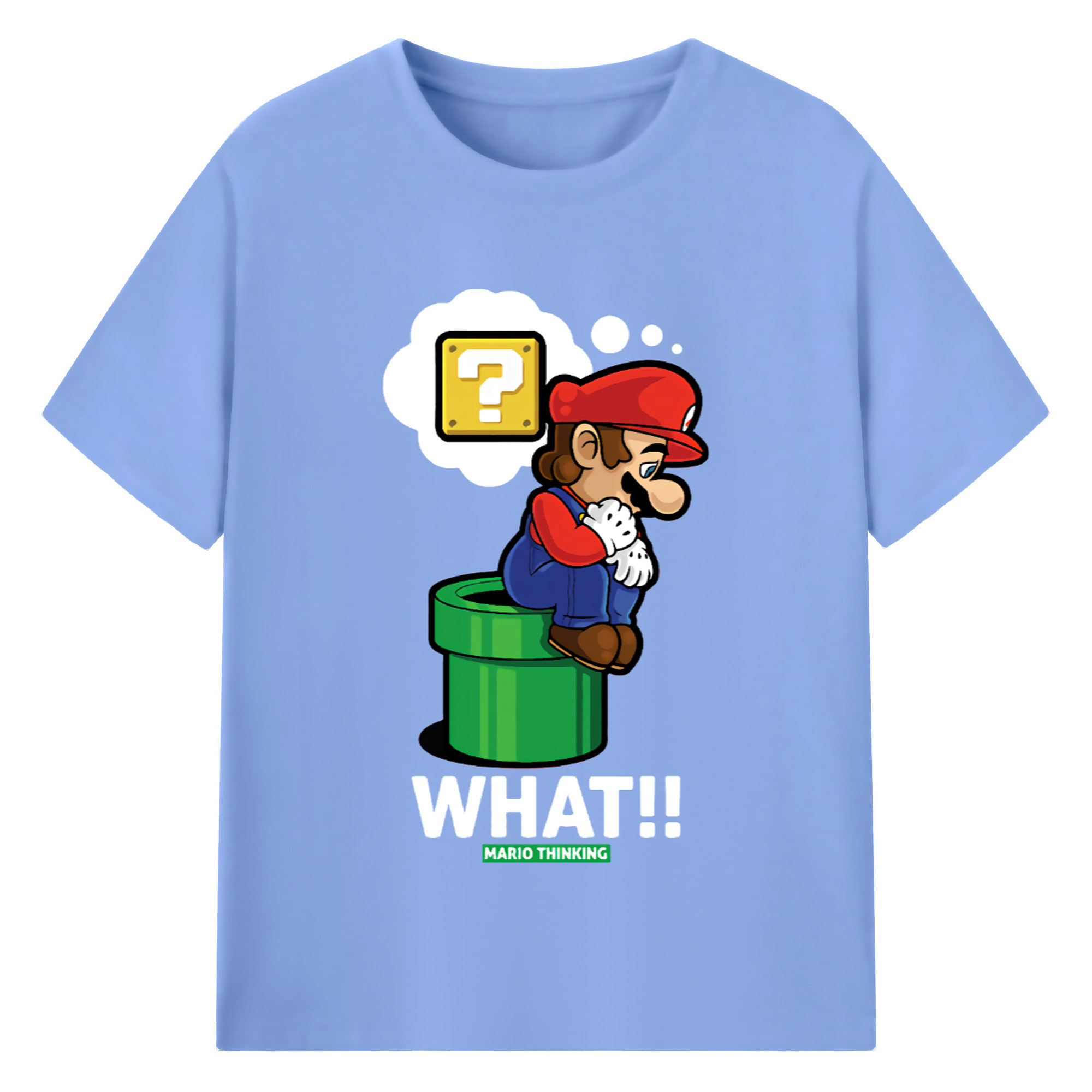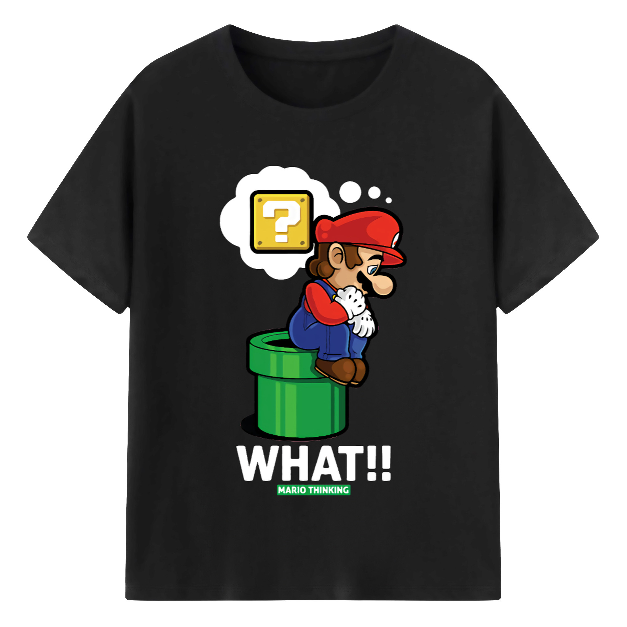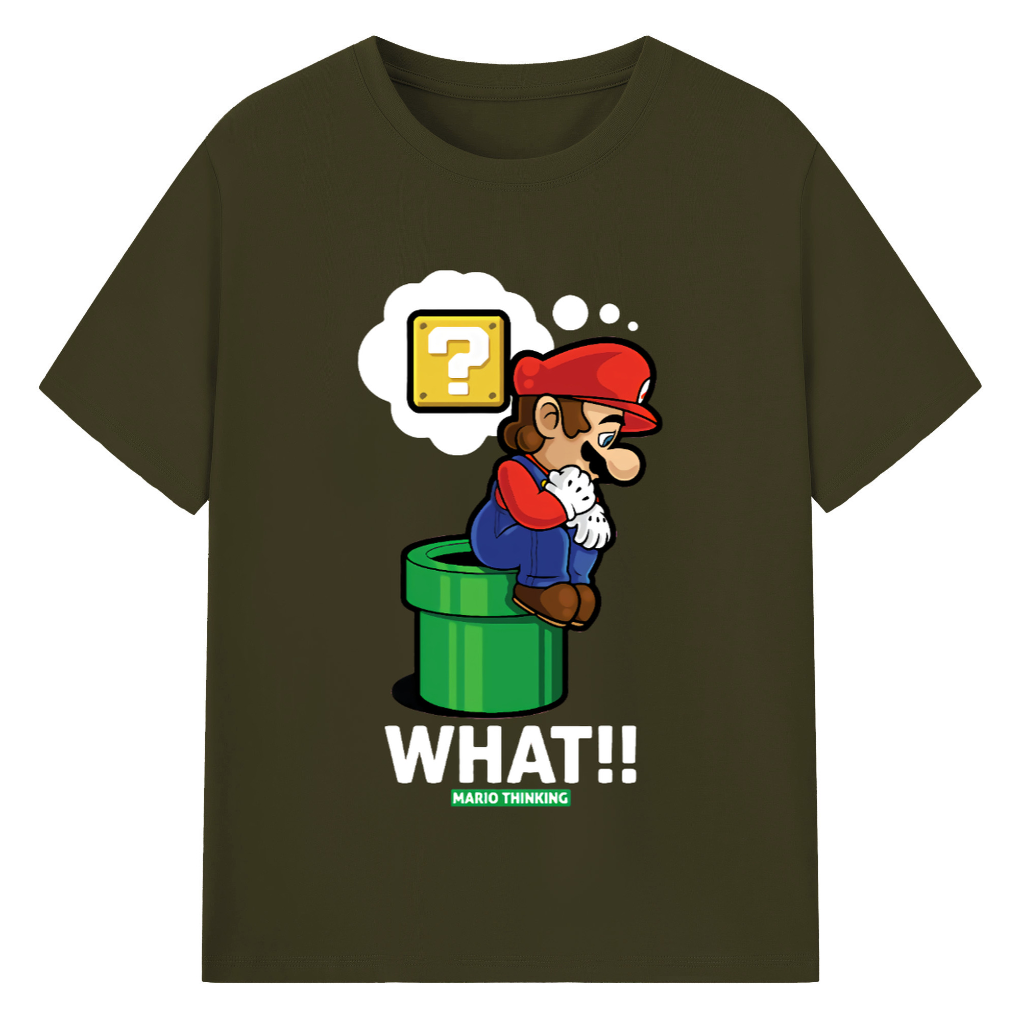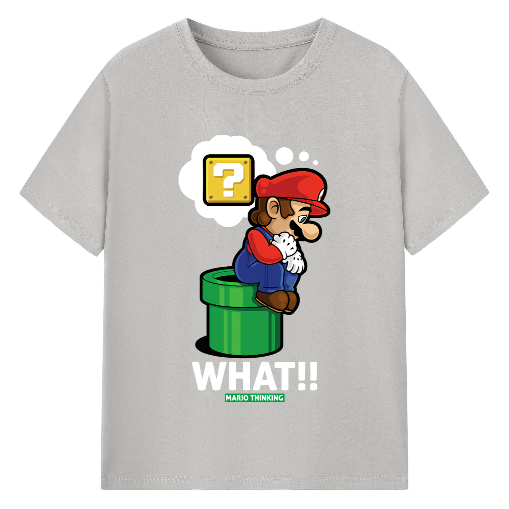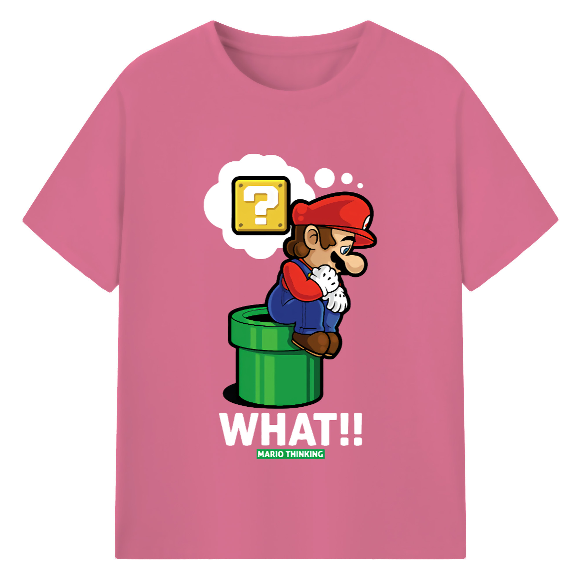 Super Mario 'deep thinking 'T-shirt - 180g Cotton T-Shirt With Front Heat Transfer Print – Soft, Lightweight, Fitted Design – Comfortable Casual Wear For Sports & Everyday Use