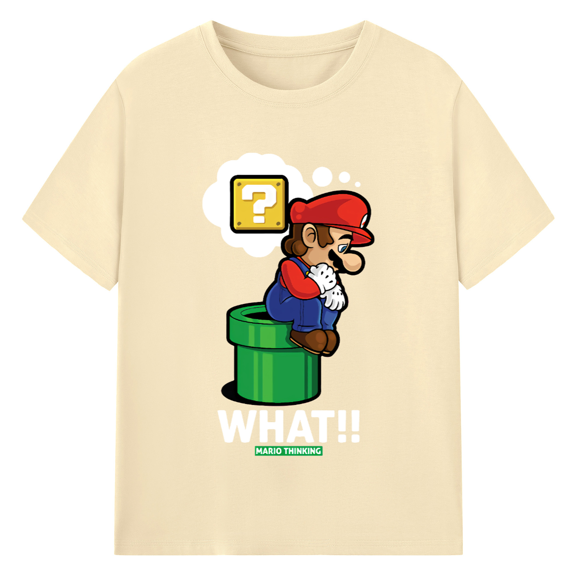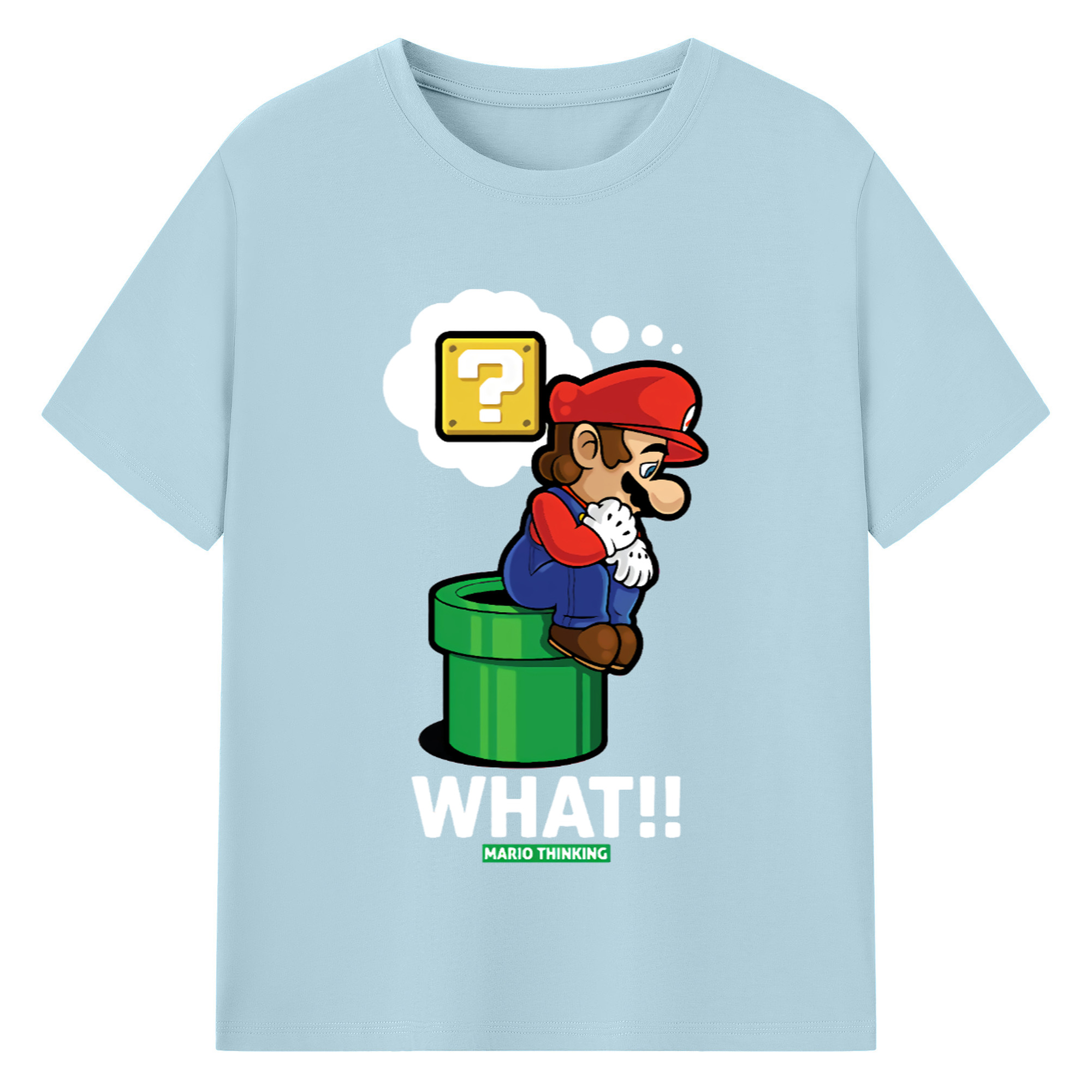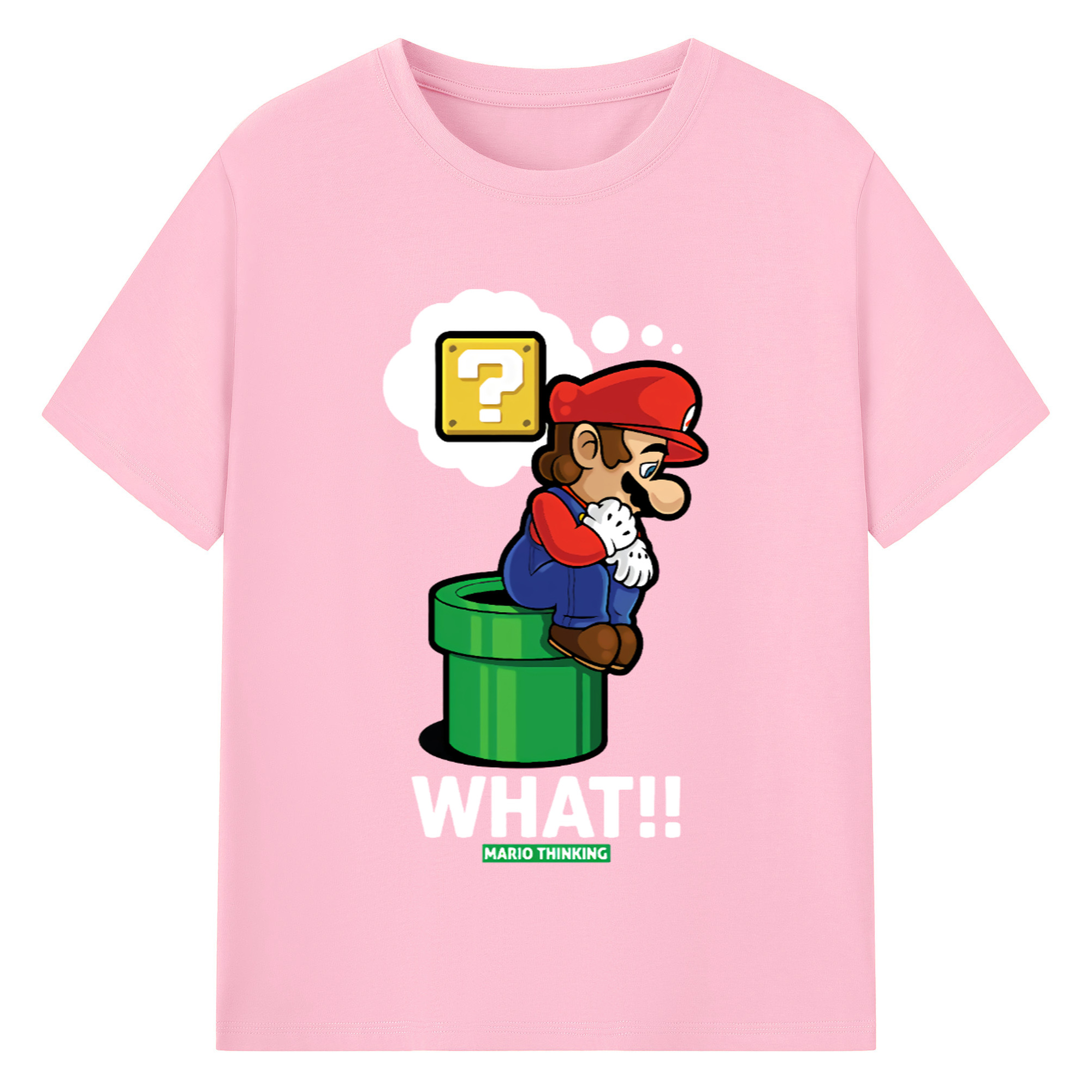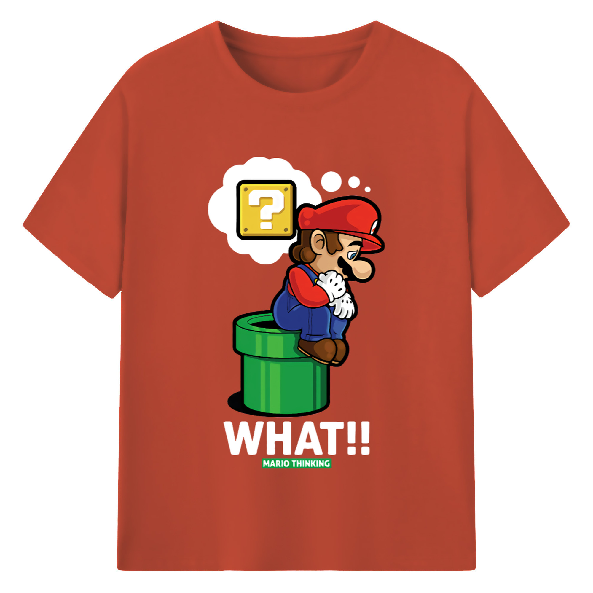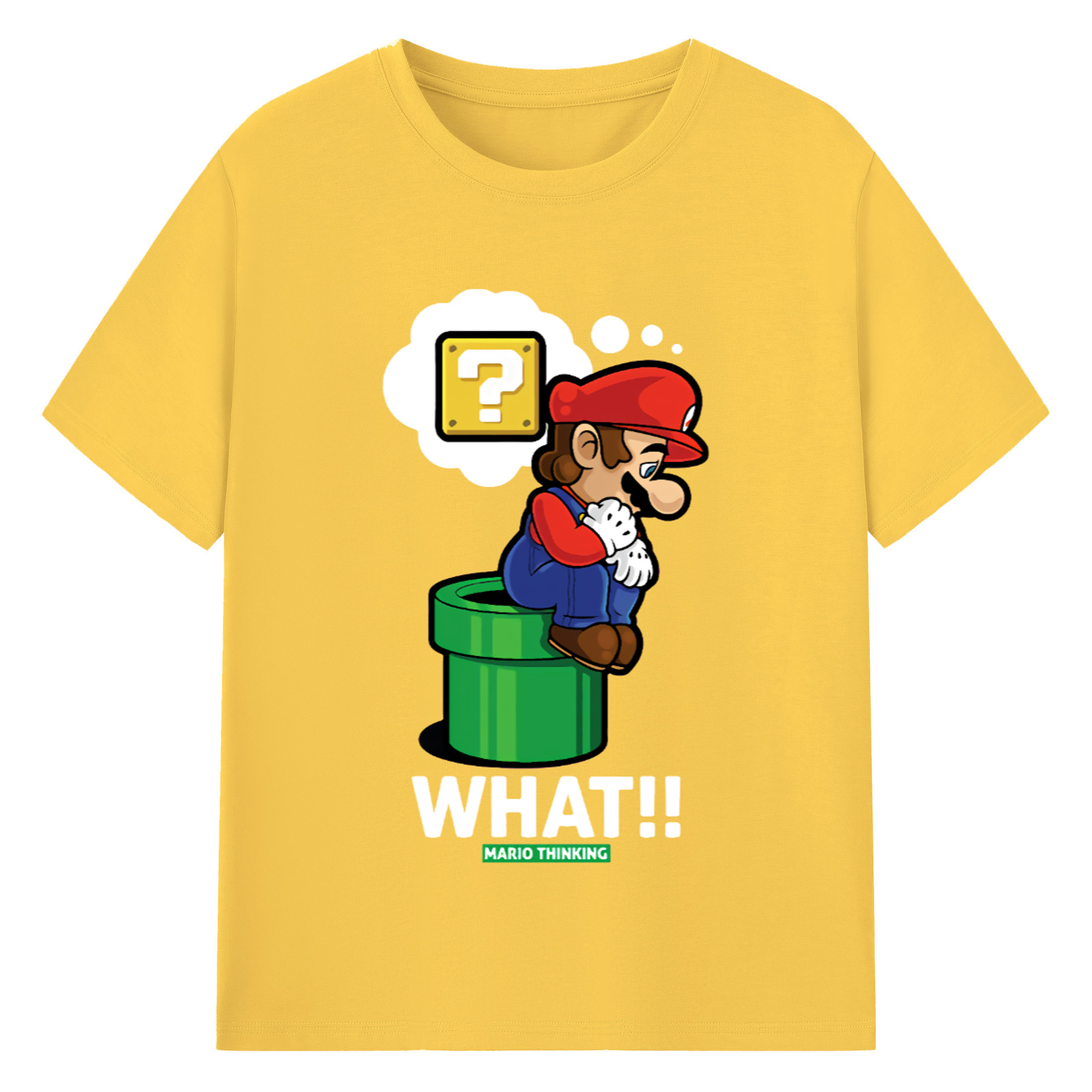 Super Mario 'deep thinking 'T-shirt - 180g Cotton T-Shirt With Front Heat Transfer Print – Soft, Lightweight, Fitted Design – Comfortable Casual Wear For Sports & Everyday Use
