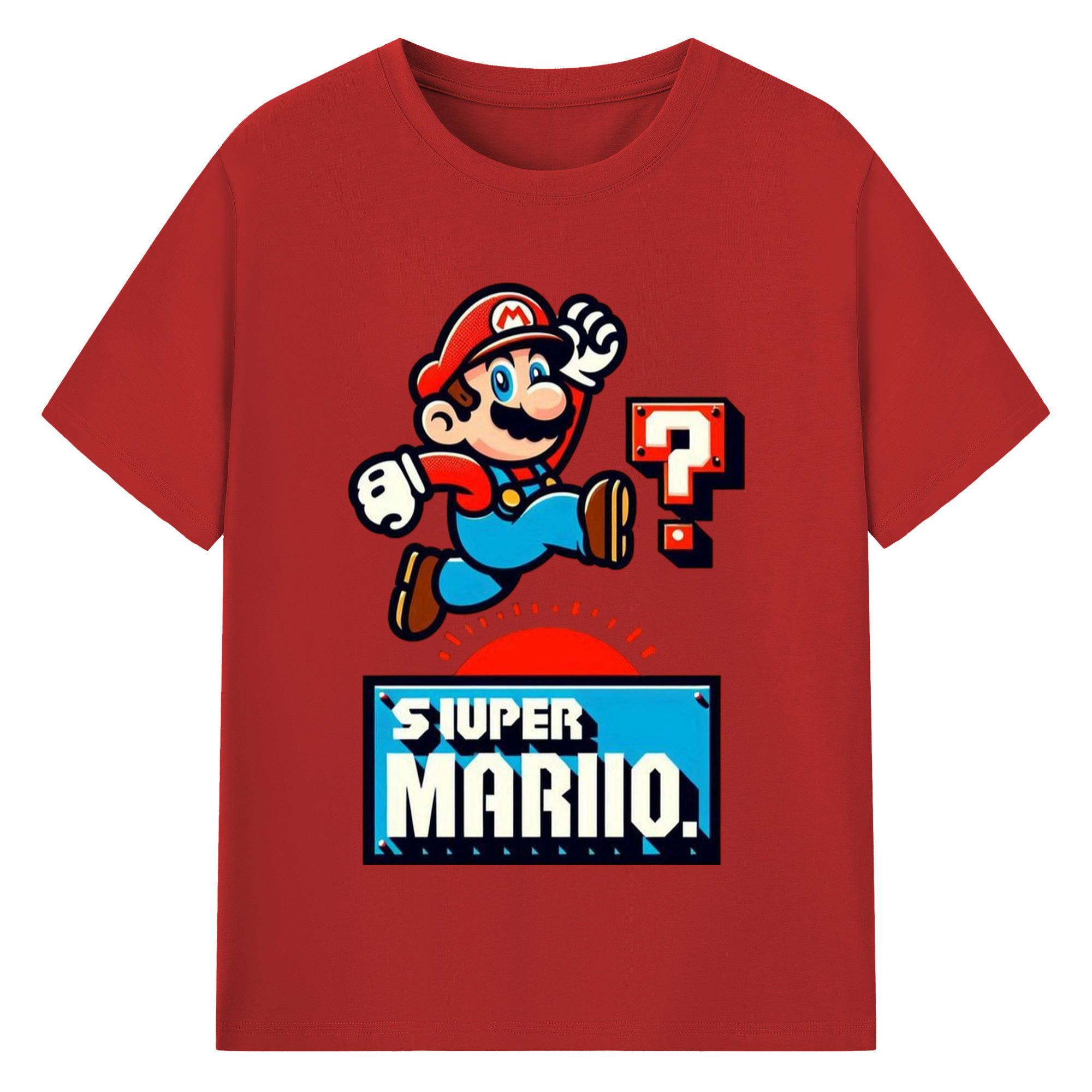 Super Mario 'jumping' T-shirt - 180g Cotton T-Shirt With Front Heat Transfer Print – Soft, Lightweight, Fitted Design – Comfortable Casual Wear For Sports & Everyday Use