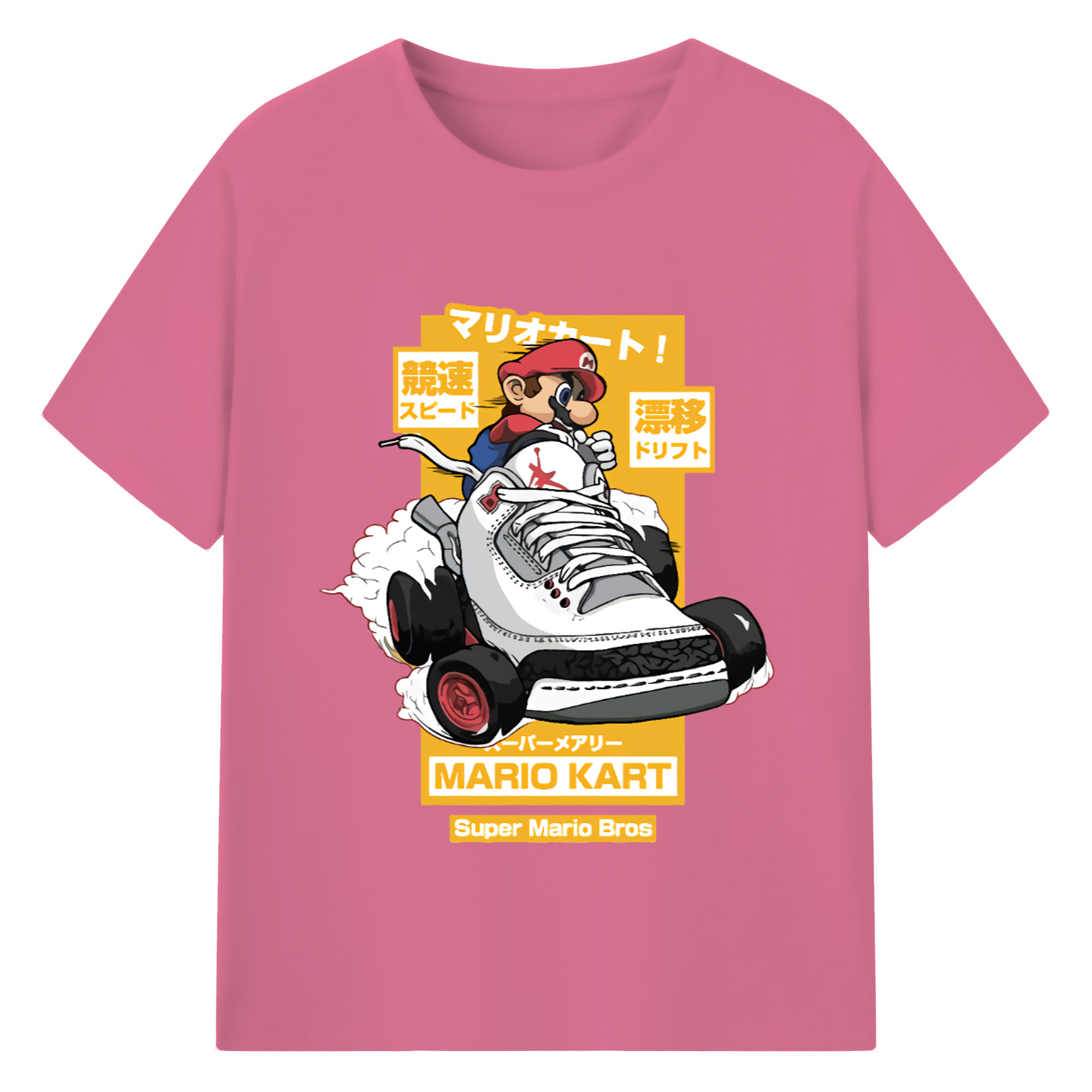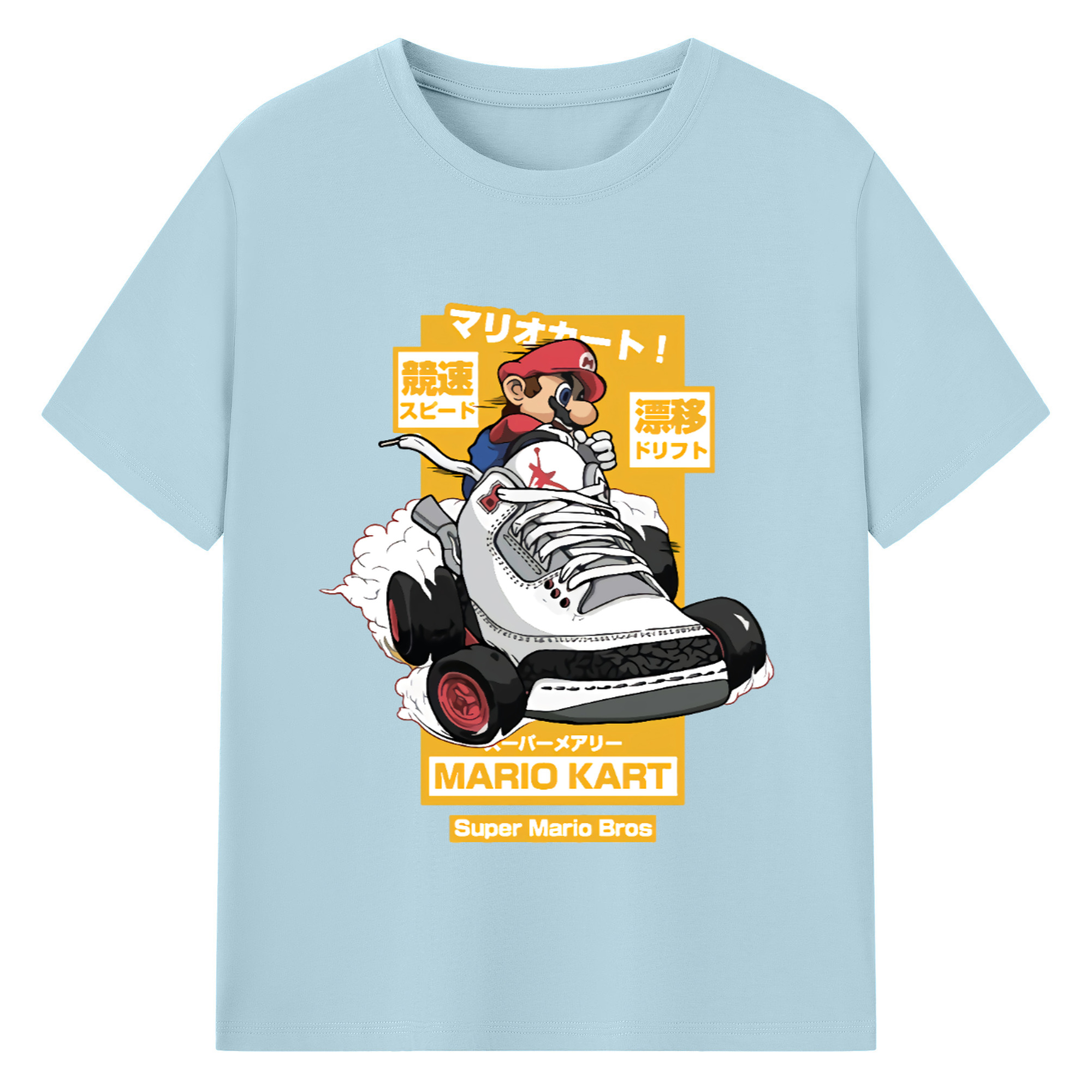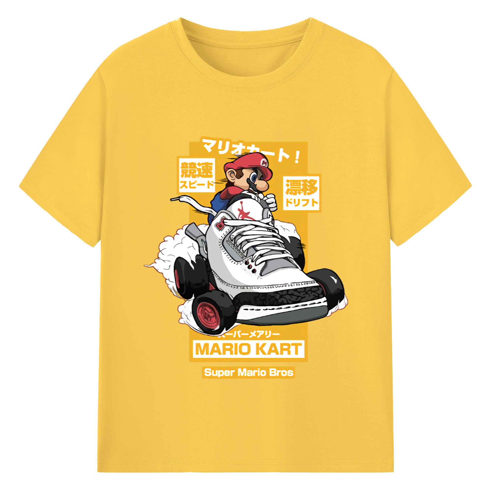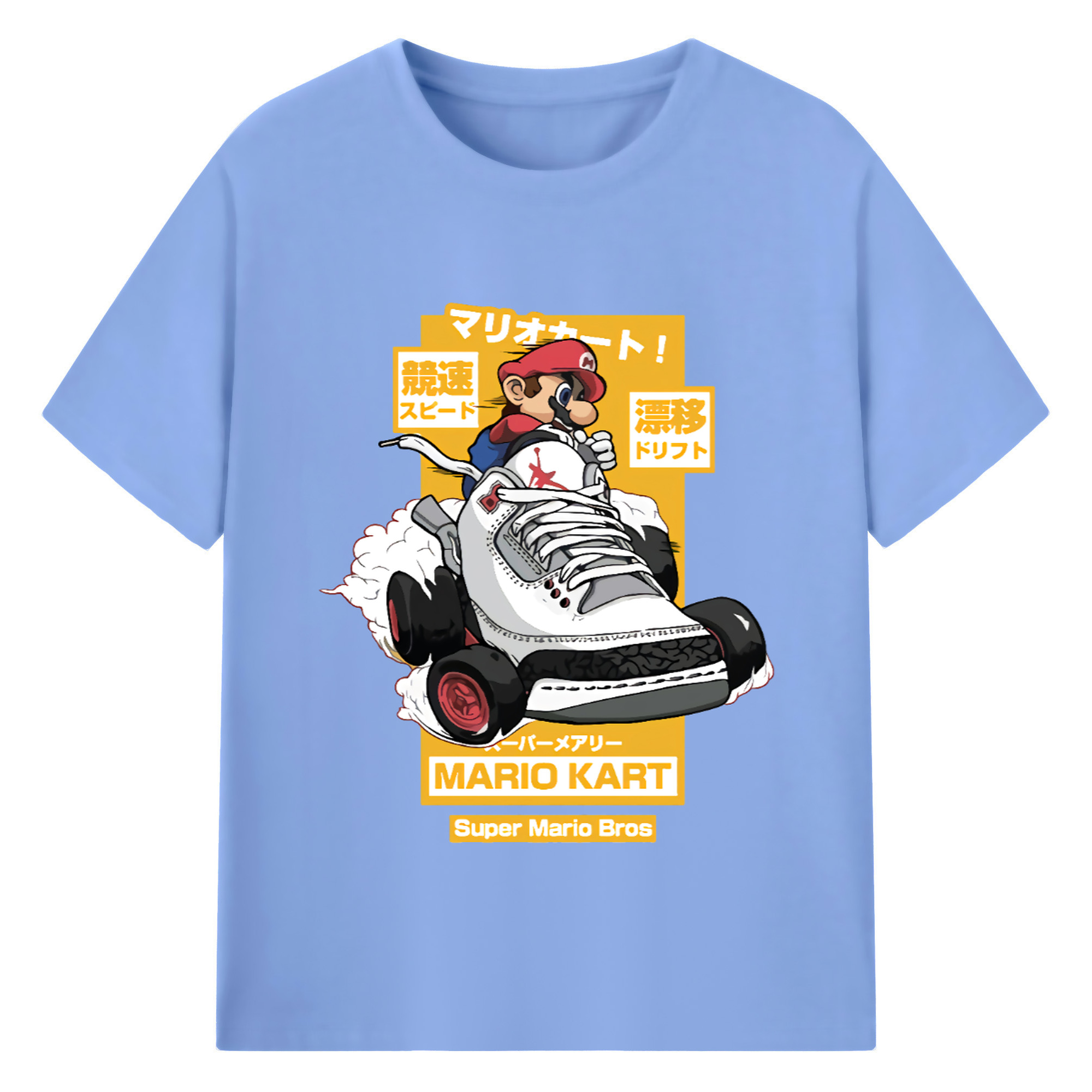 Super Mario 'Shoe car' kart Shirts - 180g Cotton T-Shirt With Front Heat Transfer Print – Soft, Lightweight, Fitted Design – Comfortable Casual Wear For Sports & Everyday Use