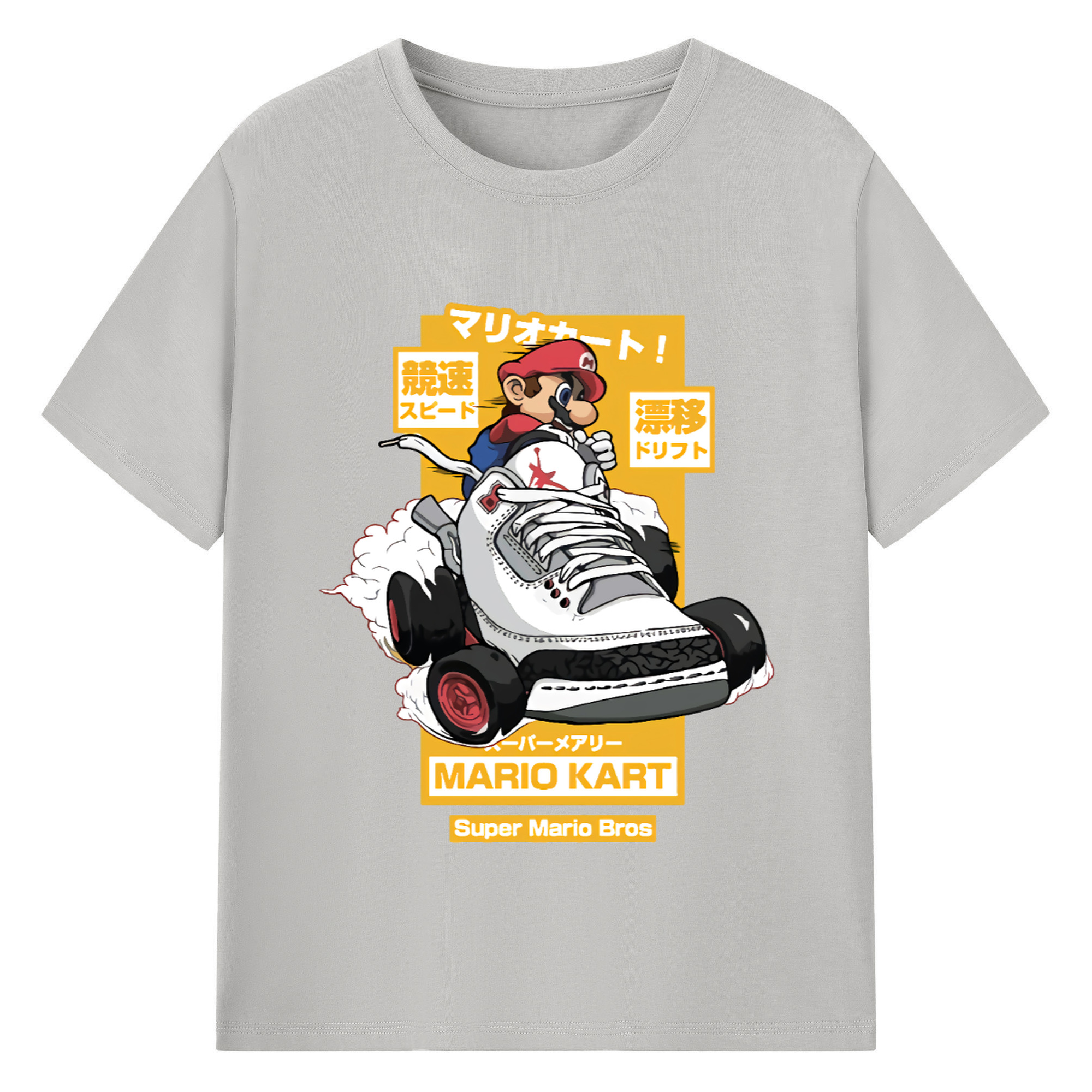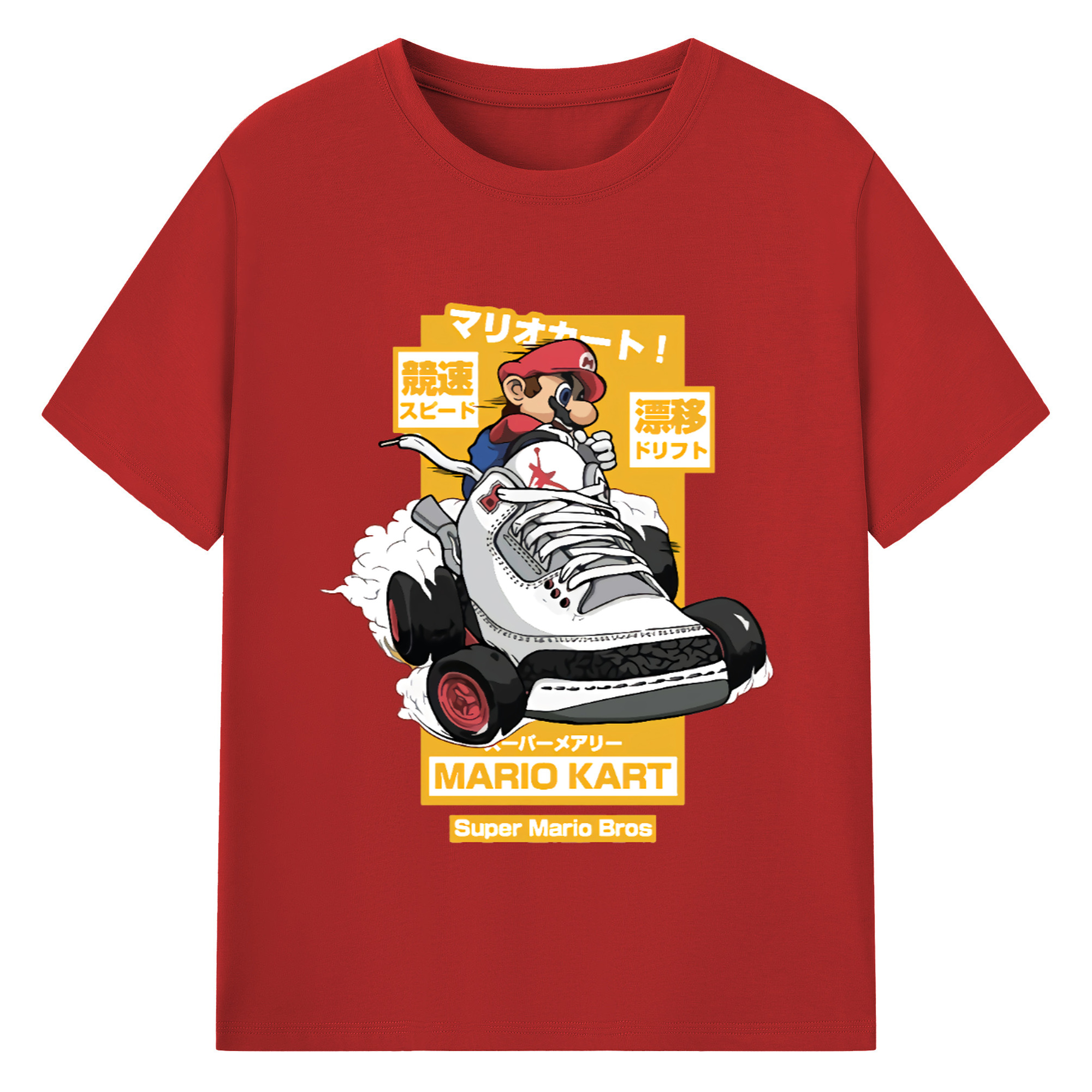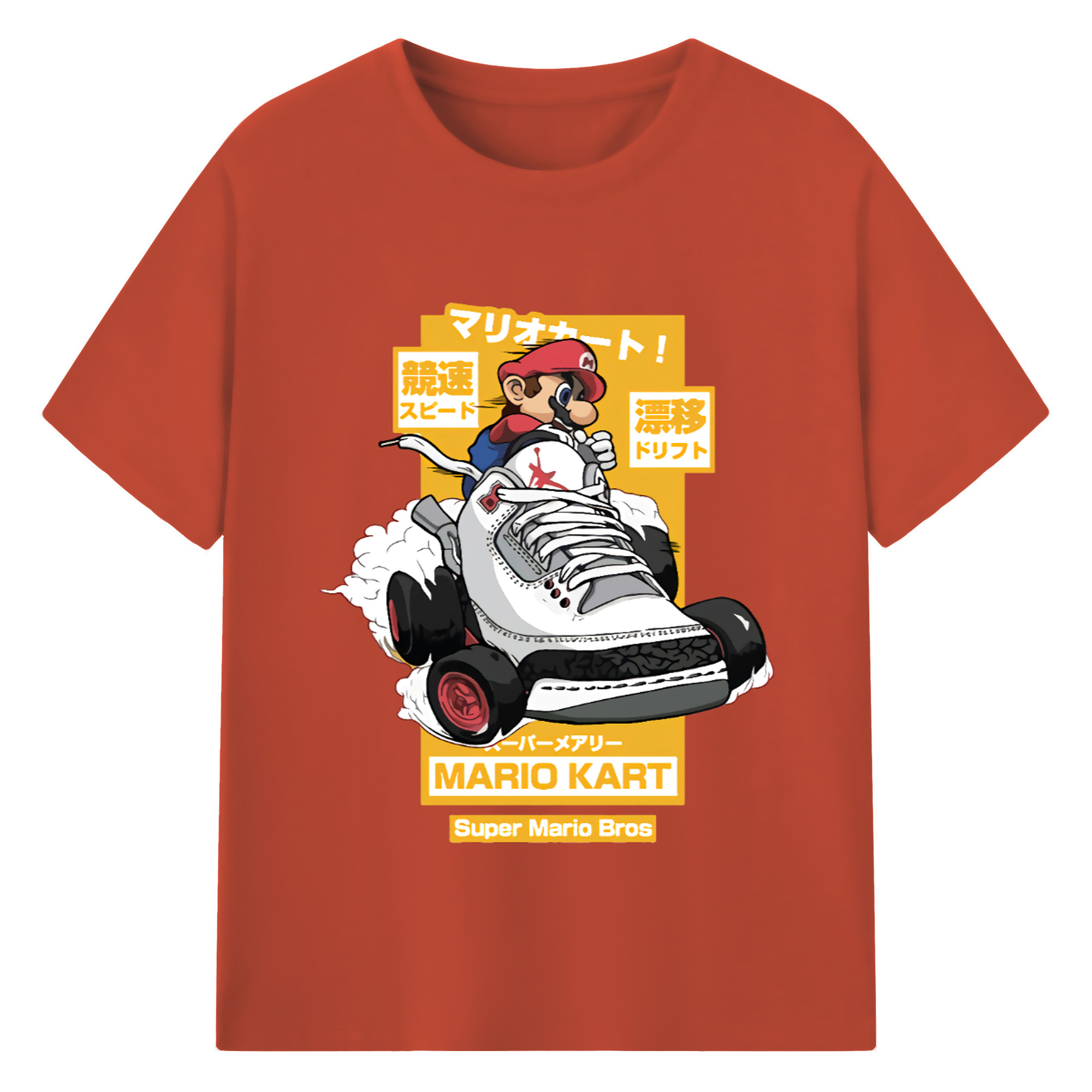 Super Mario 'Shoe car' kart Shirts - 180g Cotton T-Shirt With Front Heat Transfer Print – Soft, Lightweight, Fitted Design – Comfortable Casual Wear For Sports & Everyday Use