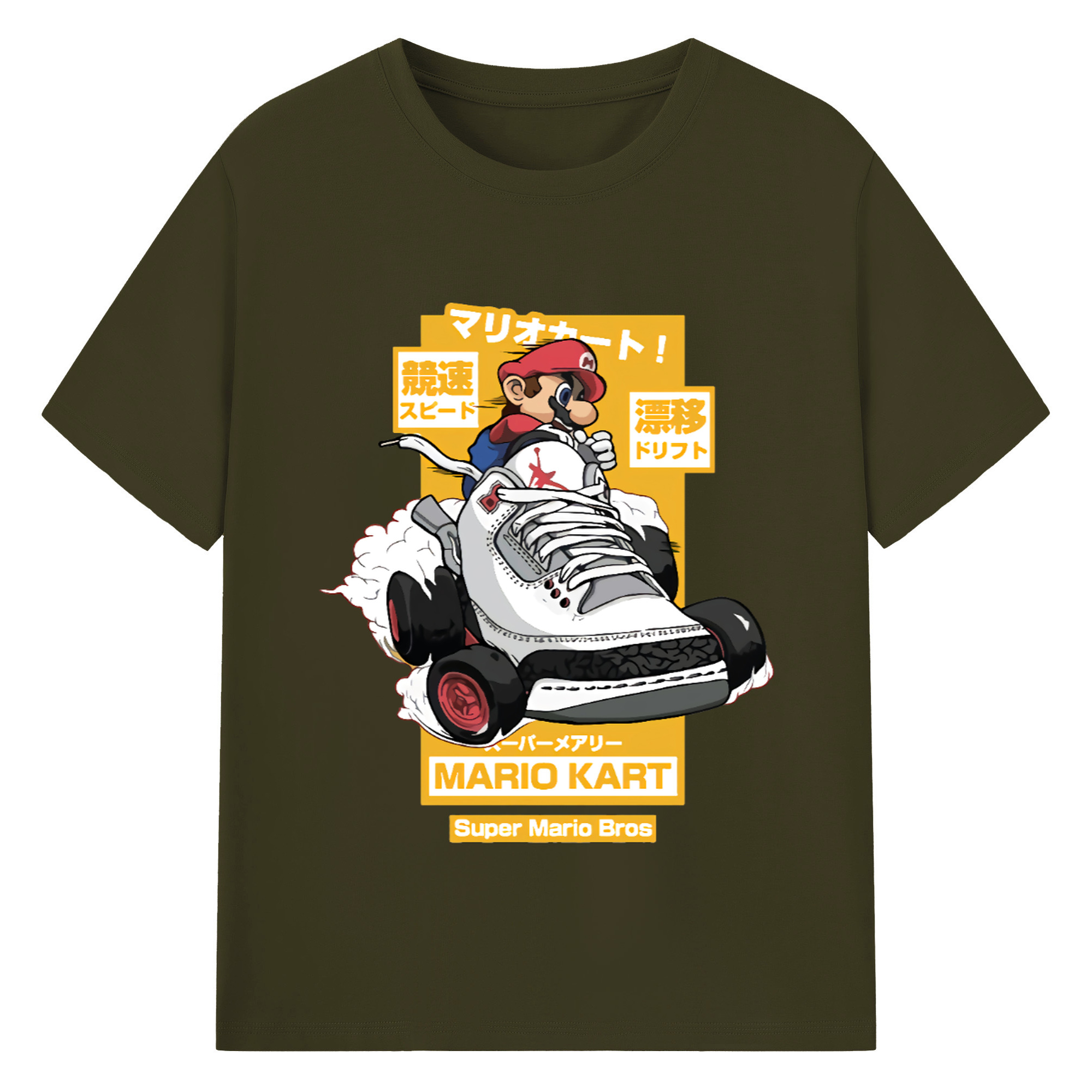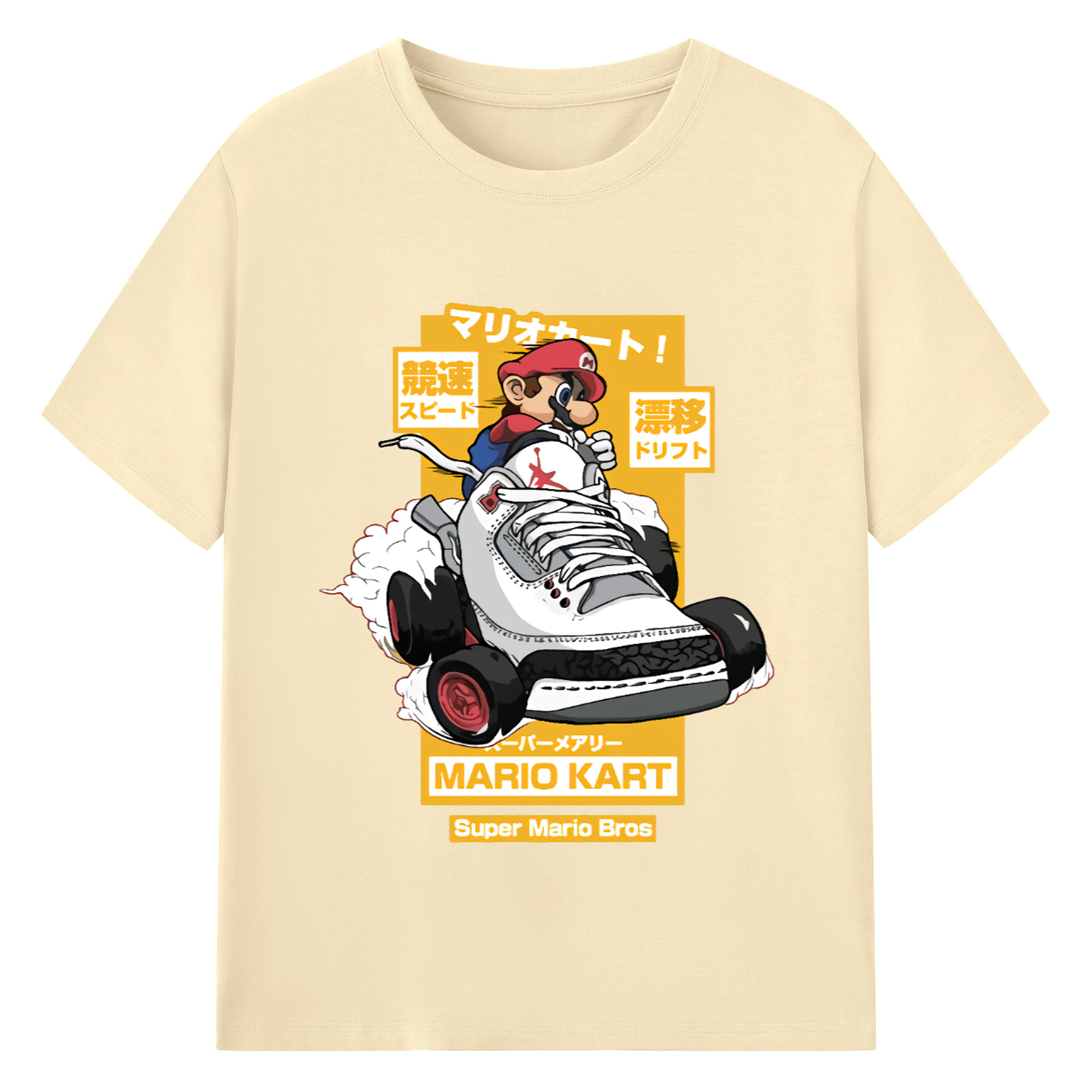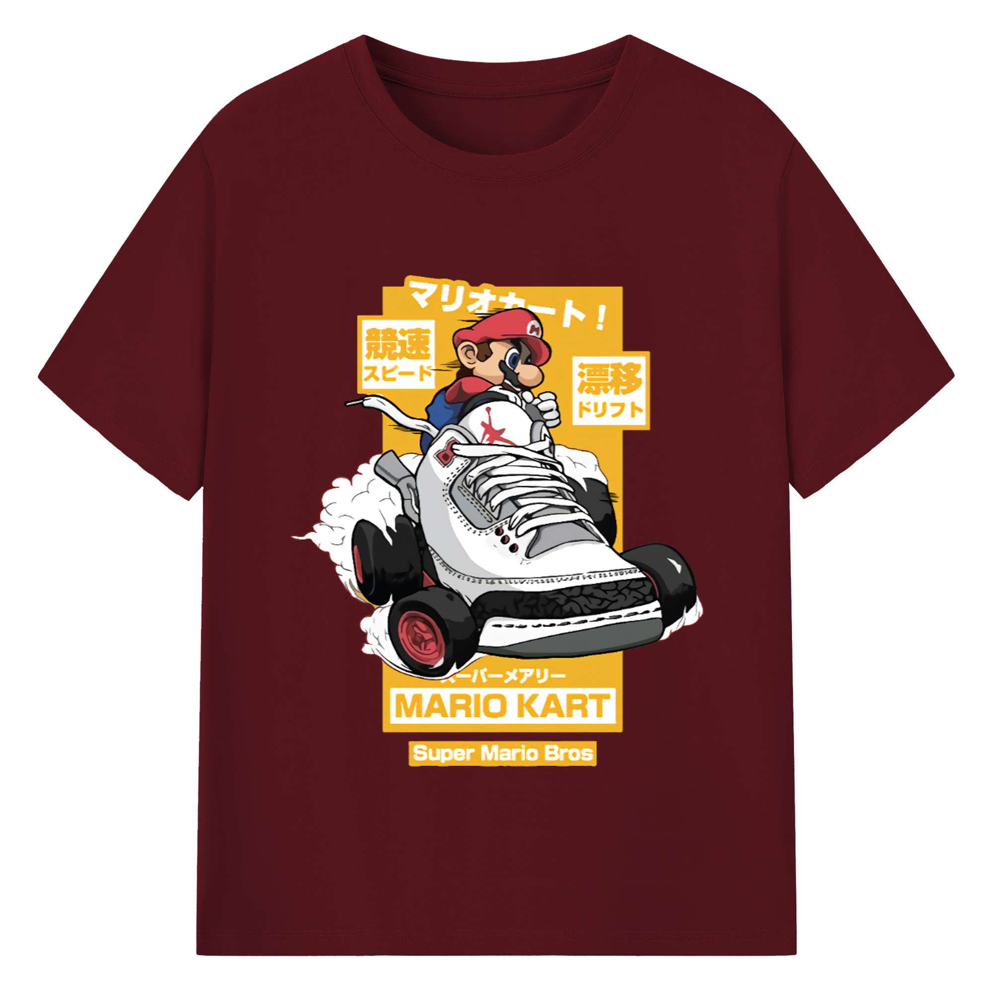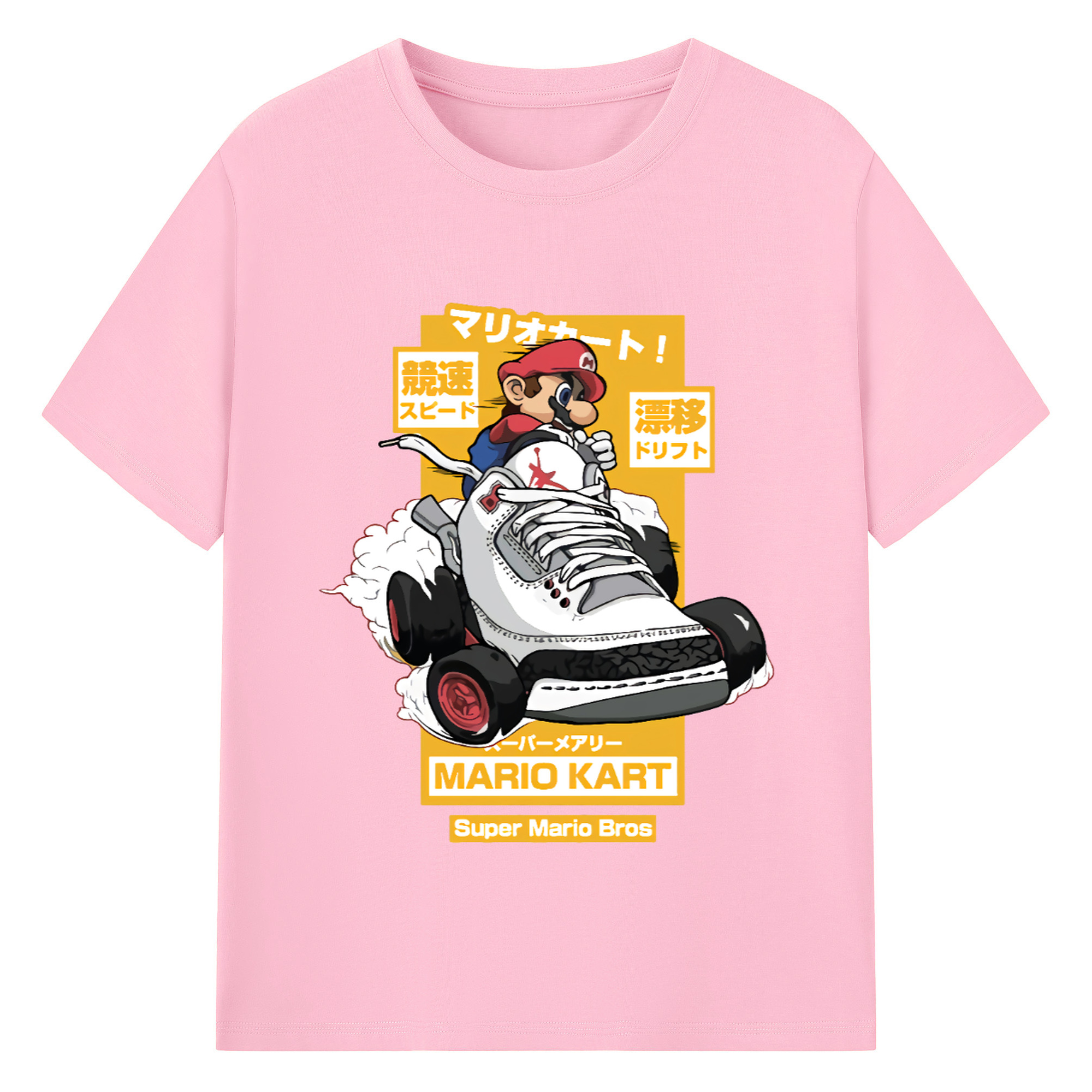 Super Mario 'Shoe car' kart Shirts - 180g Cotton T-Shirt With Front Heat Transfer Print – Soft, Lightweight, Fitted Design – Comfortable Casual Wear For Sports & Everyday Use