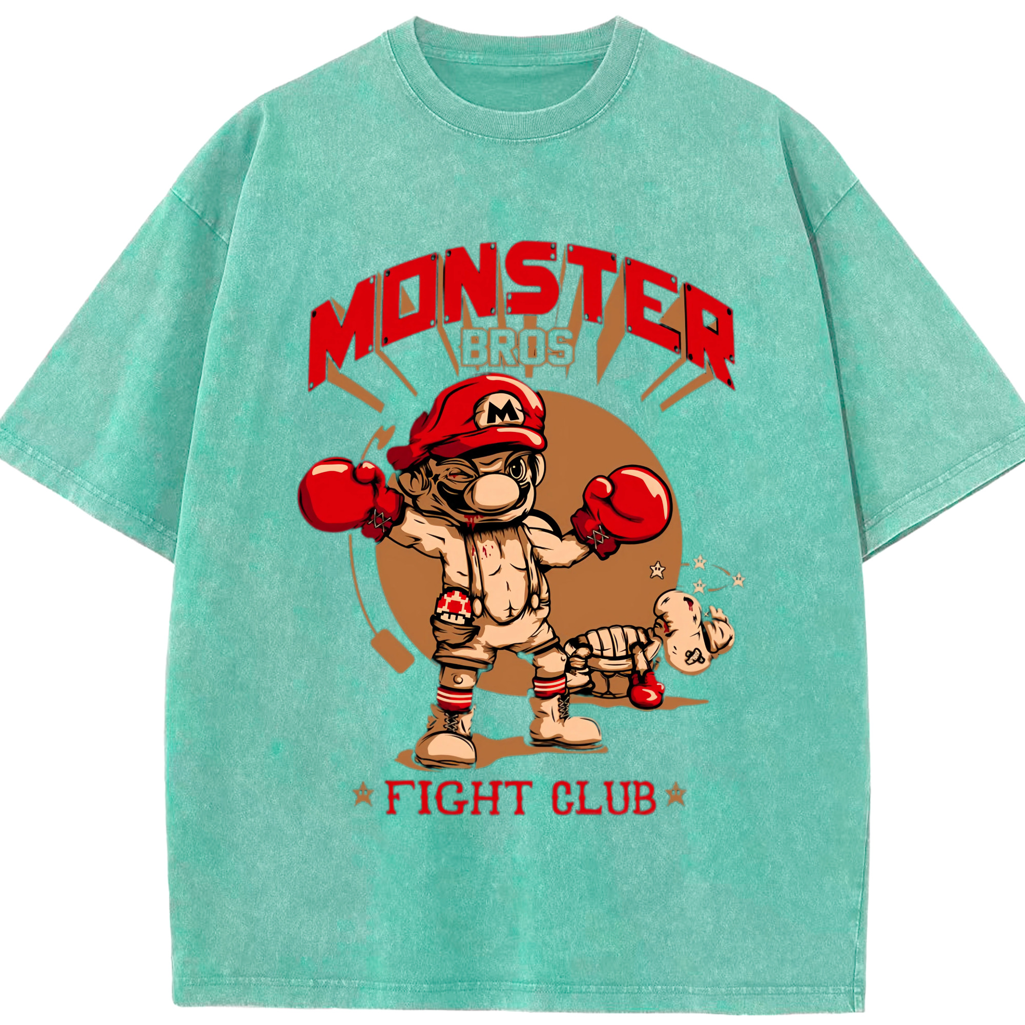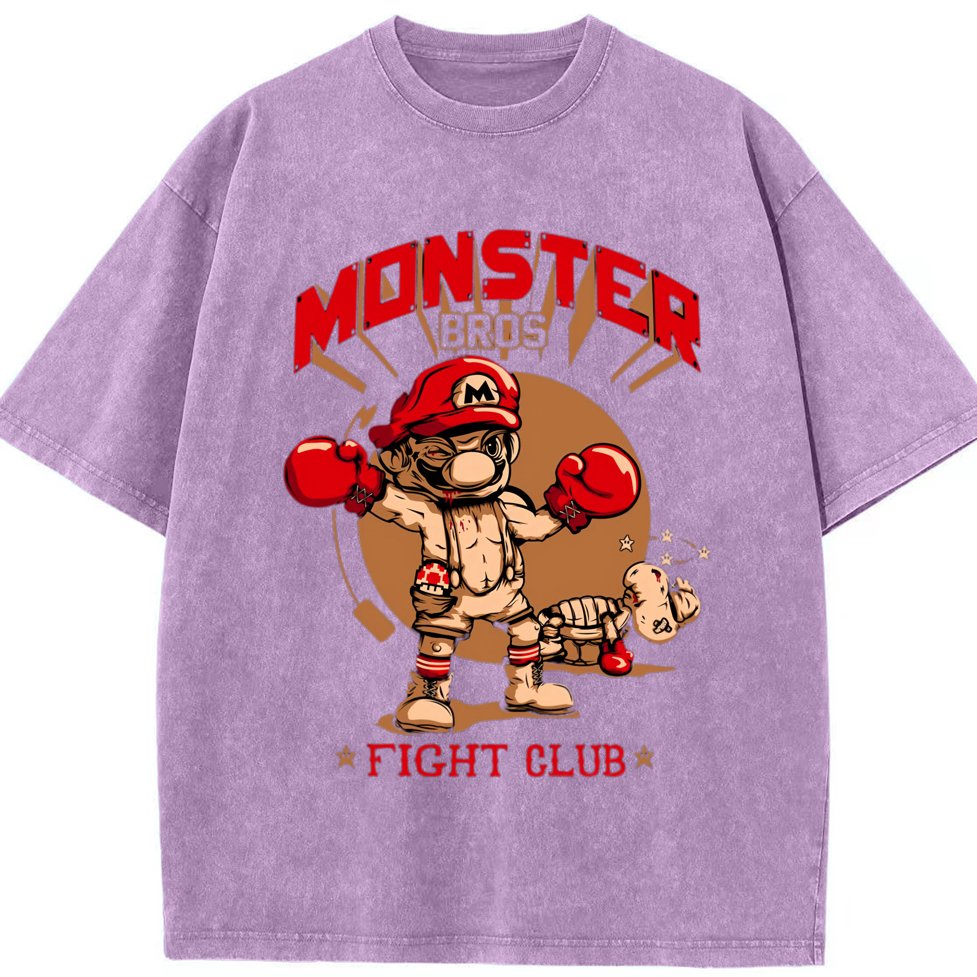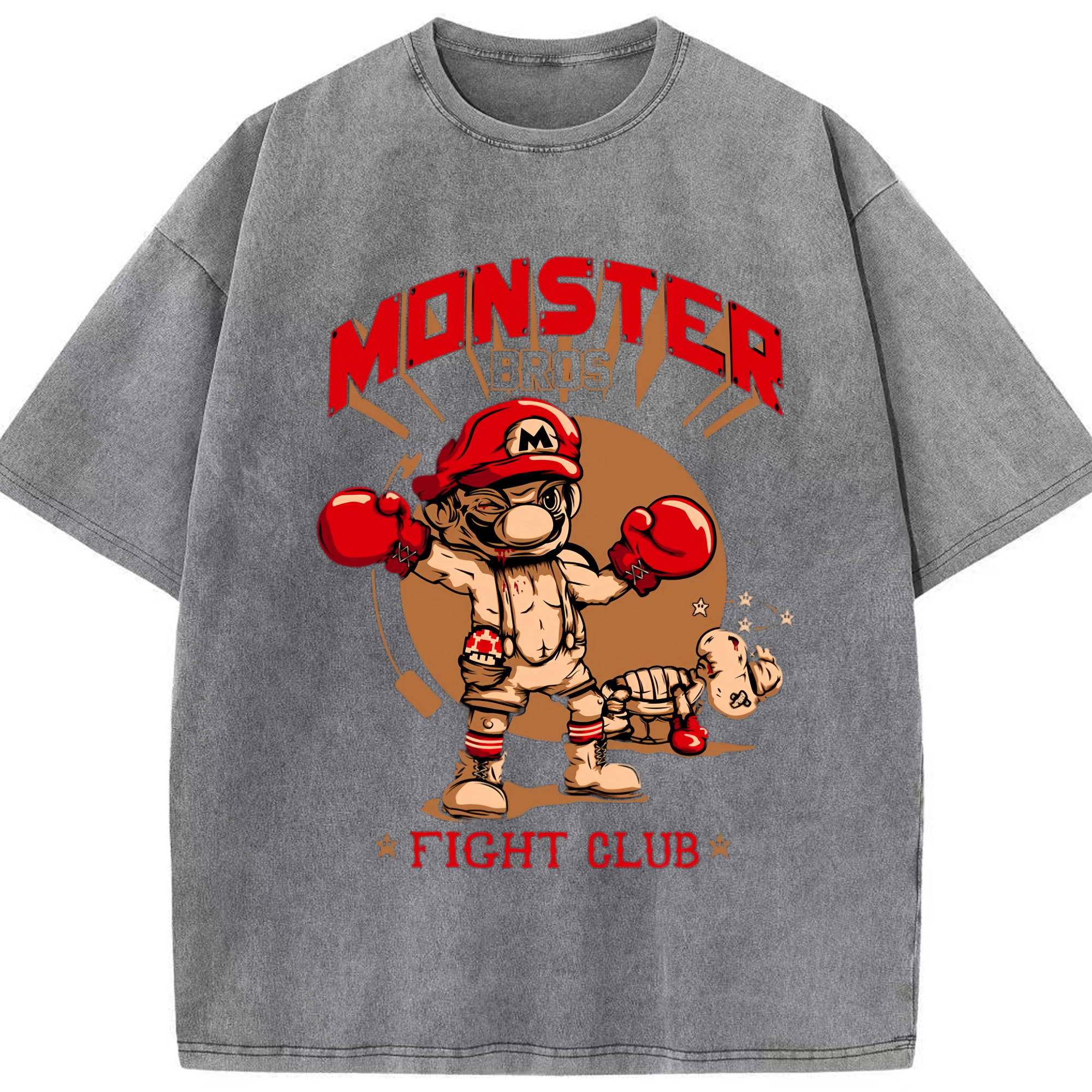Super Mario fight club T-shirt - Washed Vintage Look 230g Cotton Oversized T-Shirt With Front Heat Transfer Print – Soft, Lightweight, Stylish Fit – Comfortable Casual Wear For Sports & Everyday Use