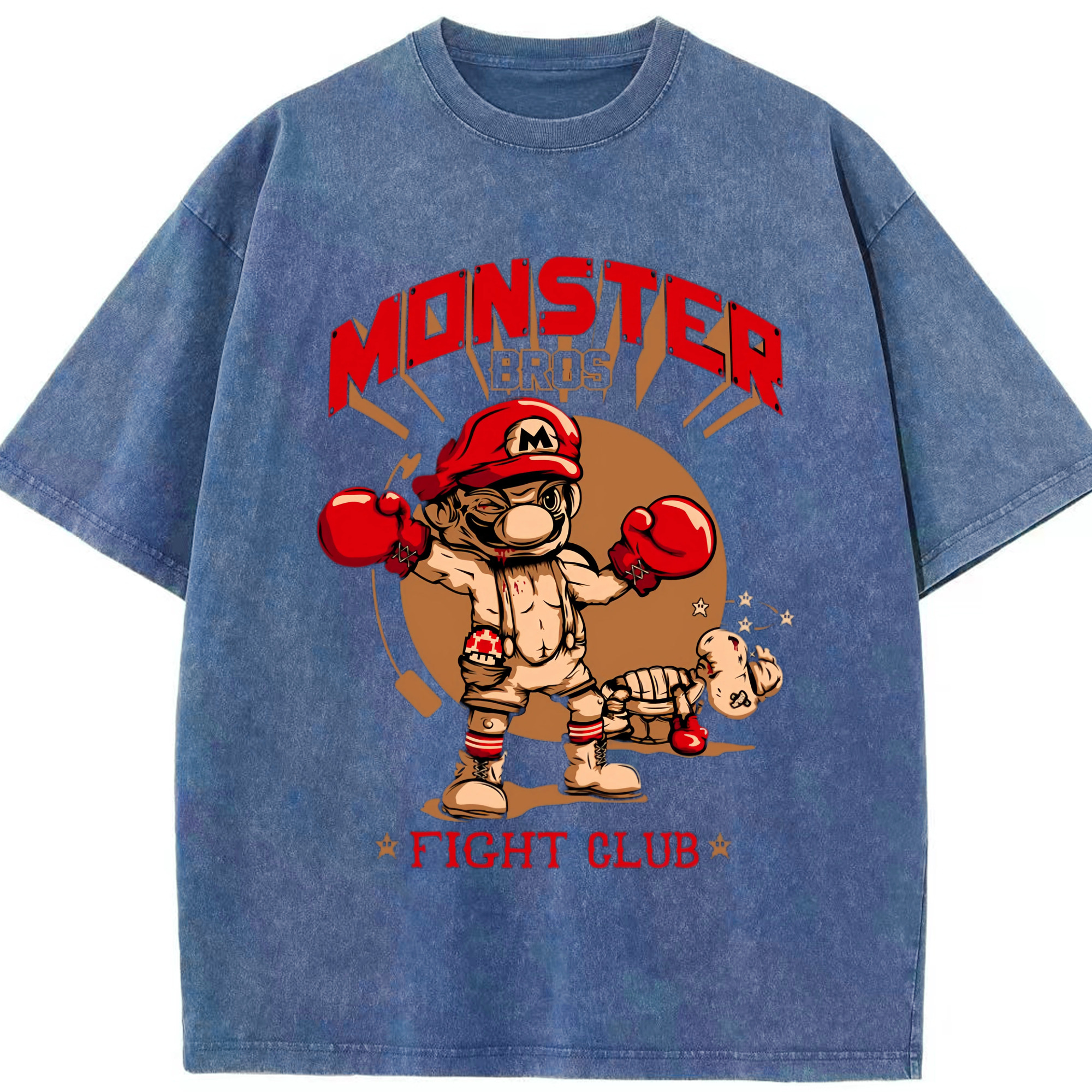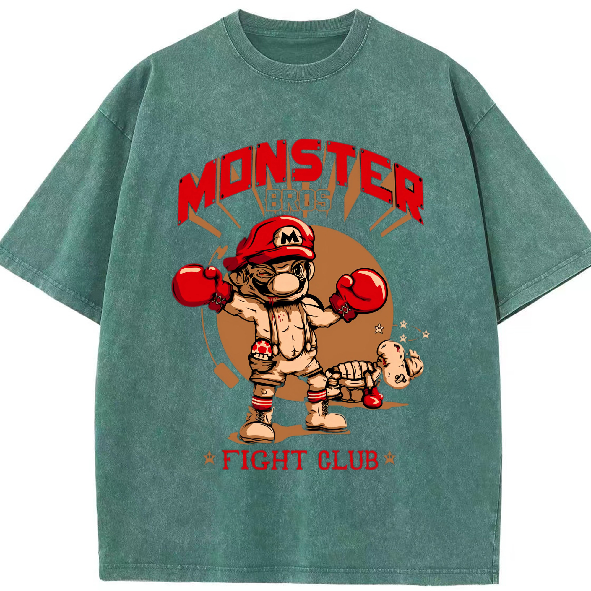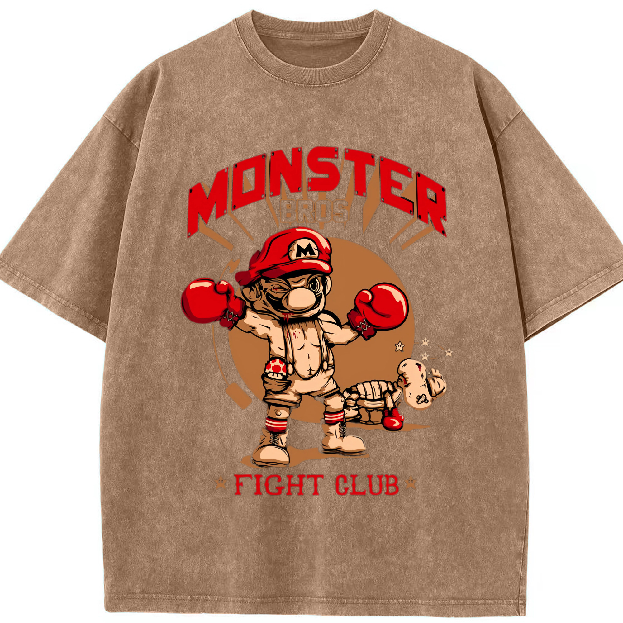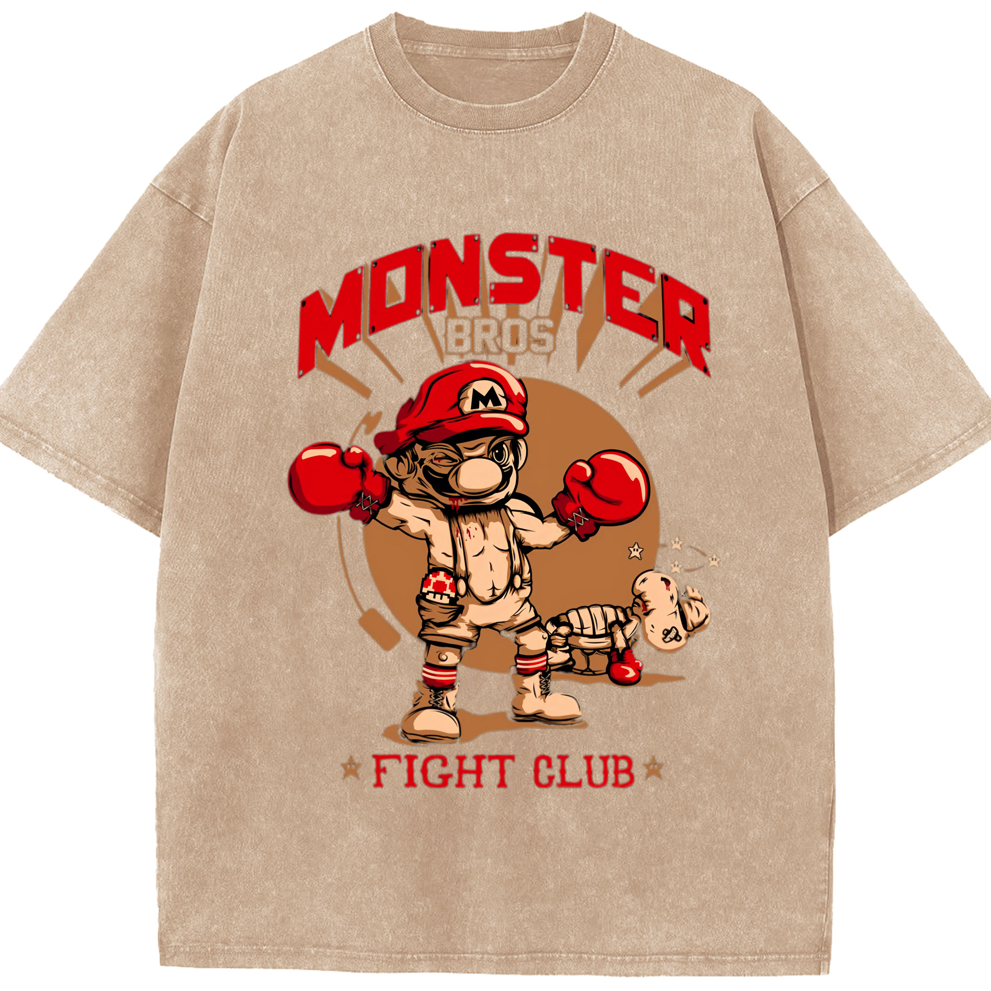 Super Mario fight club T-shirt - Washed Vintage Look 230g Cotton Oversized T-Shirt With Front Heat Transfer Print – Soft, Lightweight, Stylish Fit – Comfortable Casual Wear For Sports & Everyday Use