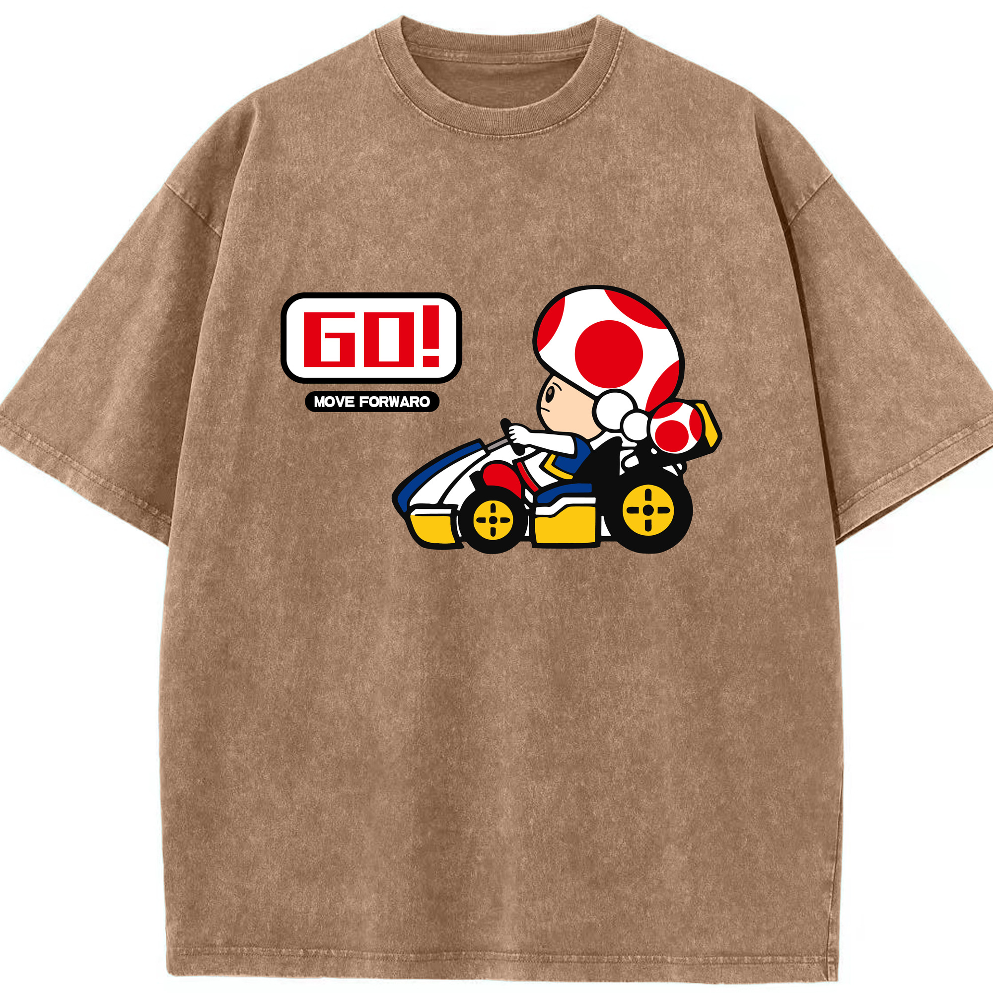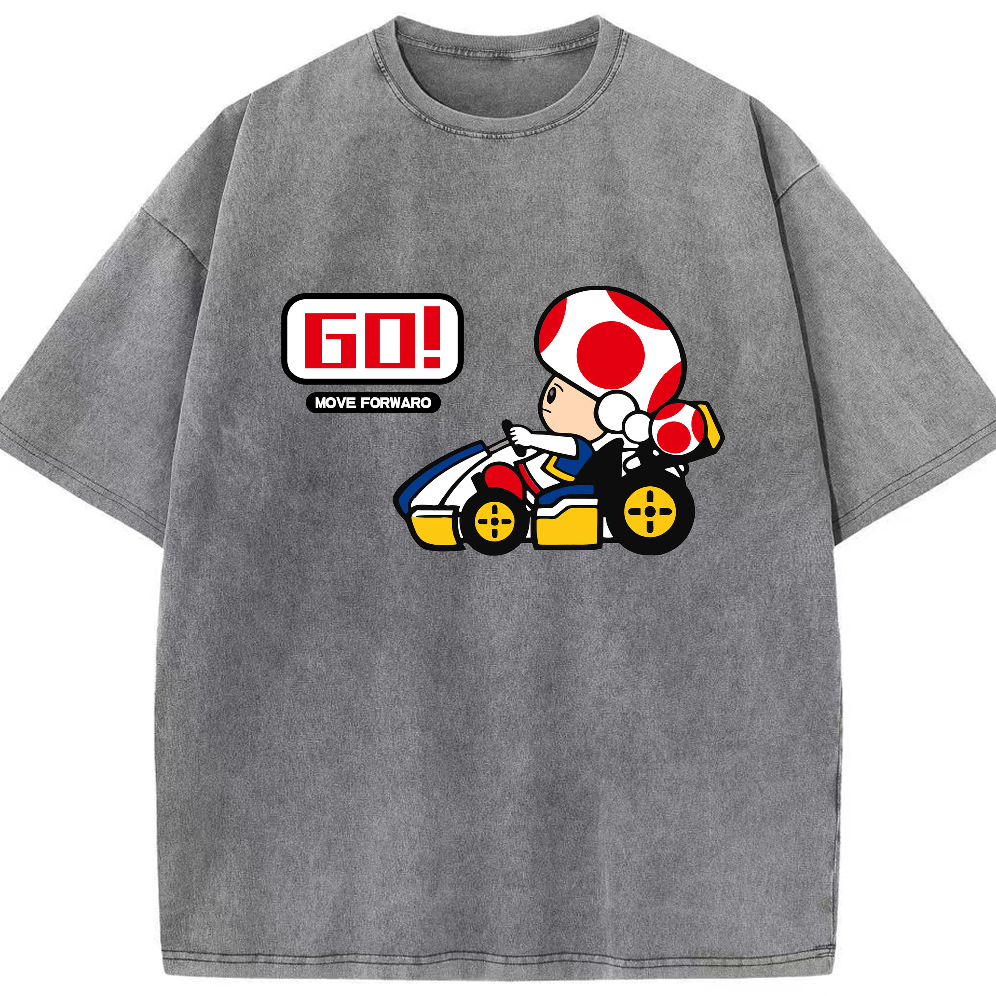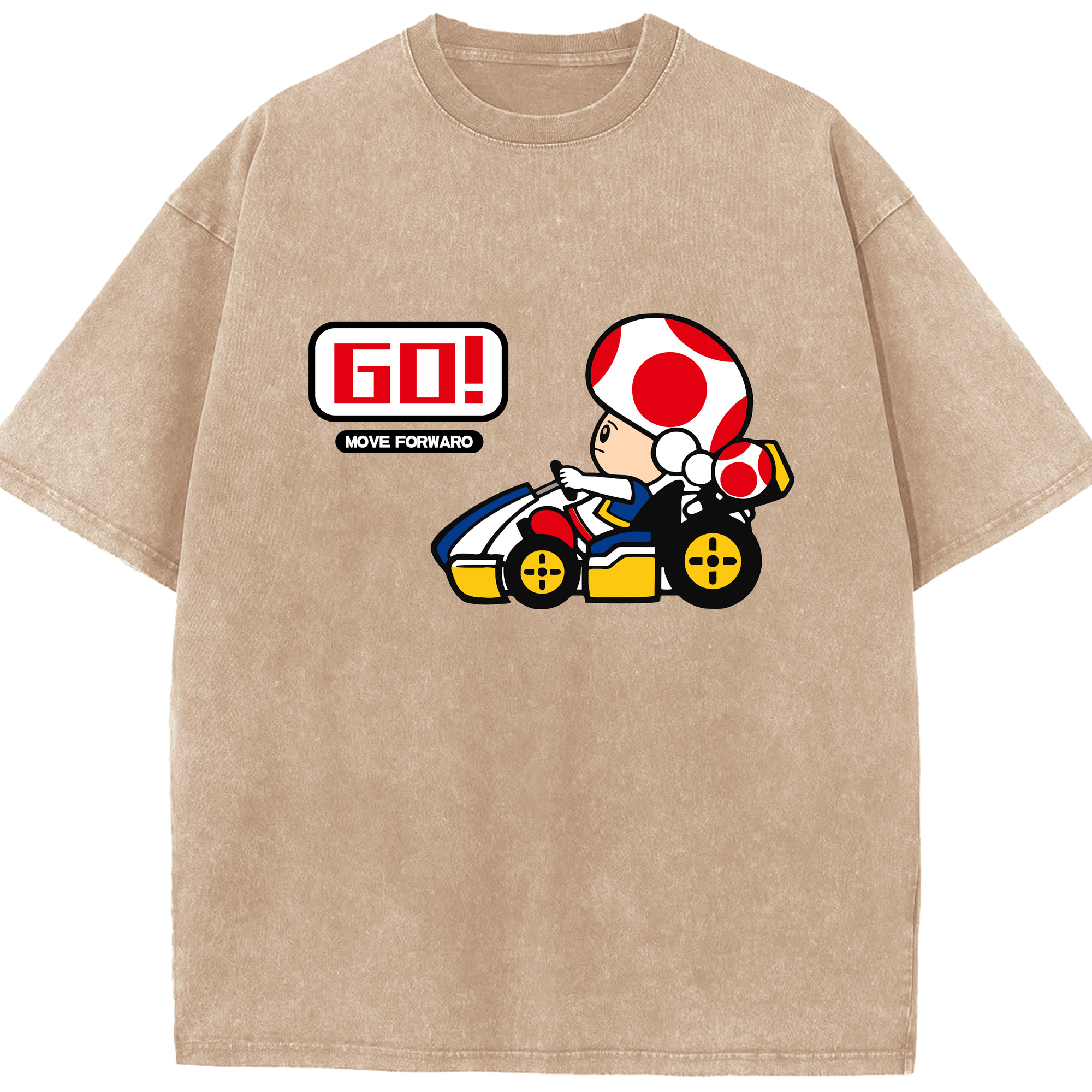Super mario kart red toad t shirt - Washed Vintage Look 230g Cotton Oversized T-Shirt With Front Heat Transfer Print – Soft, Lightweight, Stylish Fit – Comfortable Casual Wear For Sports & Everyday Use